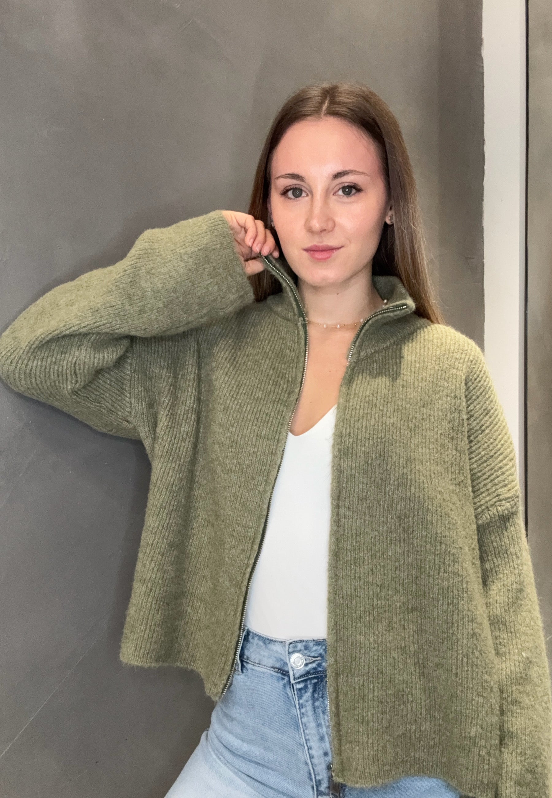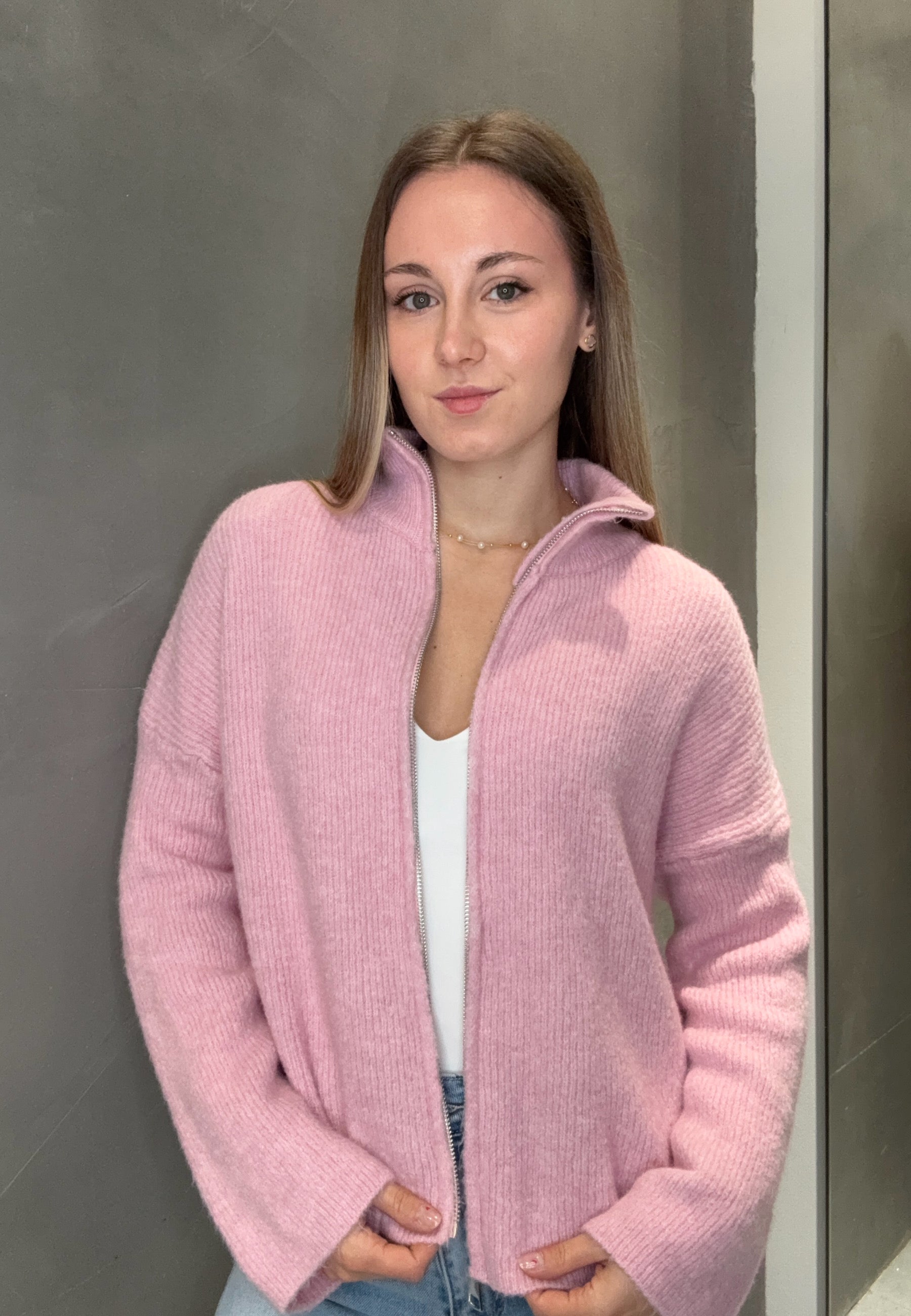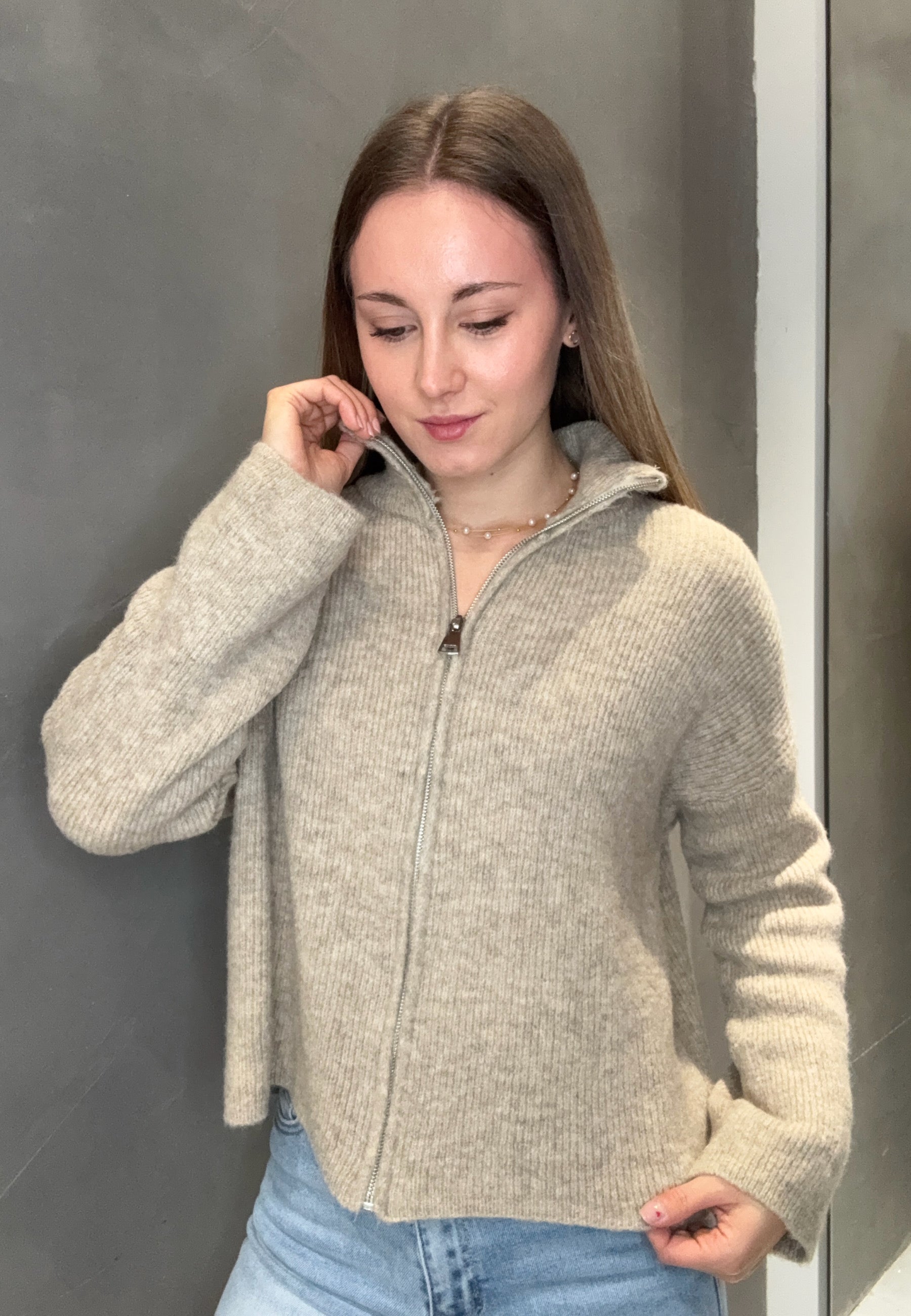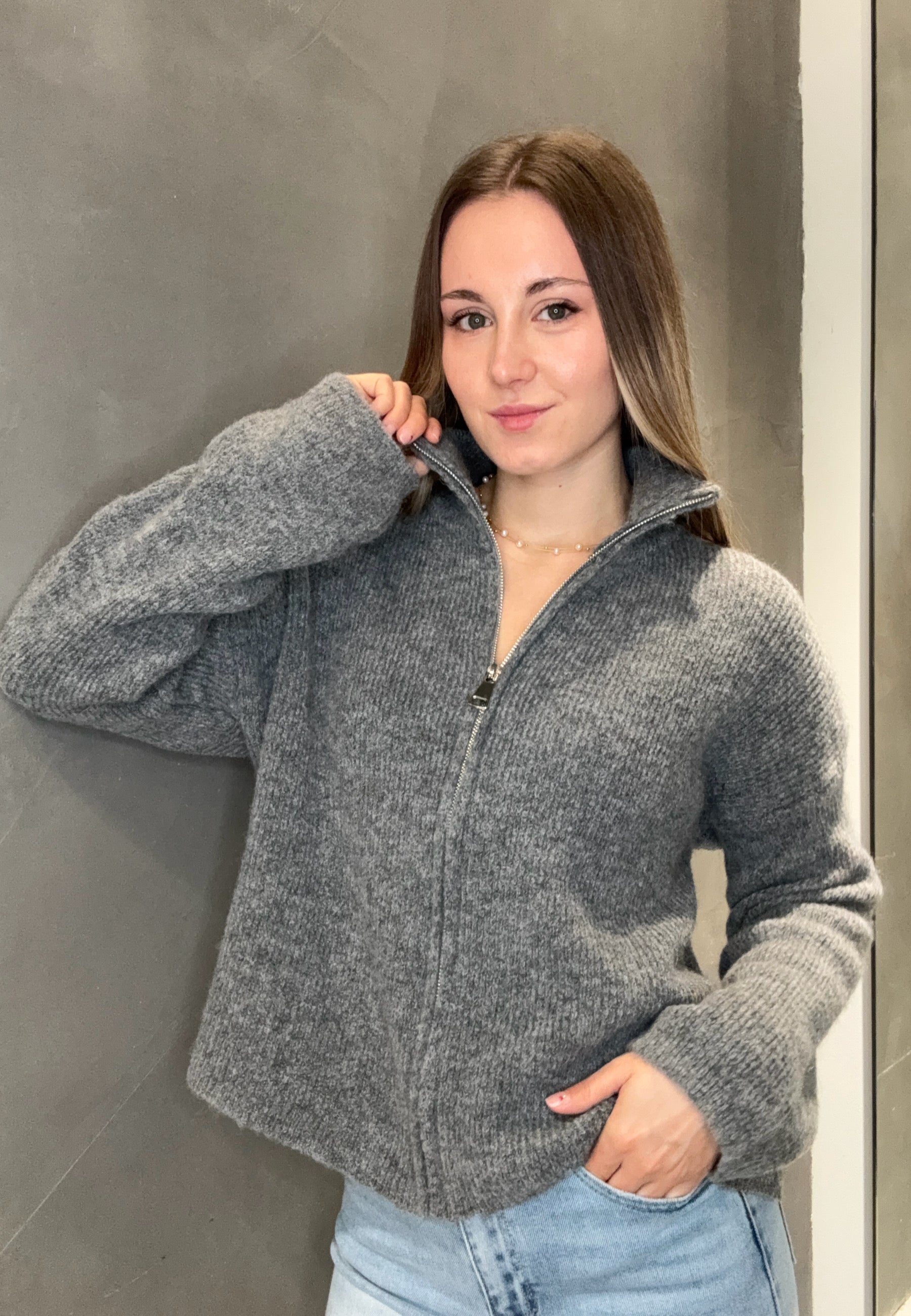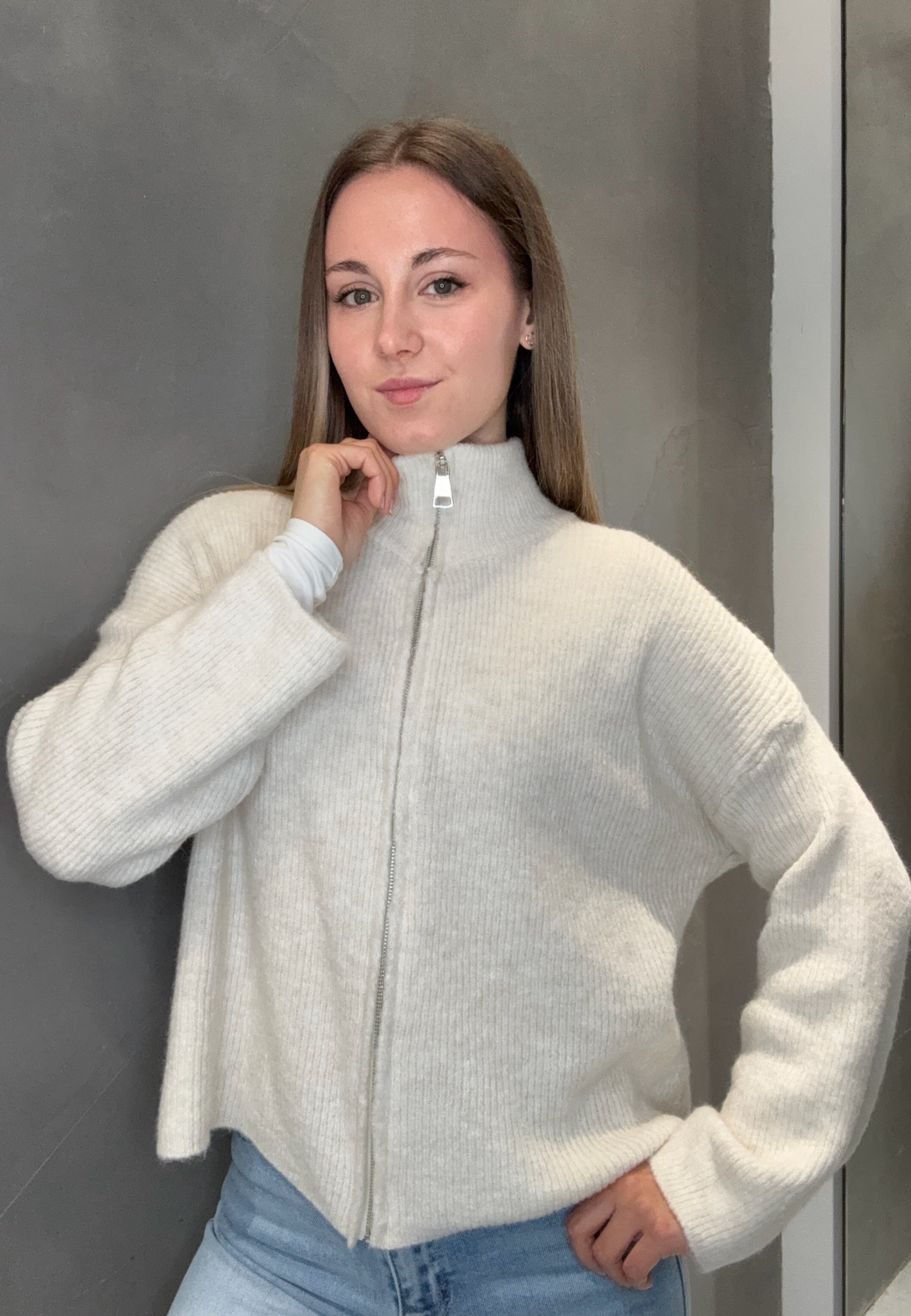 Strickjacke "Uni" mit Reißverschluss und Stehkragen