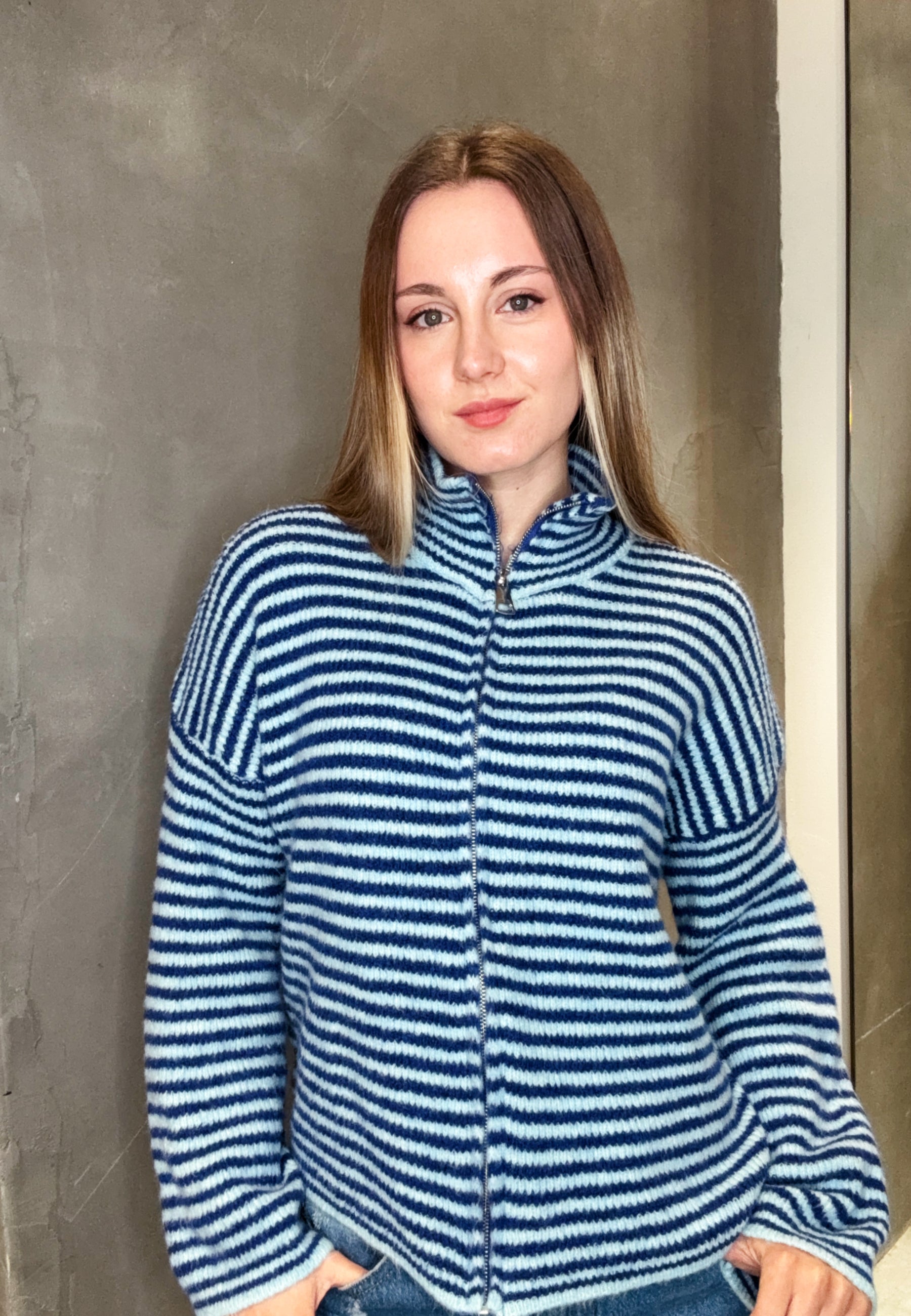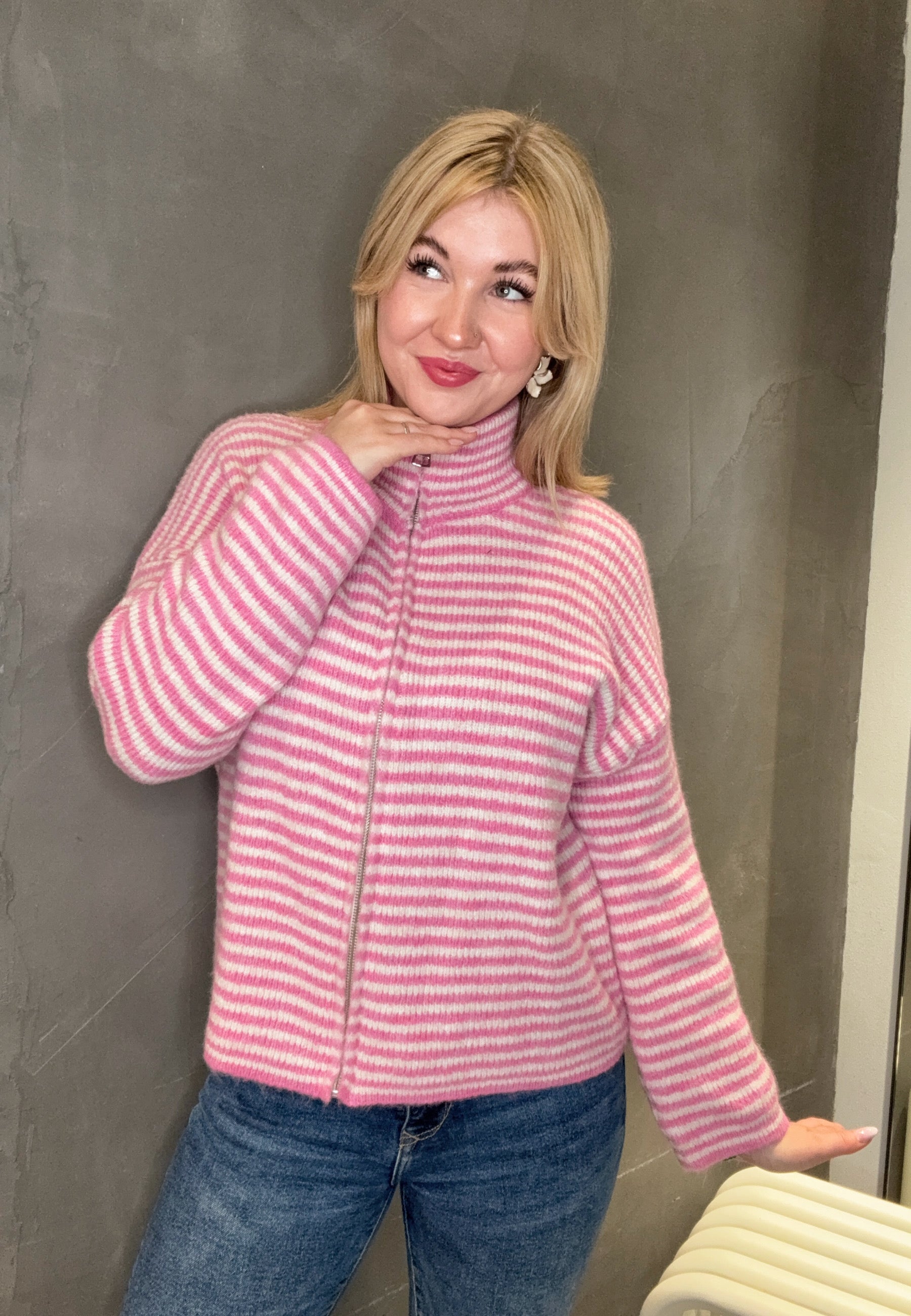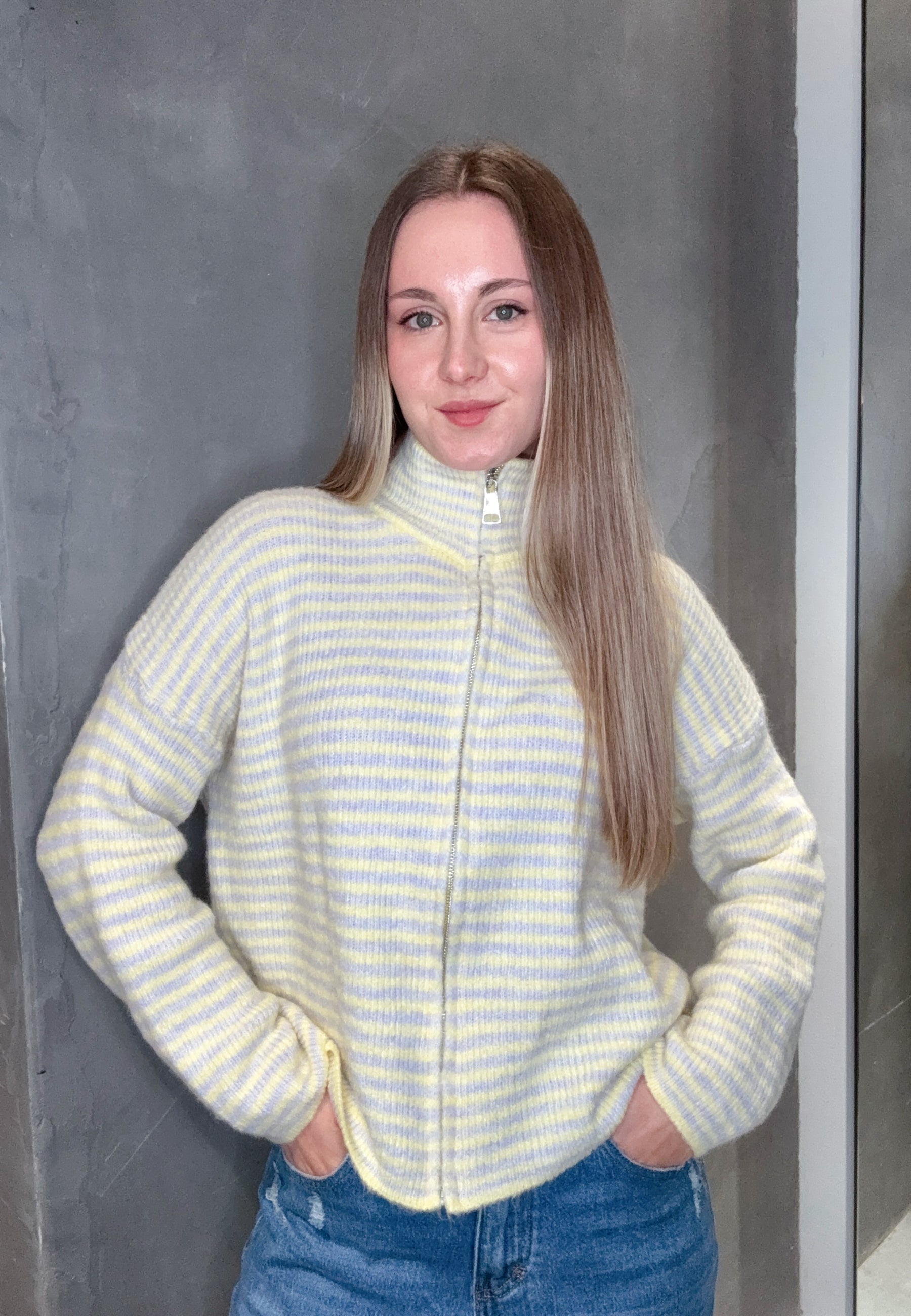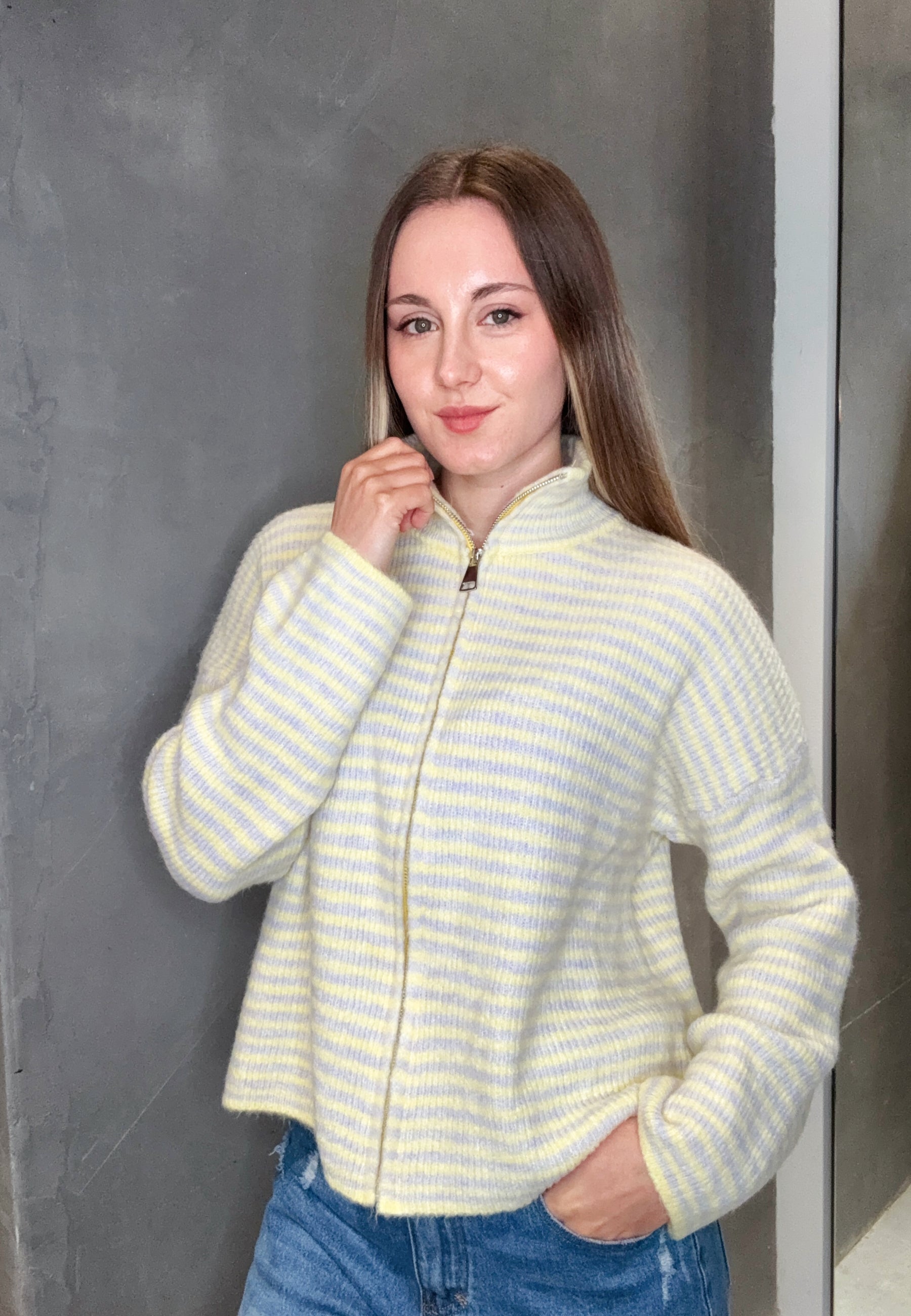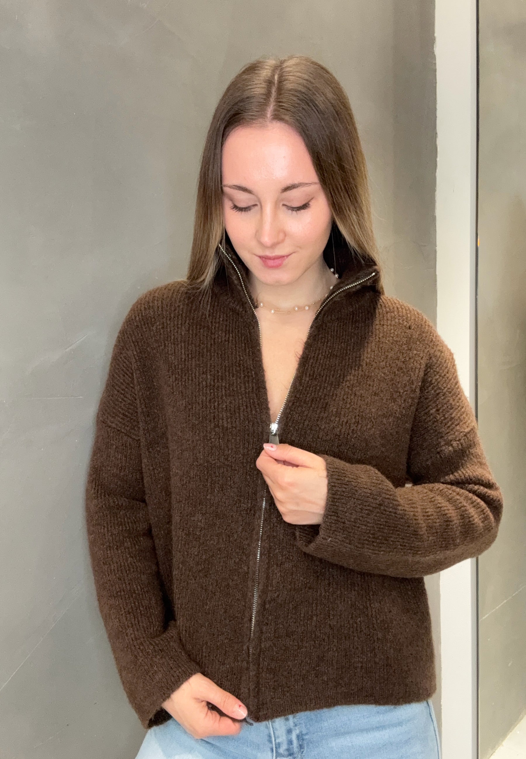 Strickjacke "Uni" mit Reißverschluss und Stehkragen