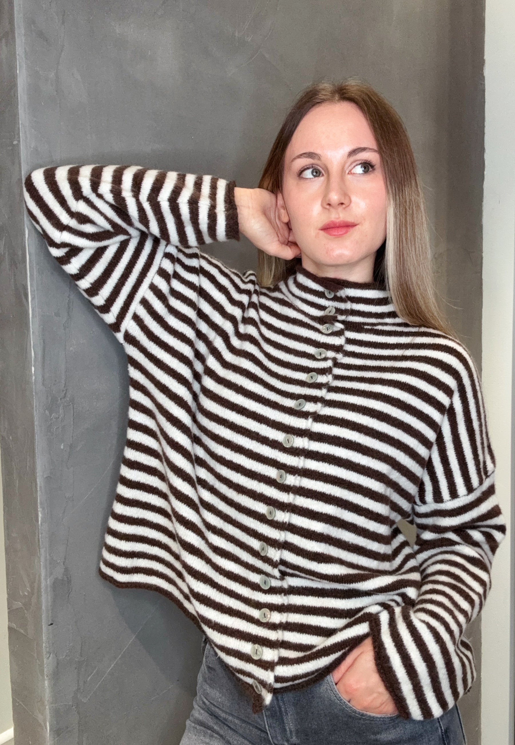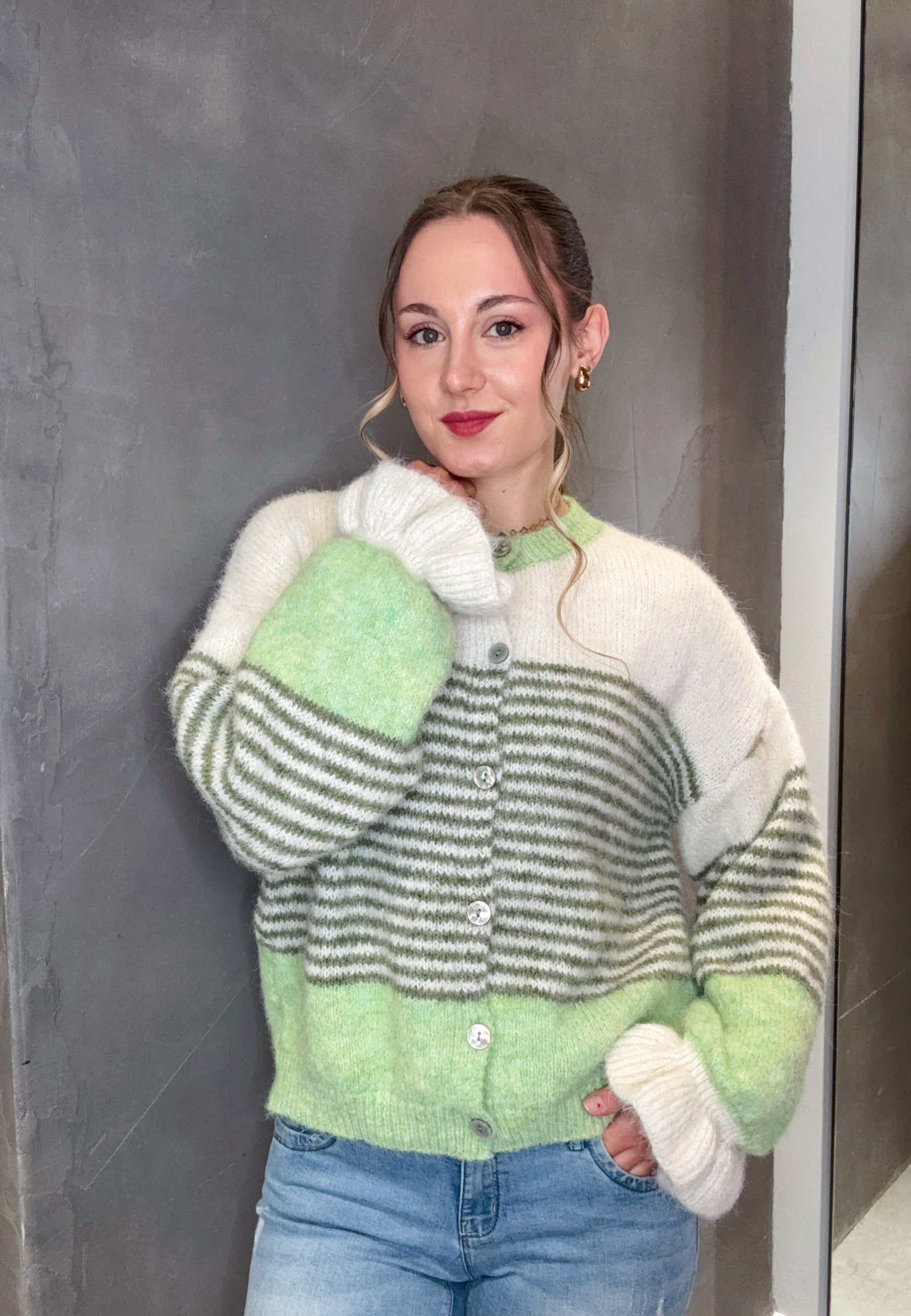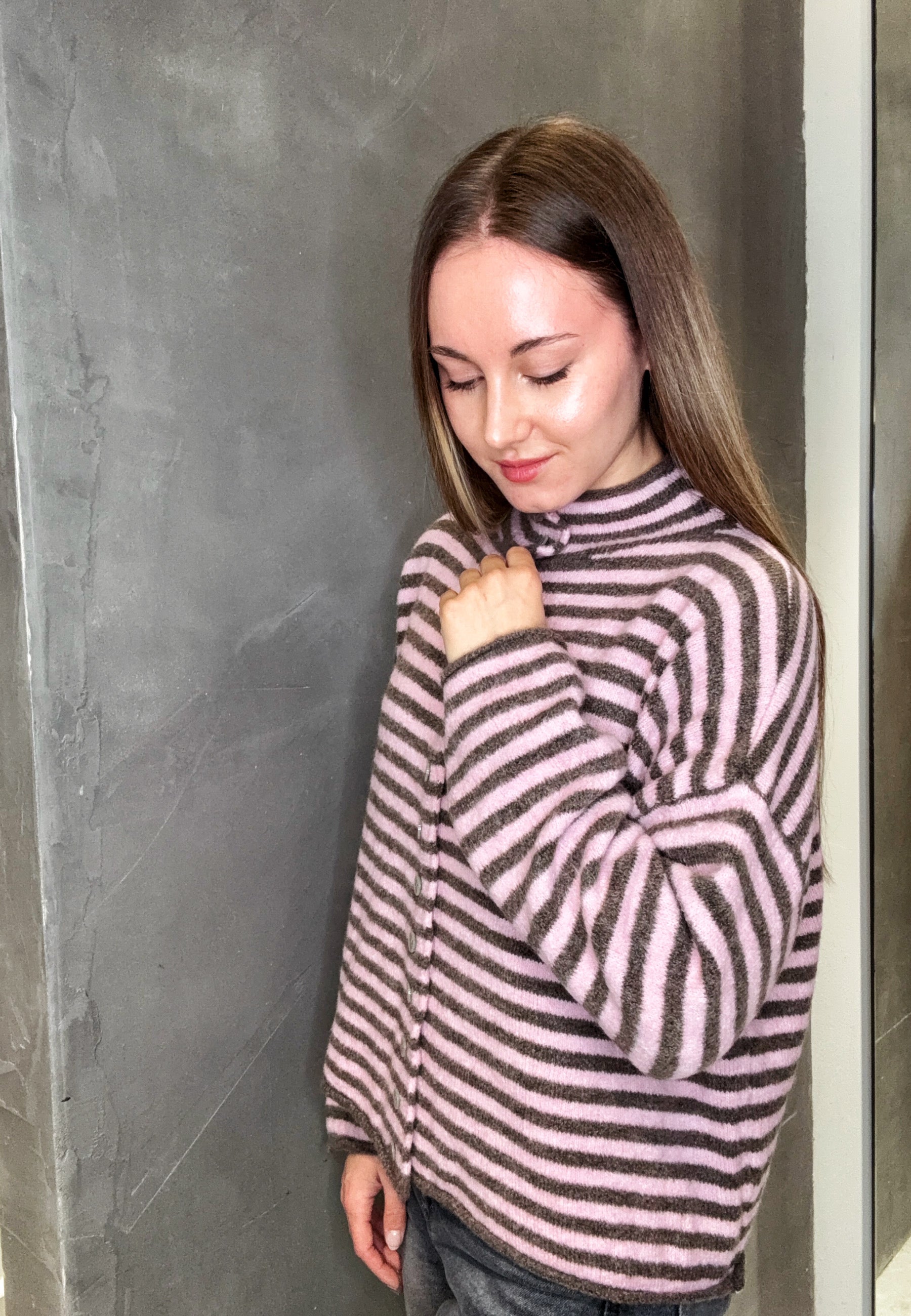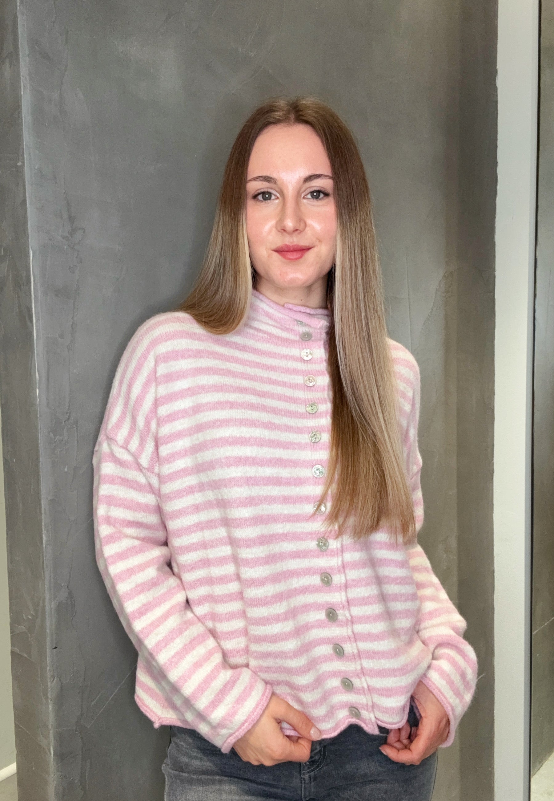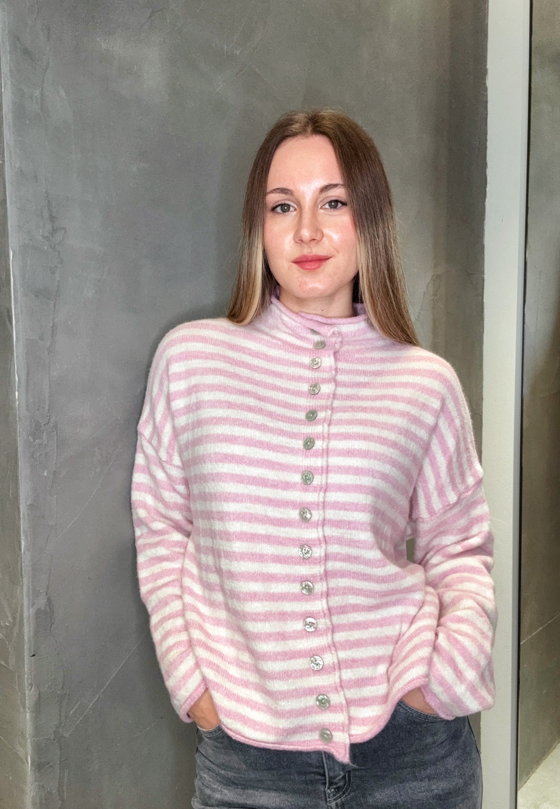 Strickjacke mit Streifen und Knopfleiste