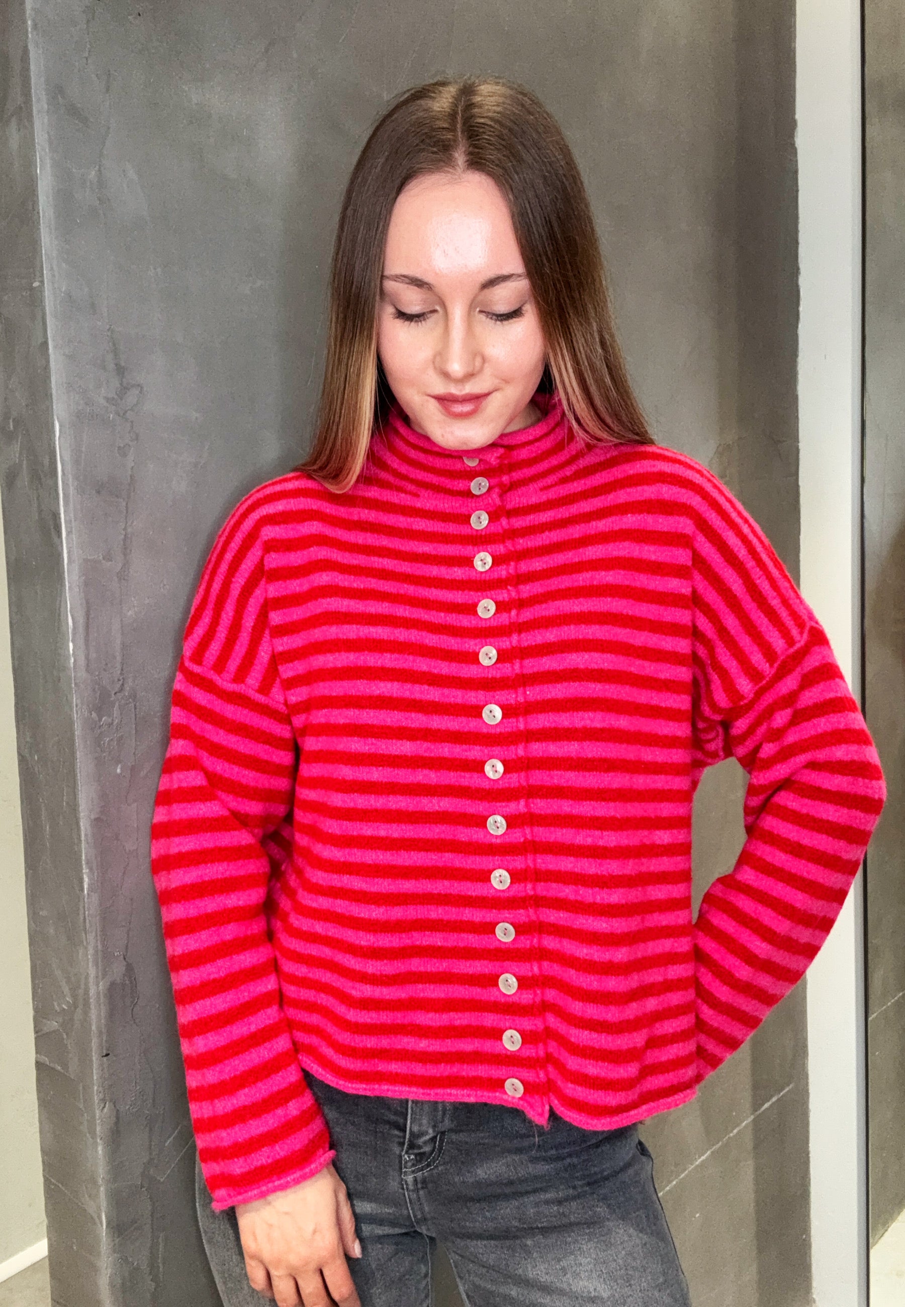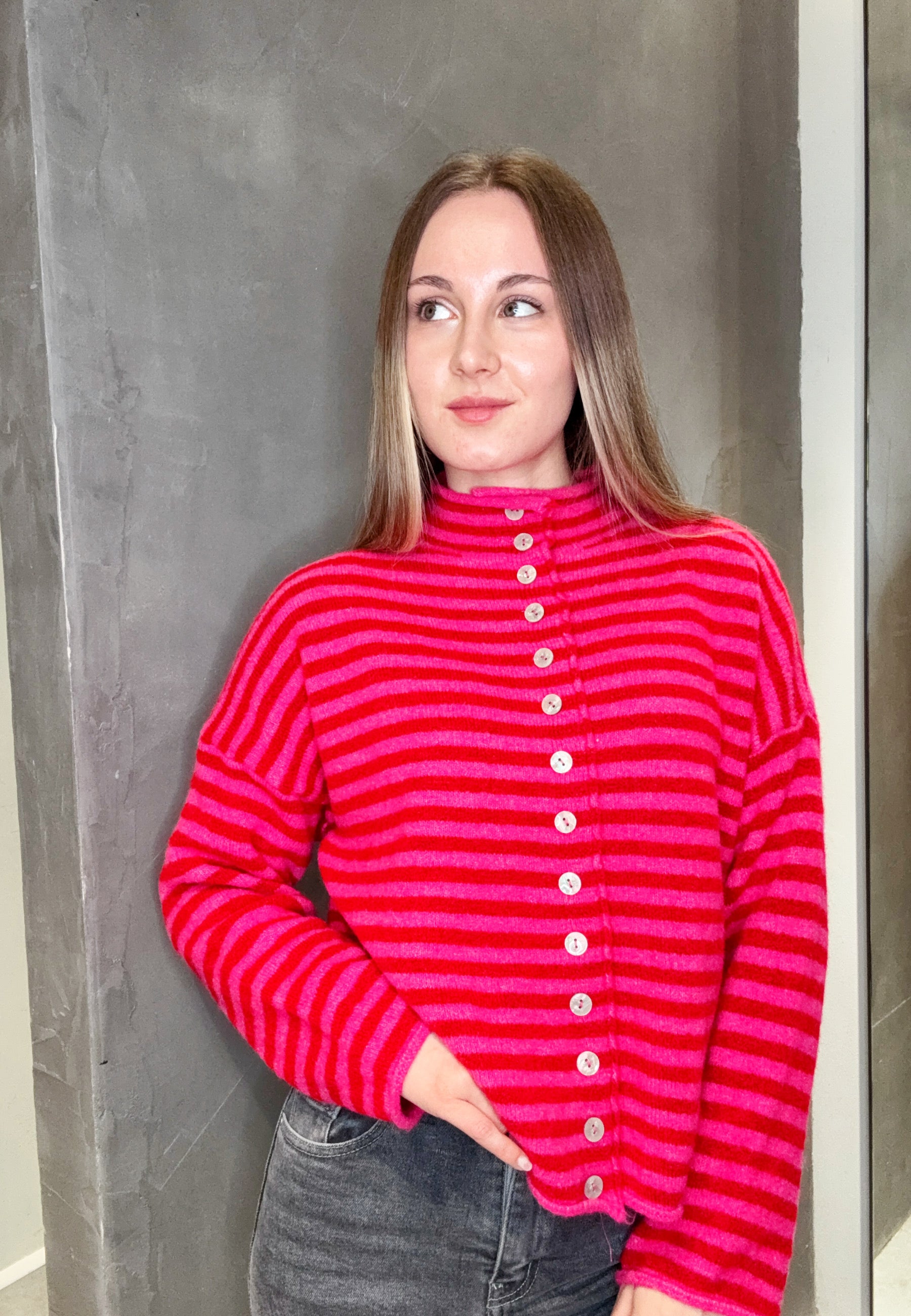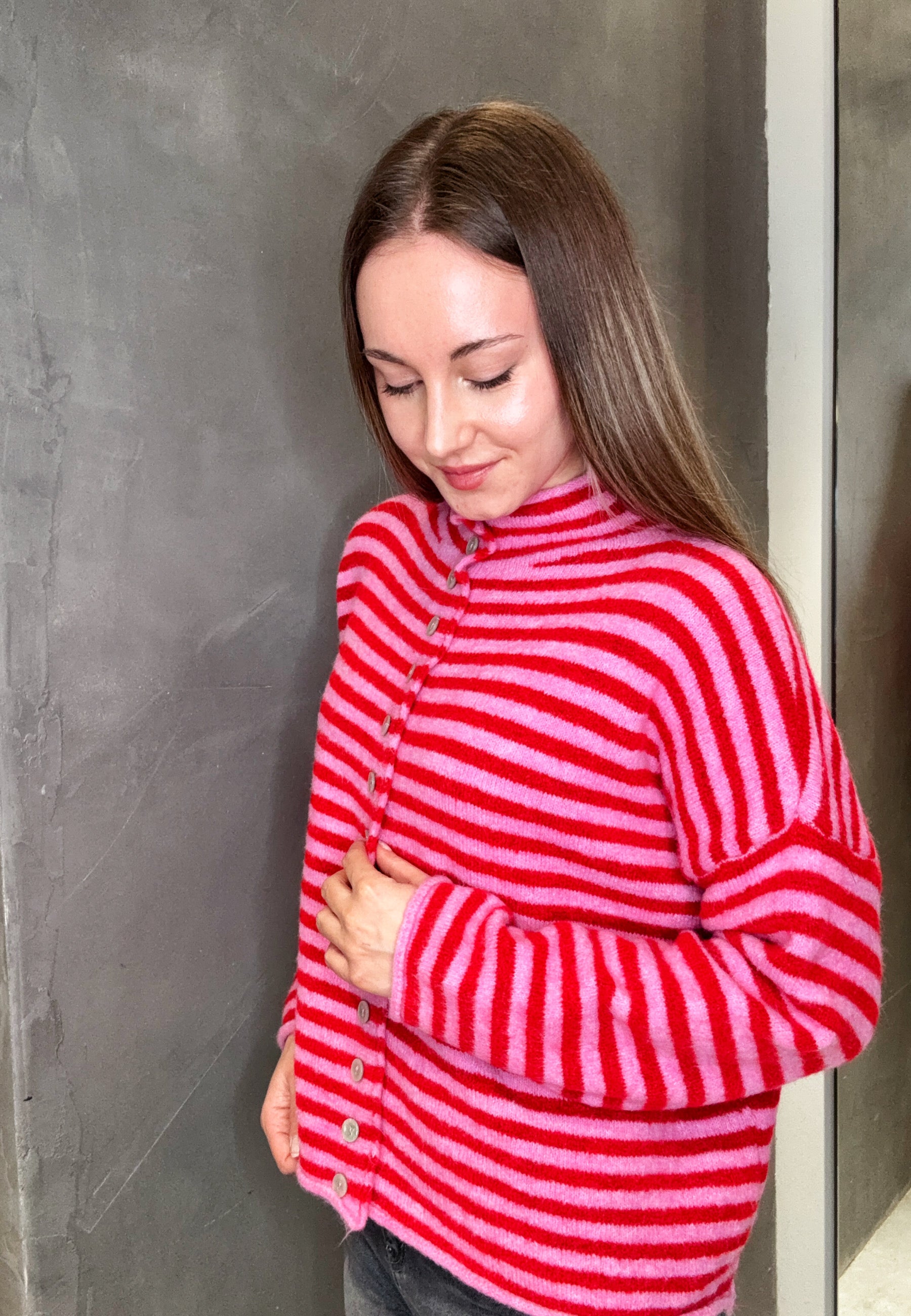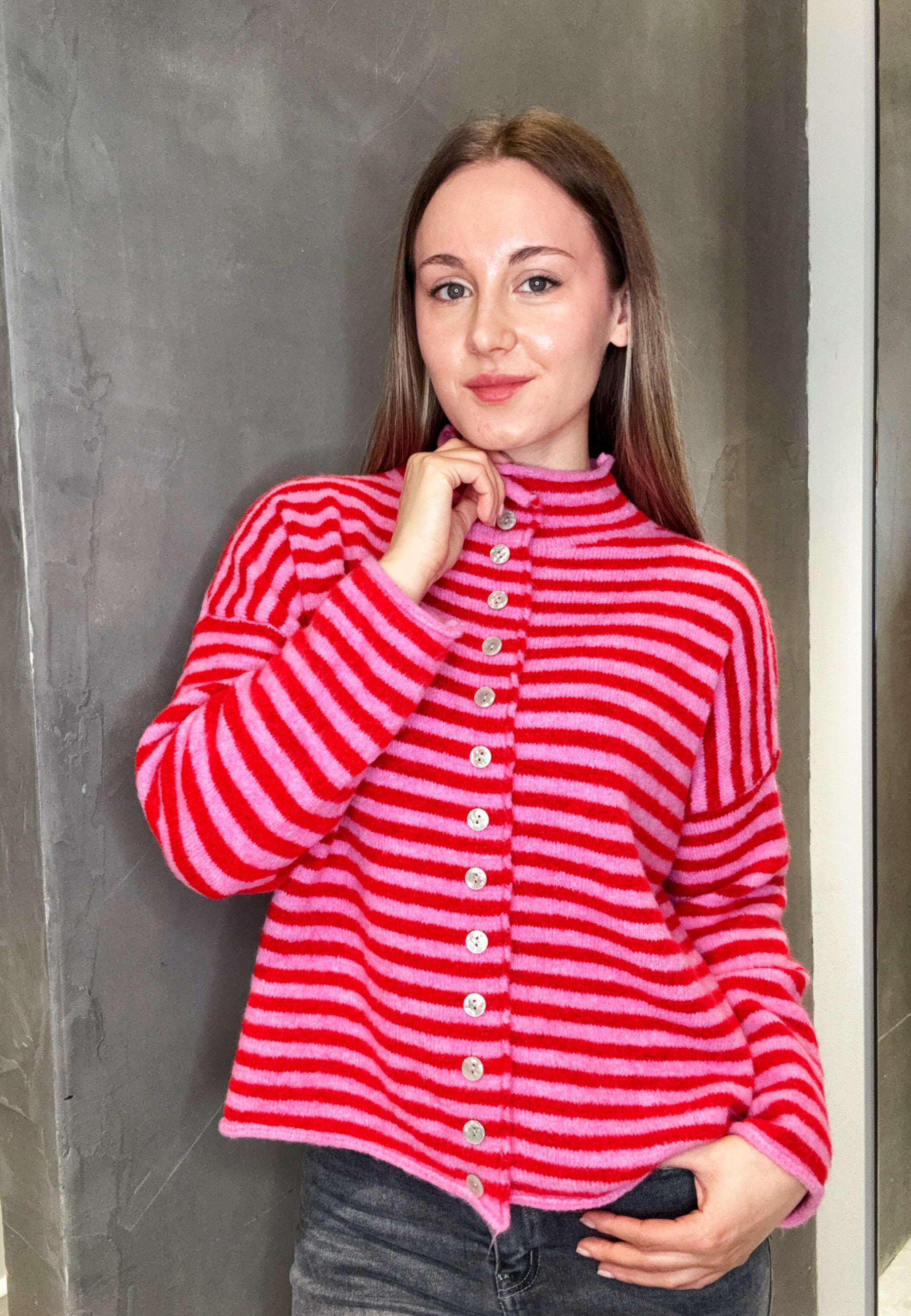 Strickjacke mit Streifen und Knopfleiste