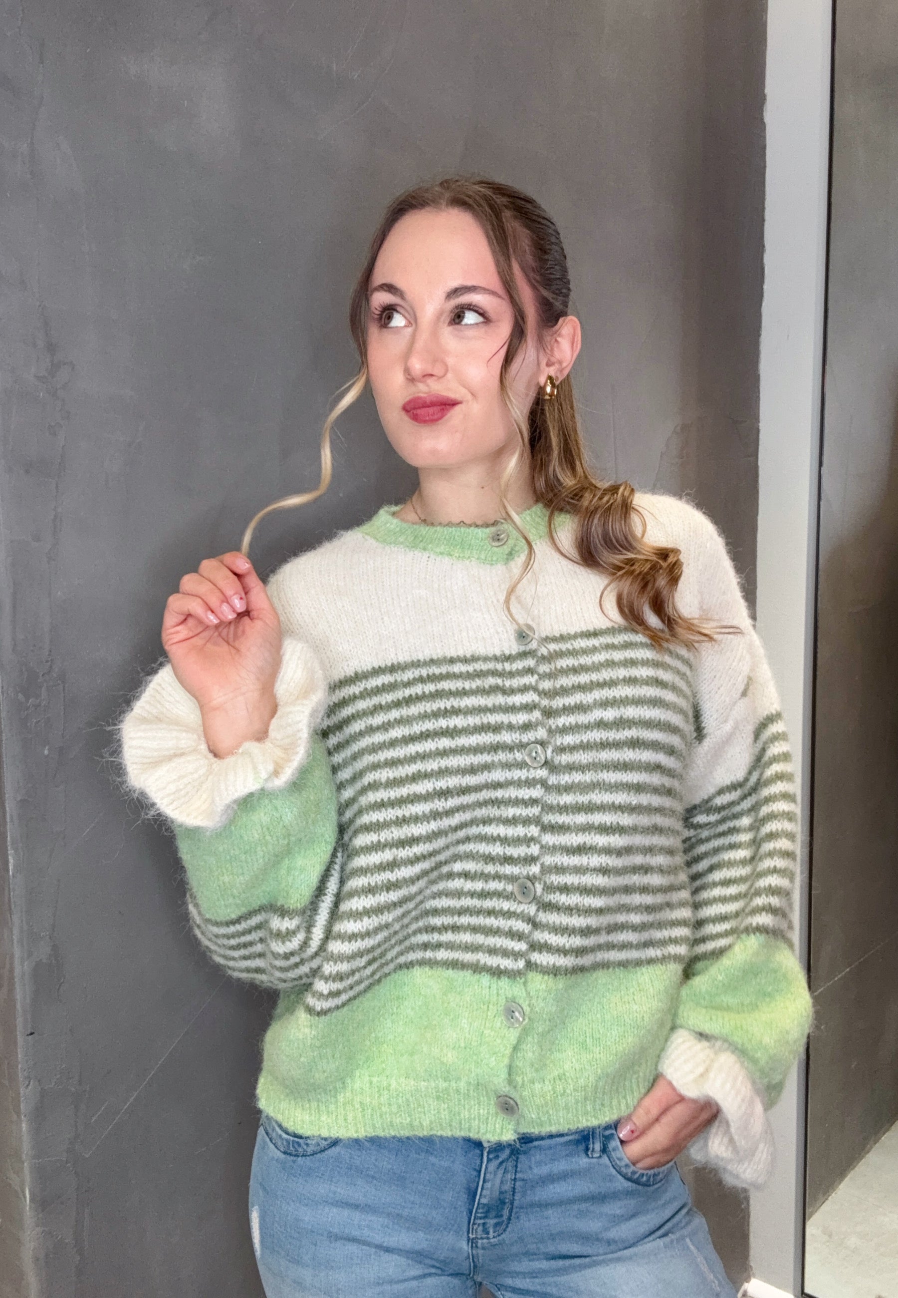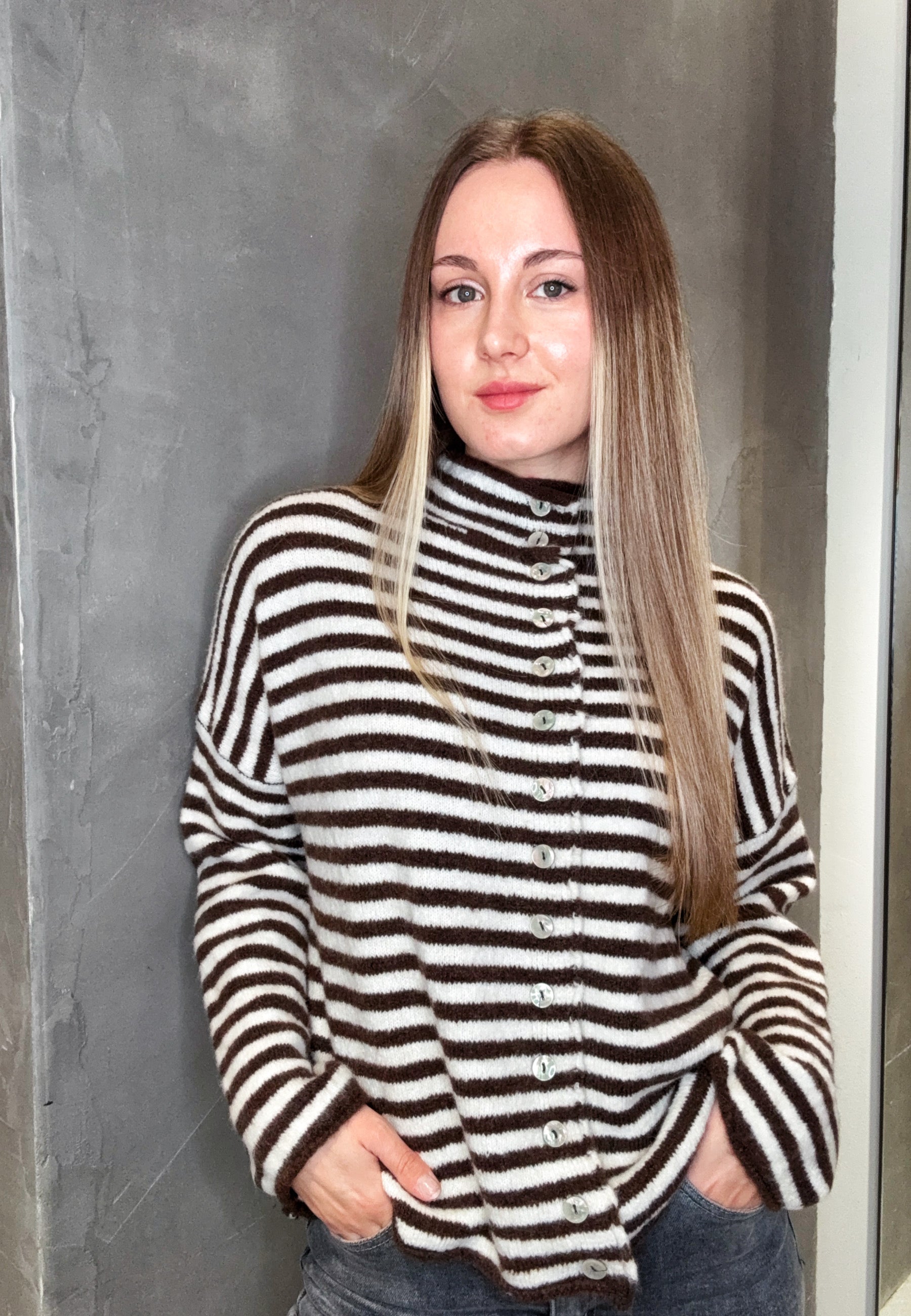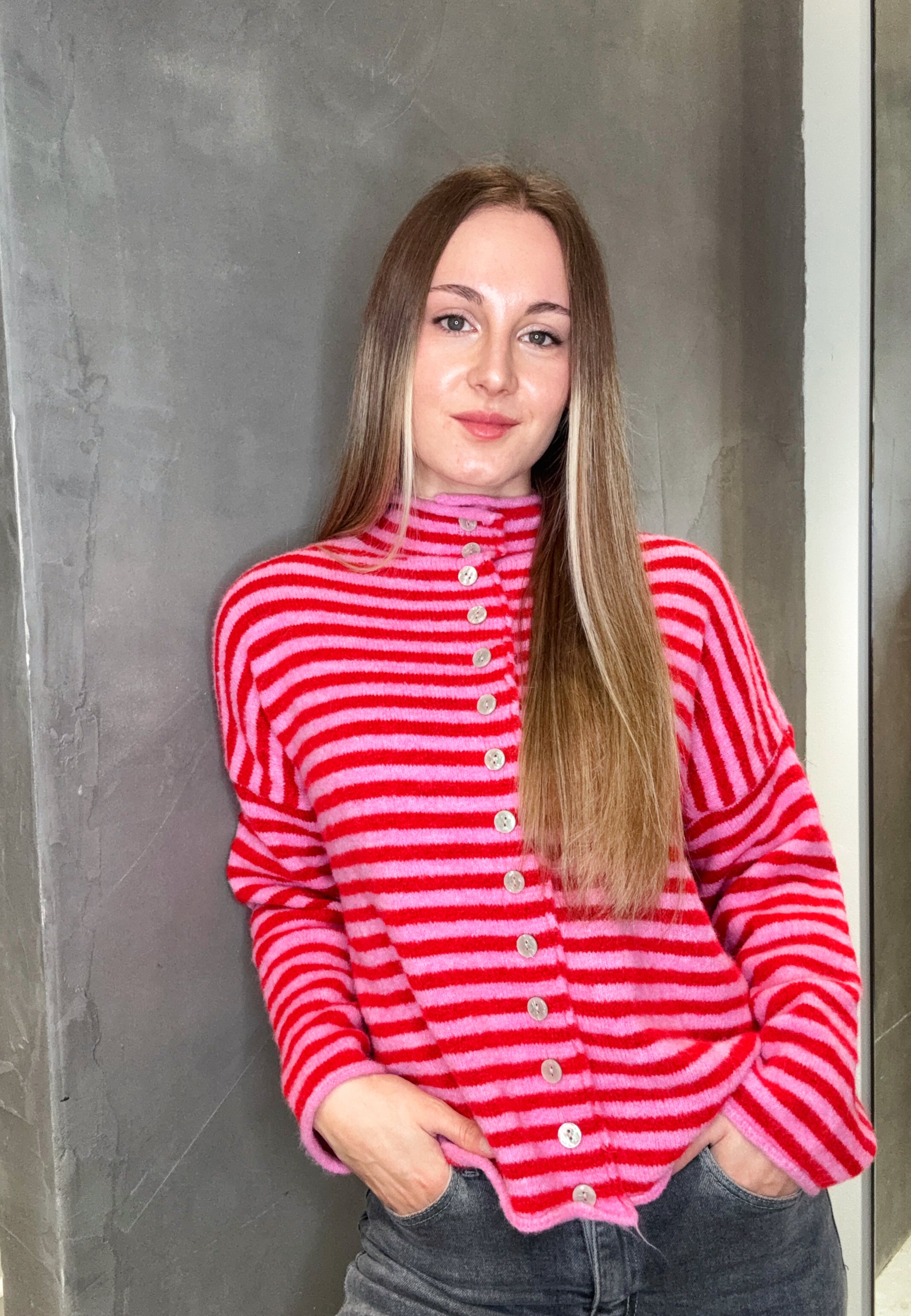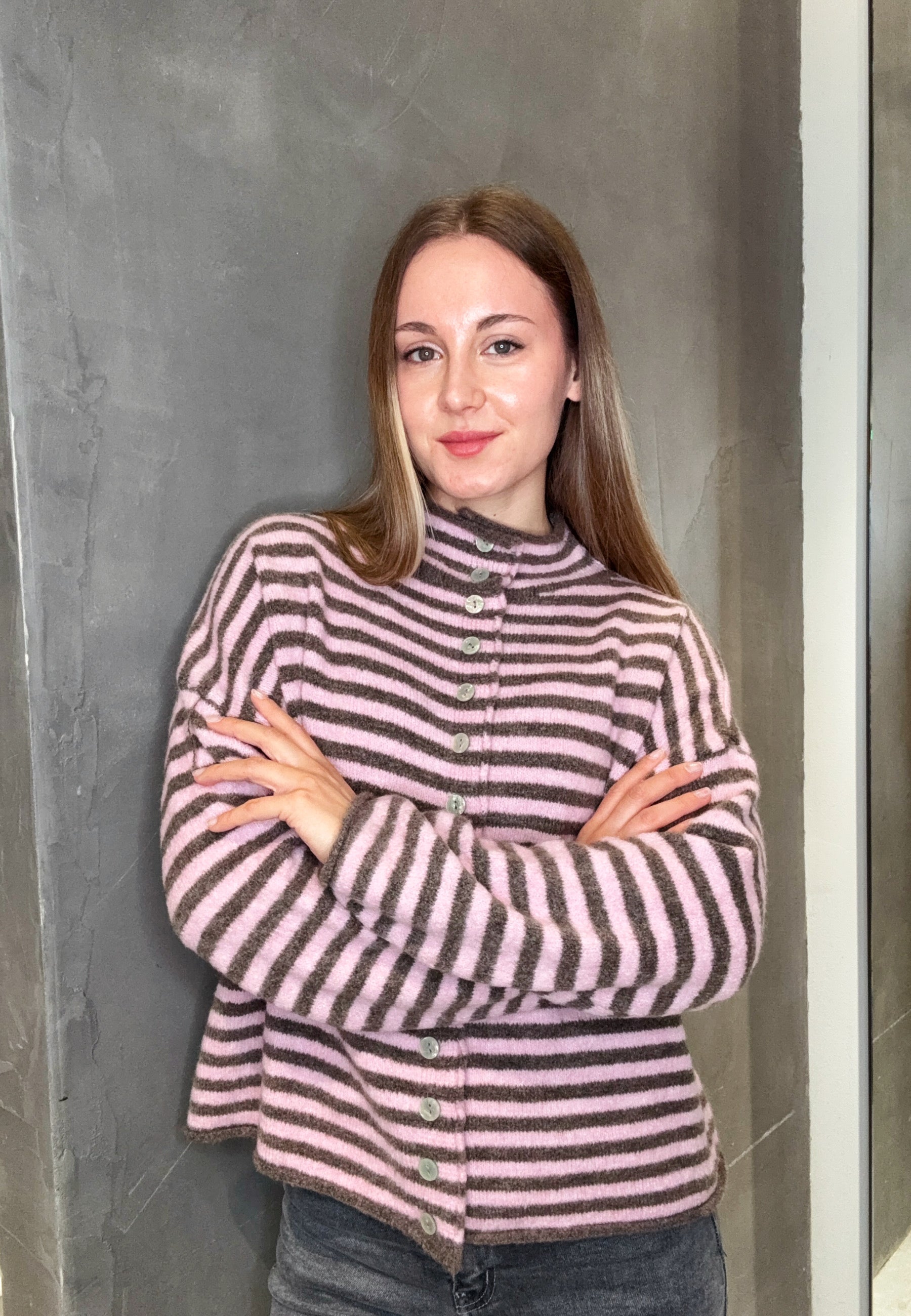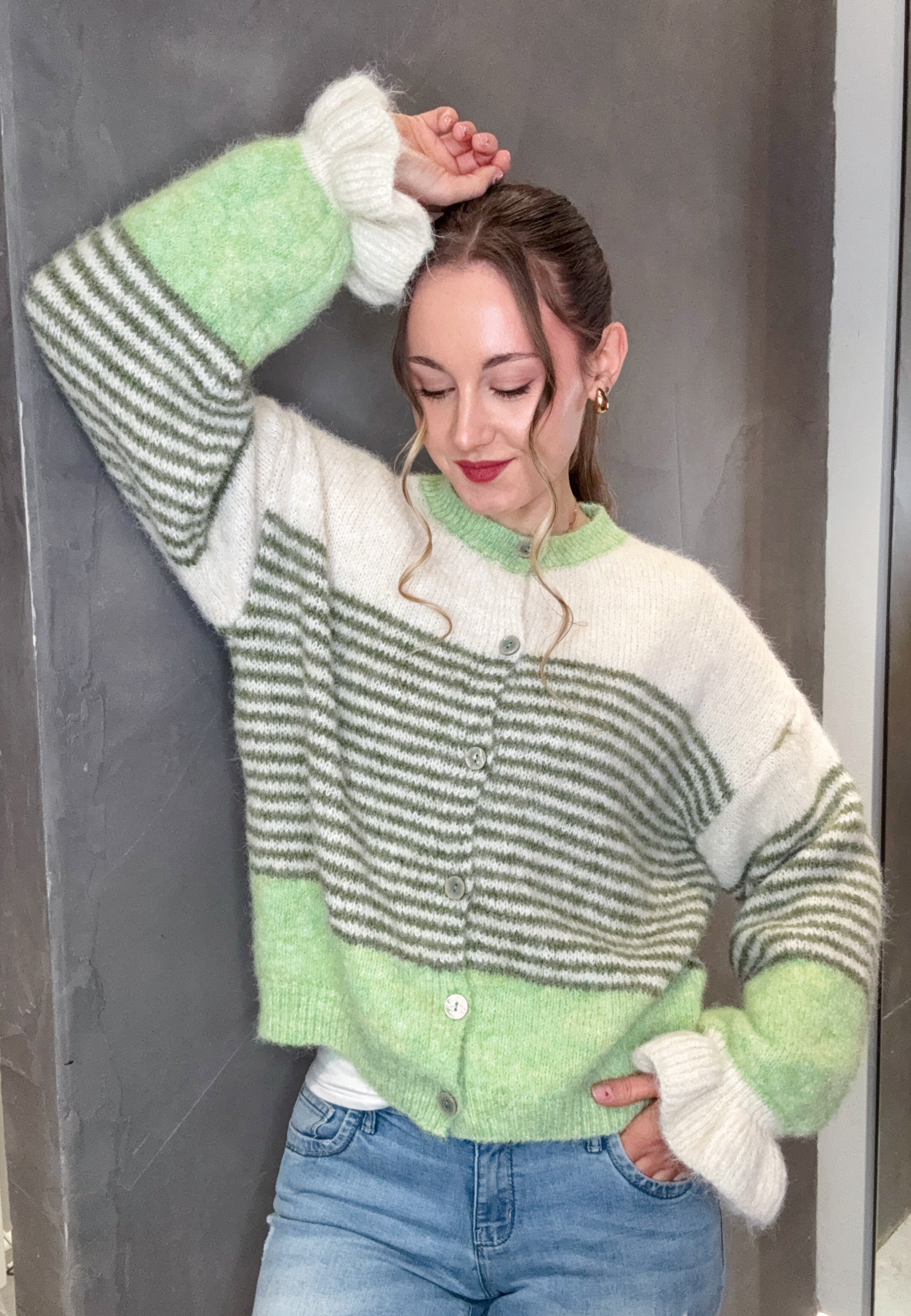 Strickjacke mit Streifen und Knopfleiste