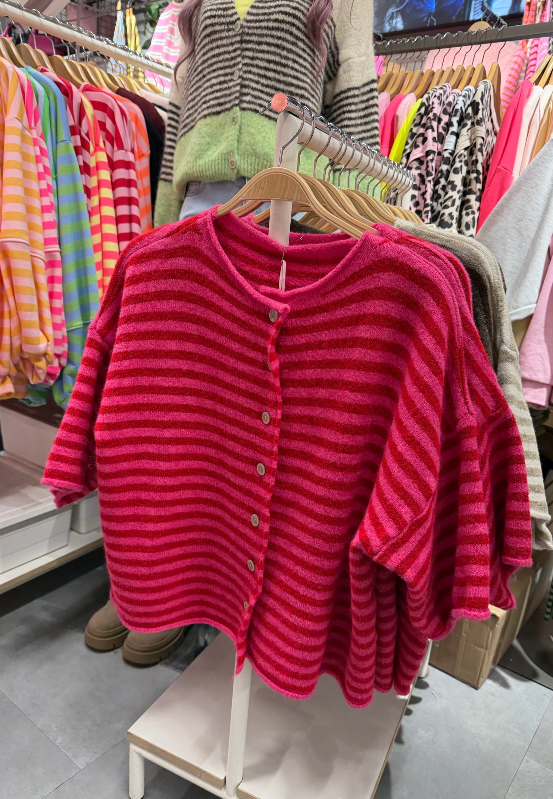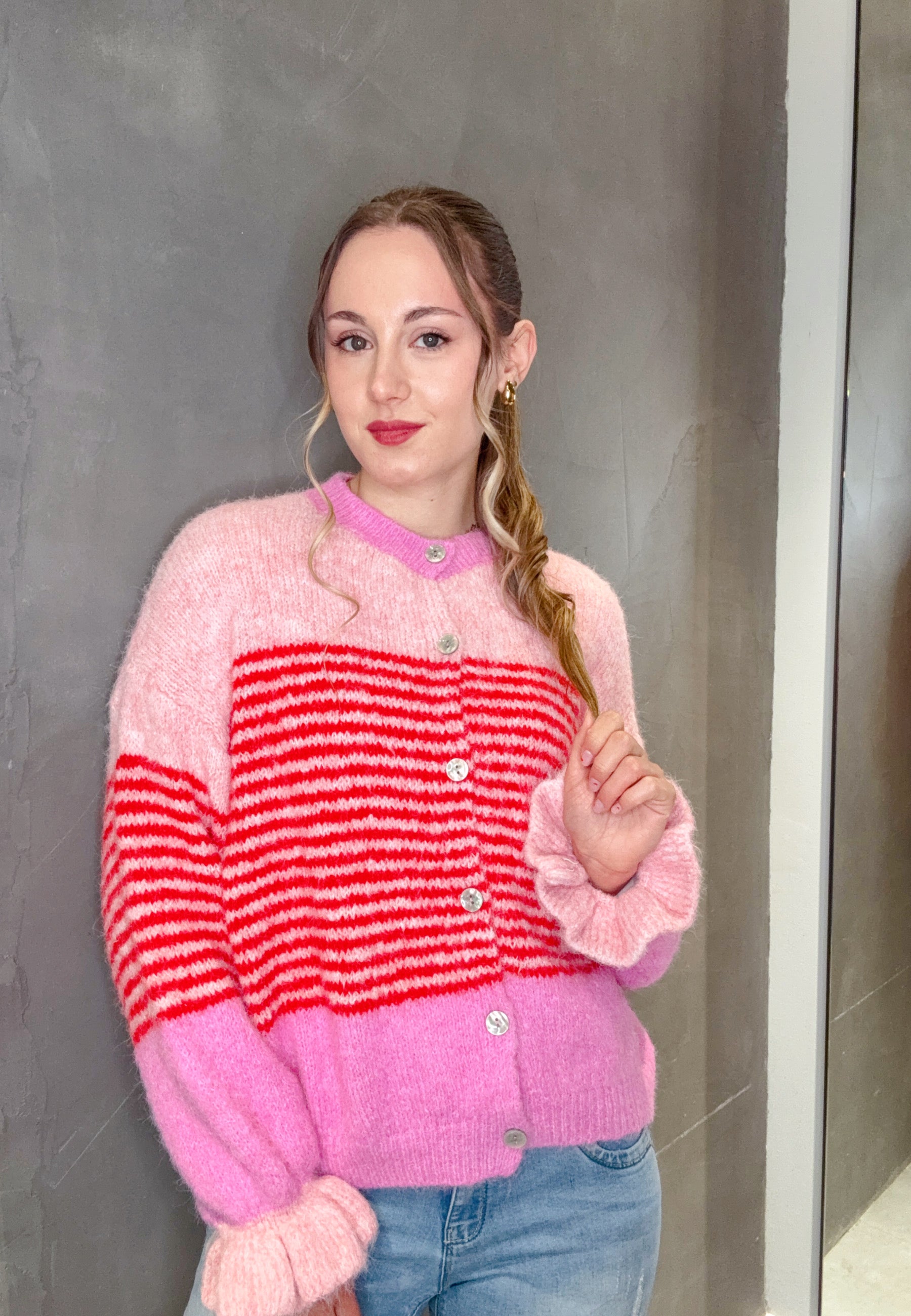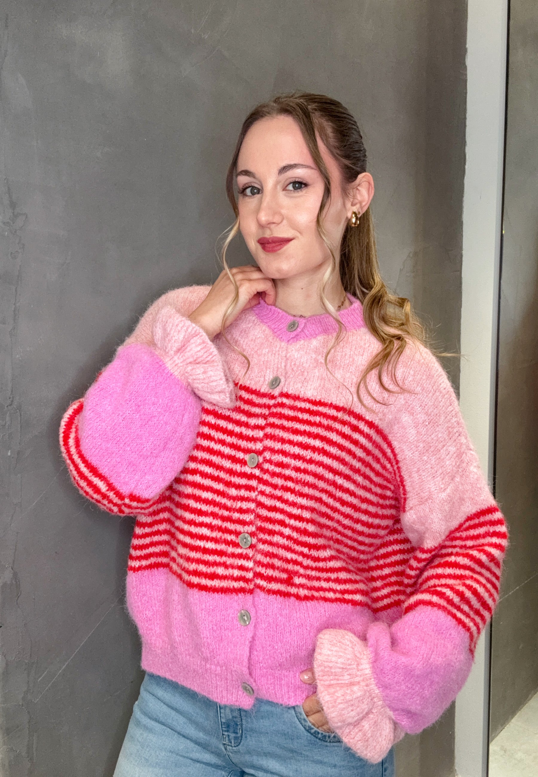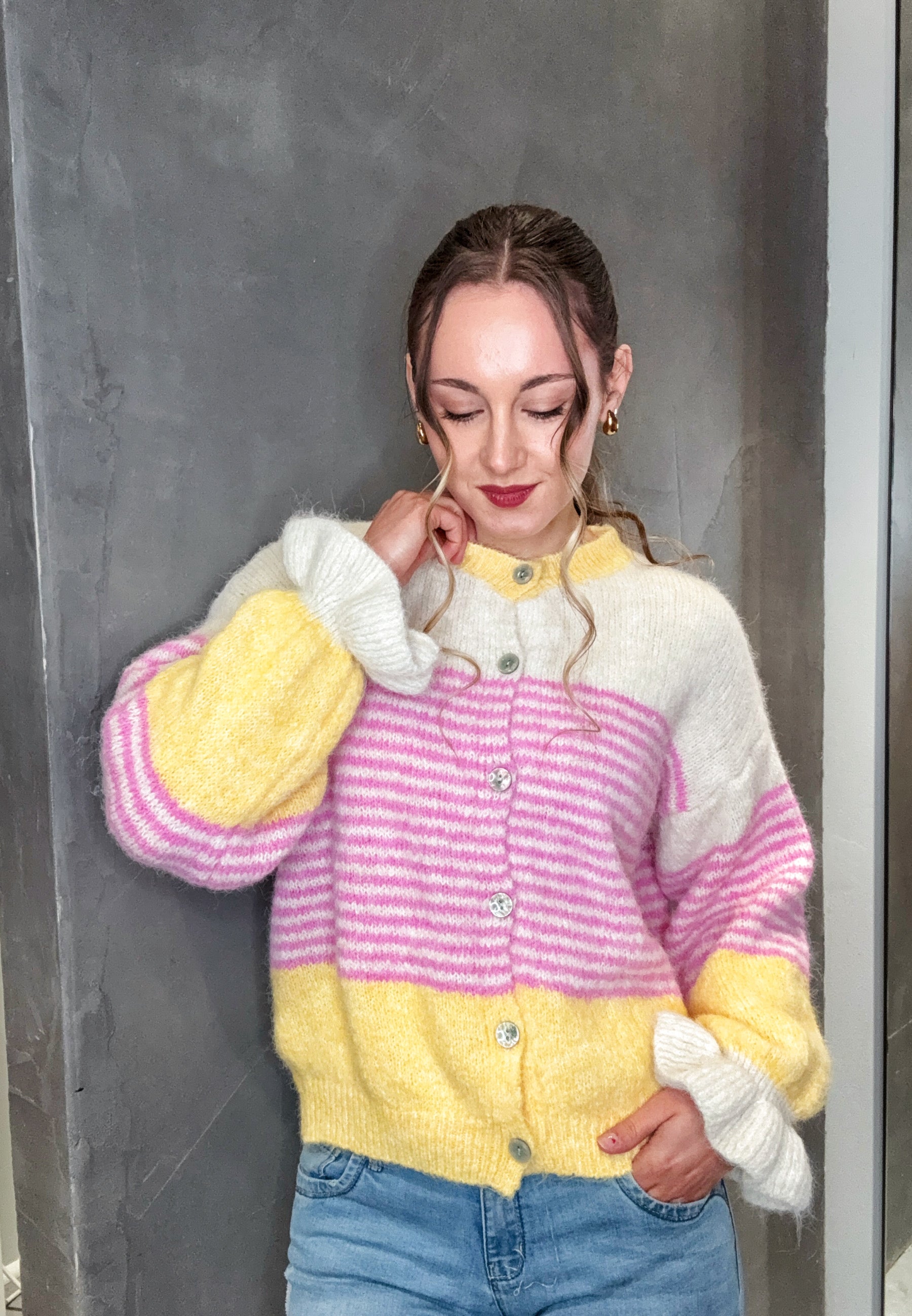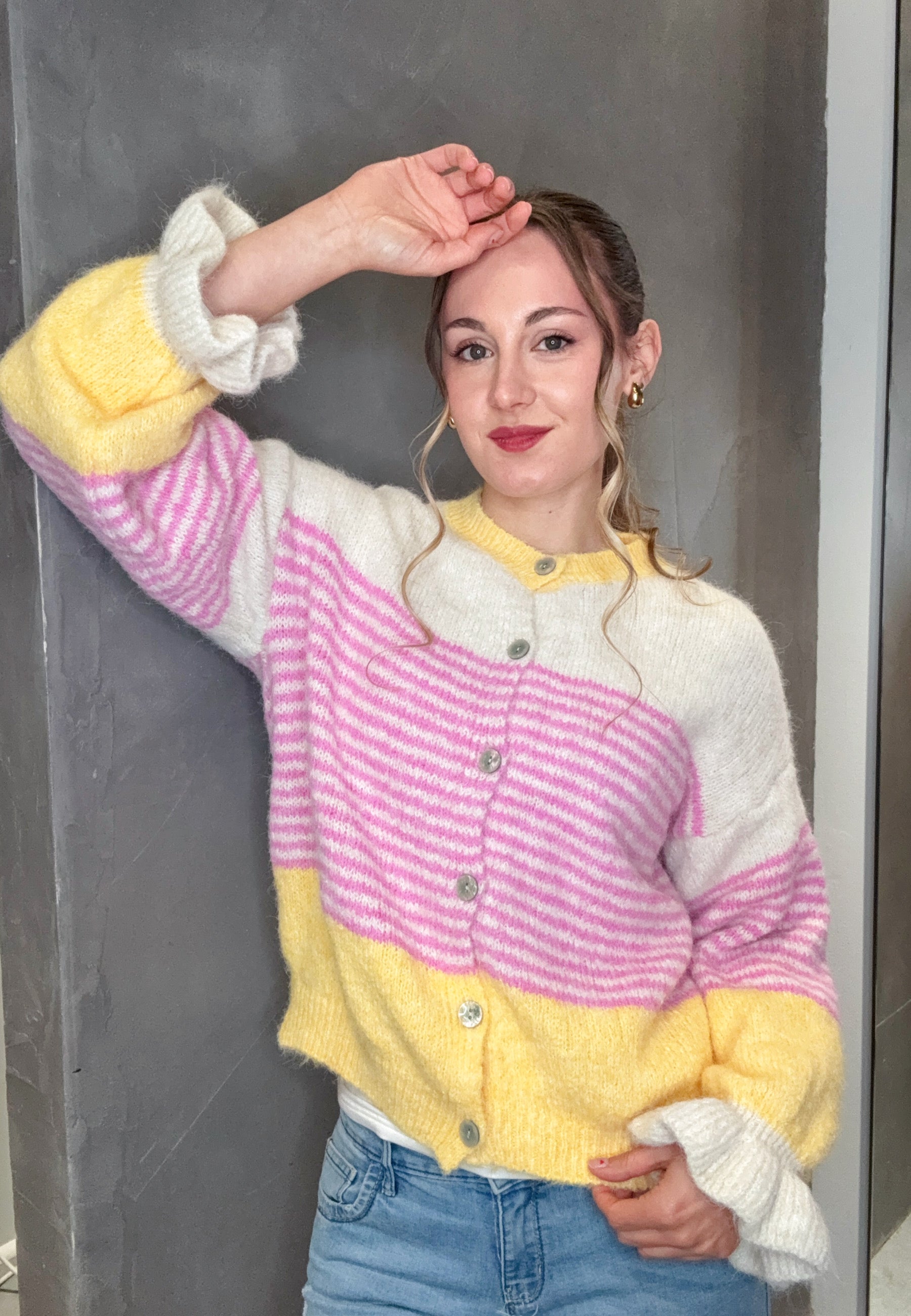 Strickjacke mit Streifen und Knopfleiste