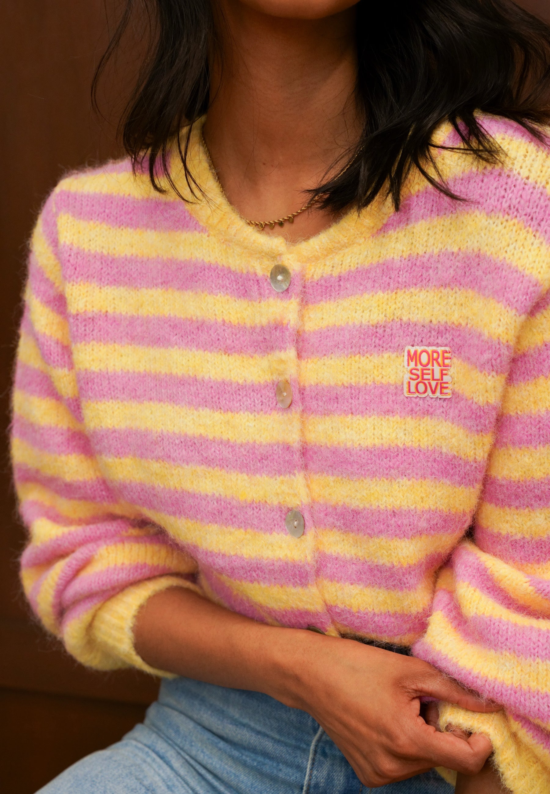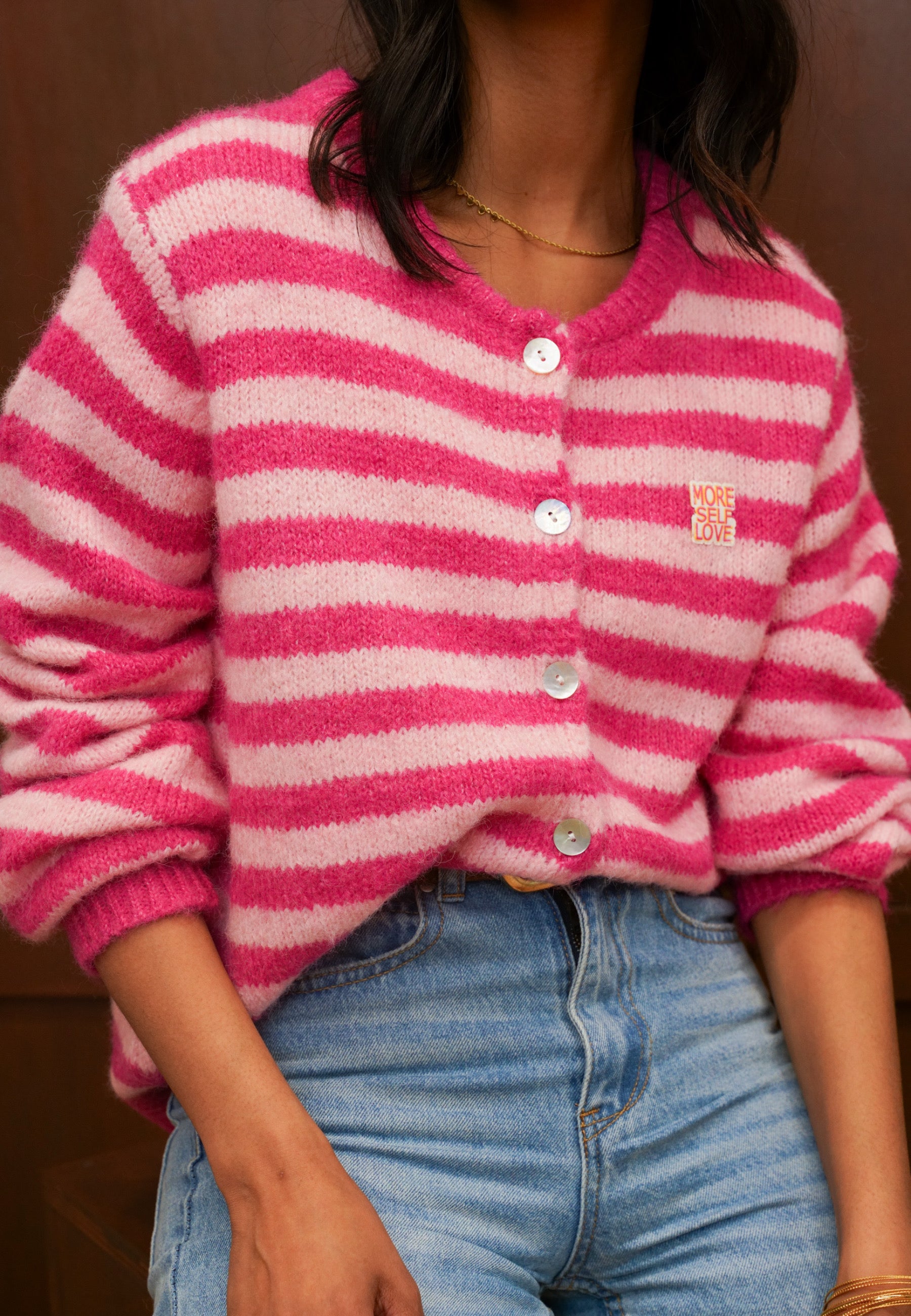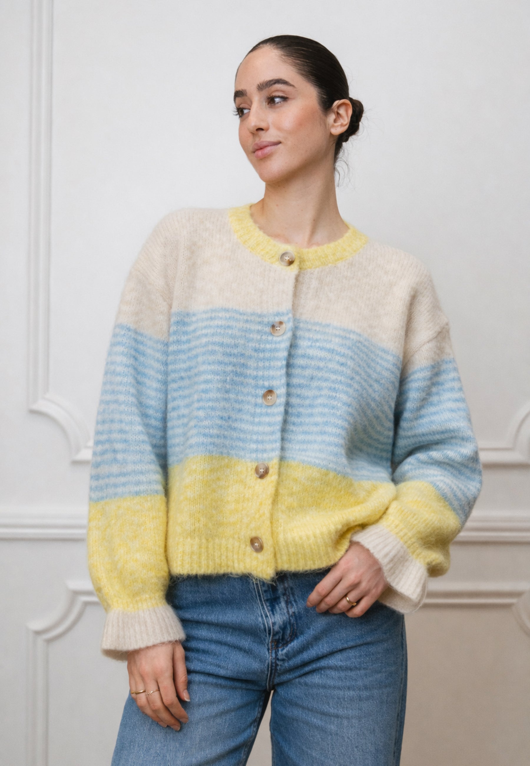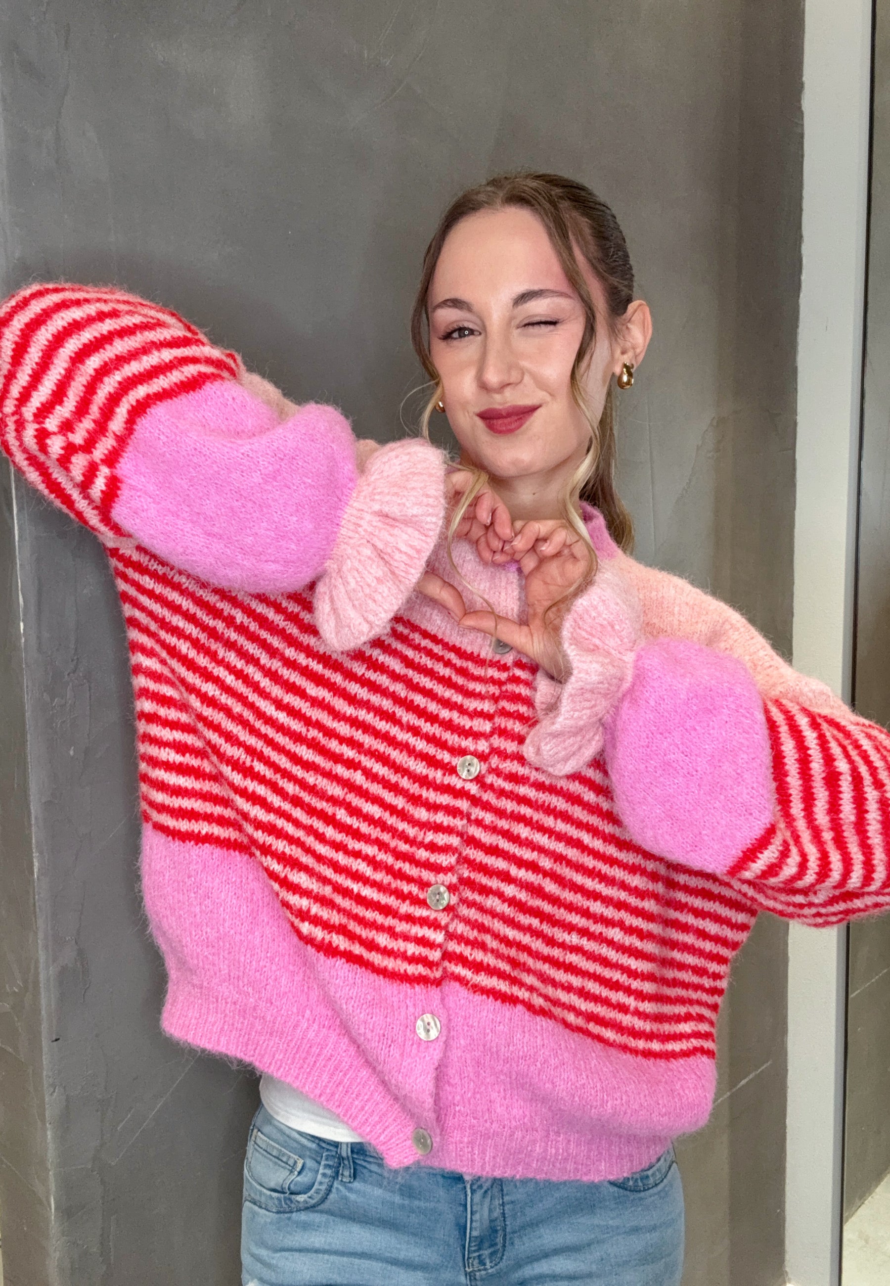 Strickjacke mit Streifen und Knopfleiste