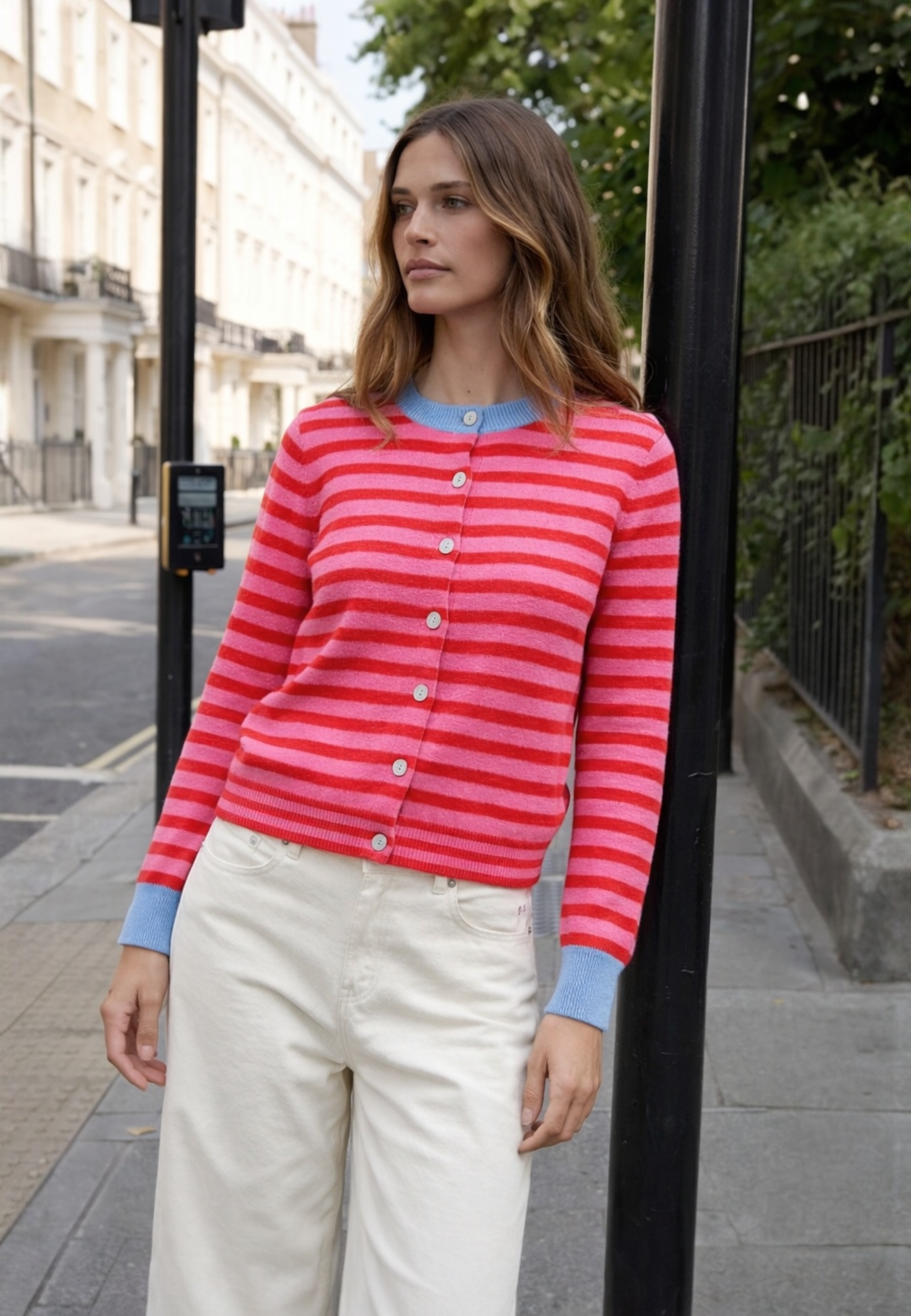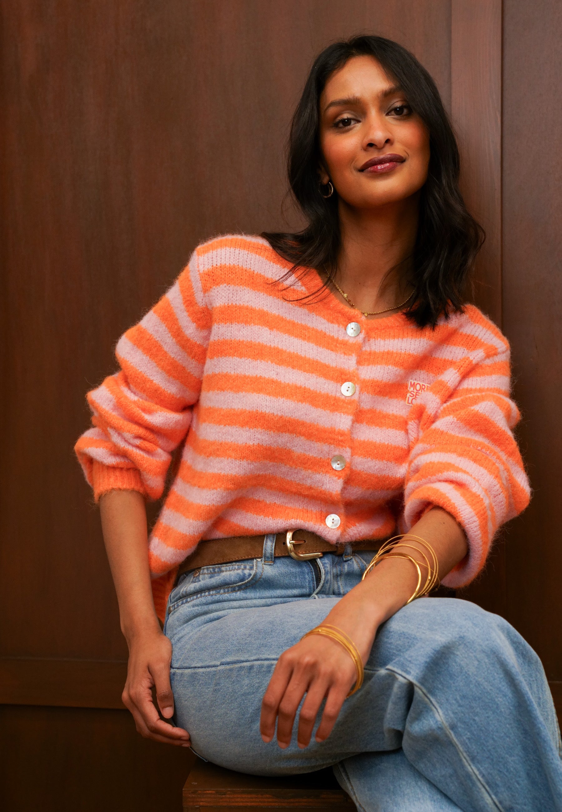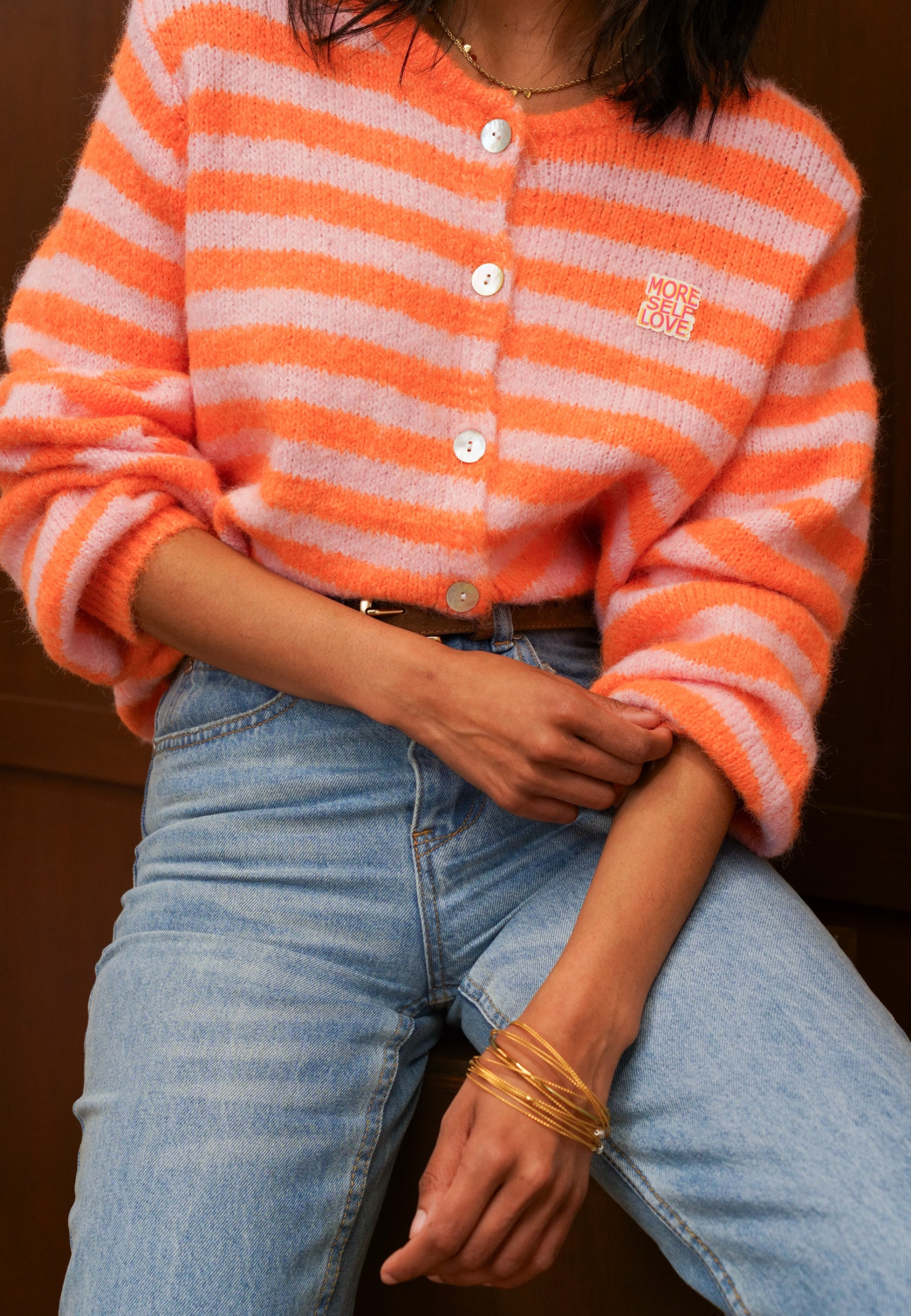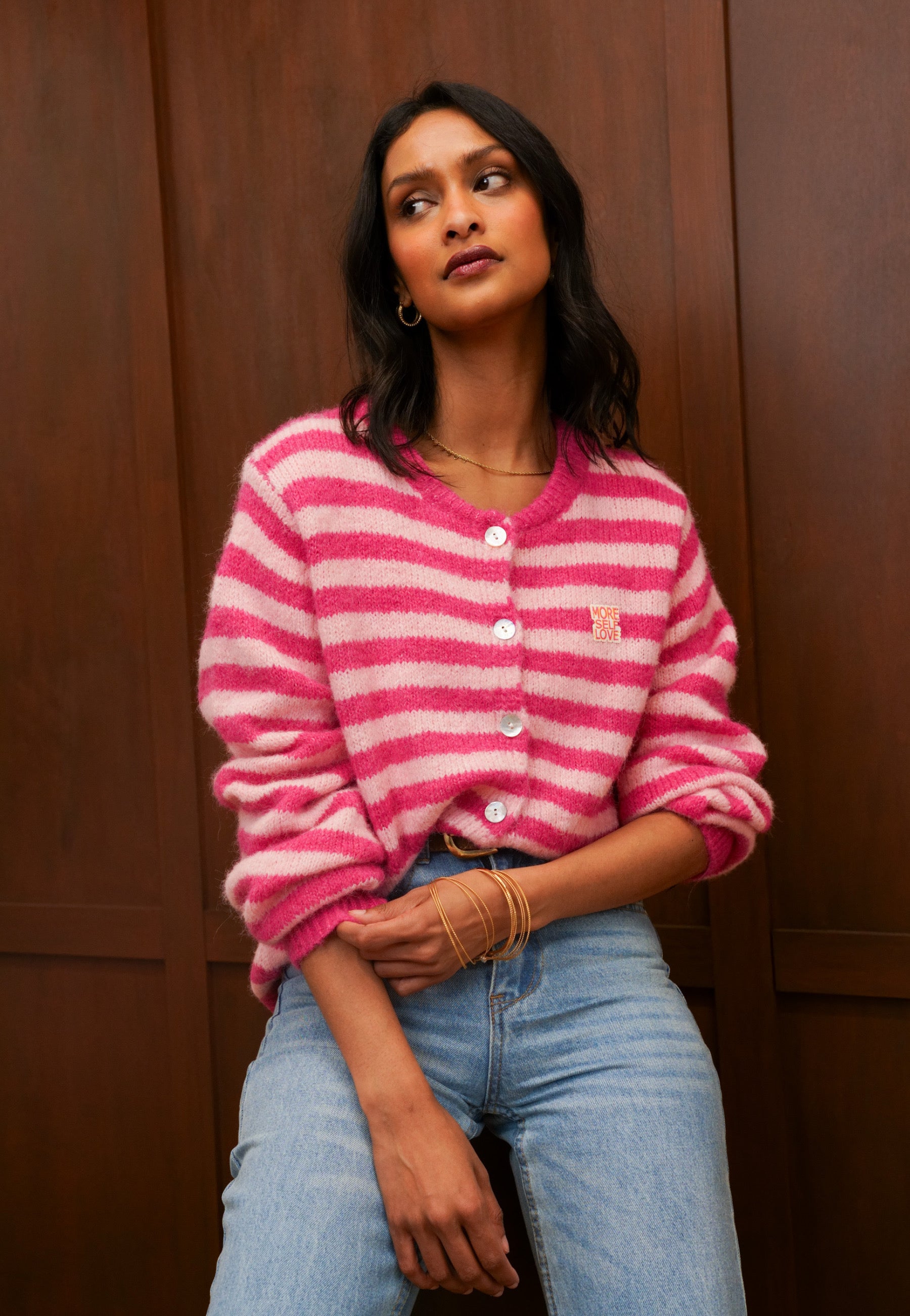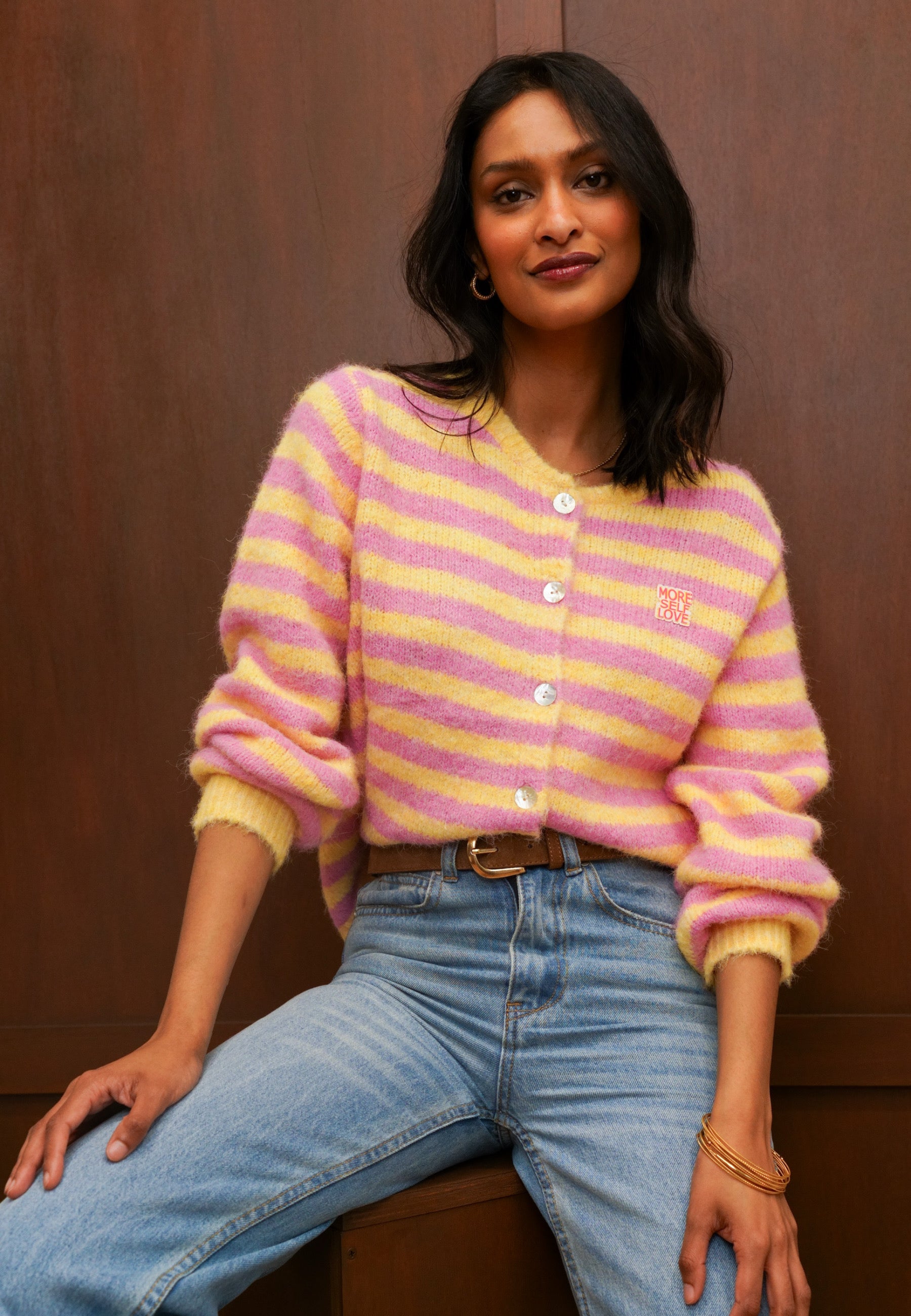 Strickjacke mit Streifen und Knopfleiste