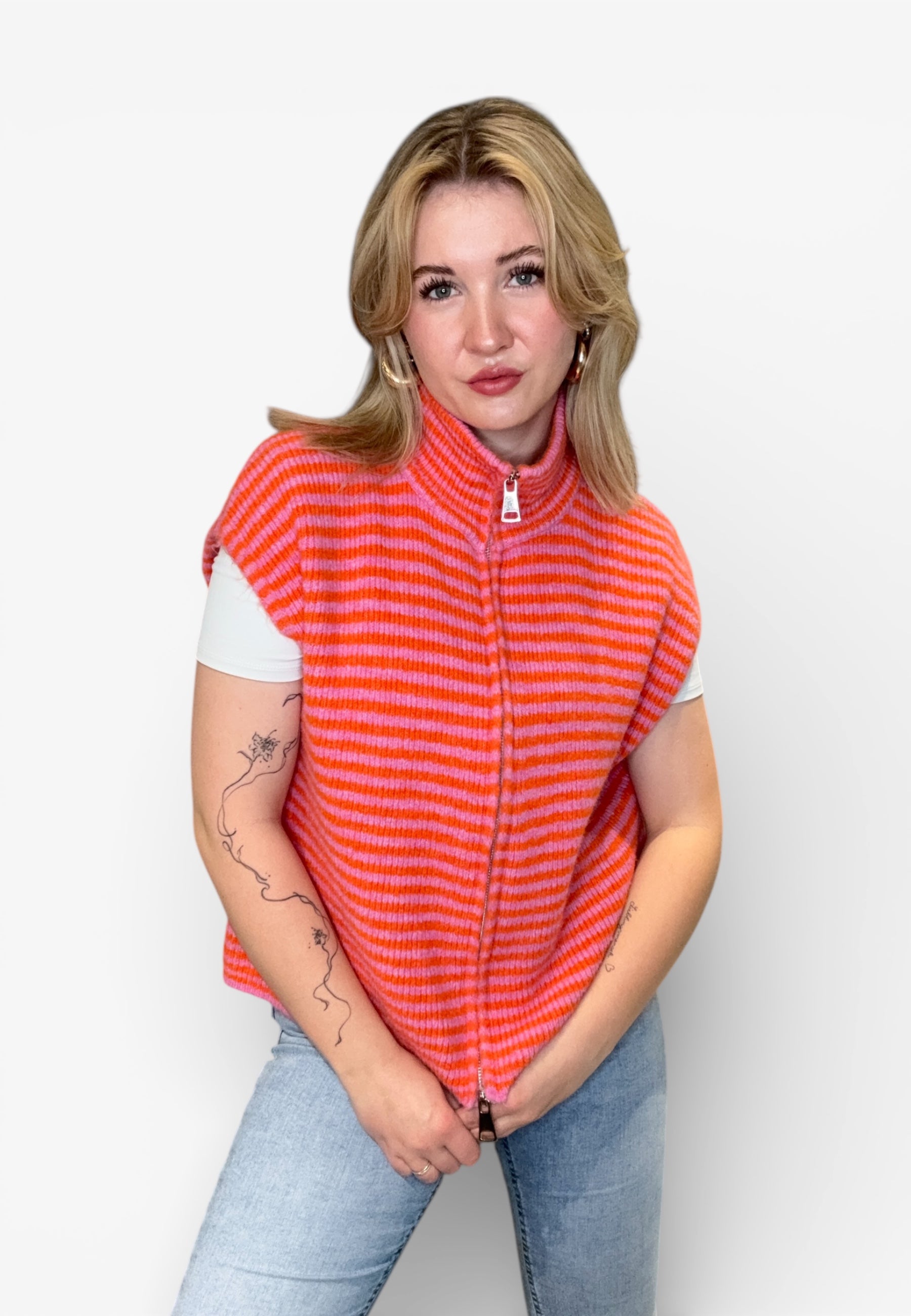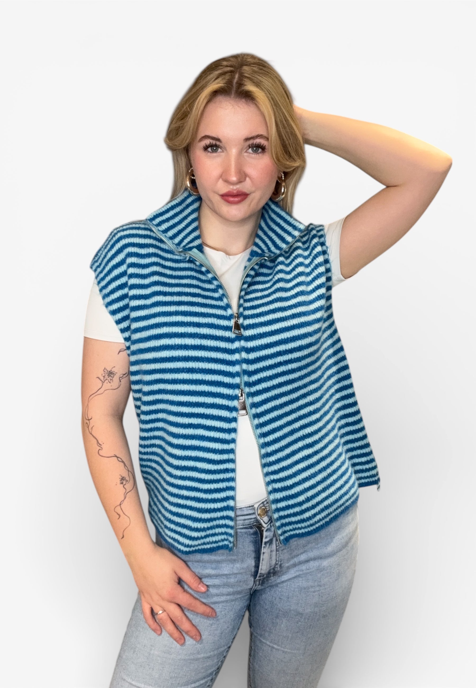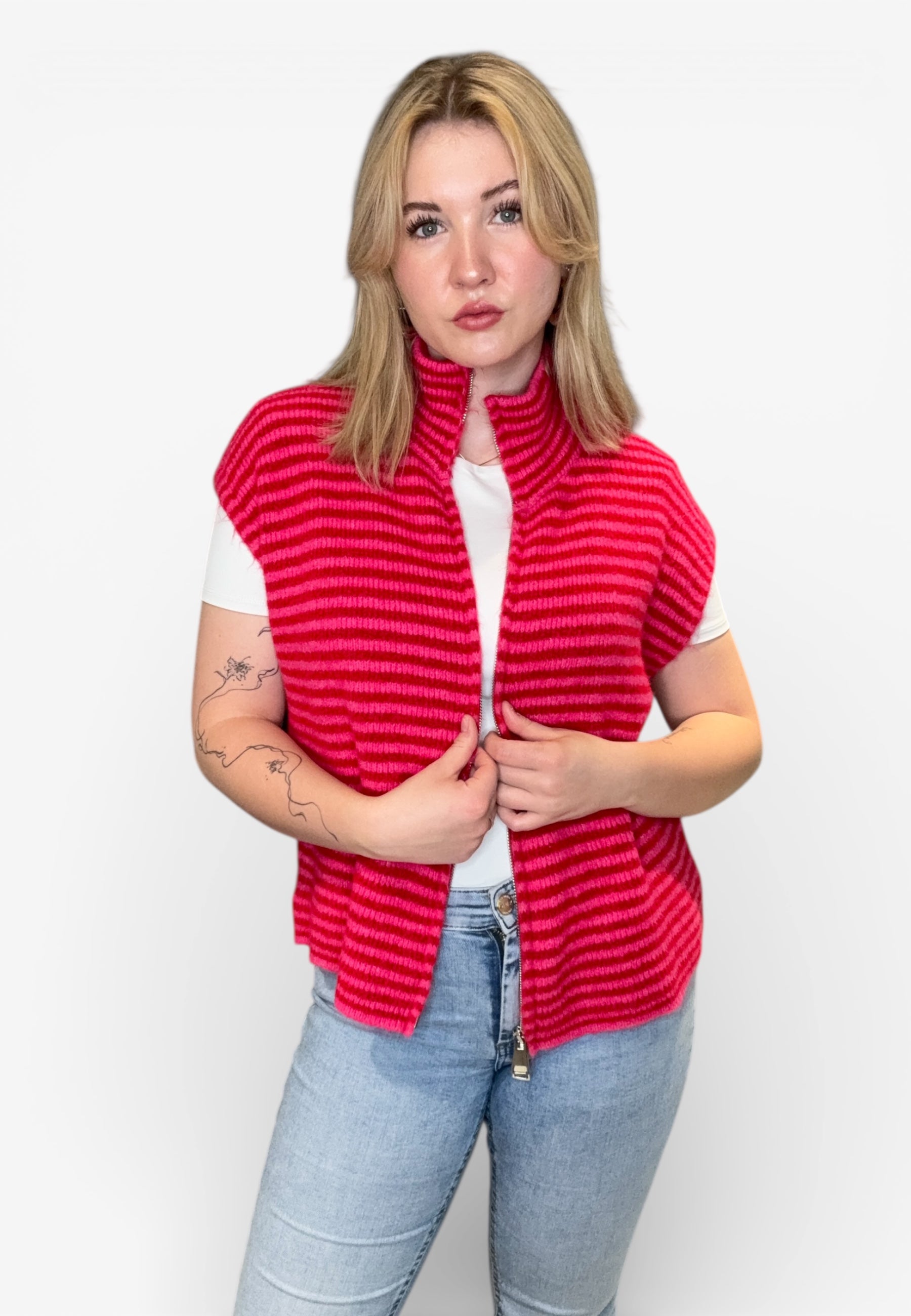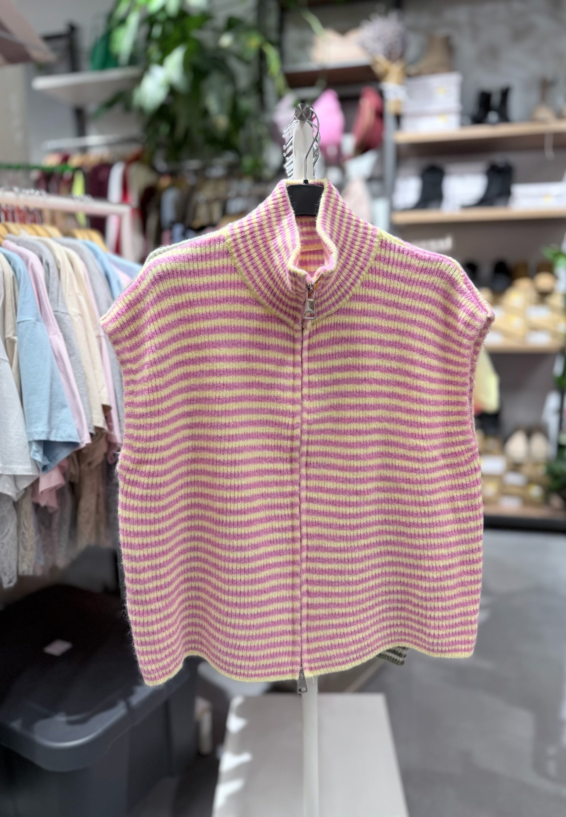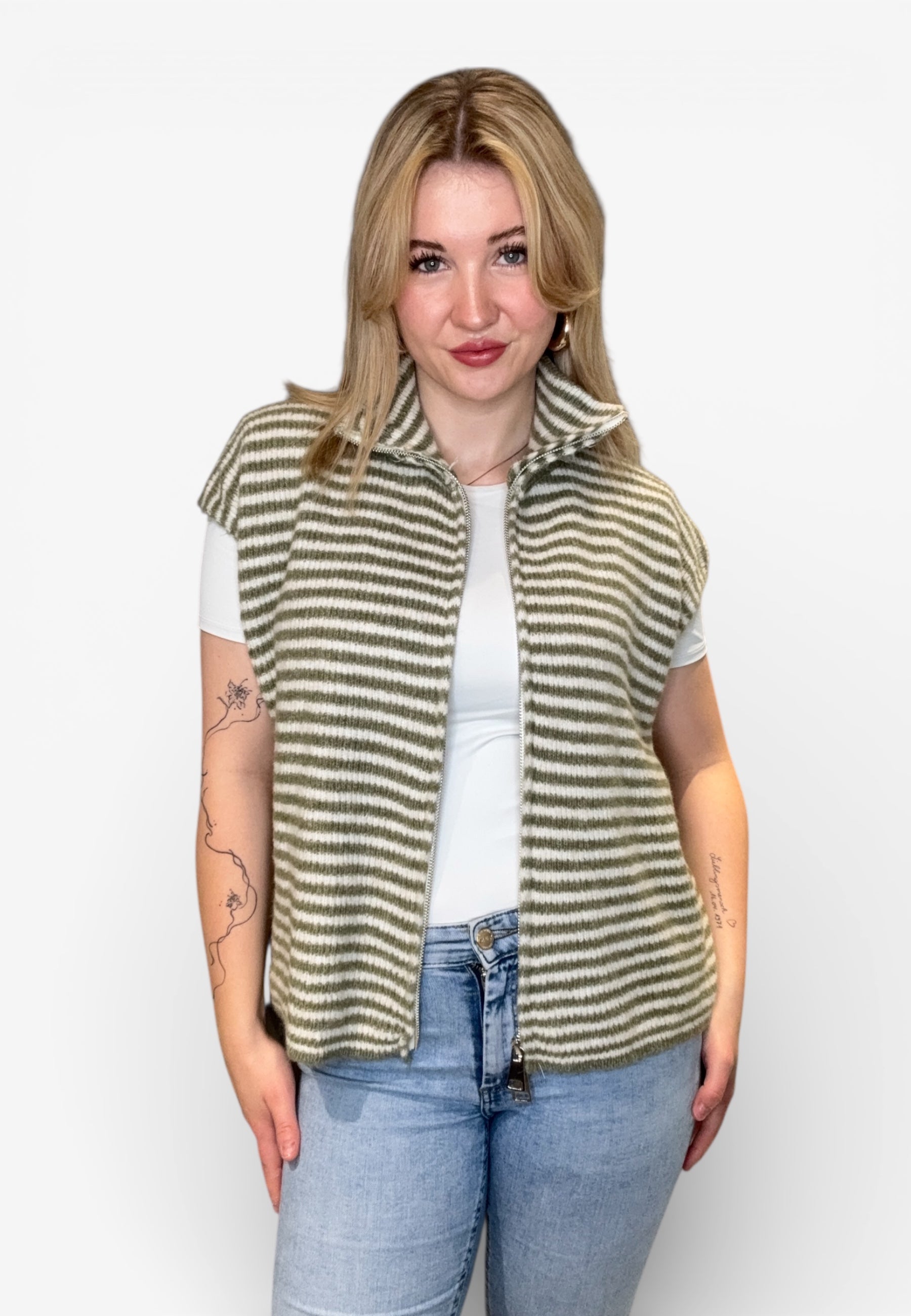 Striped Zipper Weste