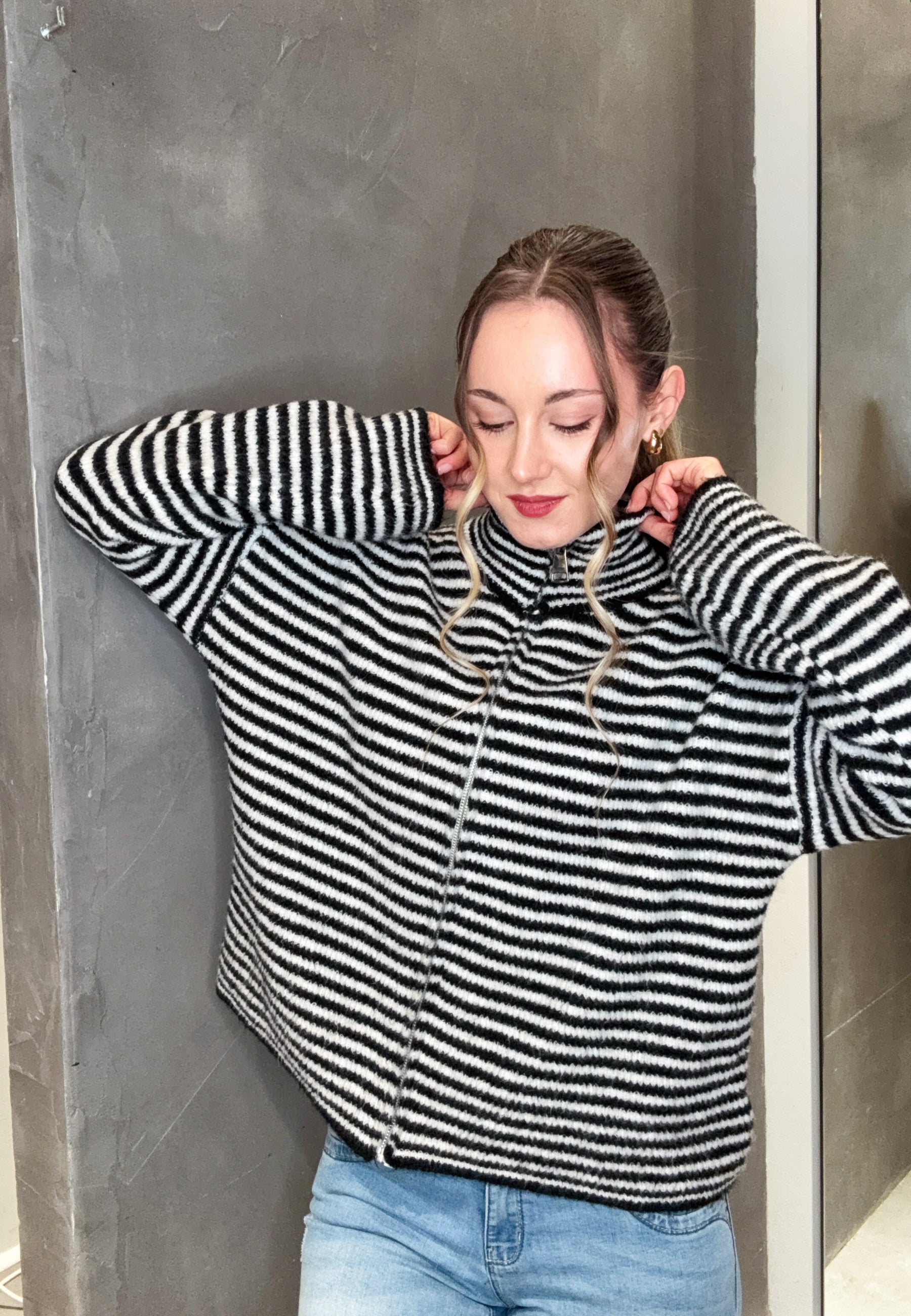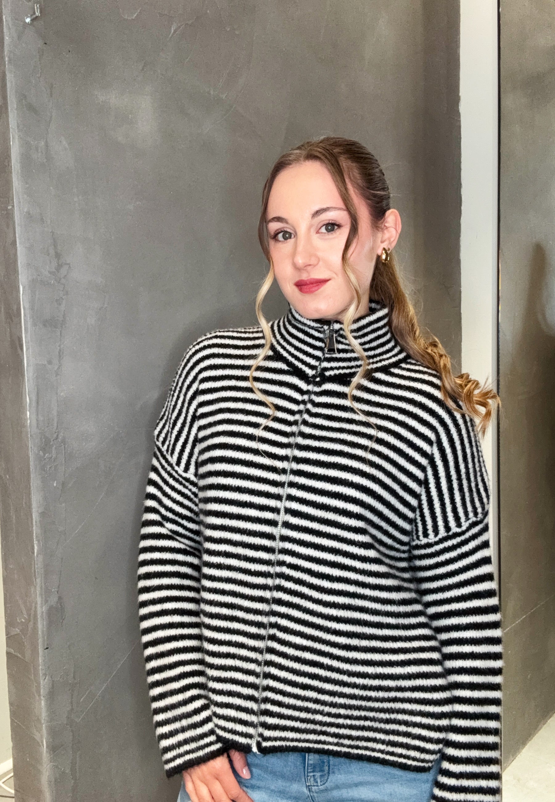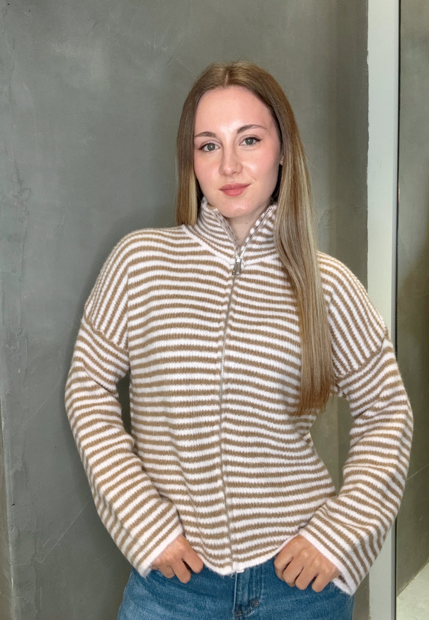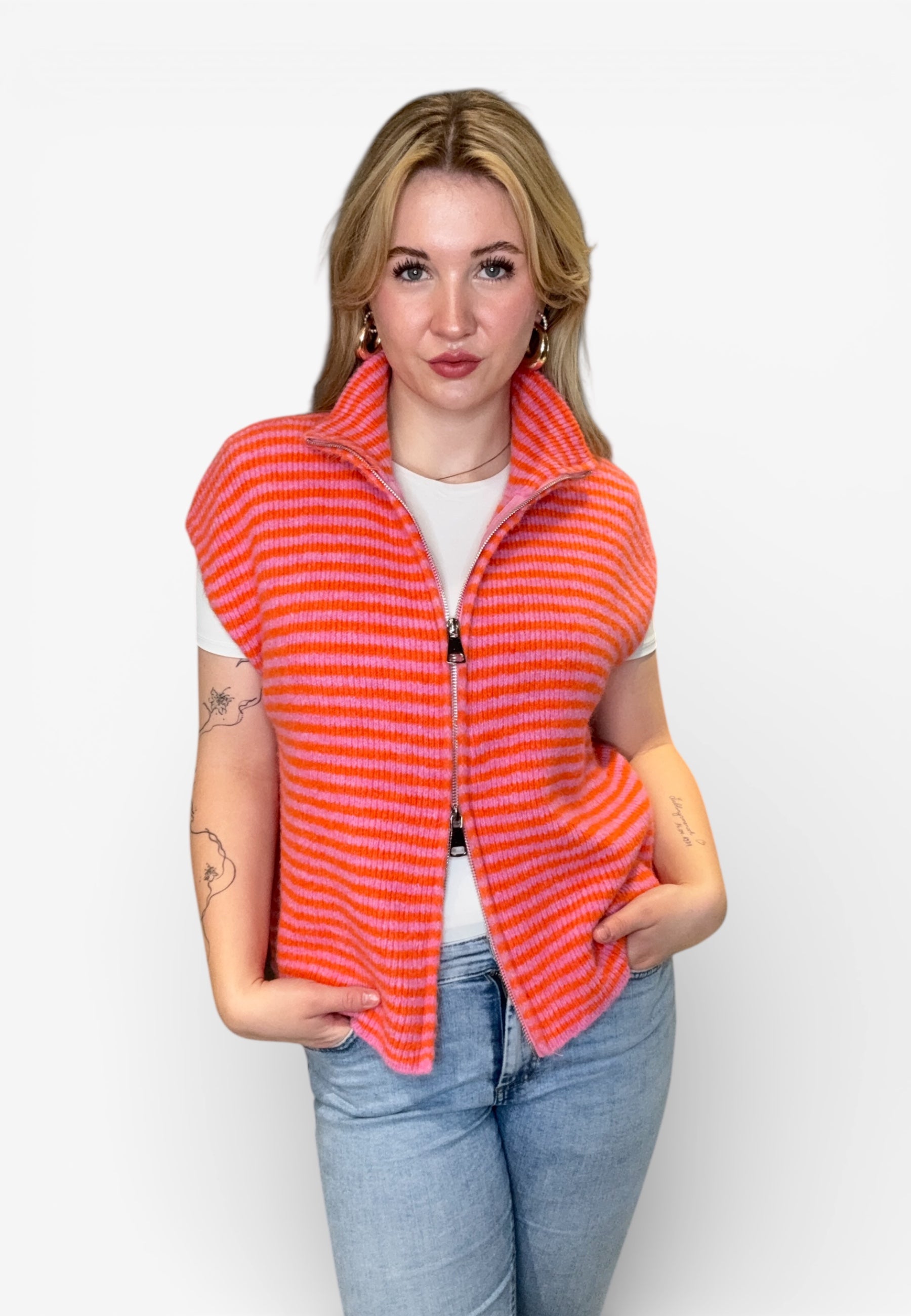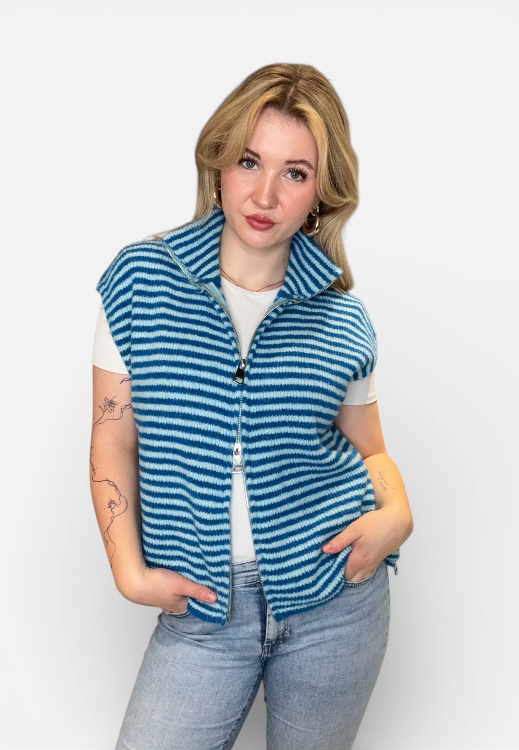 Striped Zipper Weste