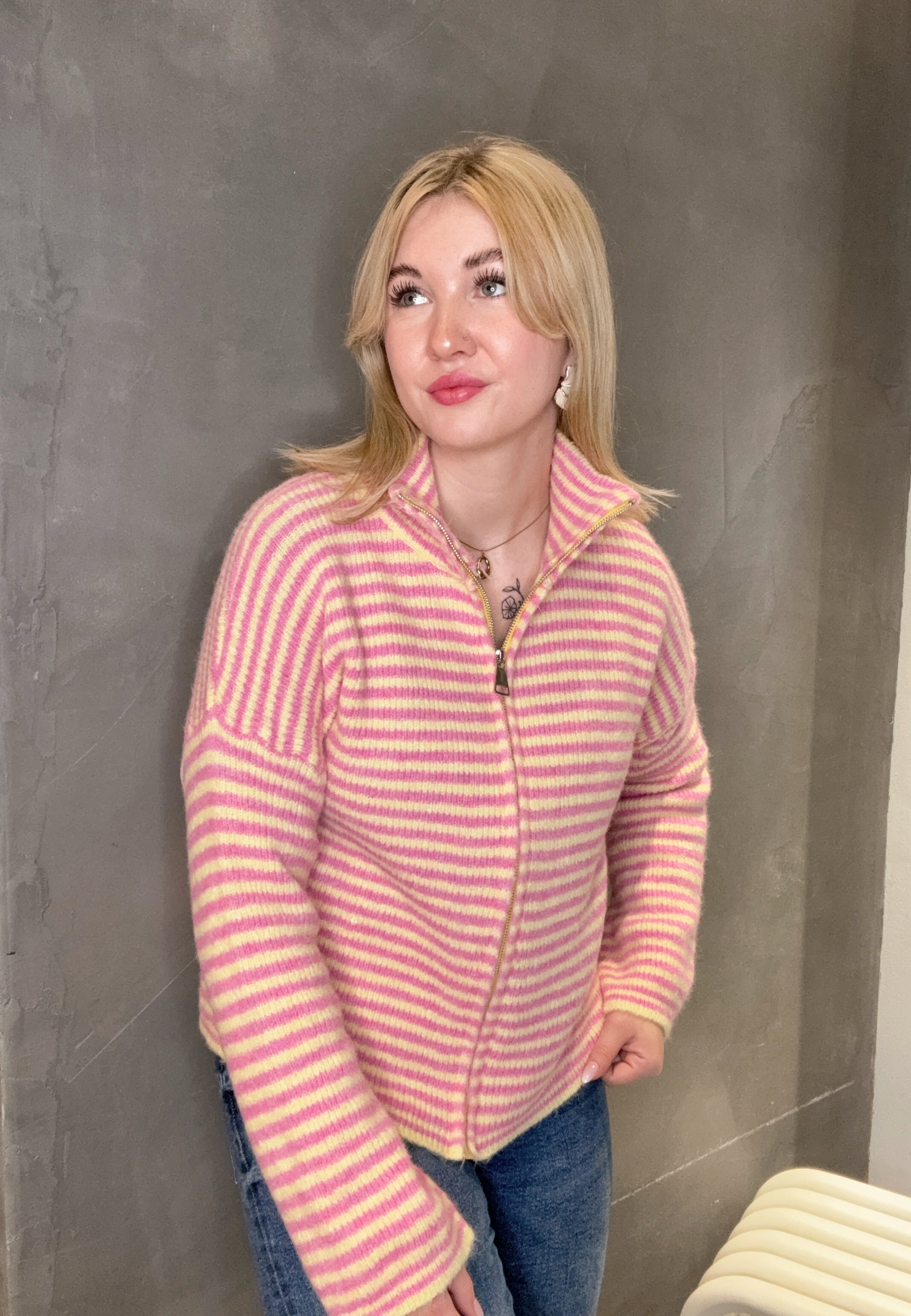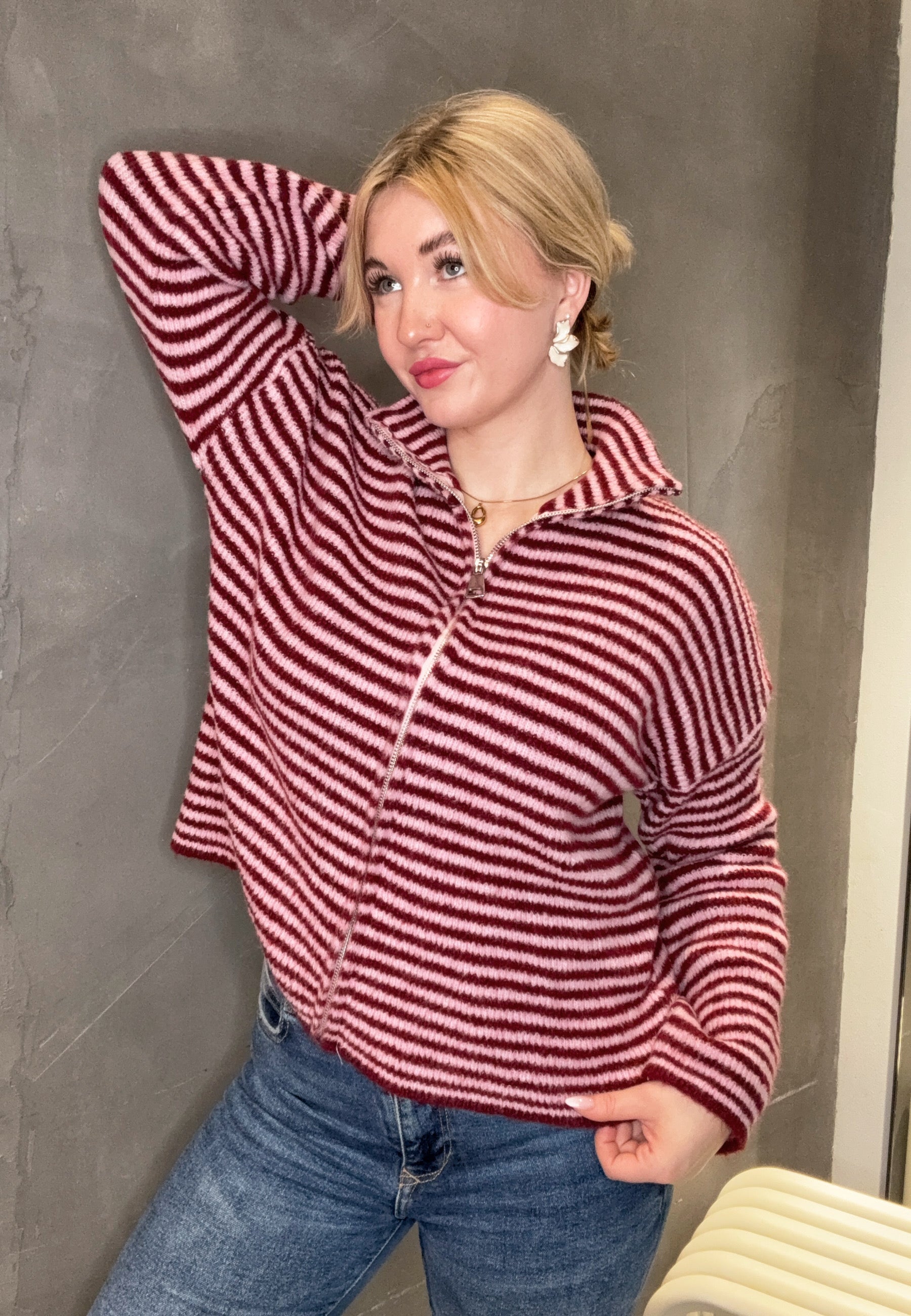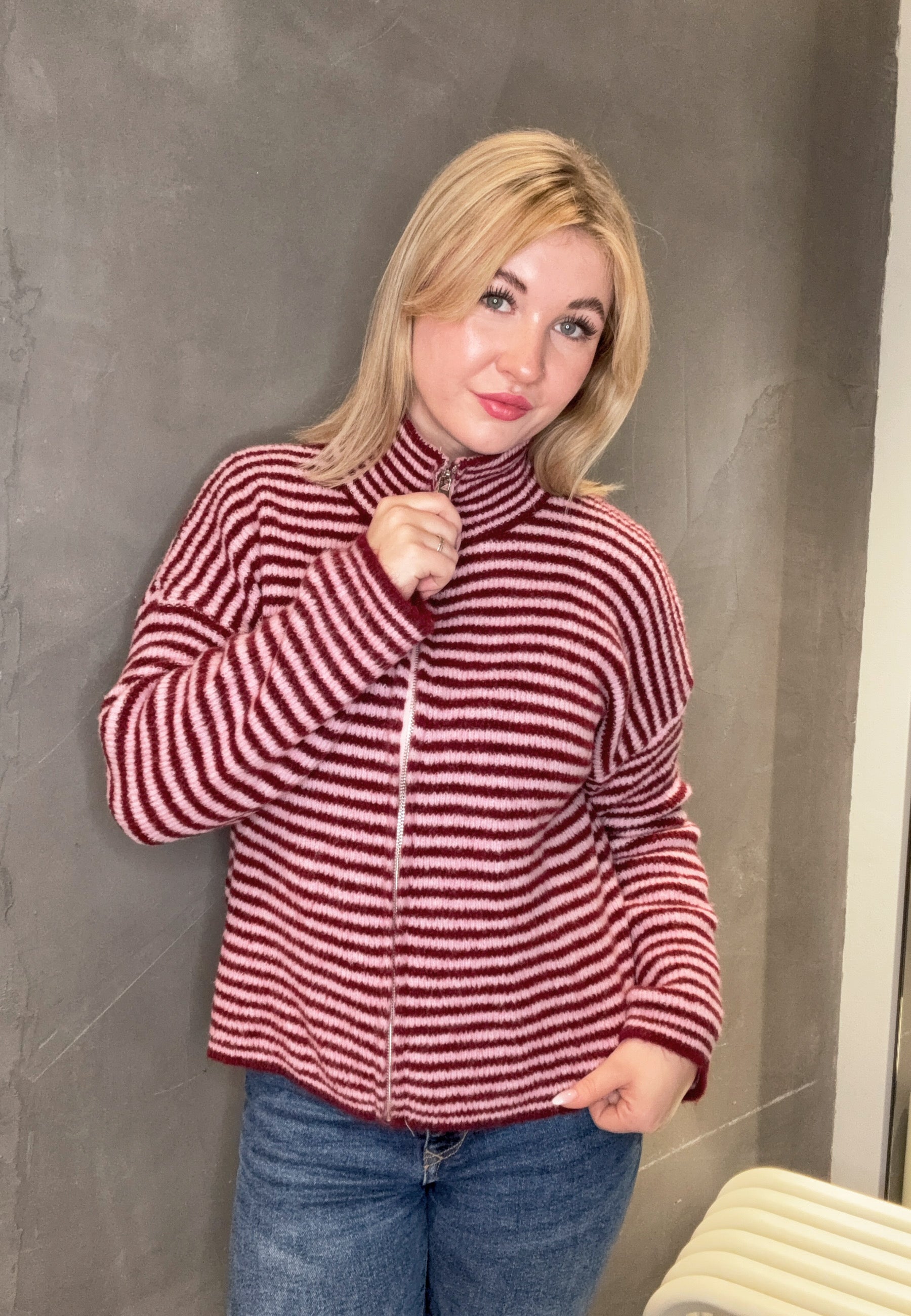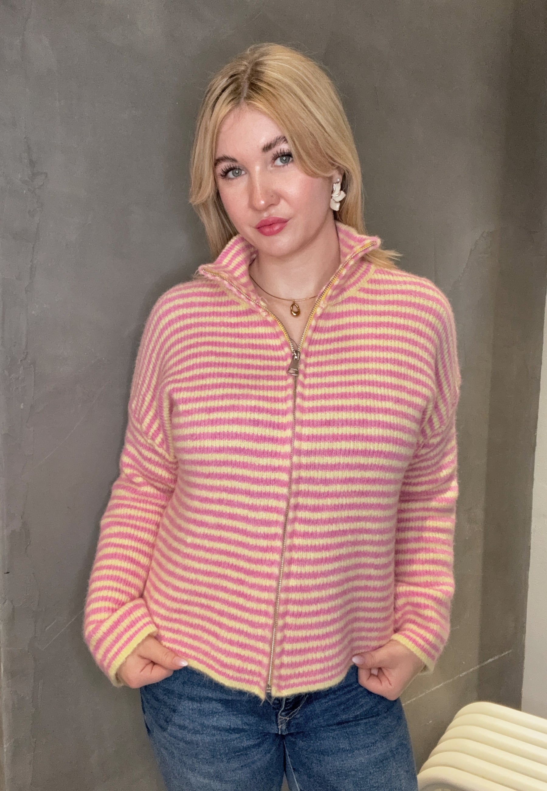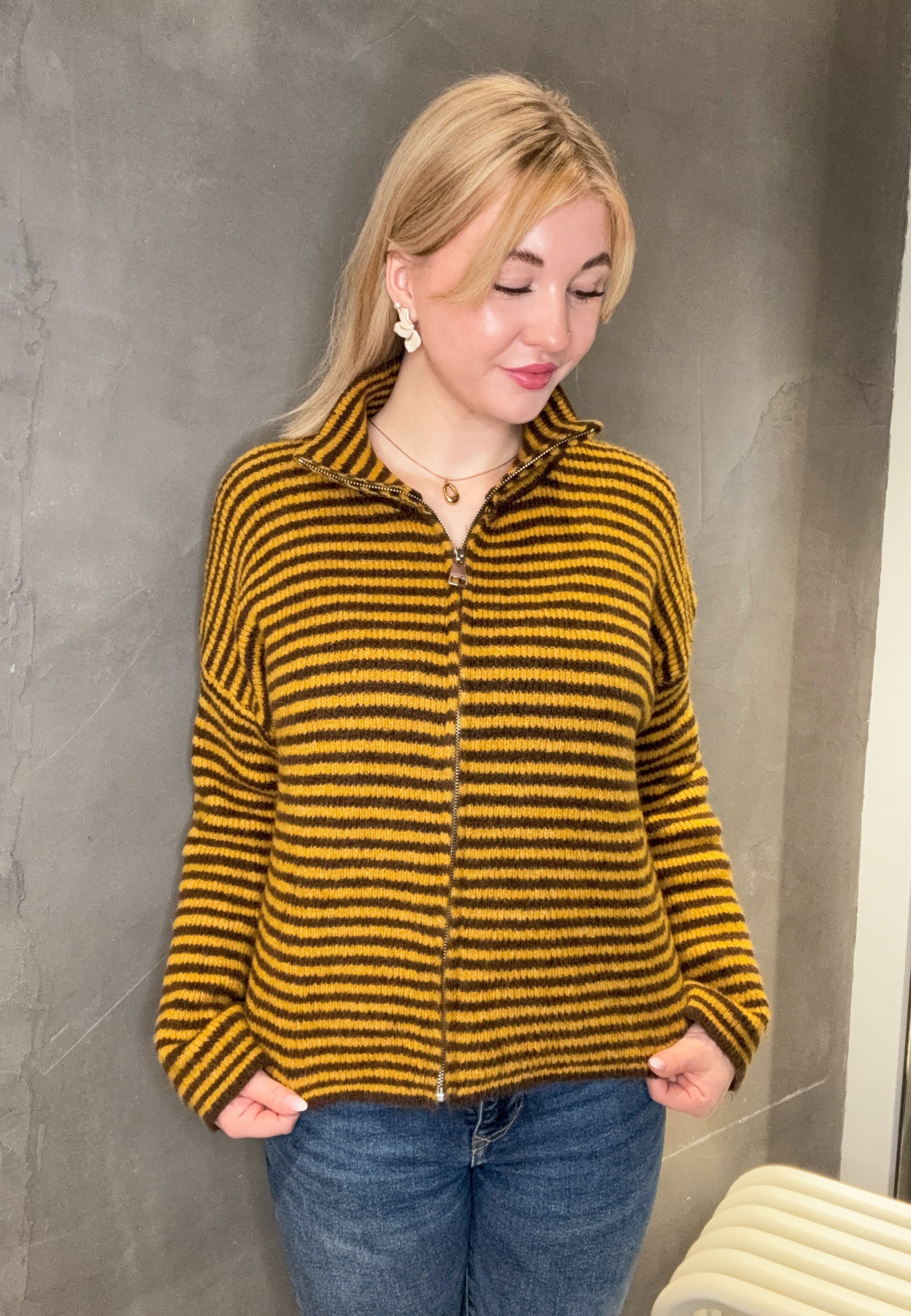 Striped Zipper Weste