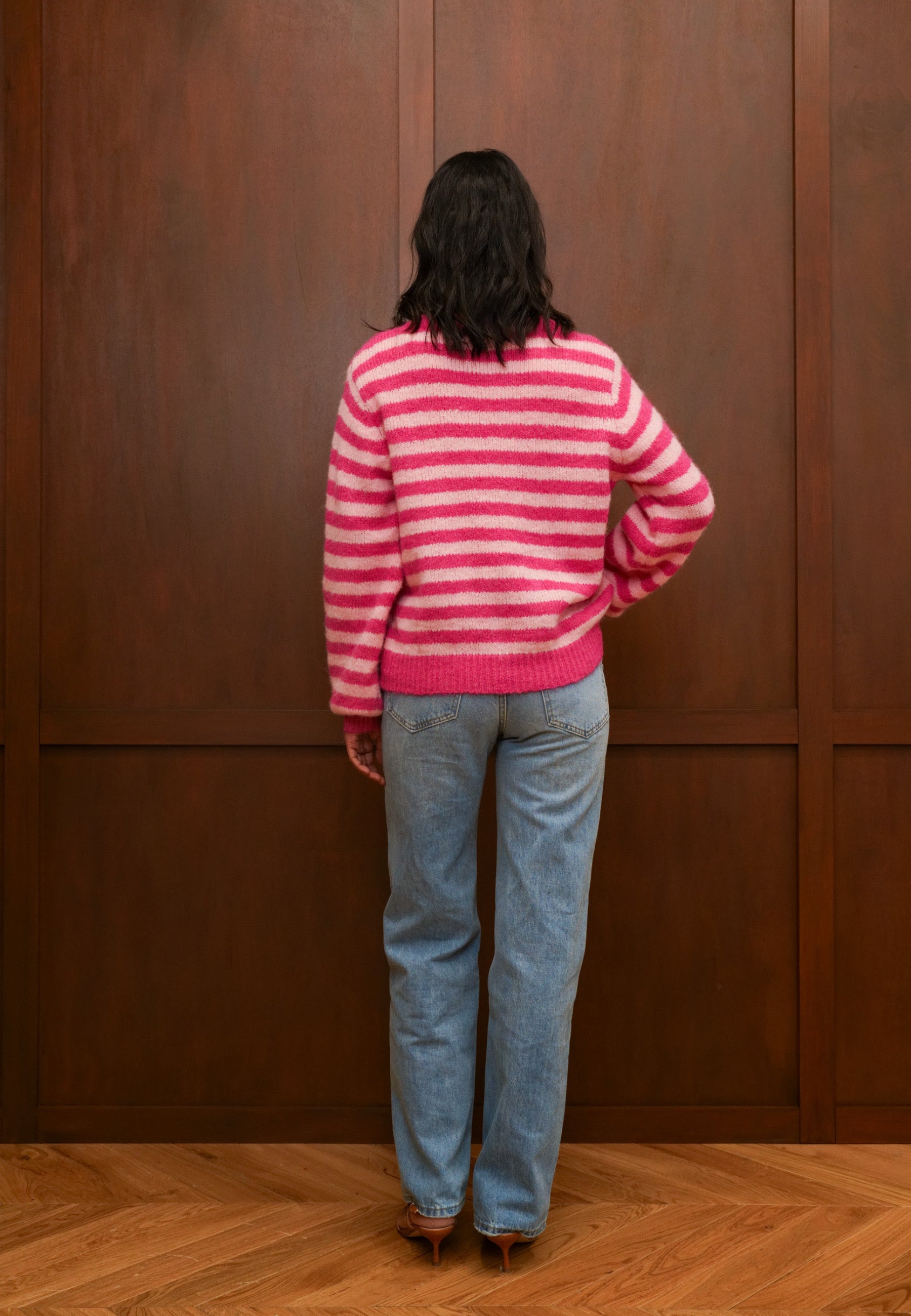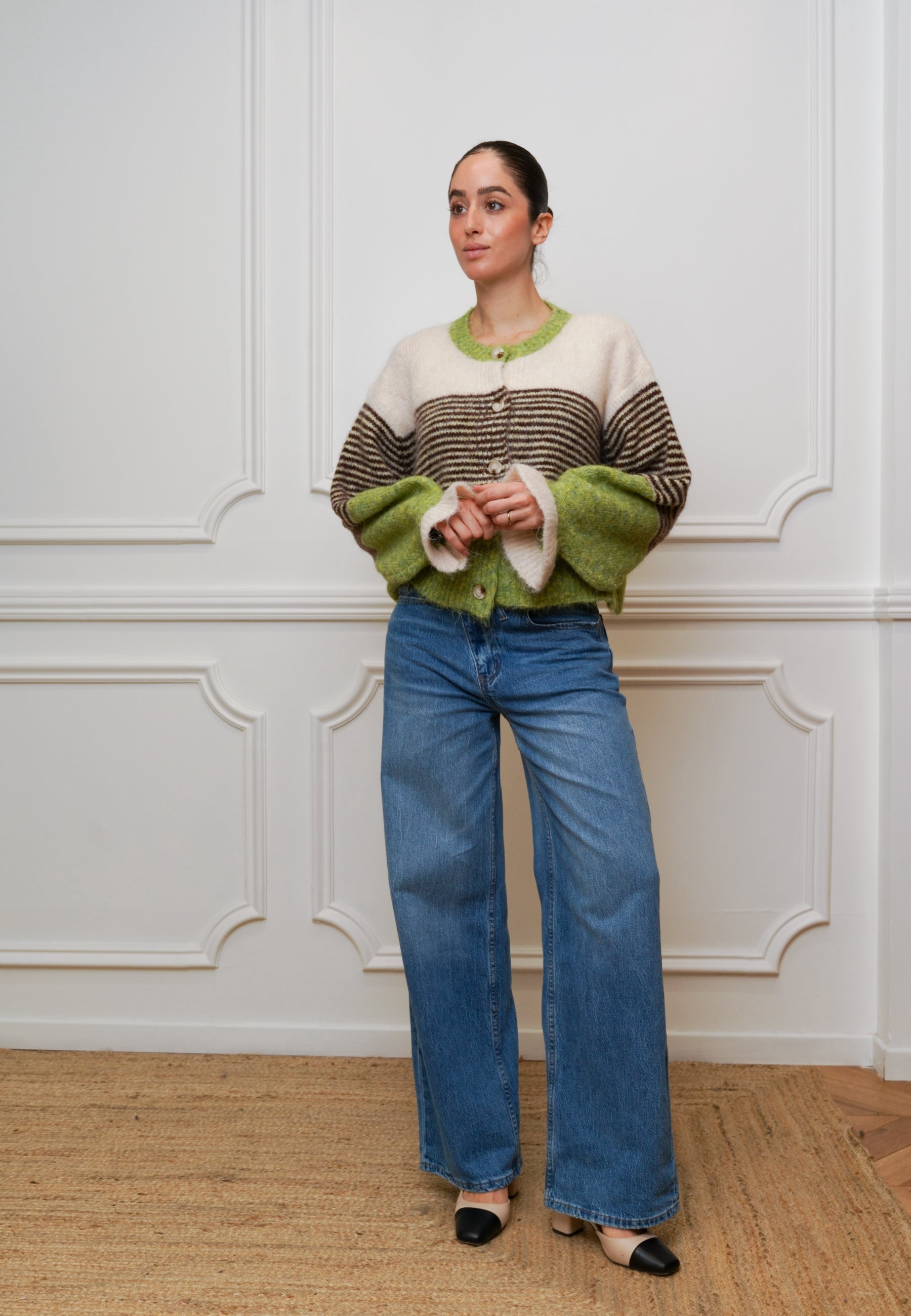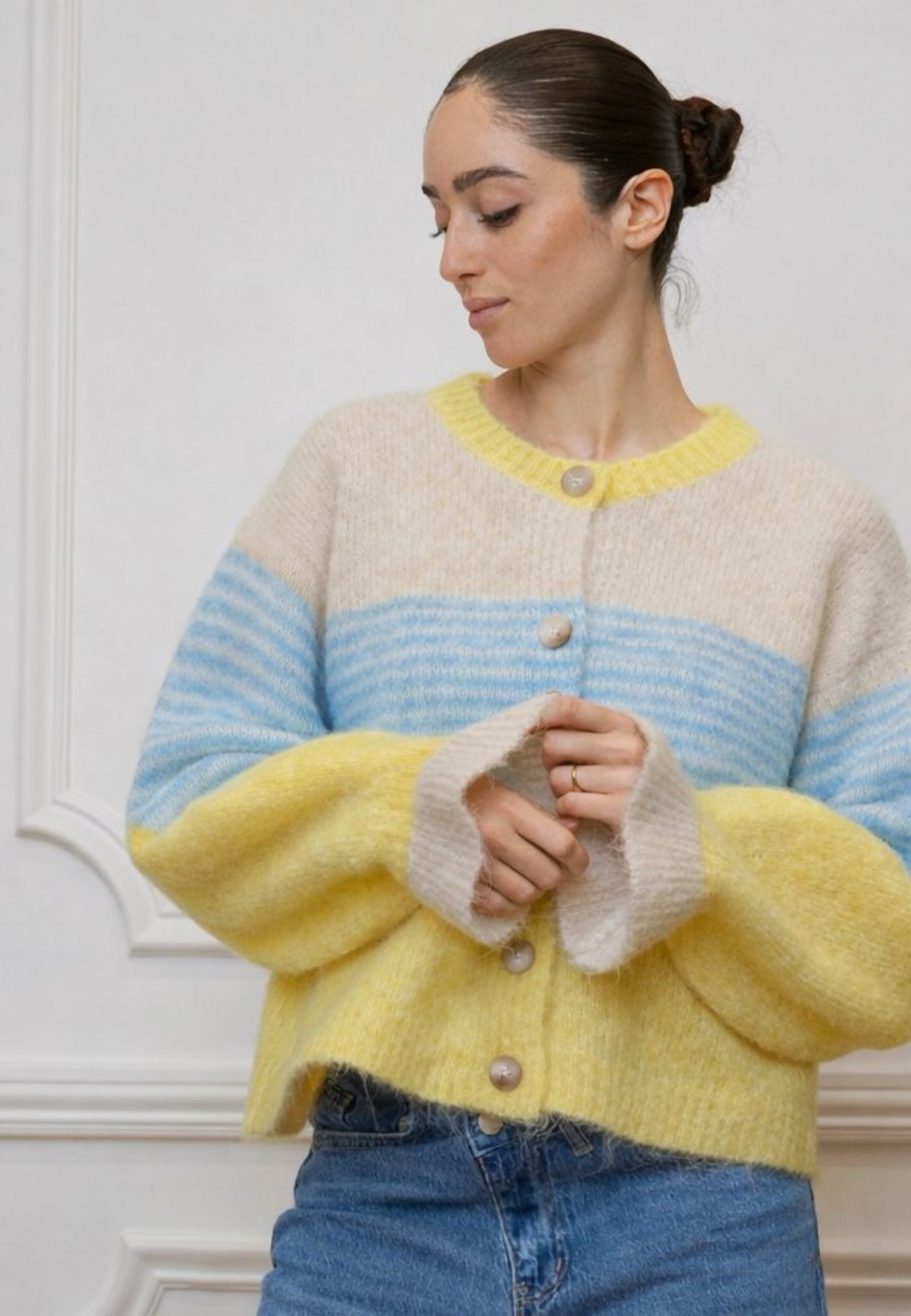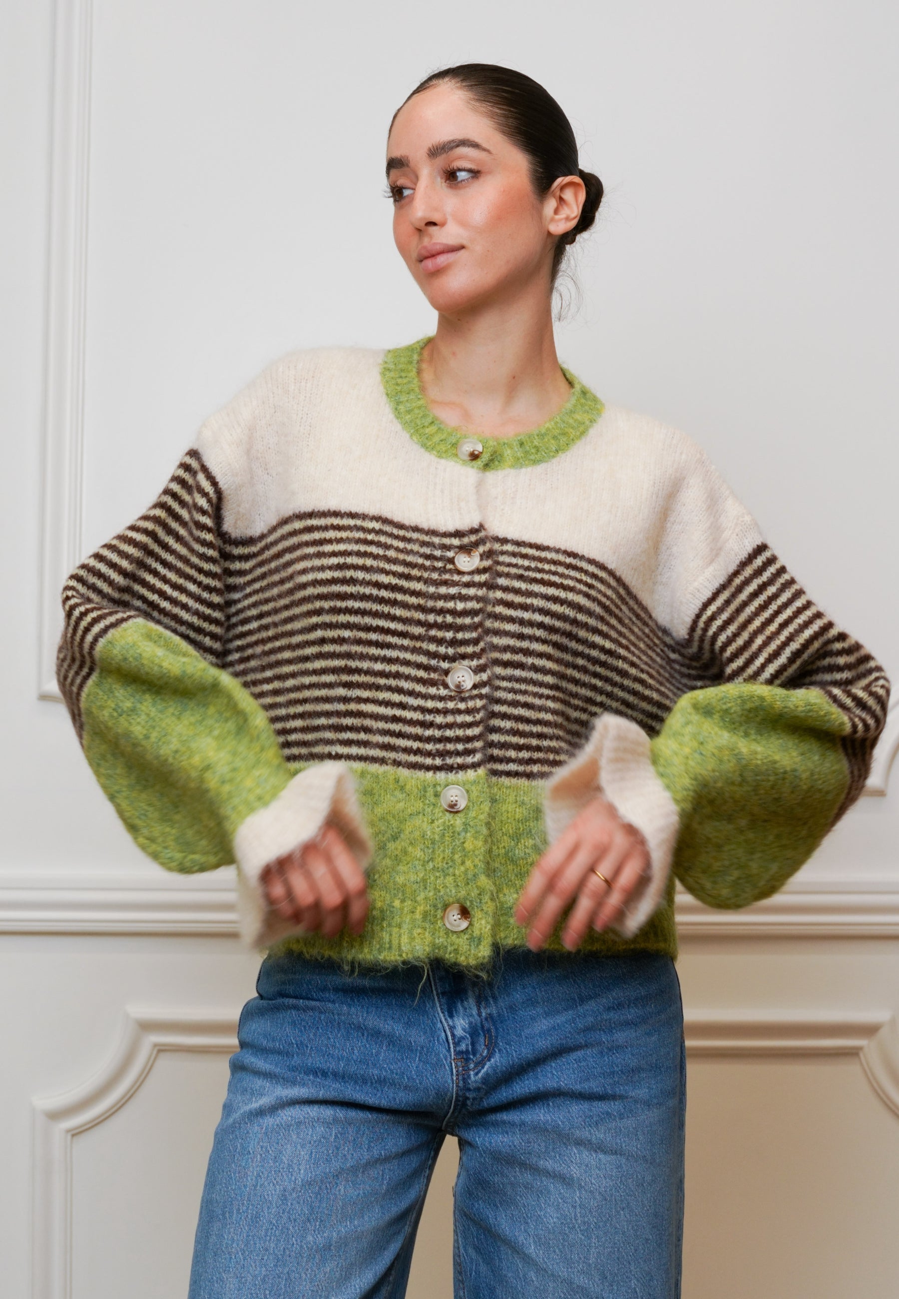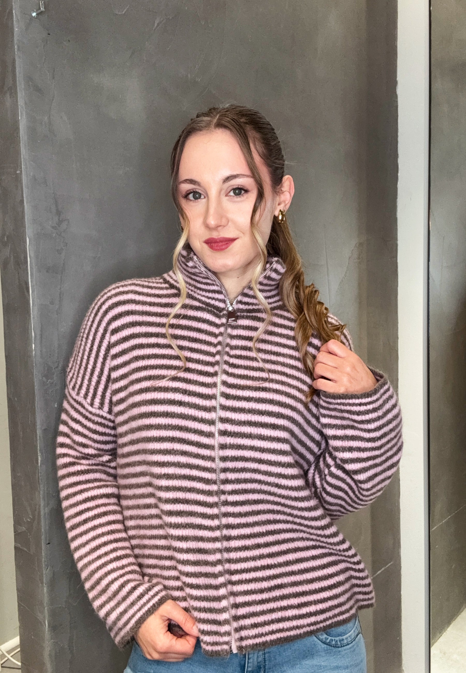 Strickjacke mit Streifen – Wollmix