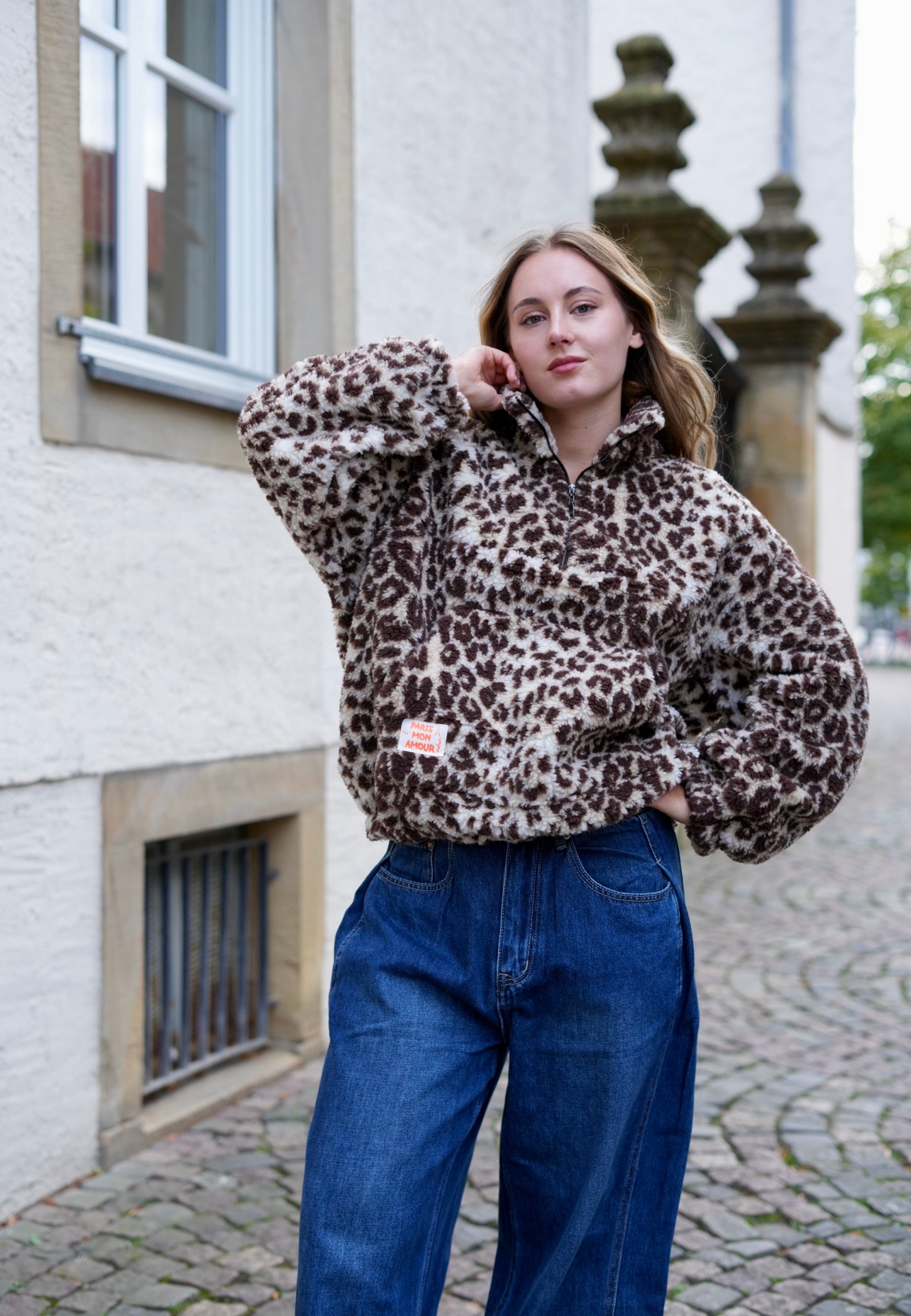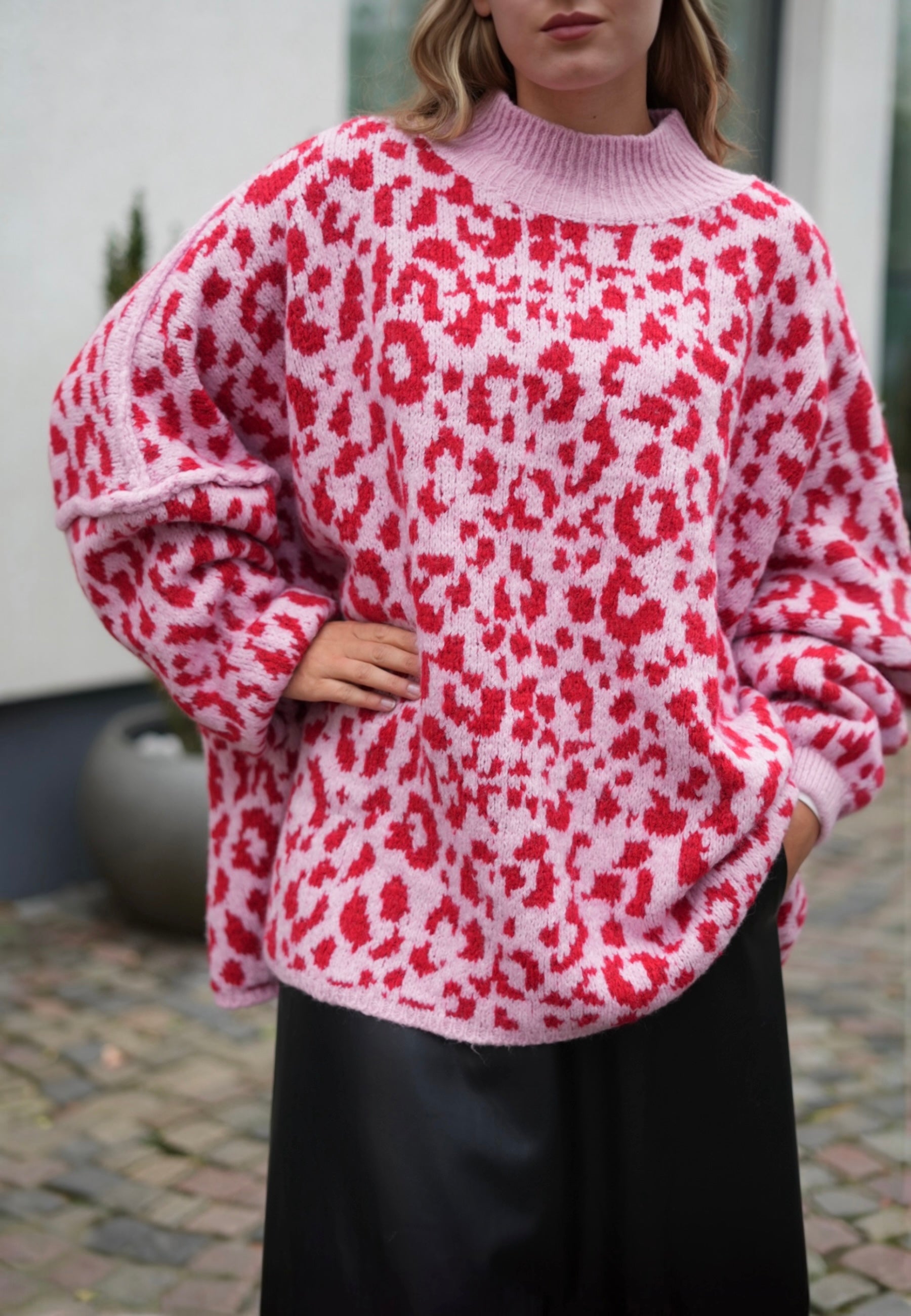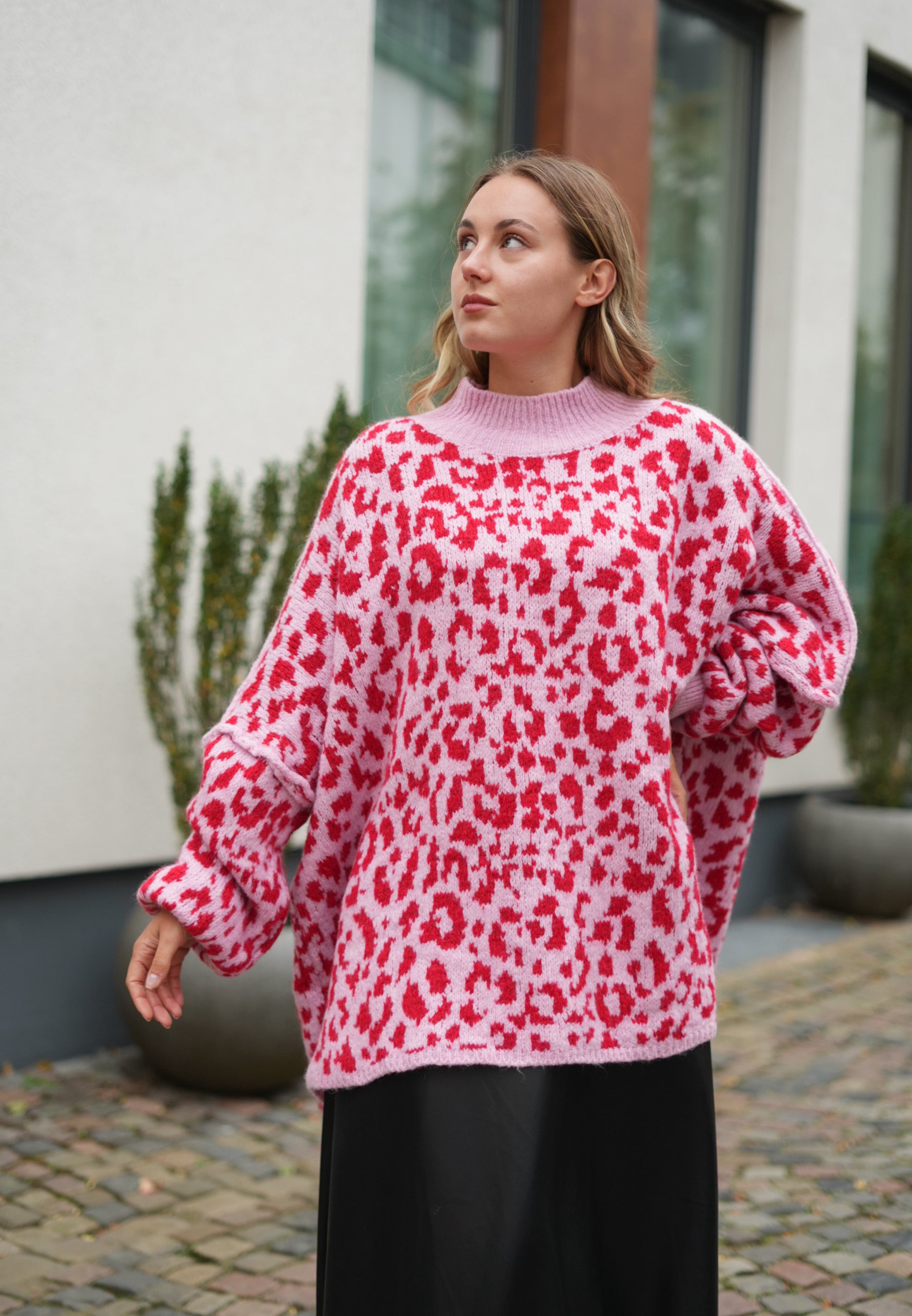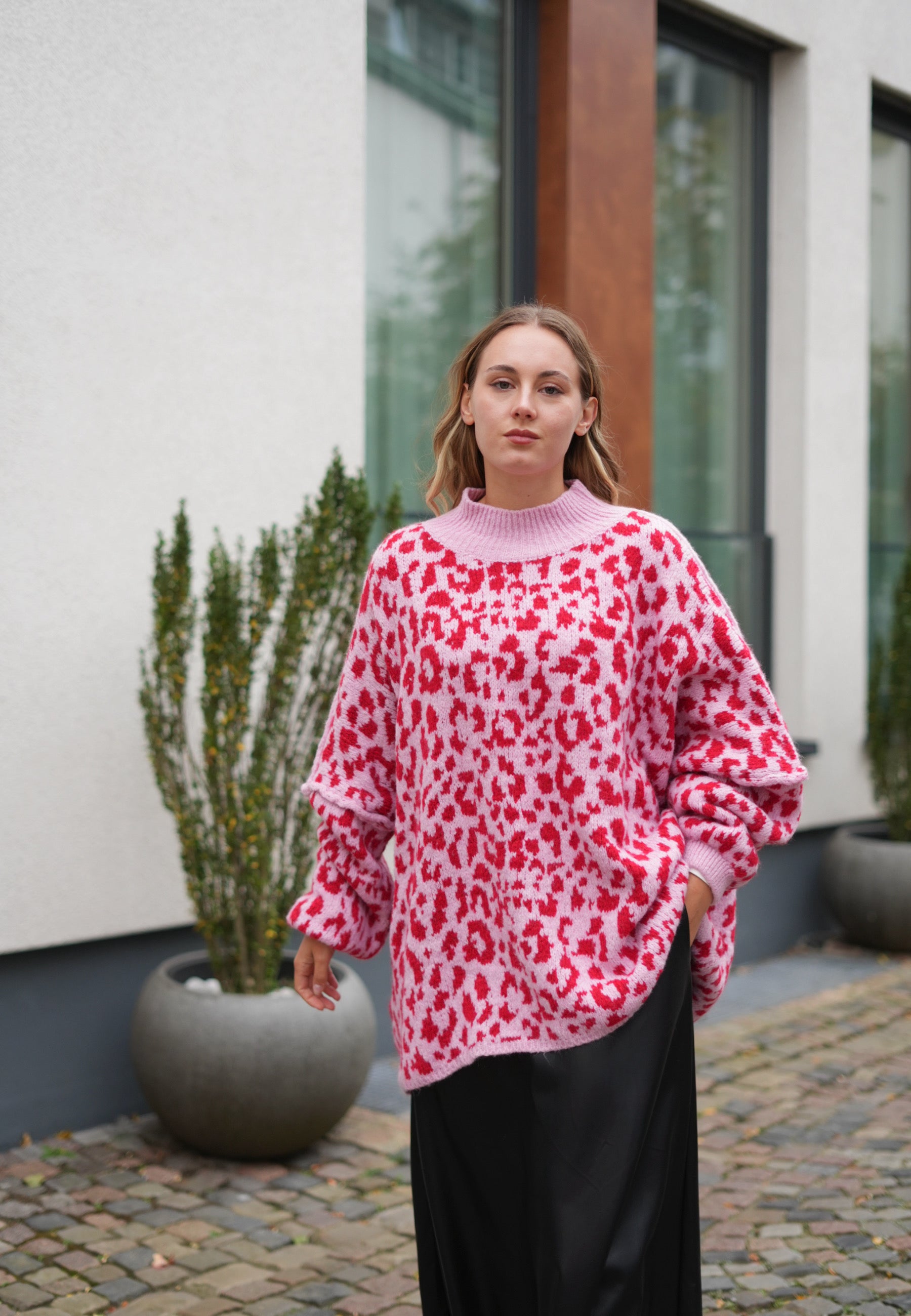 Oversize Pullover Herz Nata - Rosa mit Creme