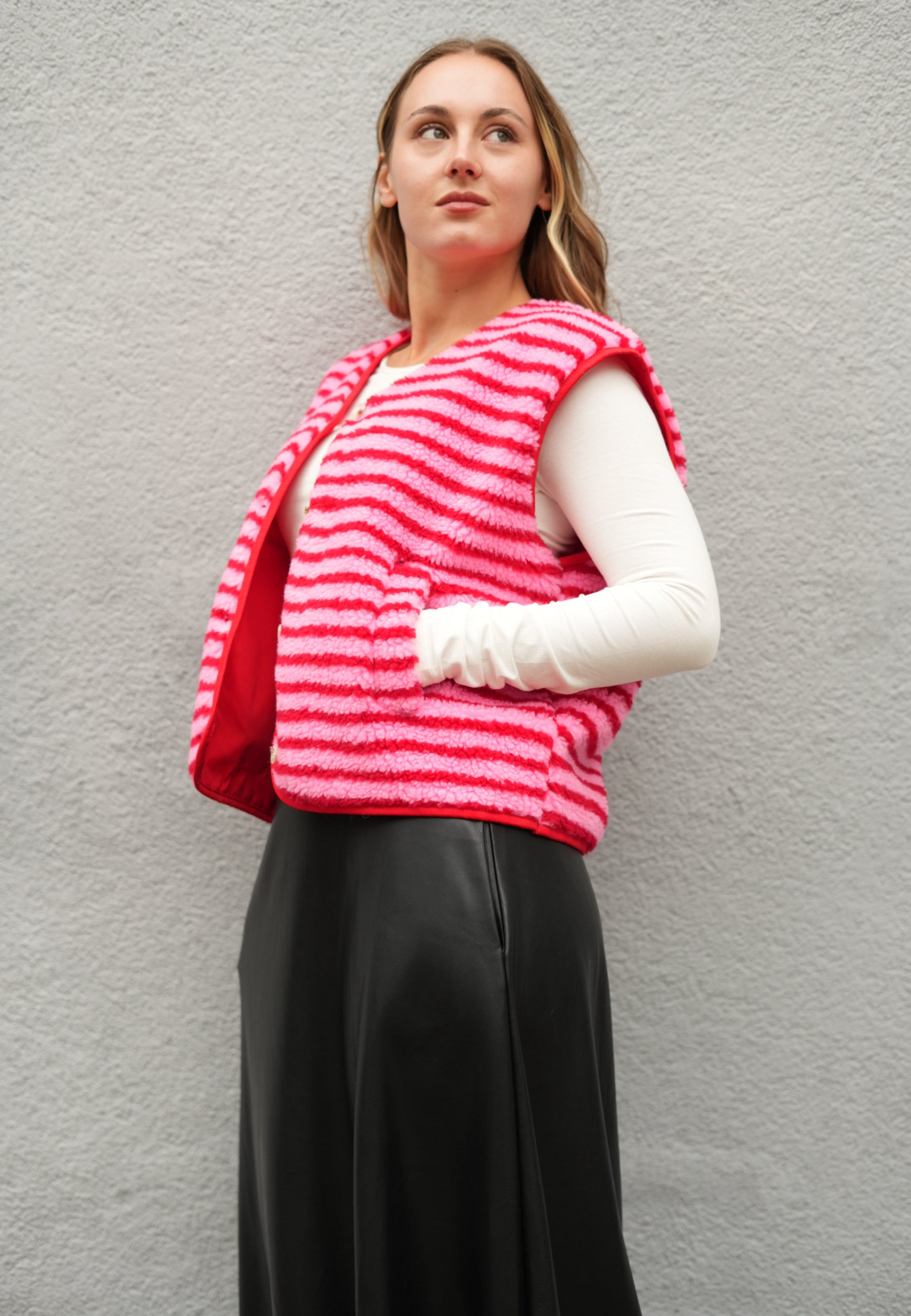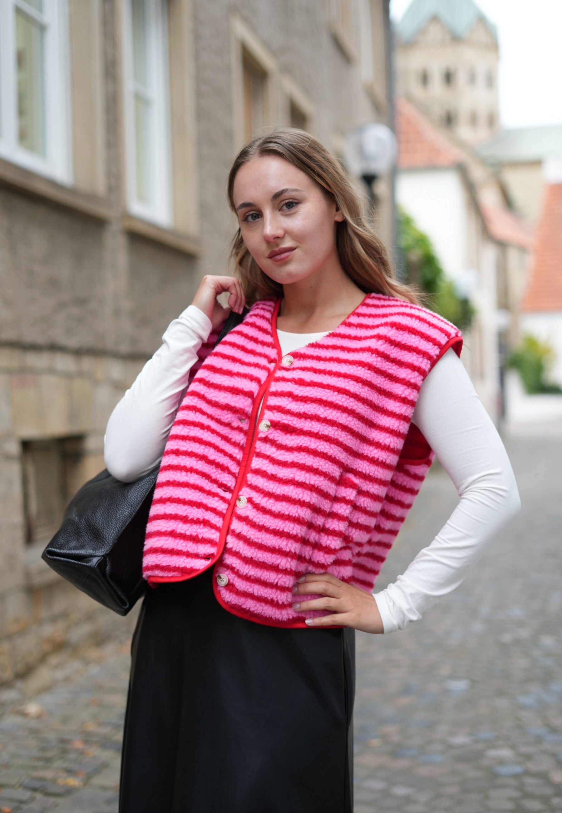 Gestreifte Baumwollbluse mit Spitzen-Detail
