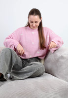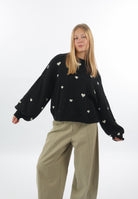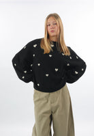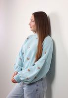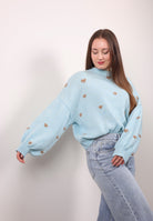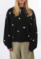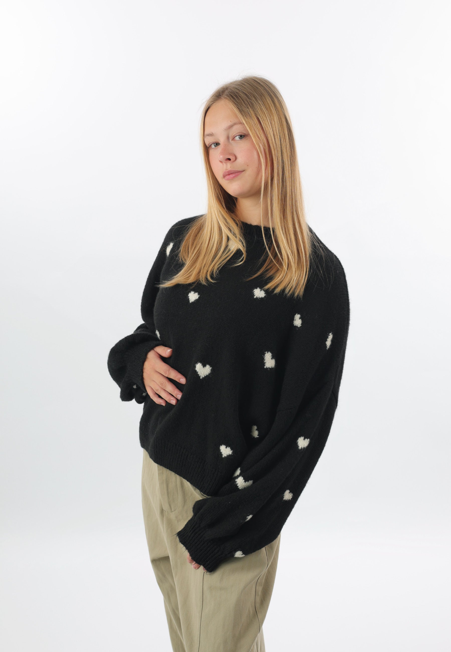 Ein Sweater aus Strick der Sommer und Herbst vereint. Feiner Strickpullover mit Herzchen an der Vorderseite + komplette Ärmel (vorder und Rückseite). Er liegt total angenehm auf der Haut und sein Schnitt läd zum wohlfühlen ein.