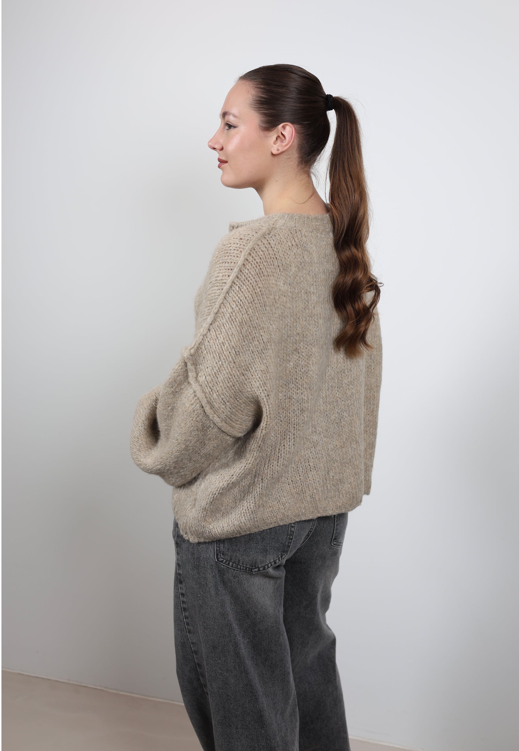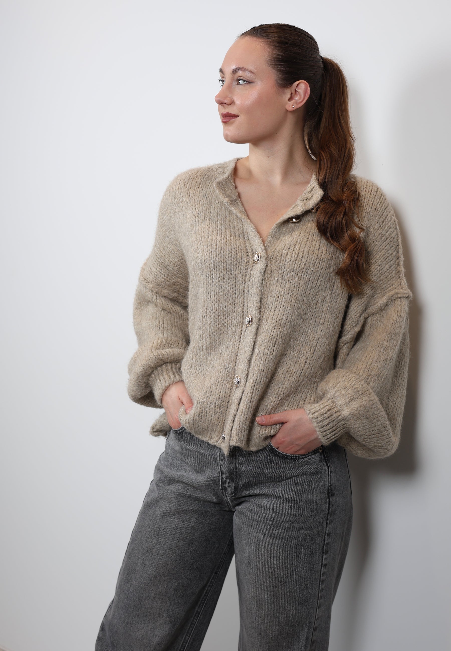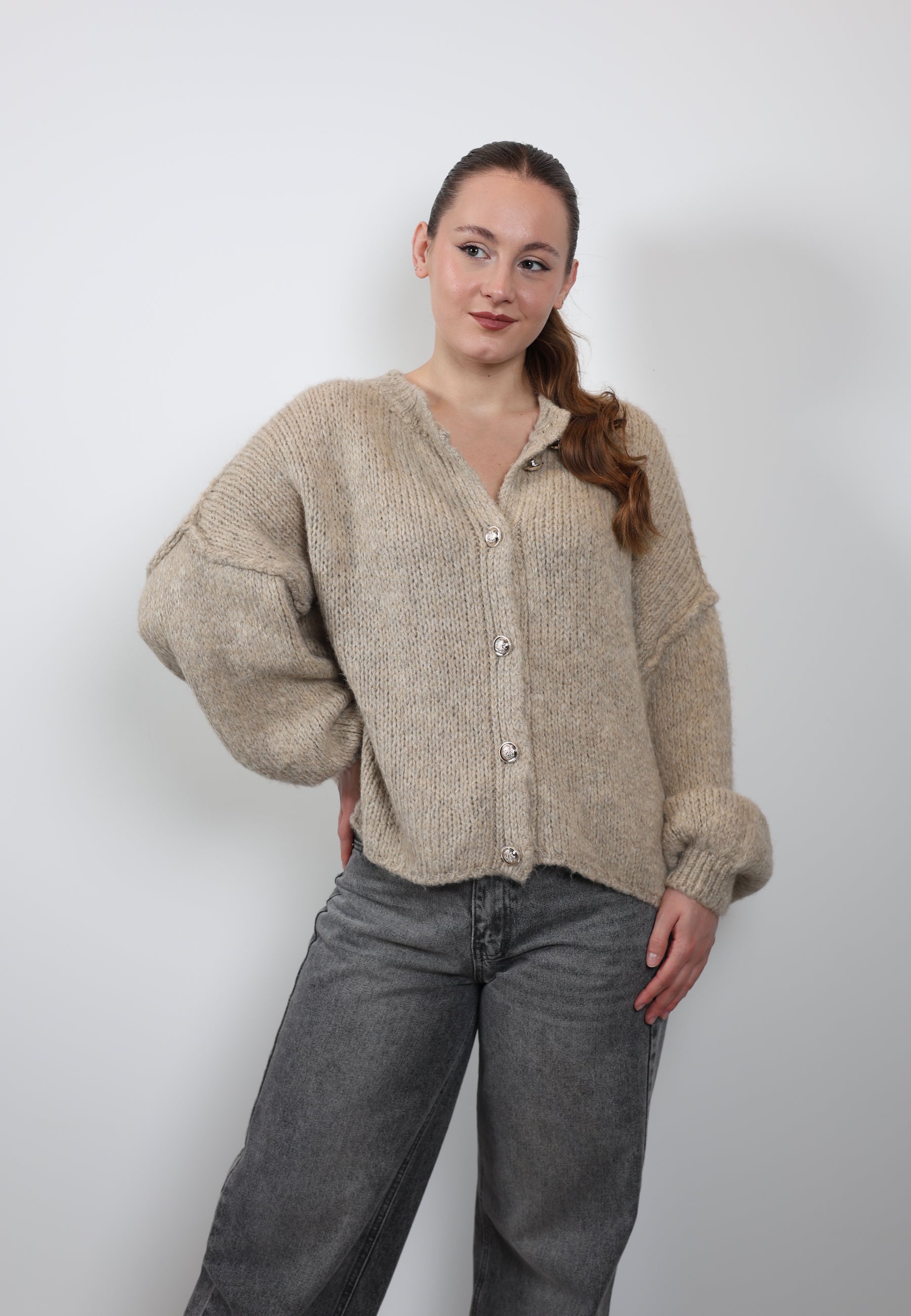 Strickjacke mit goldenen Knöpfen Ella kurz - Beige