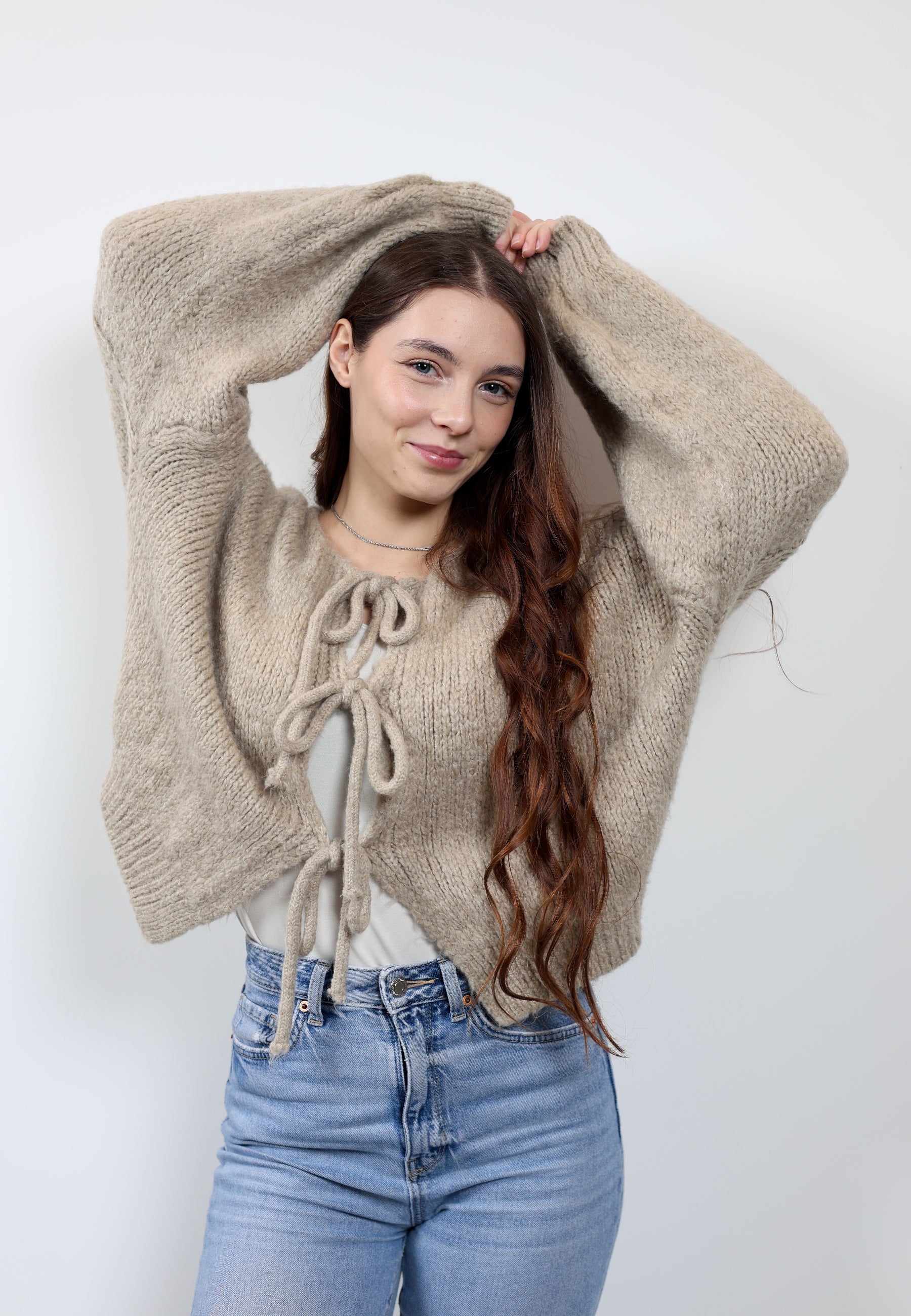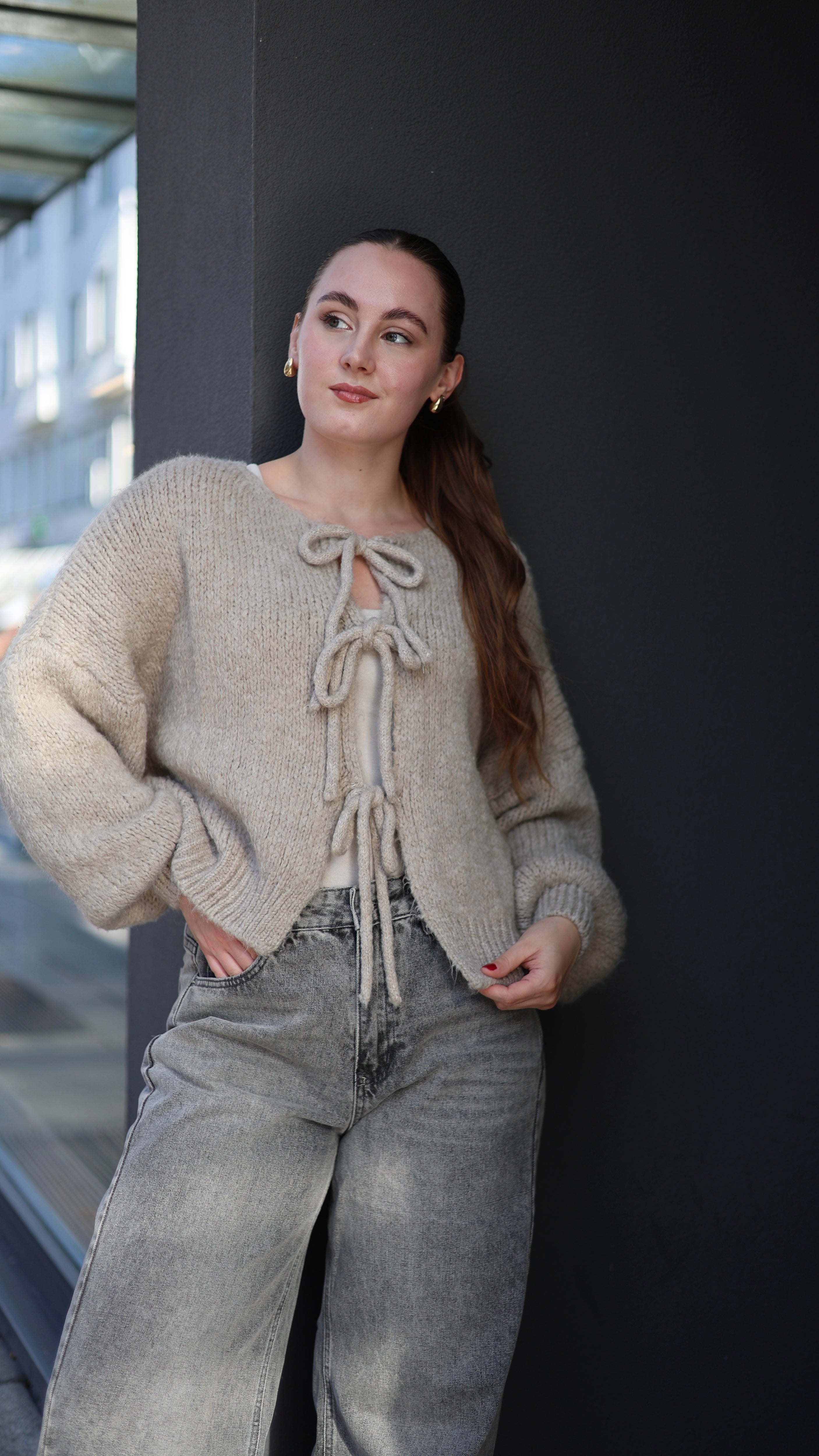 Grobgestrickte Strickjacke Offwhite/Beige – Chunky Knit Cardigan