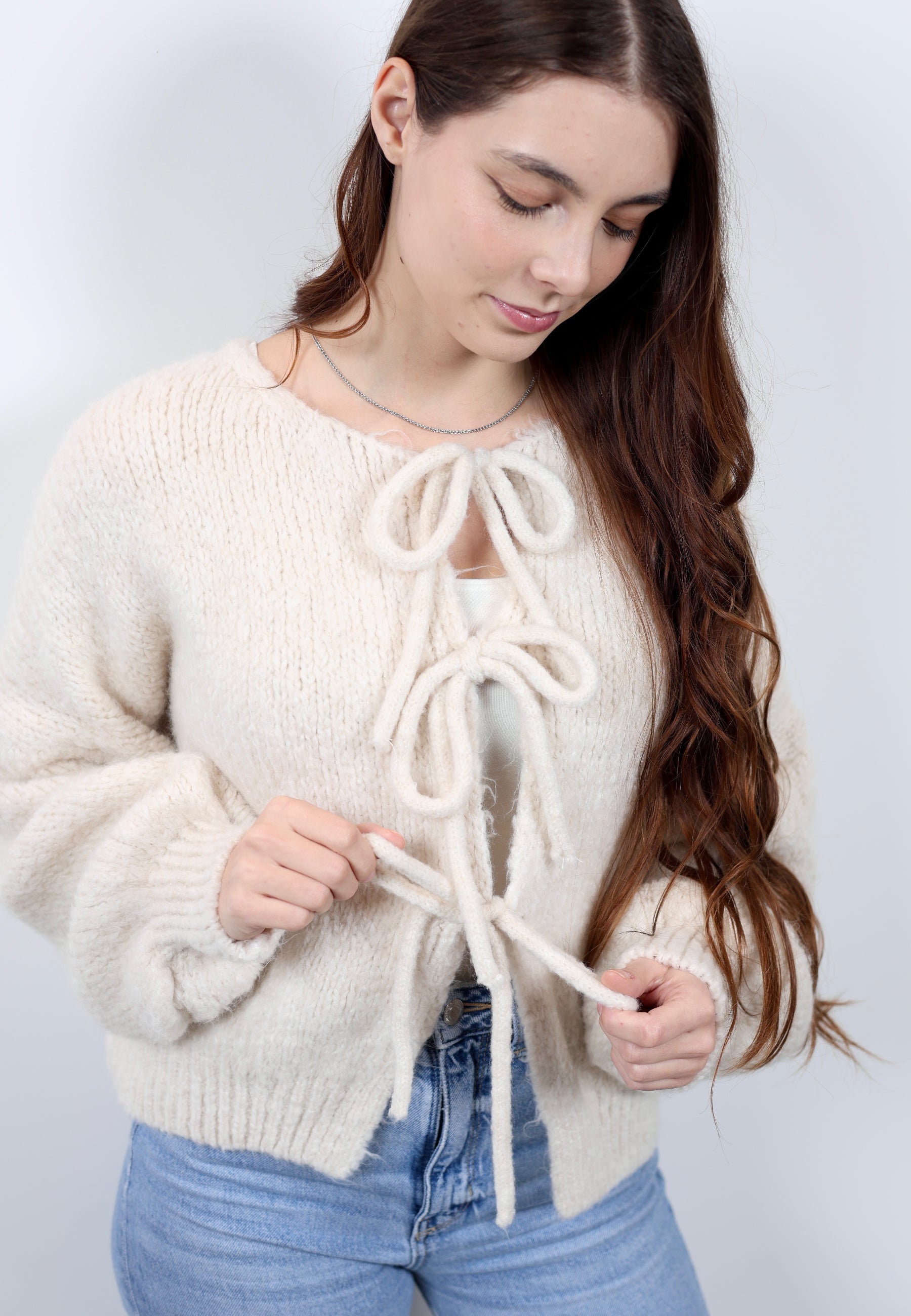 Knit Cardigan Leo Triple Bow - Pink Orange
