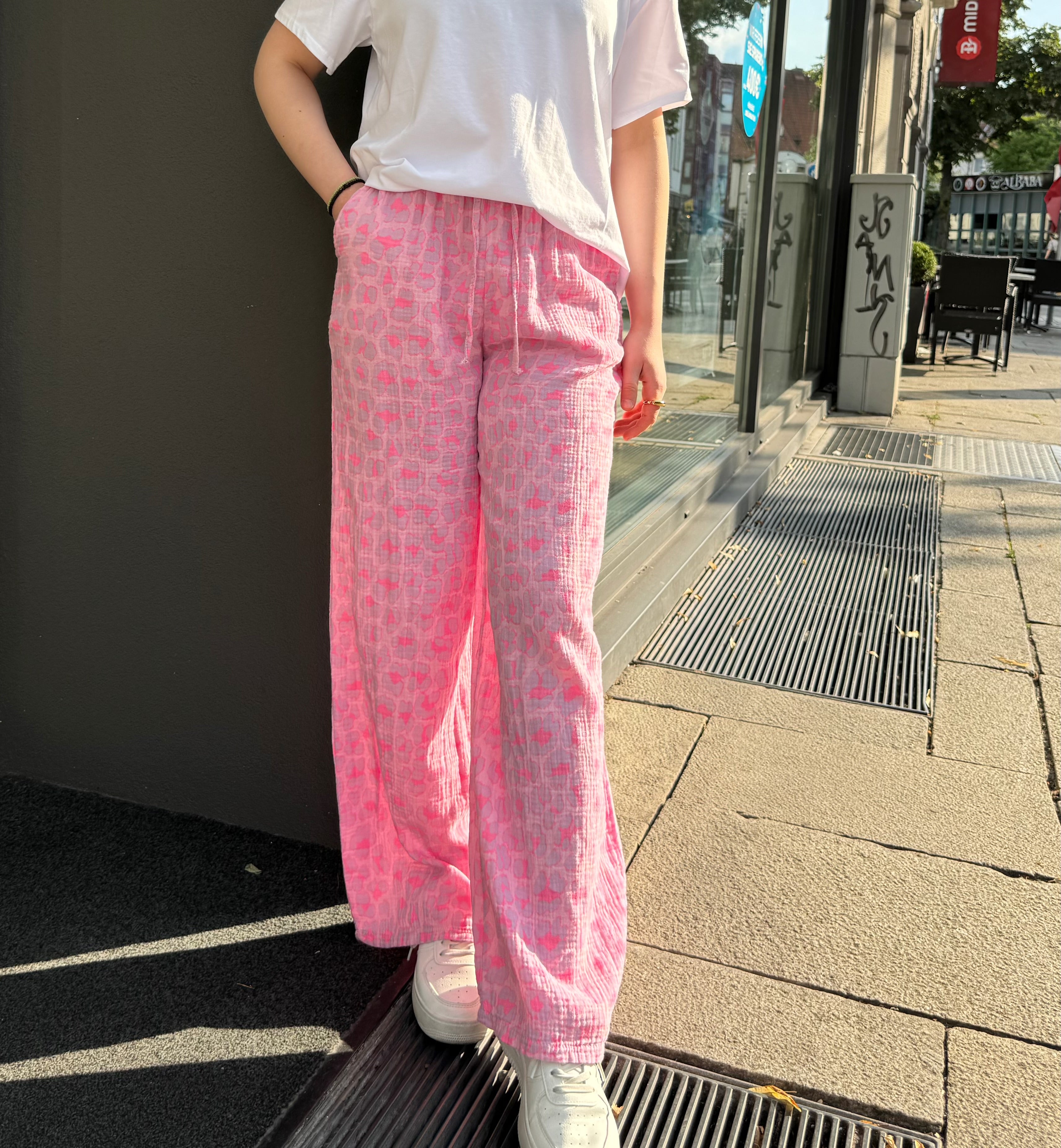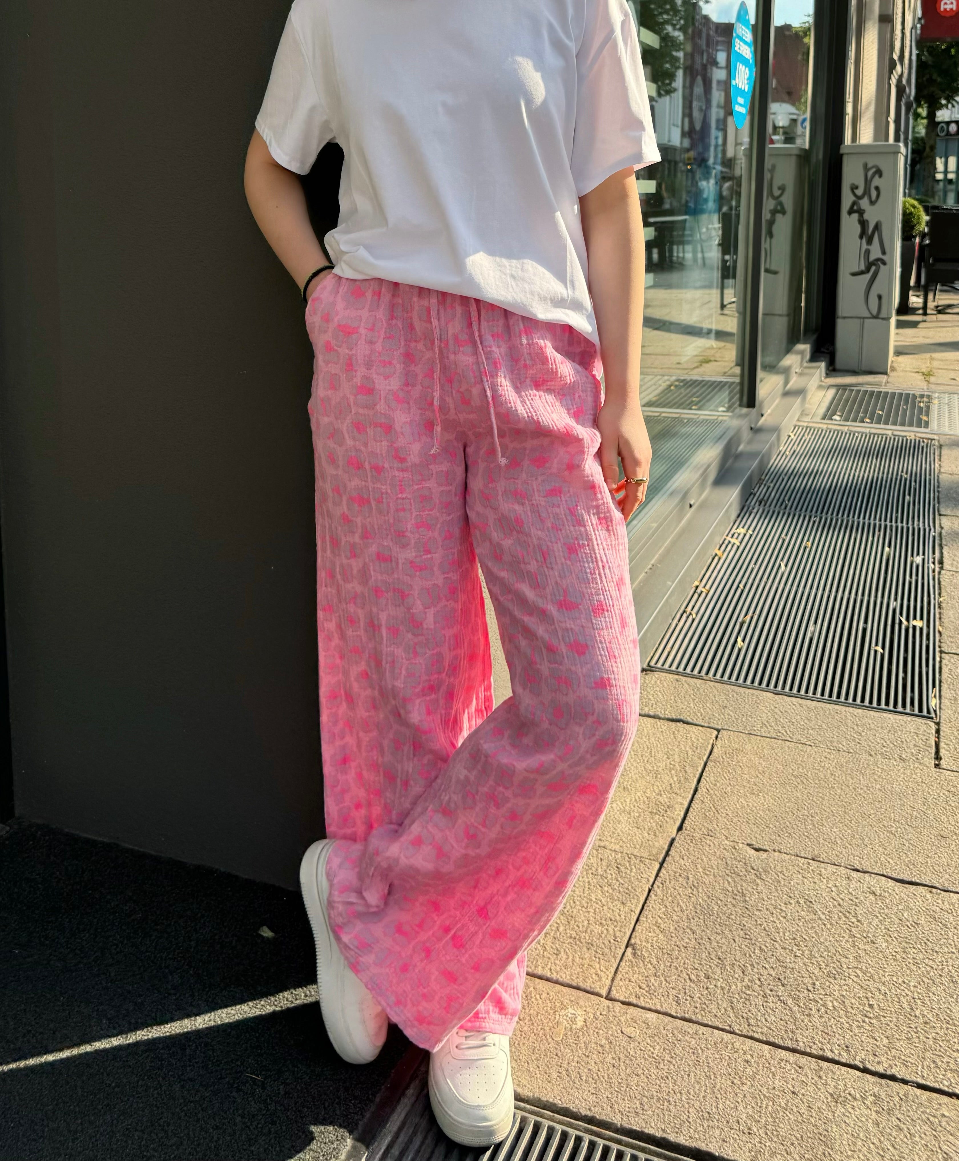 Diese Hose aus Musselin mit Leoprint ist ein absolutes Fashion-Highlight und ein Must-have für alle Fashionistas da draußen! Die Hose verfügt über eine bequeme Passform und einen elastischen Bund, der für einen angenehmen Tragekomfort sorgt.