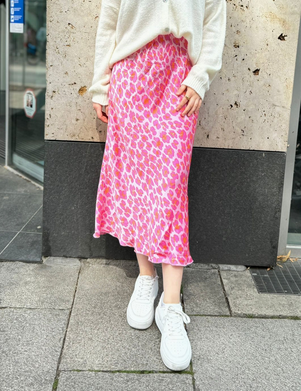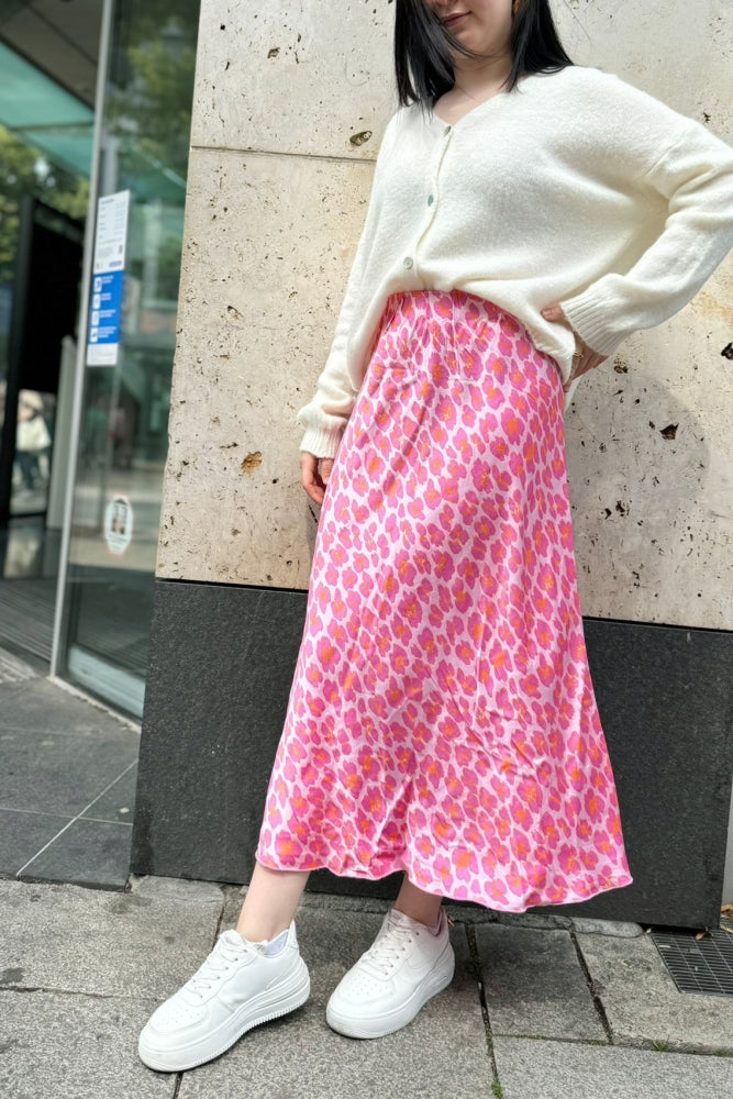 Satin Silky Leo Midirock - Pink Orange