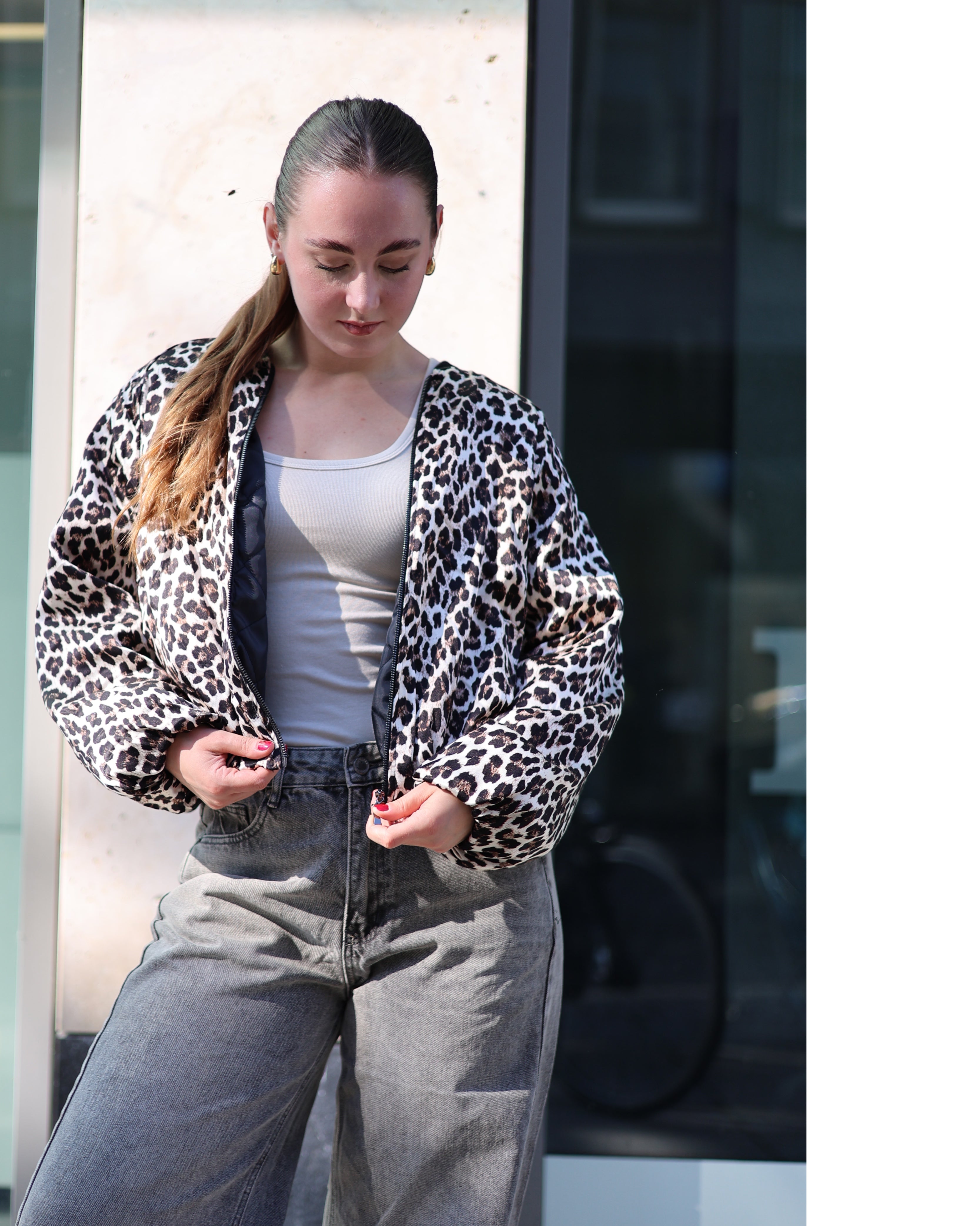 Satin-Bomberjacke Smooth Leo - Beige
