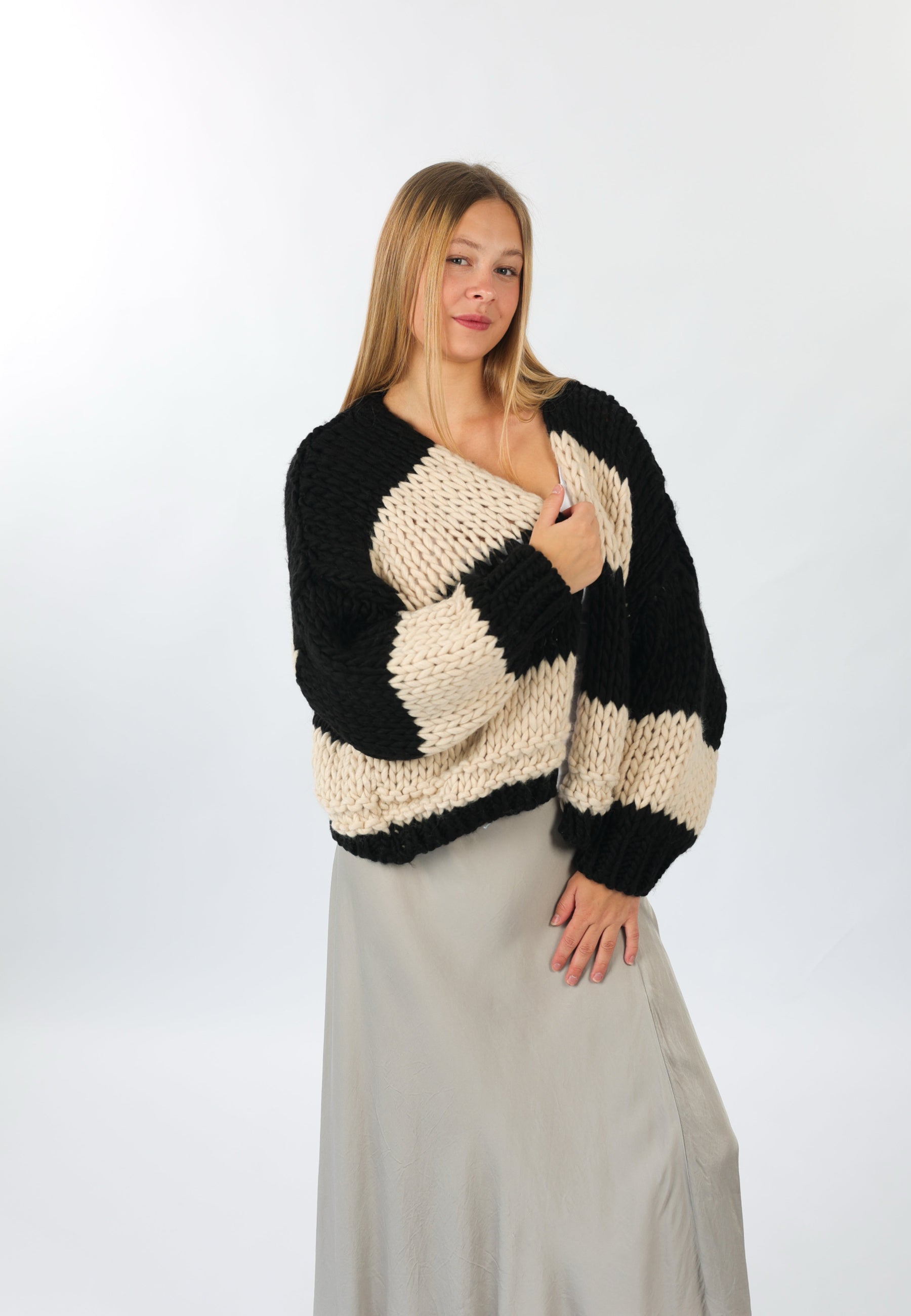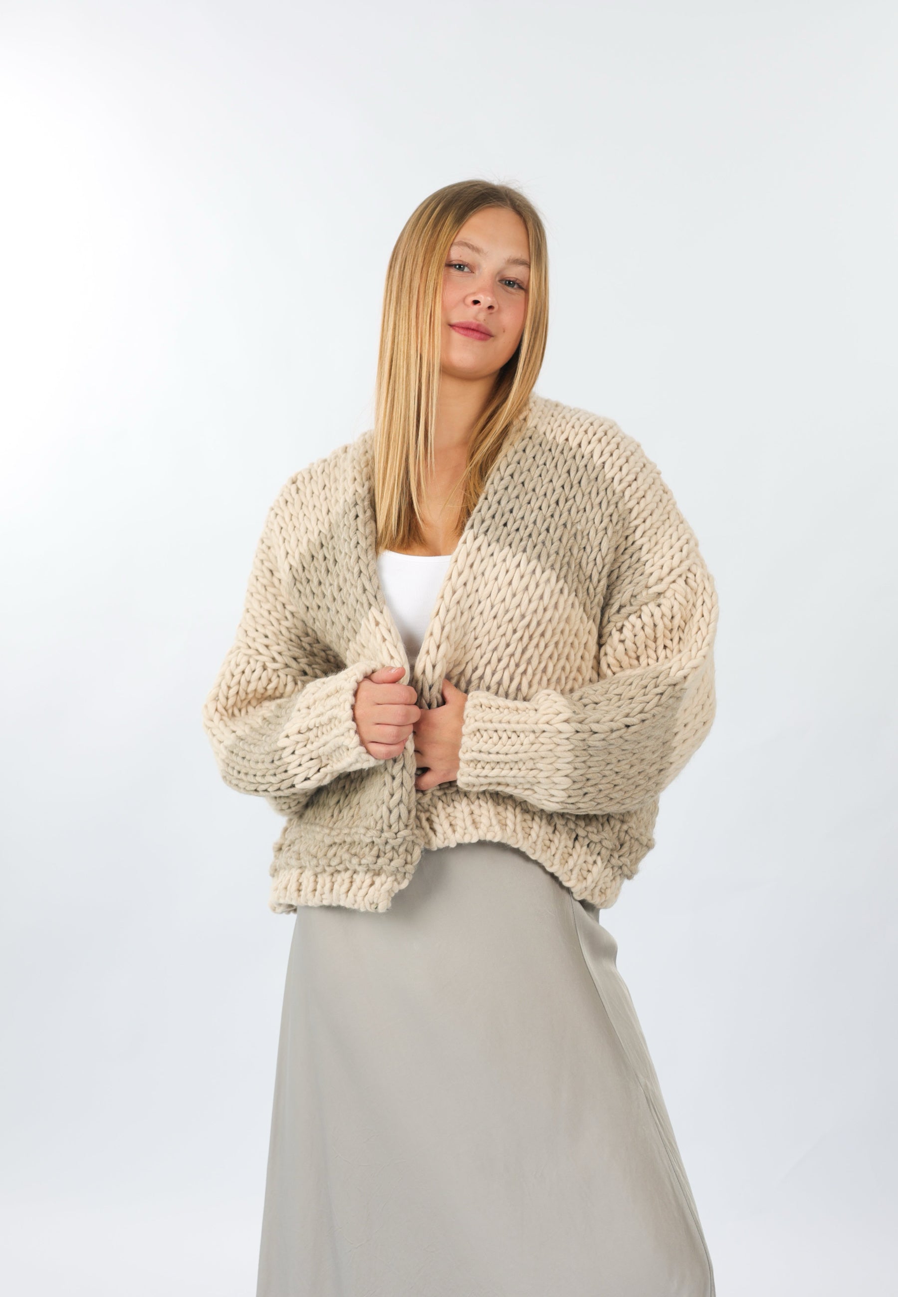 - Marry ist 1,63m groß und trägt den Cardigan.