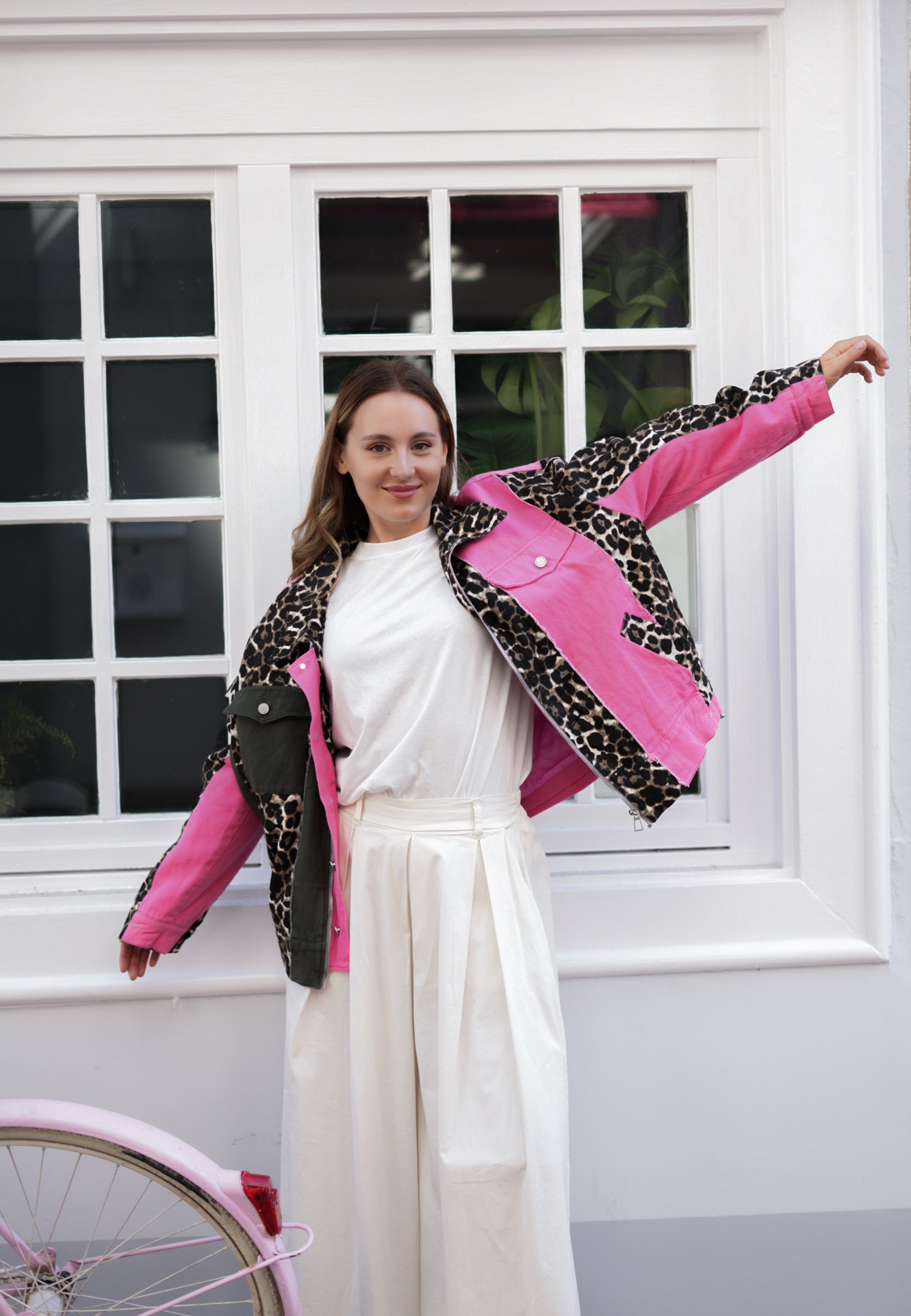 Denim Stitching Leopard Jacket