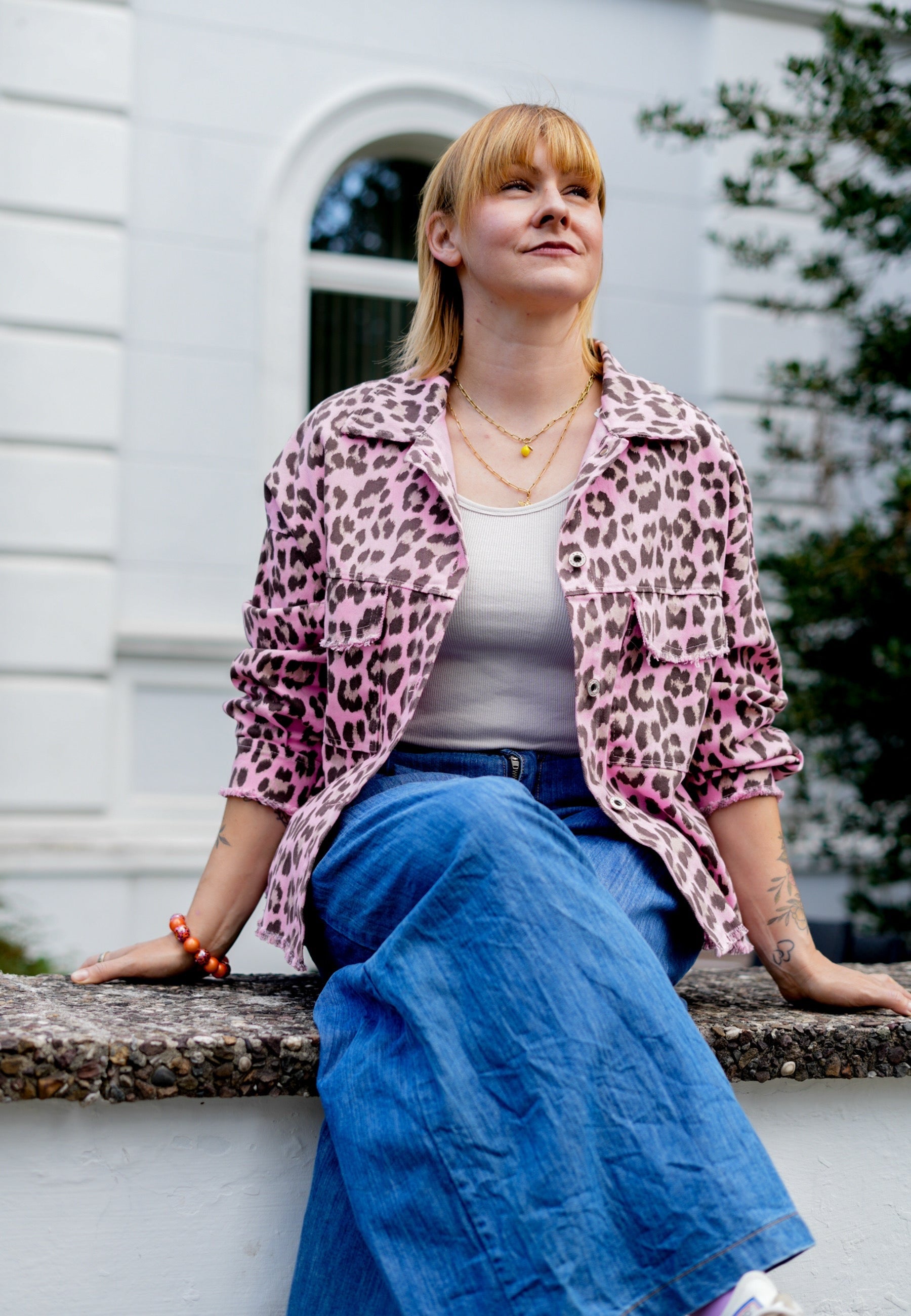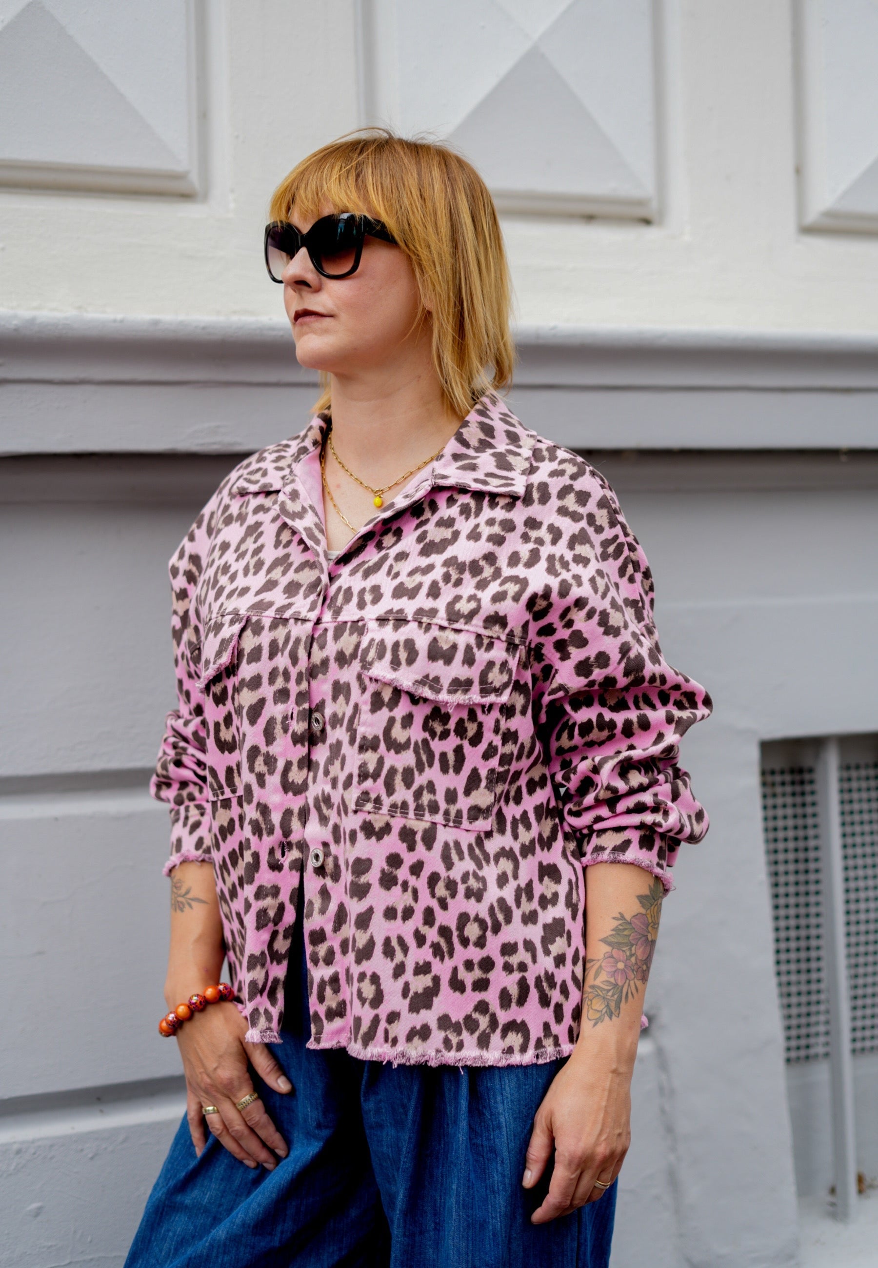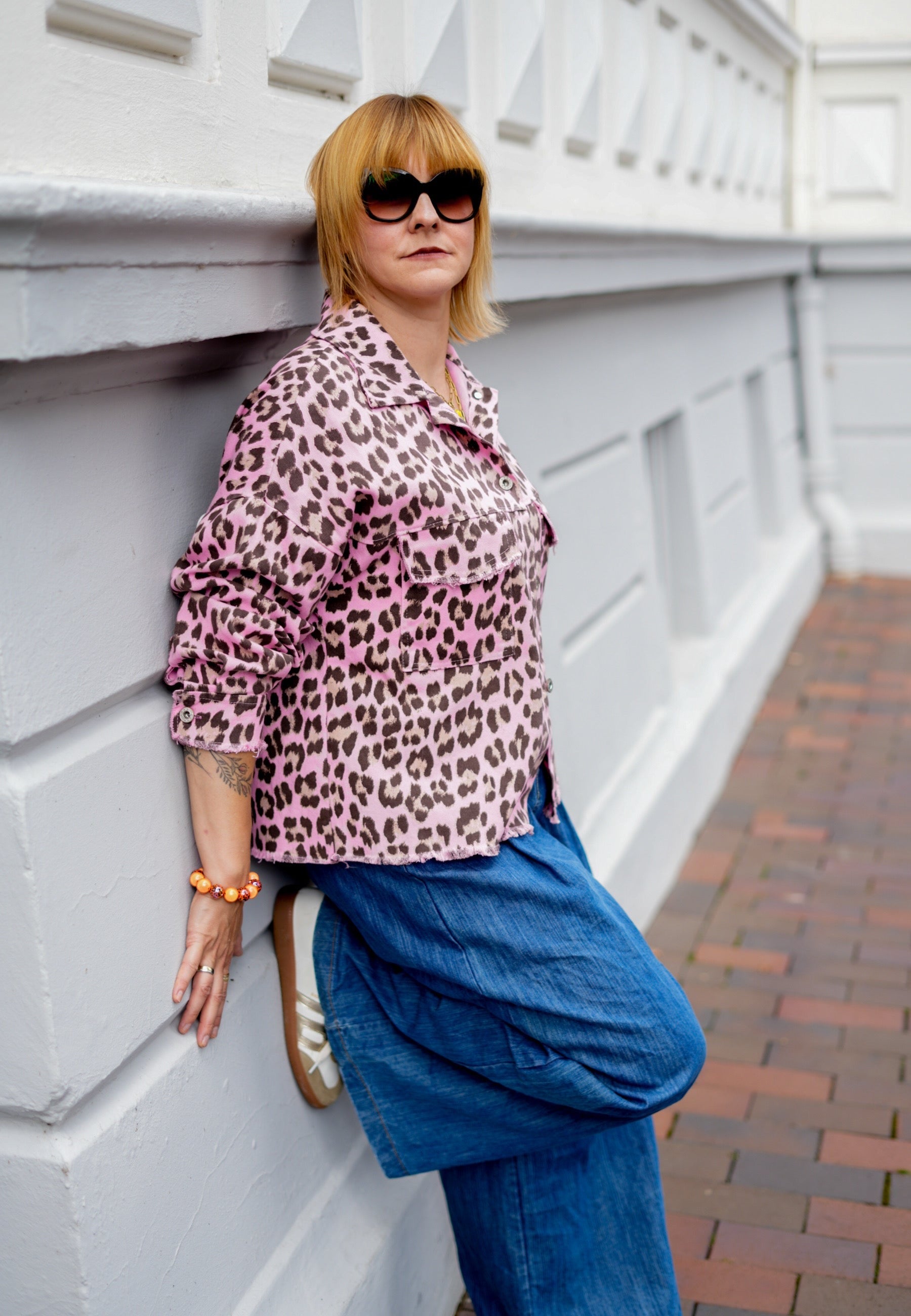 Leichte Jeansjacke im Leo Look mit zwei aufgesetzten Taschen und leicht ausgefransten Abschlüssen. Man kann die Jacke auch super als Hemd tragen.