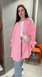 MUSSELIN LONG OVERSIZE BLUSE –BABY ROSA