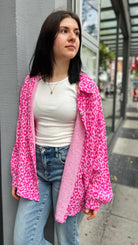 Musselin Midi Oversize Bluse - Leopard Neon Pink