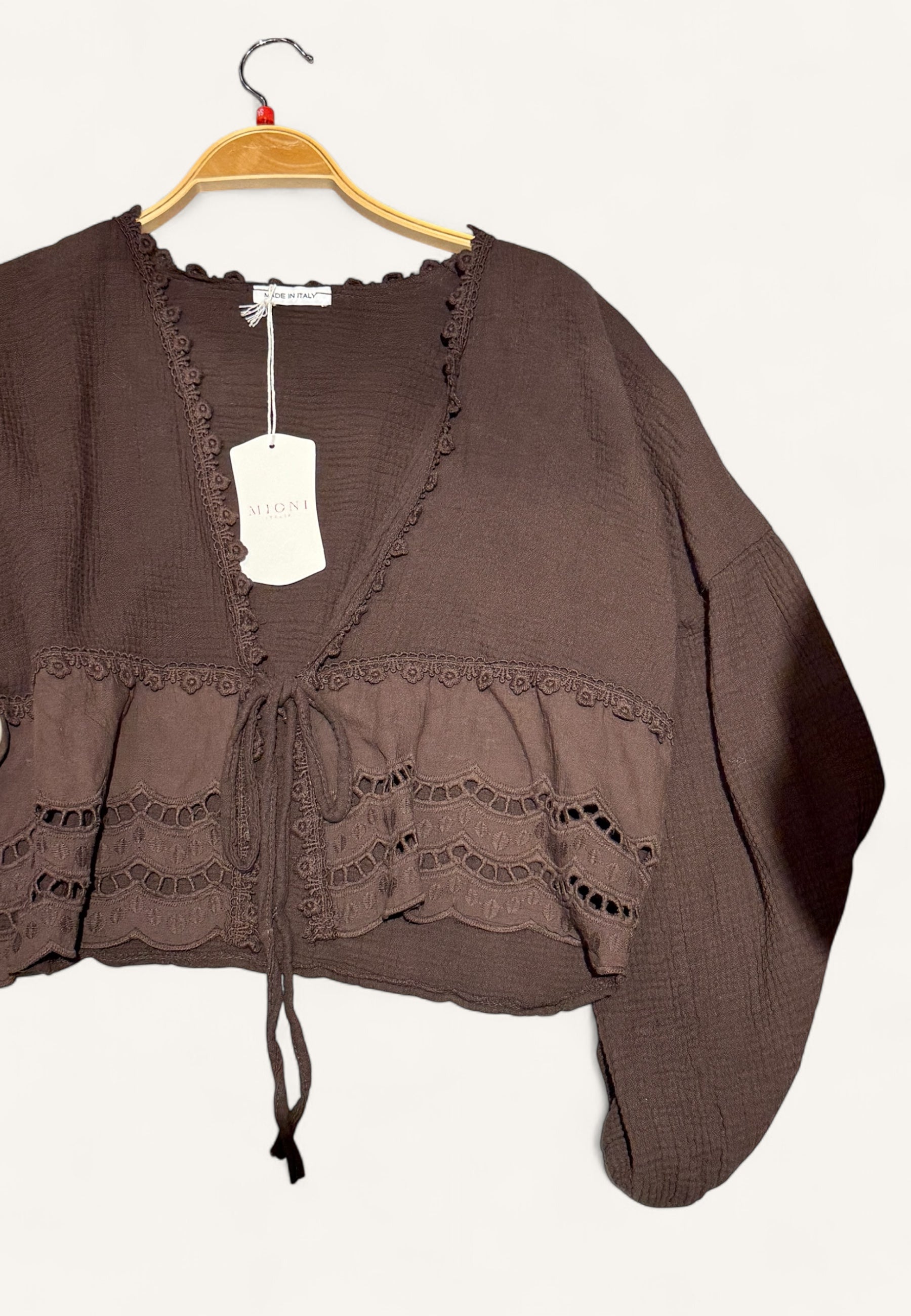 Palmtree Sparkle Oversize Musselinbluse - Taupe