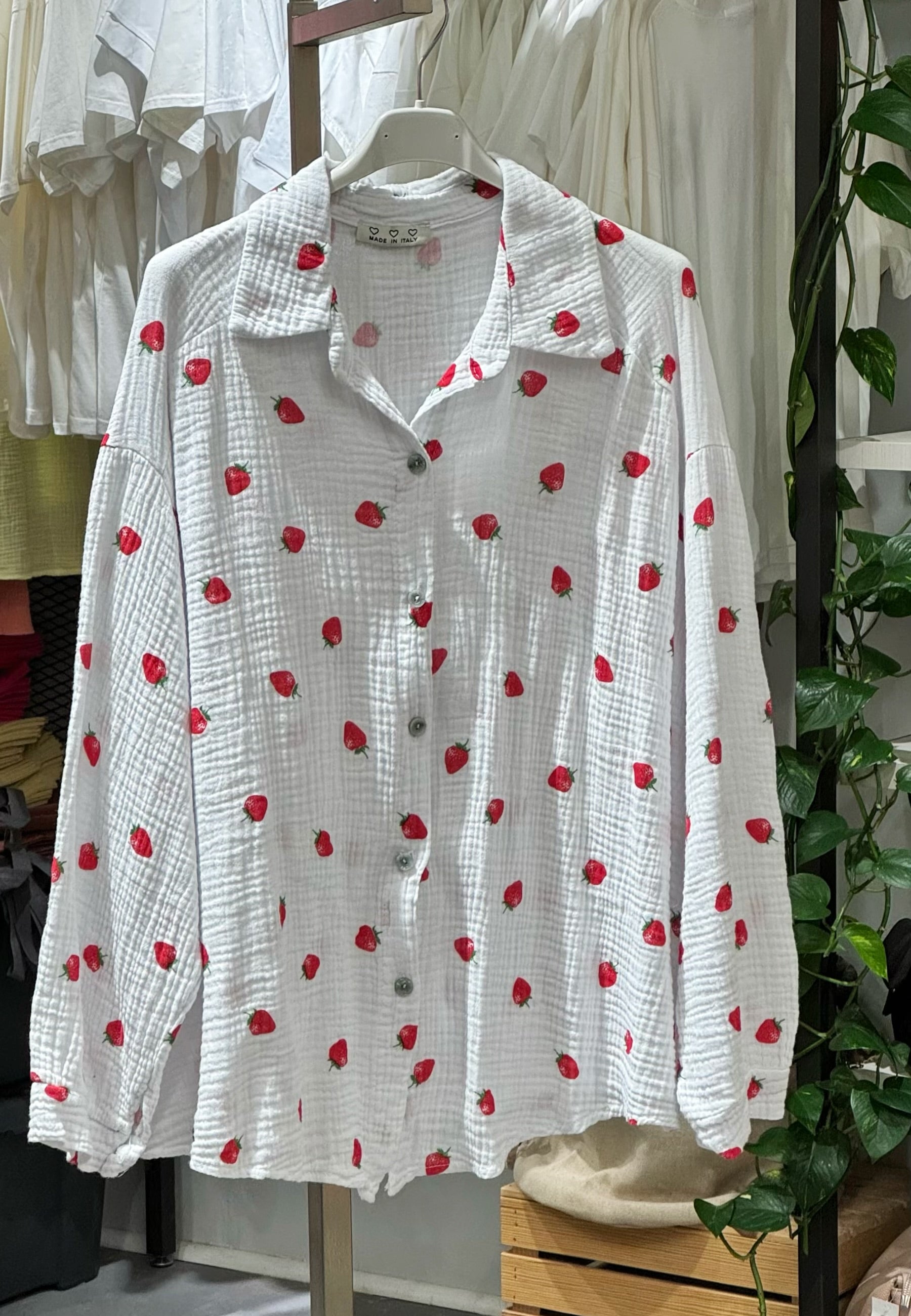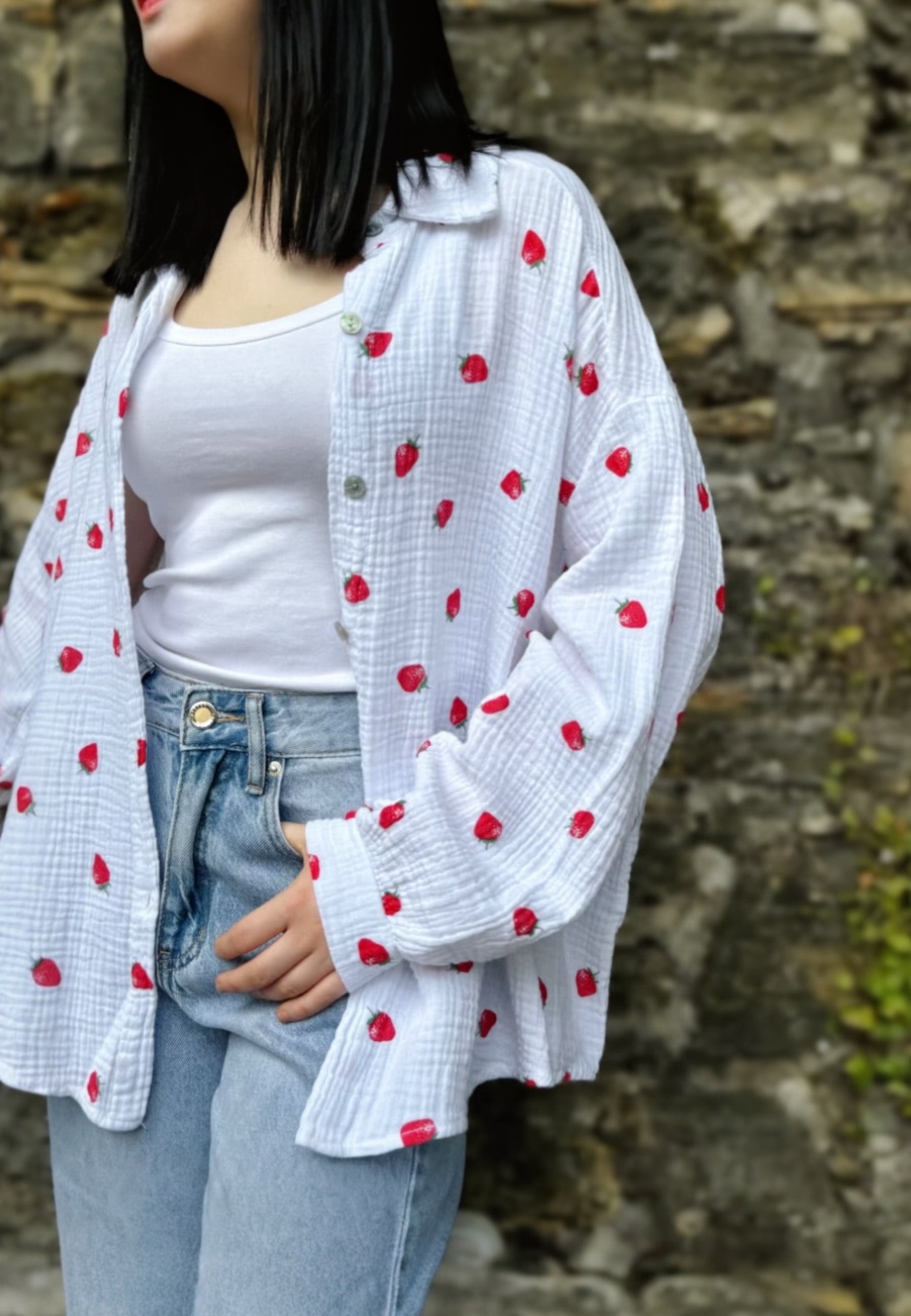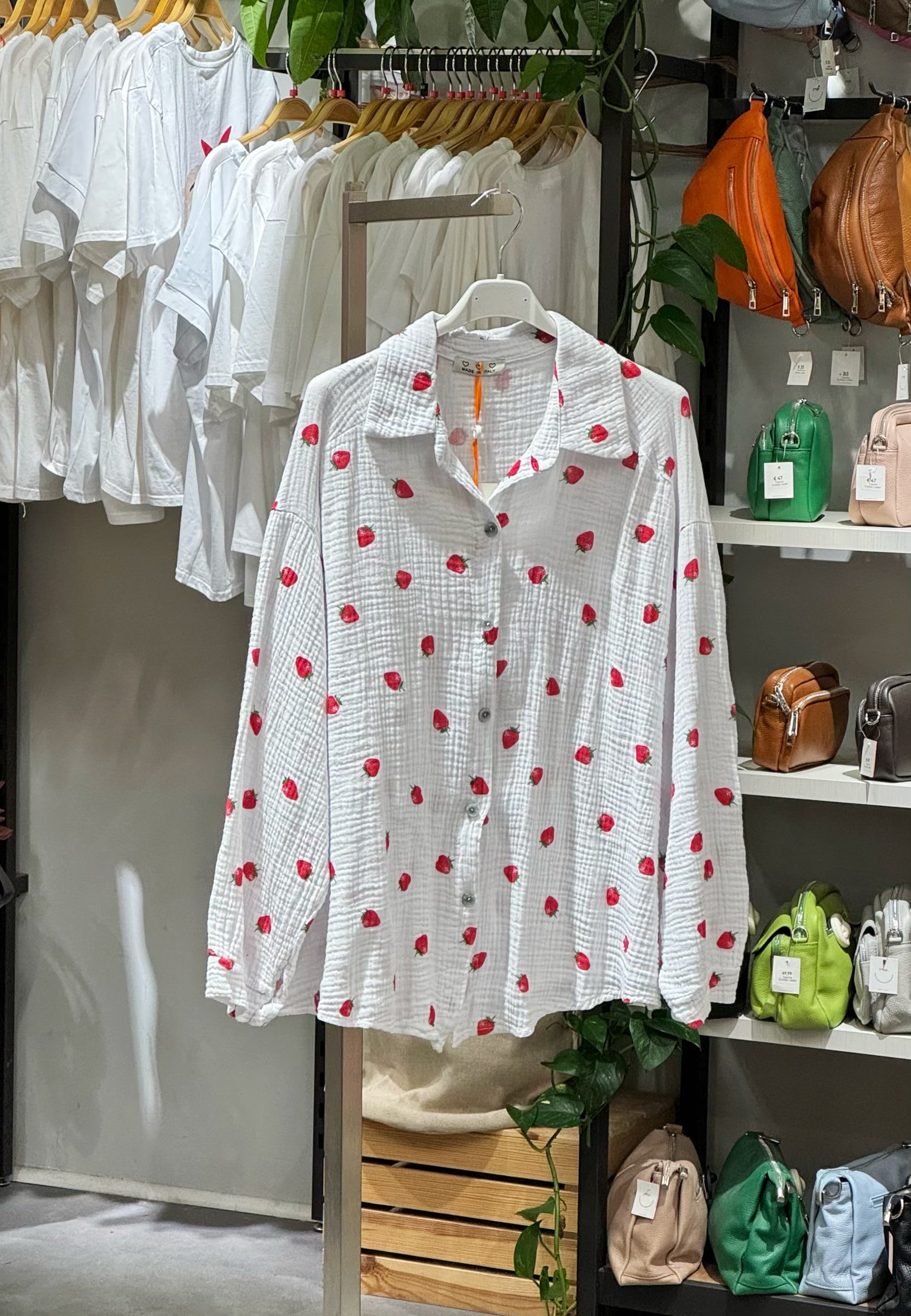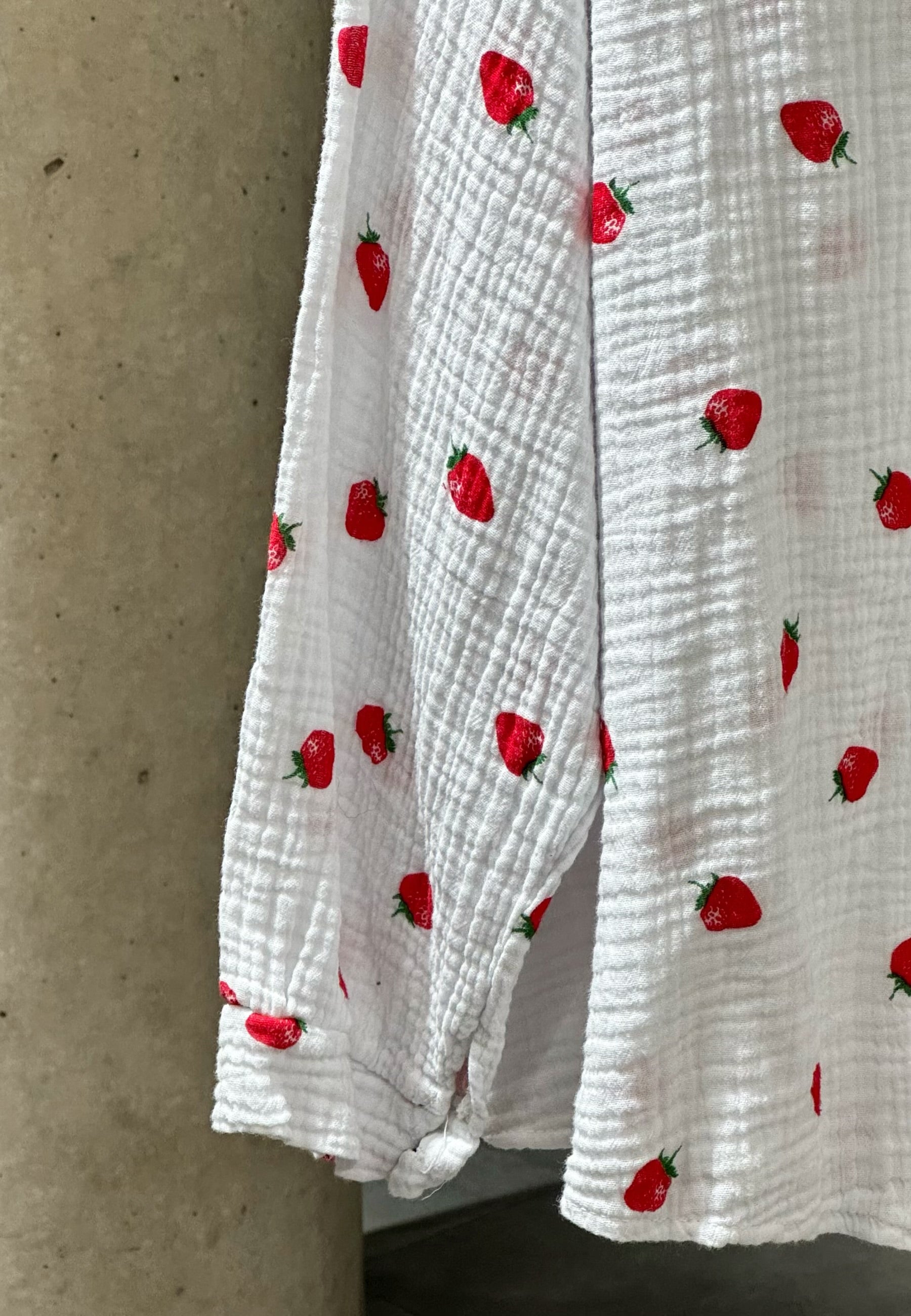 MUSSELIN MIDI OVERSIZE BLUSE LOVE - ROSA / WEISS