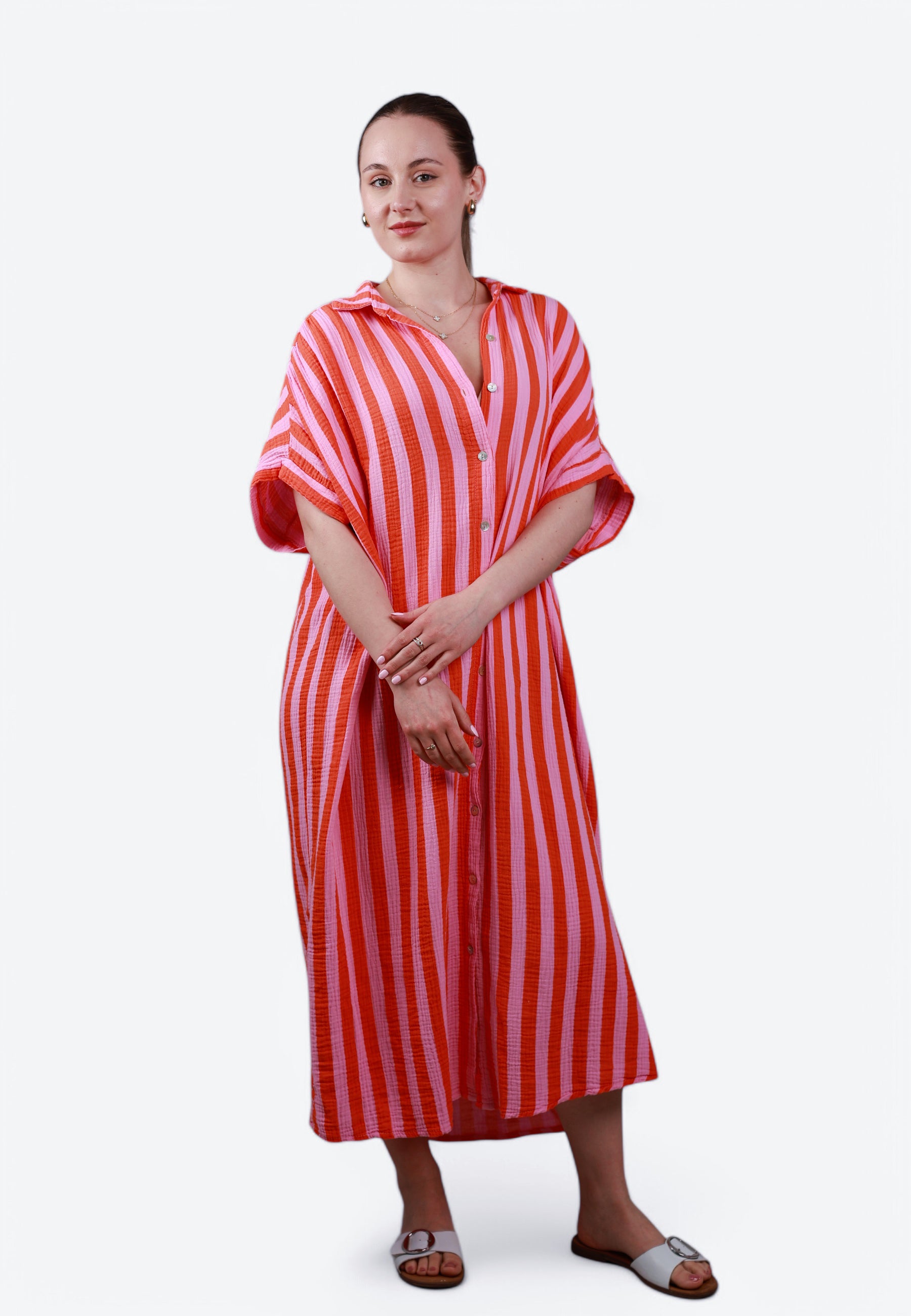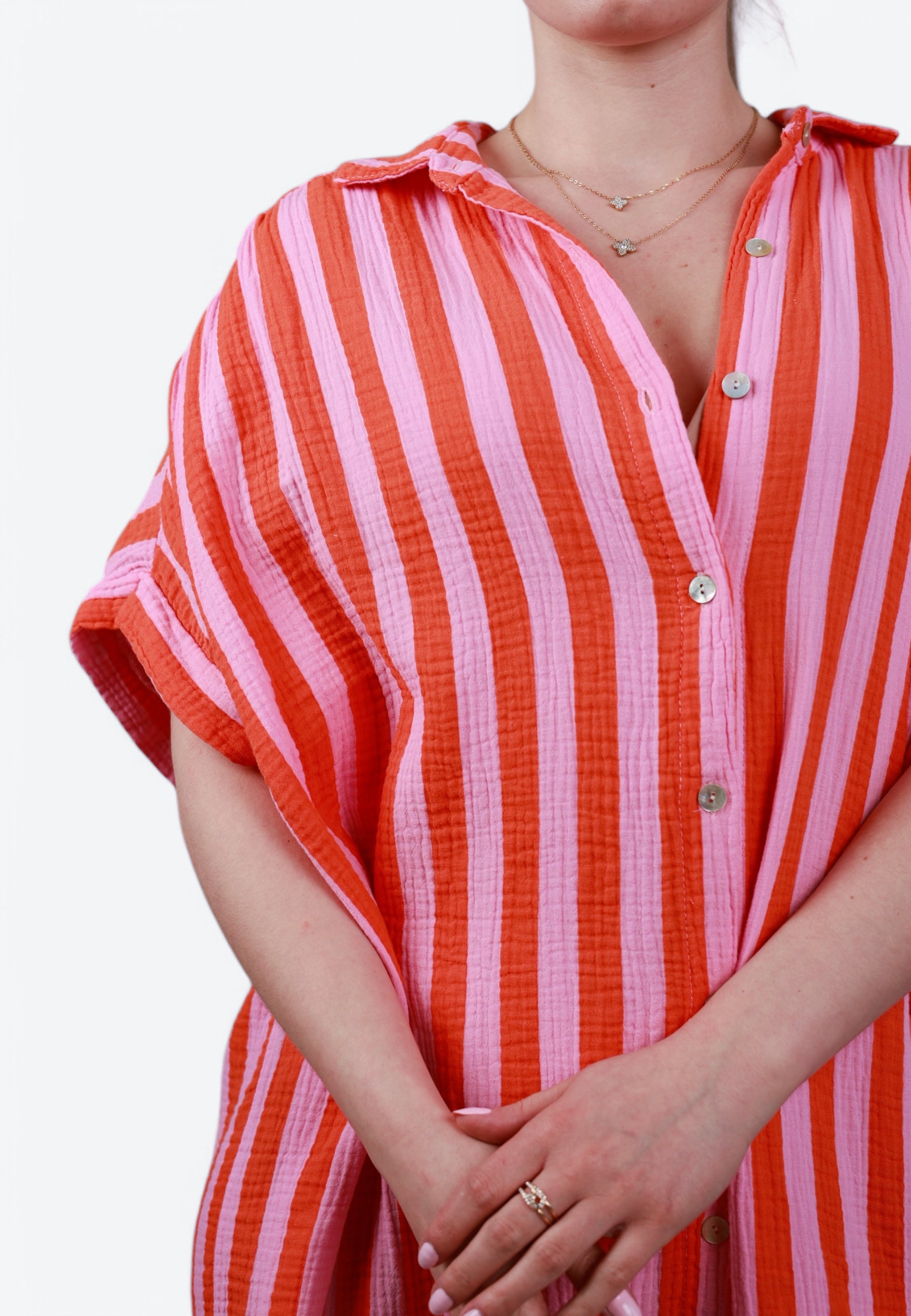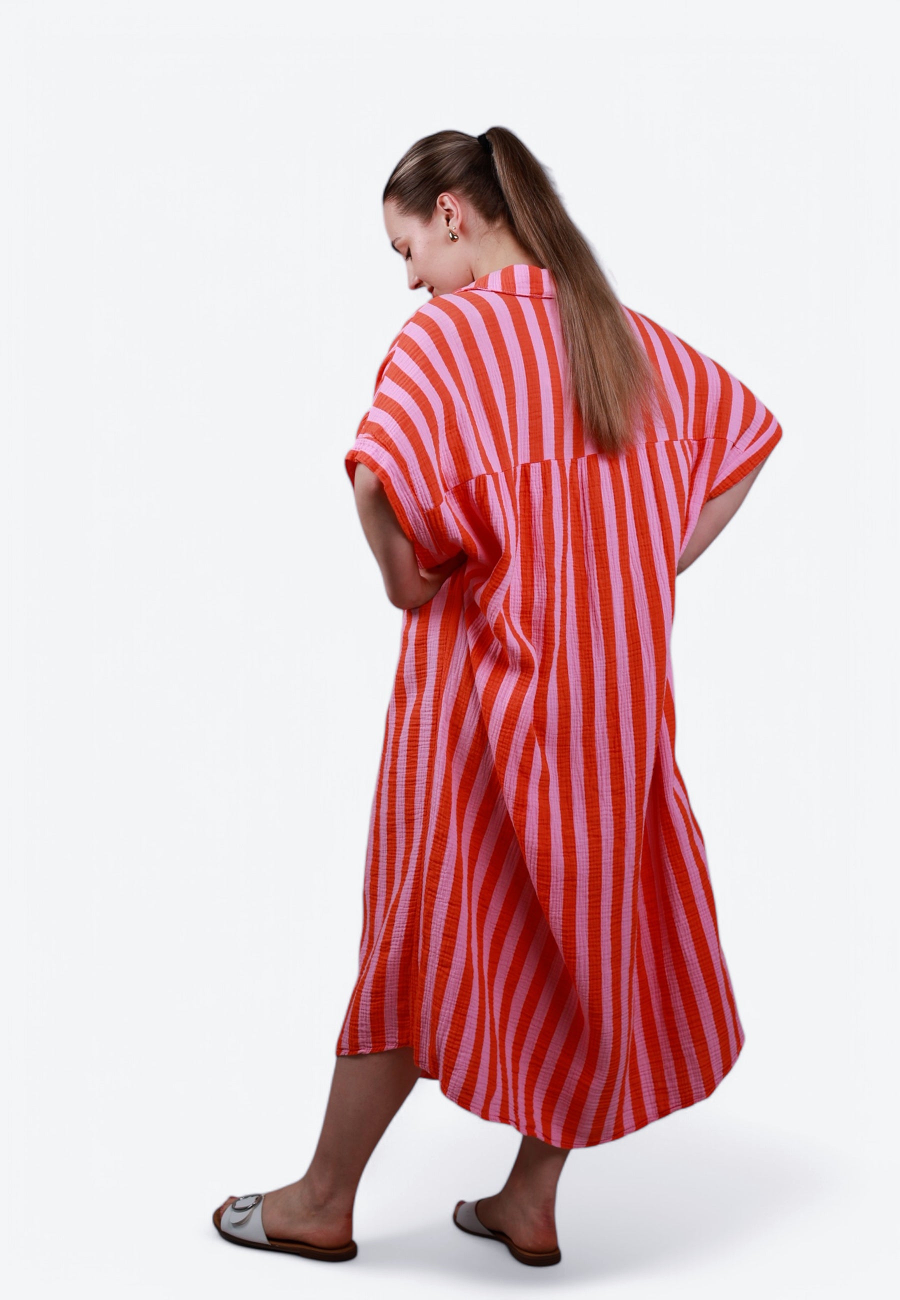 Musselin Oversize Kurzarm Blusenkleid Big Stripes