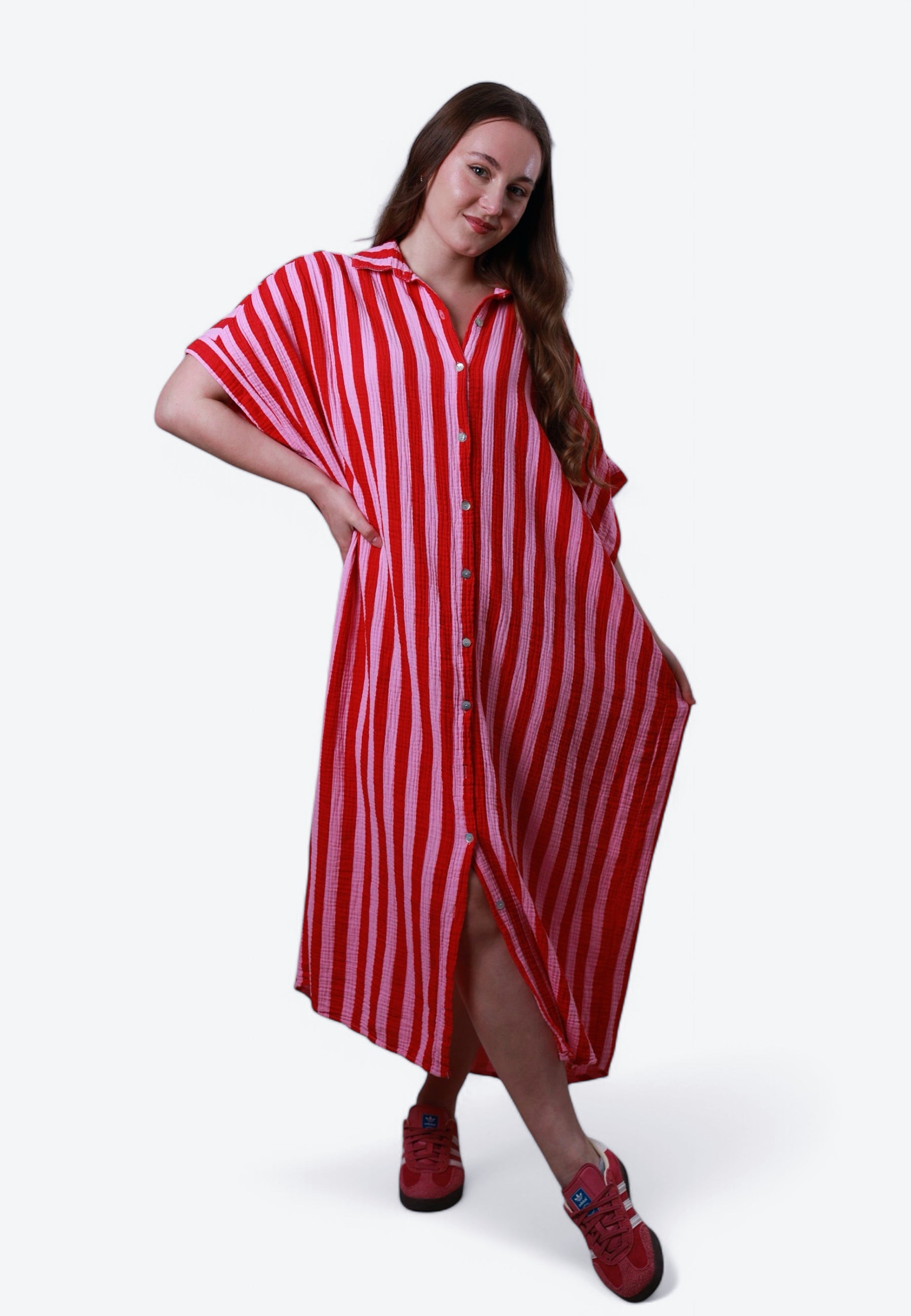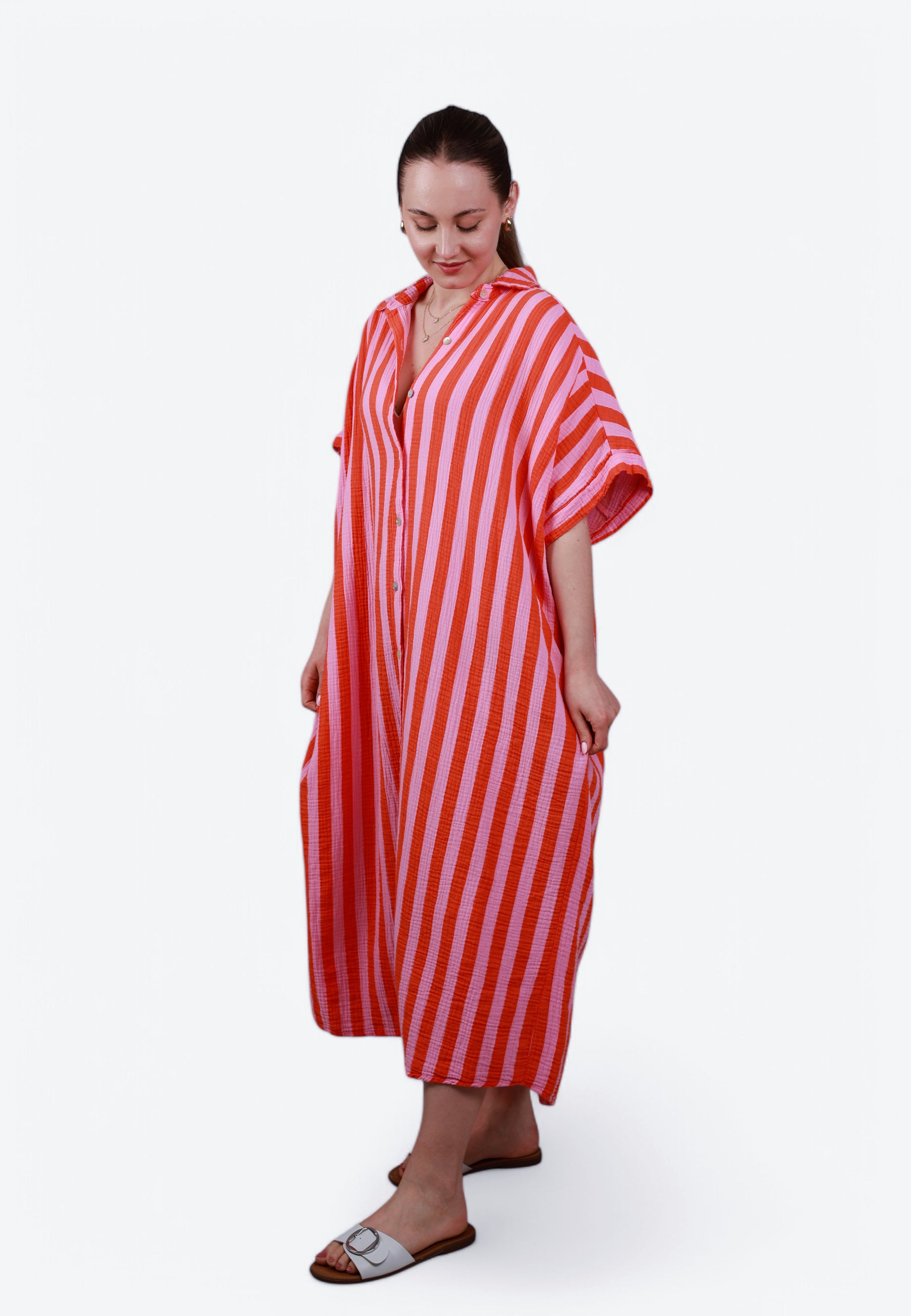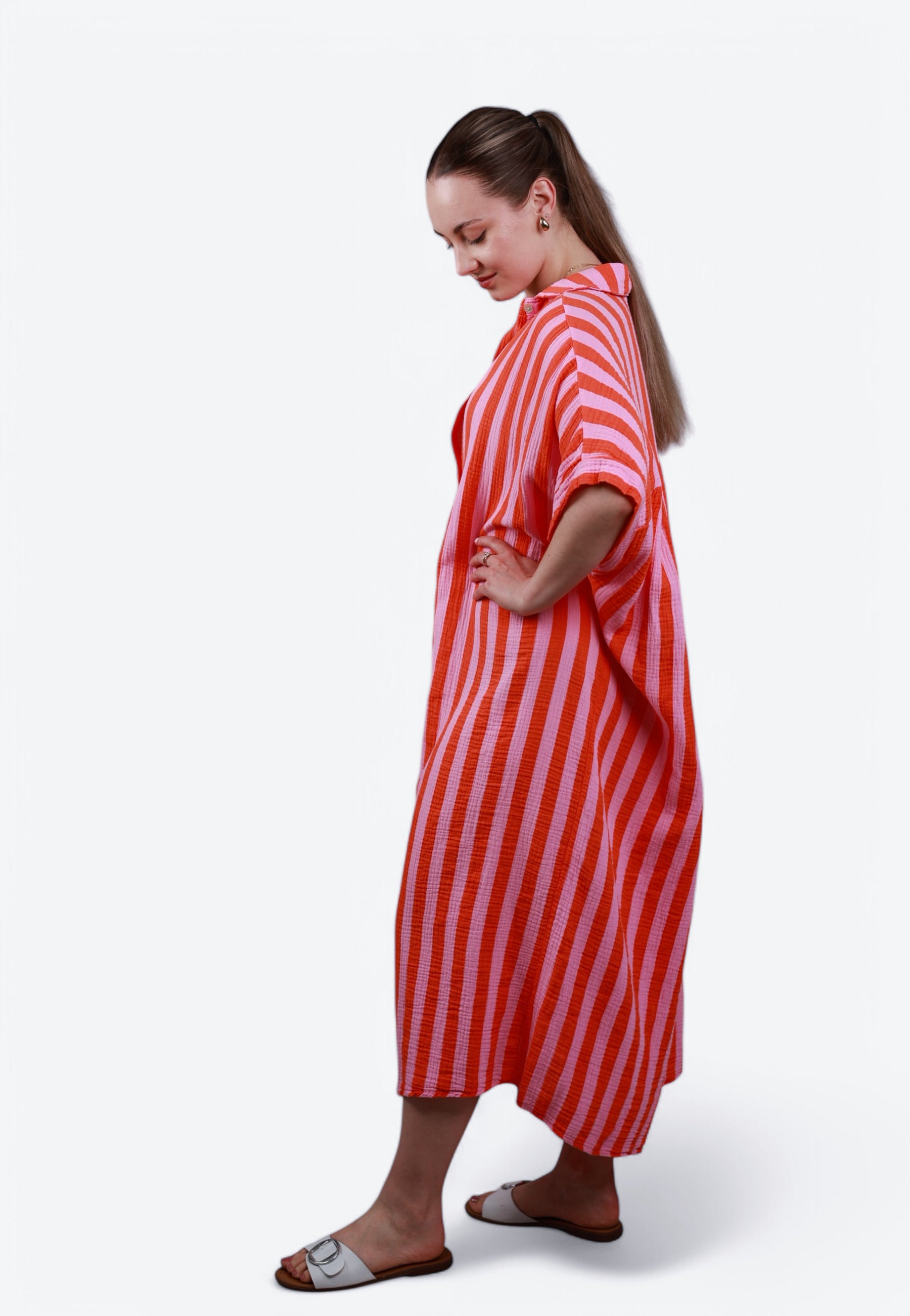 Musselin Oversize Kurzarm Blusenkleid Big Stripes