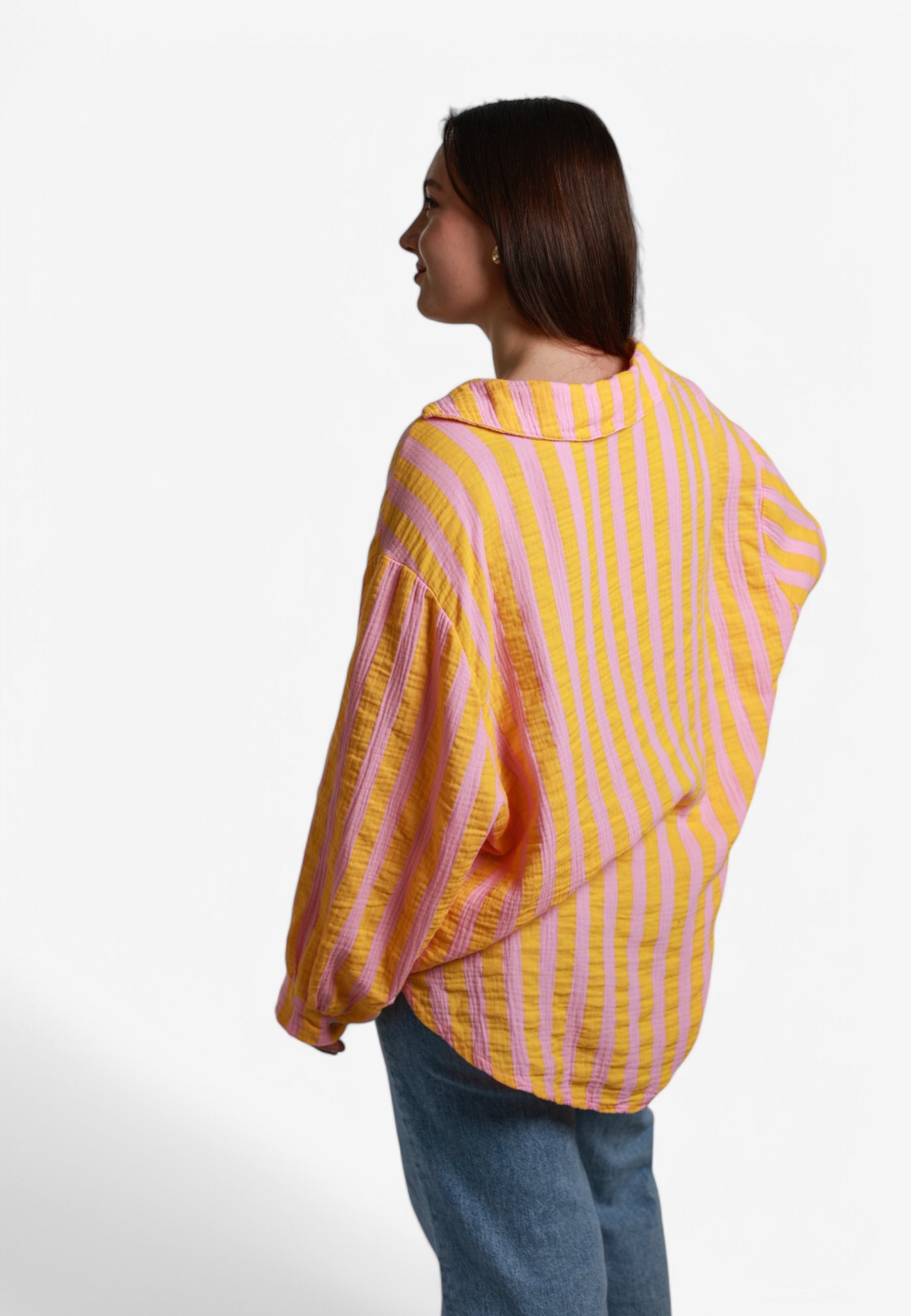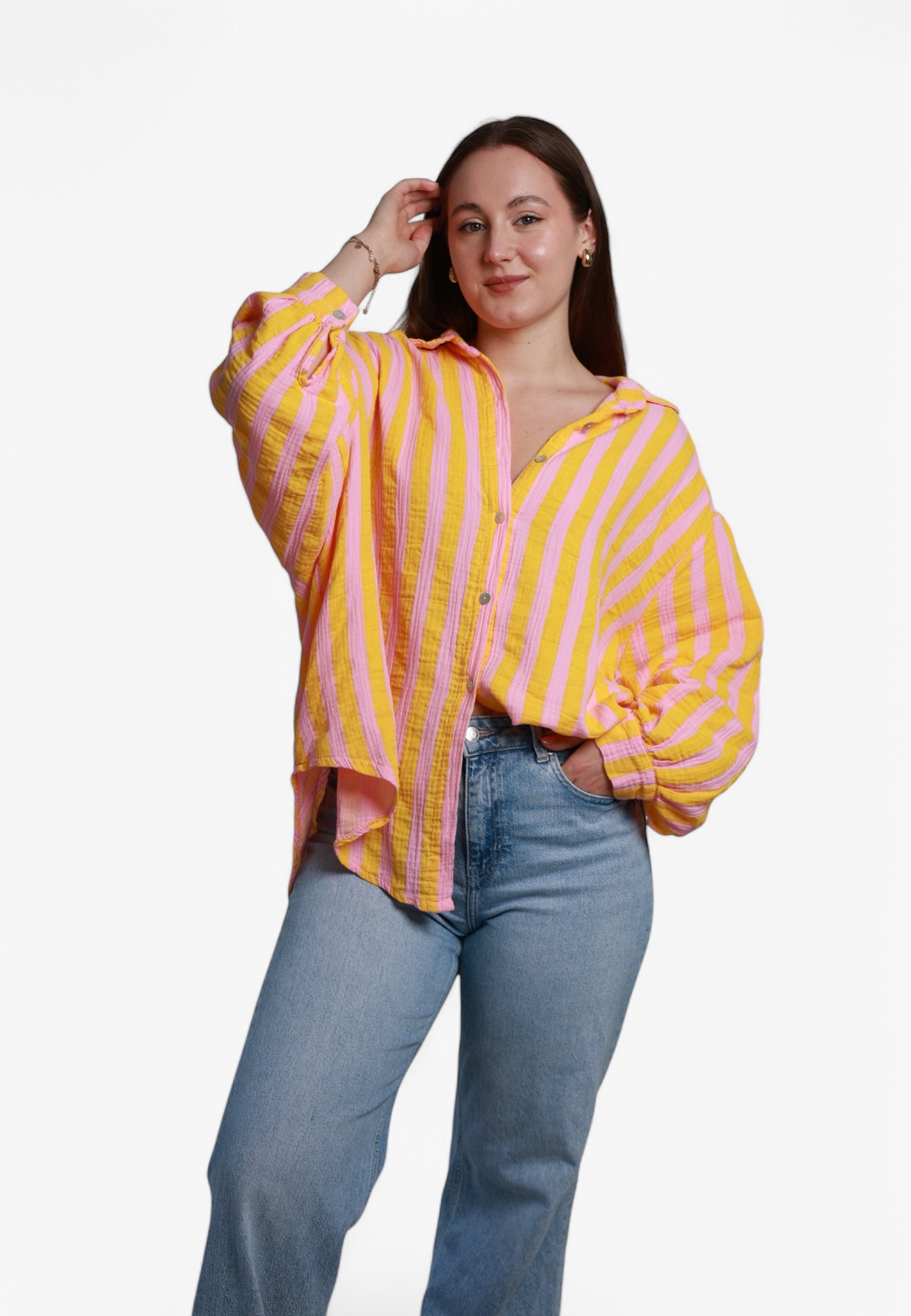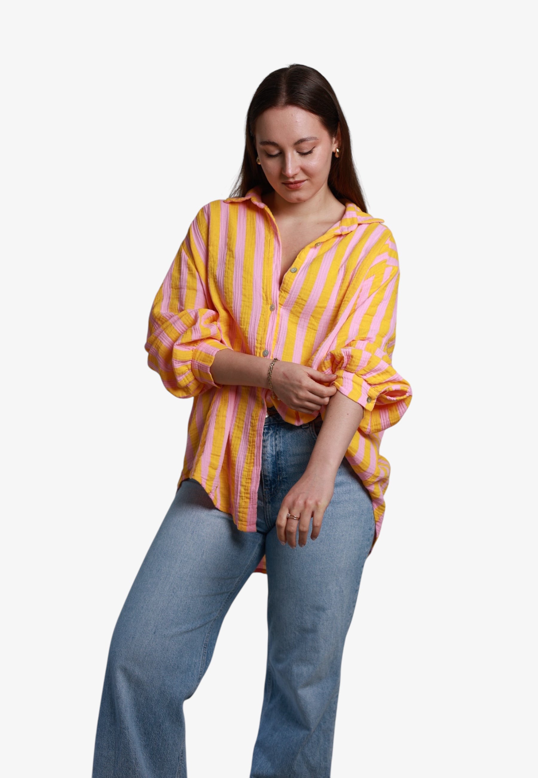 Musselinbluse Oversize Midi Big Stripes - Gelb