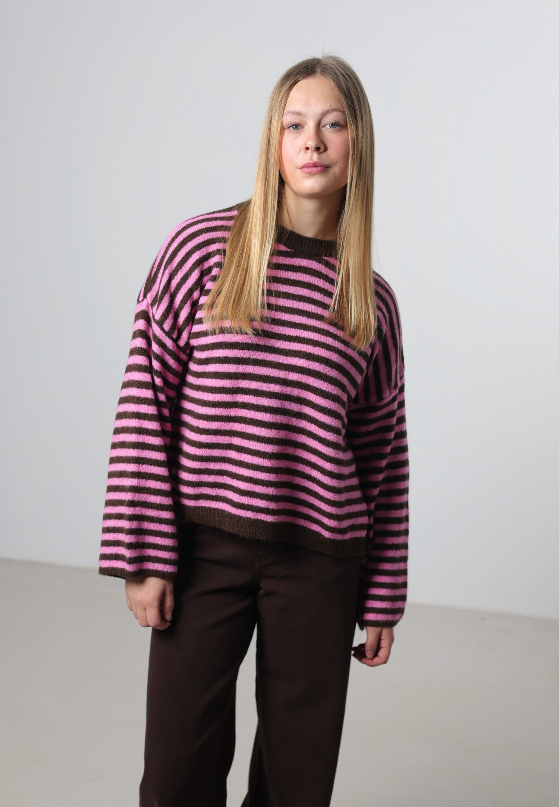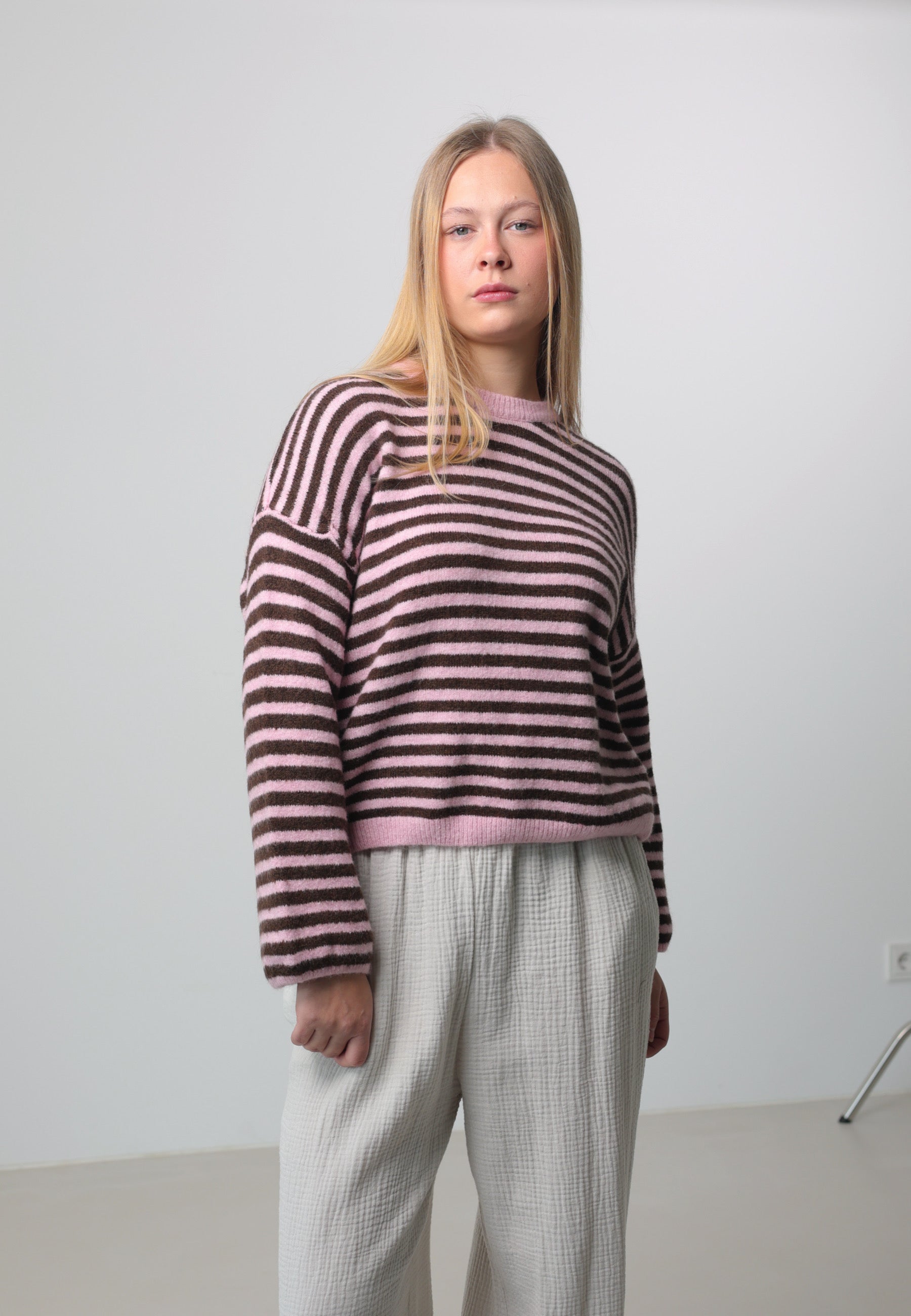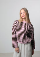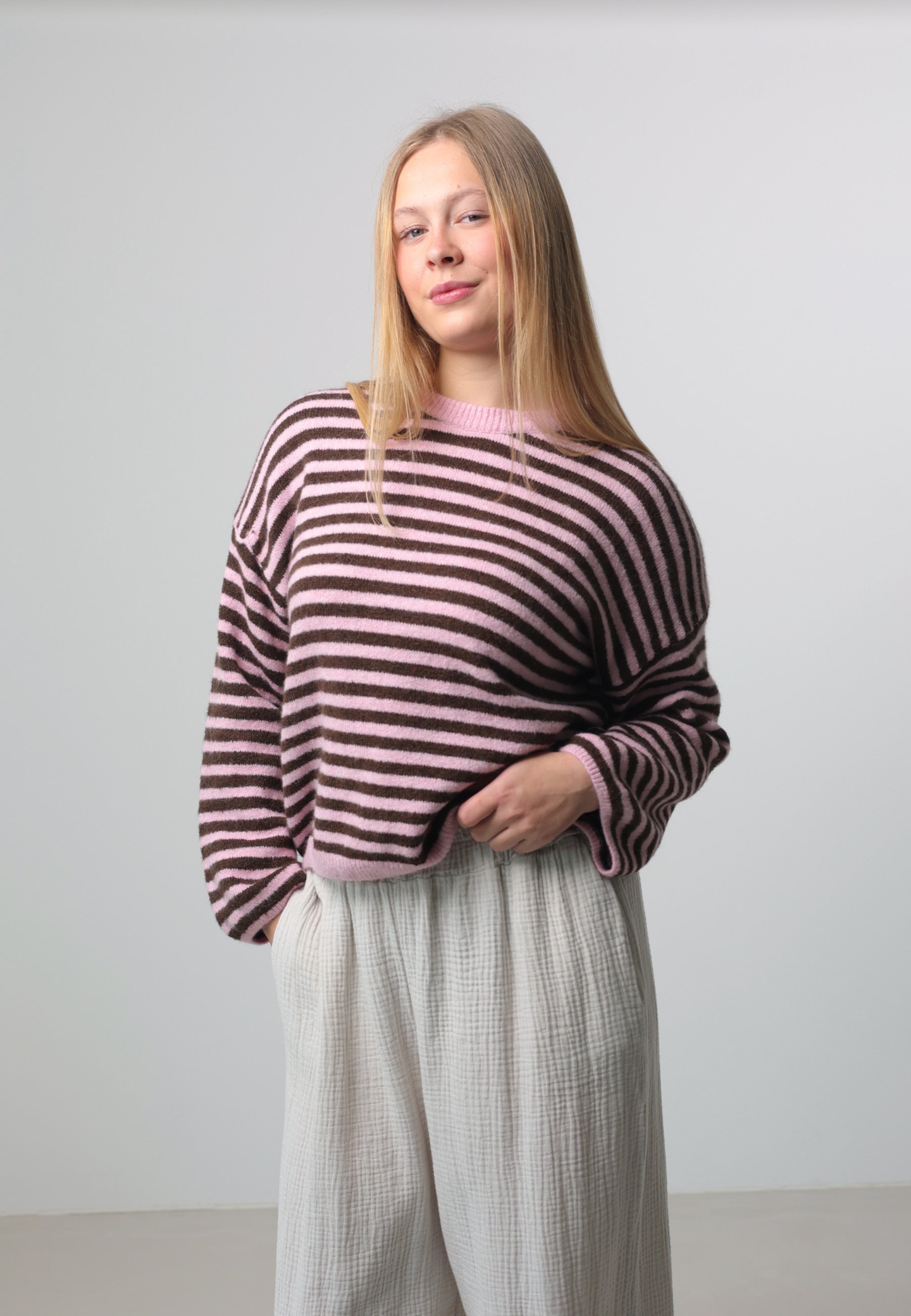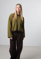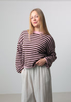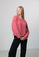 Ein modischer Strickpullover mit harmonischem Streifendesign. Der locker fallende Schnitt mit weiten Ärmeln sorgt für einen lässigen Look und ist ideal für stylishe Layering-Outfits. Das Material ist angenehm weich, formstabil und perfekt für den Alltag.
