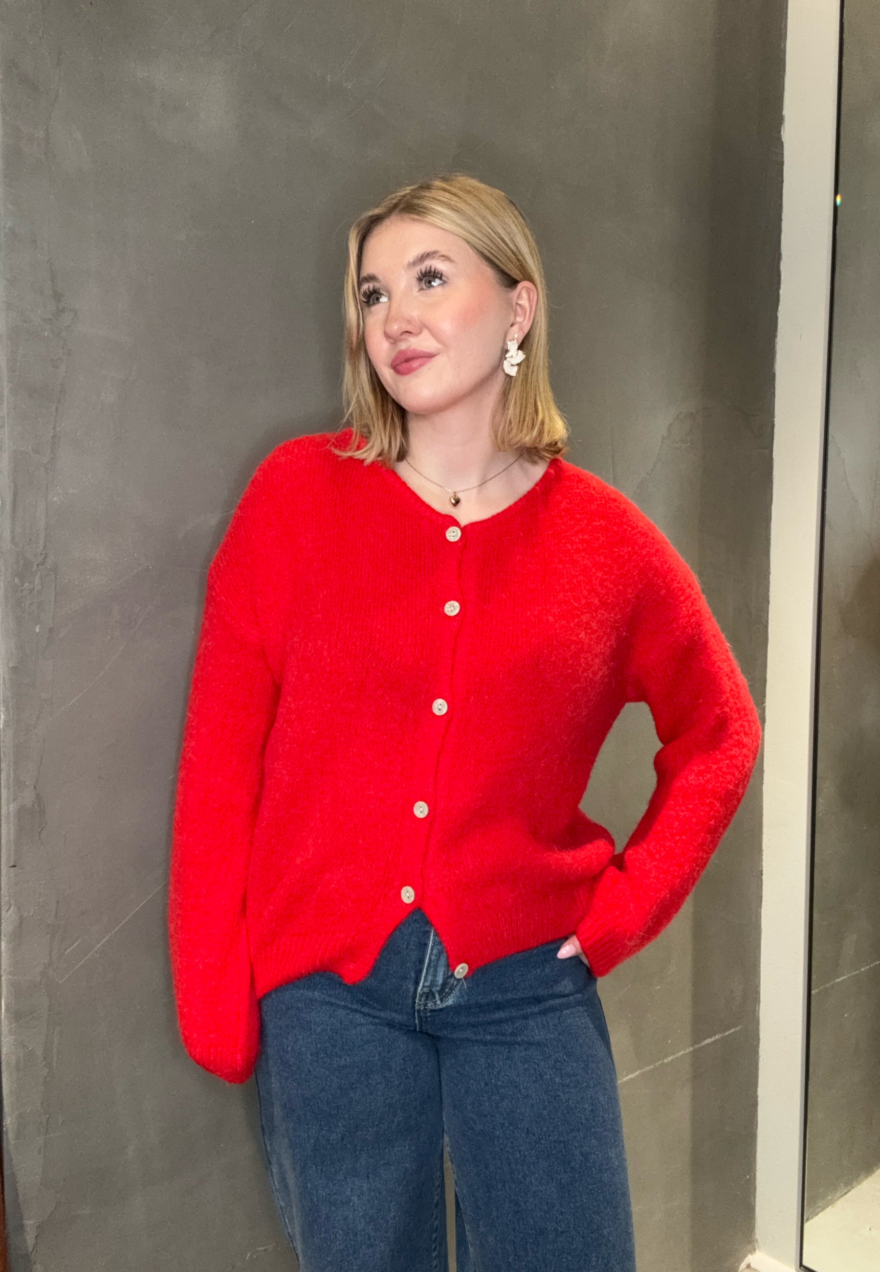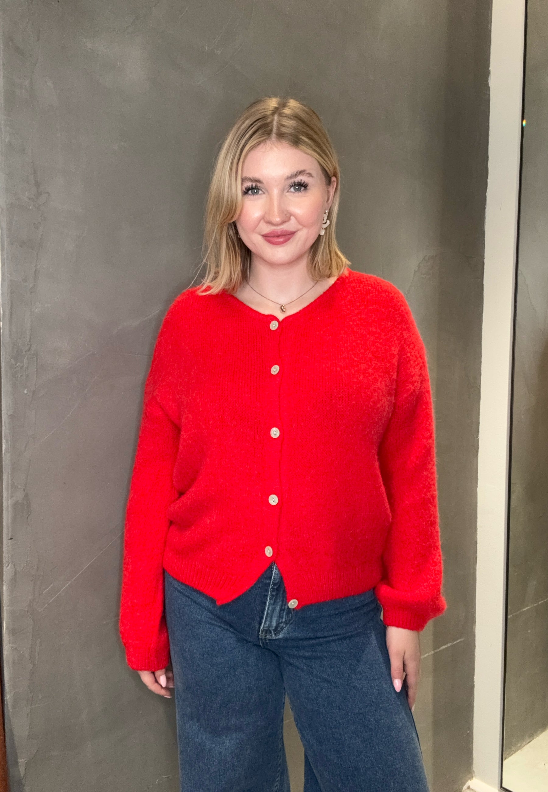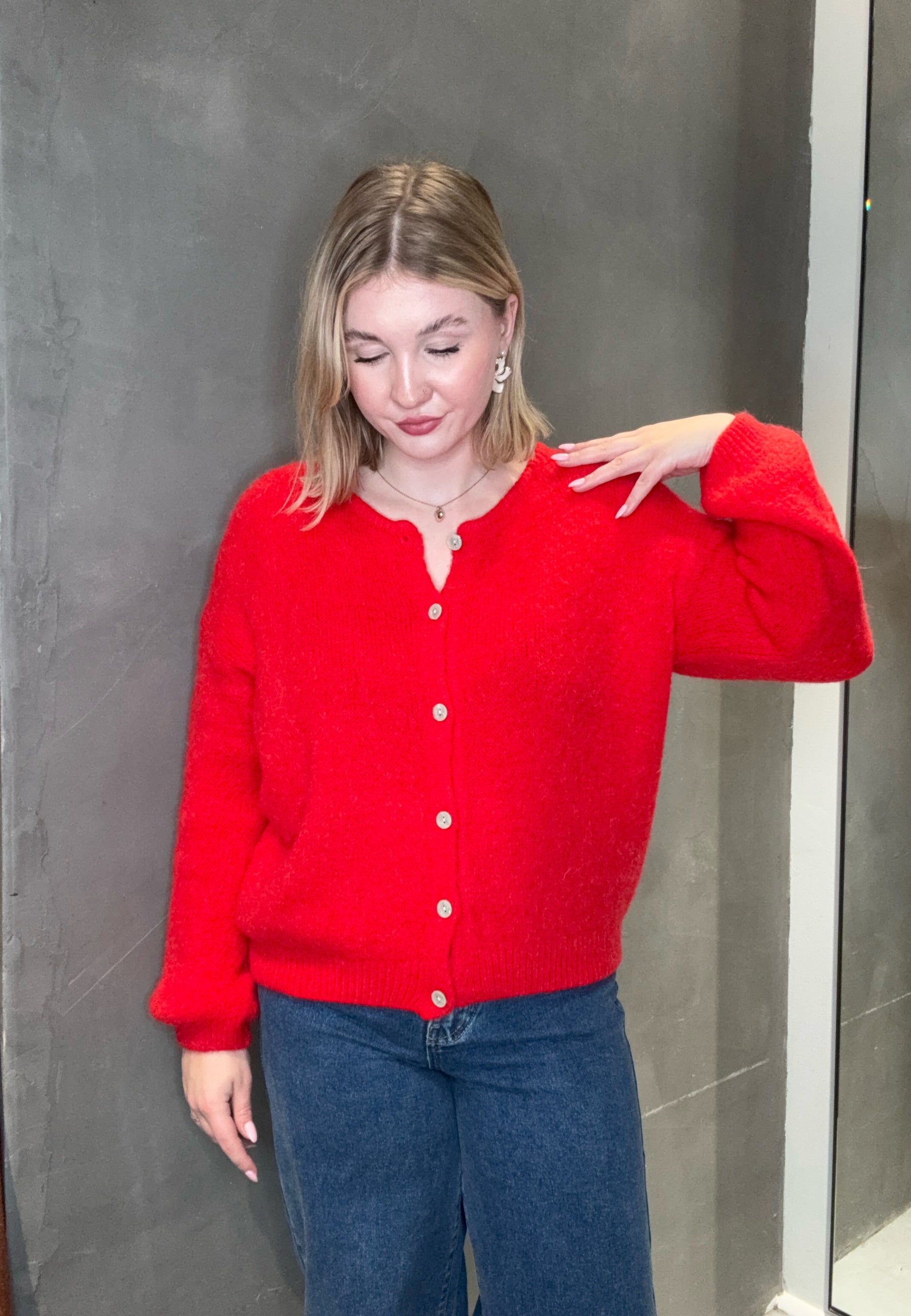 Alpaka Strickjacke mit V-Ausschnitt - Royalblau