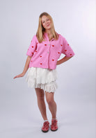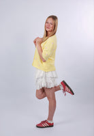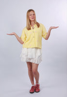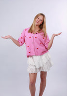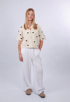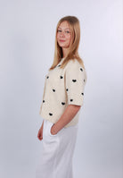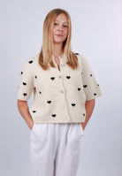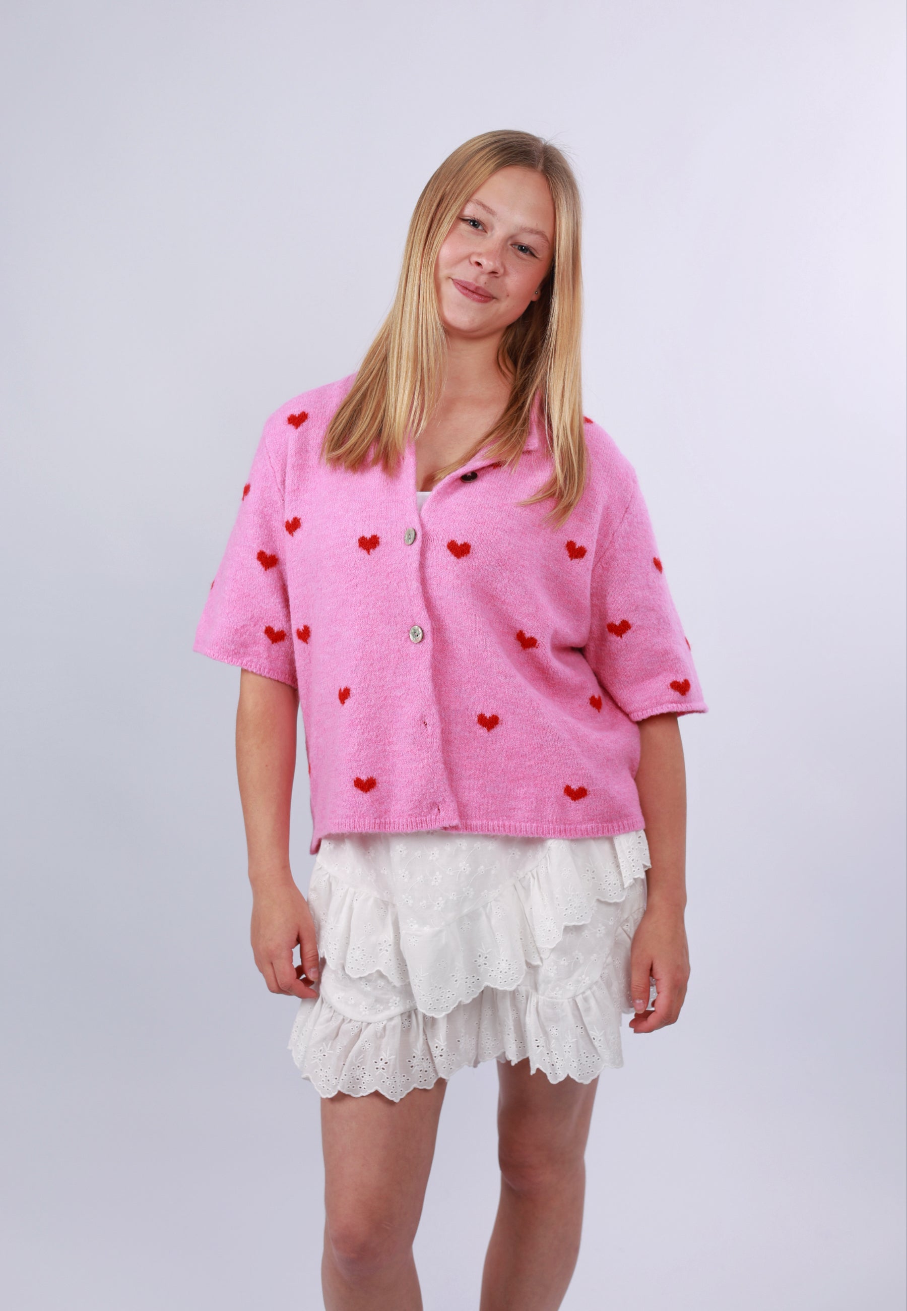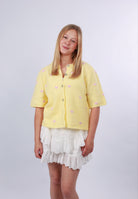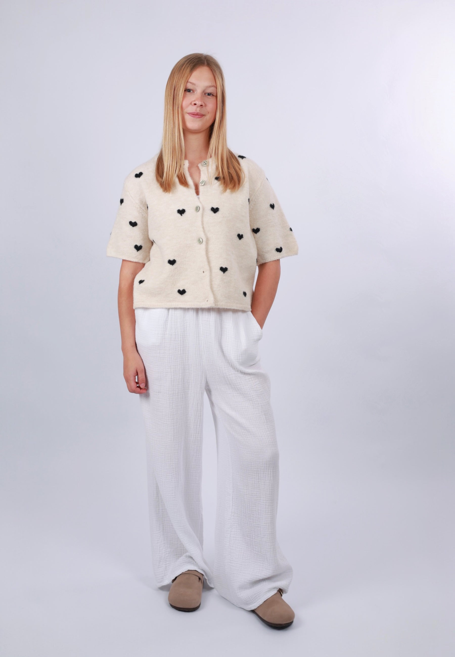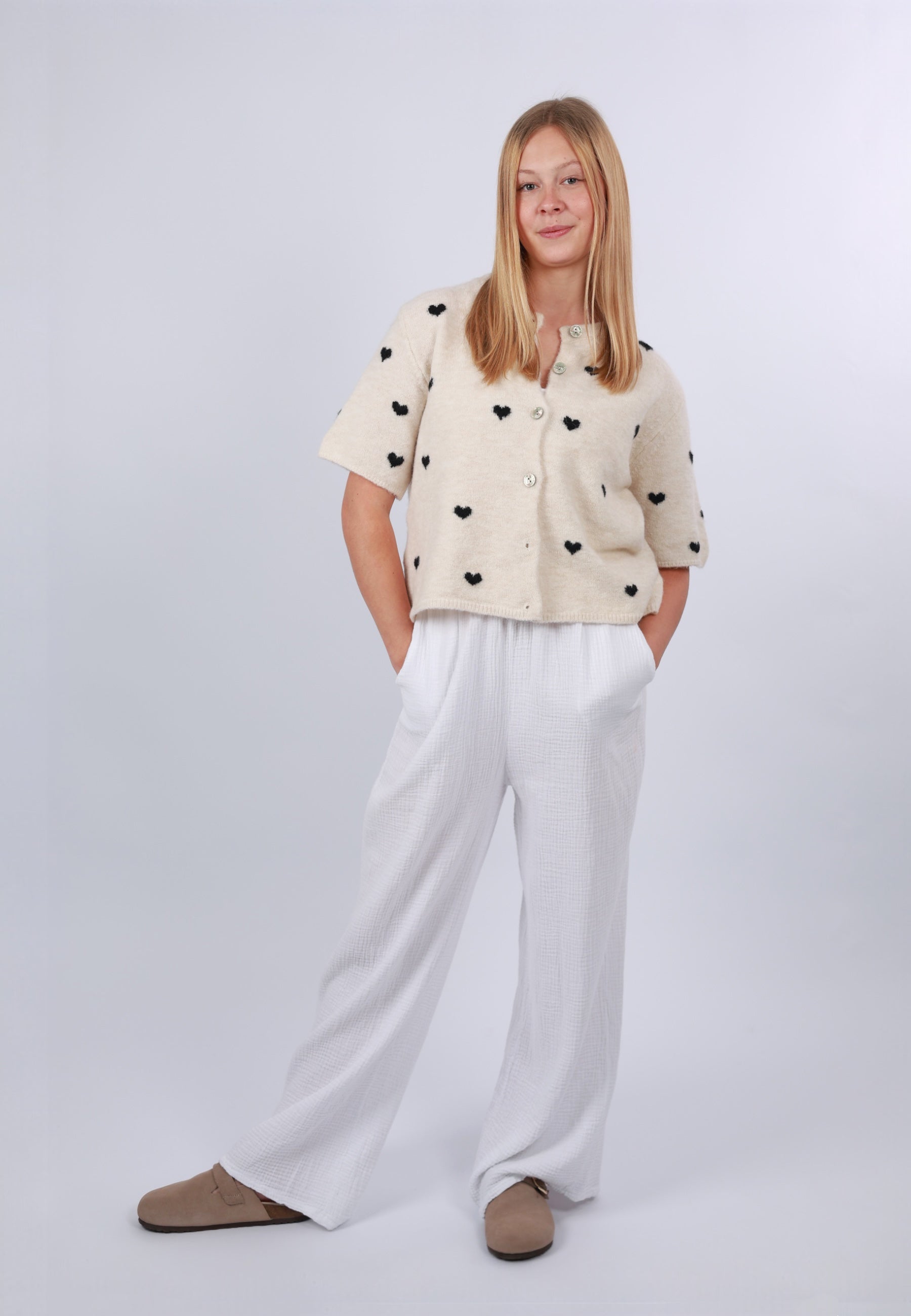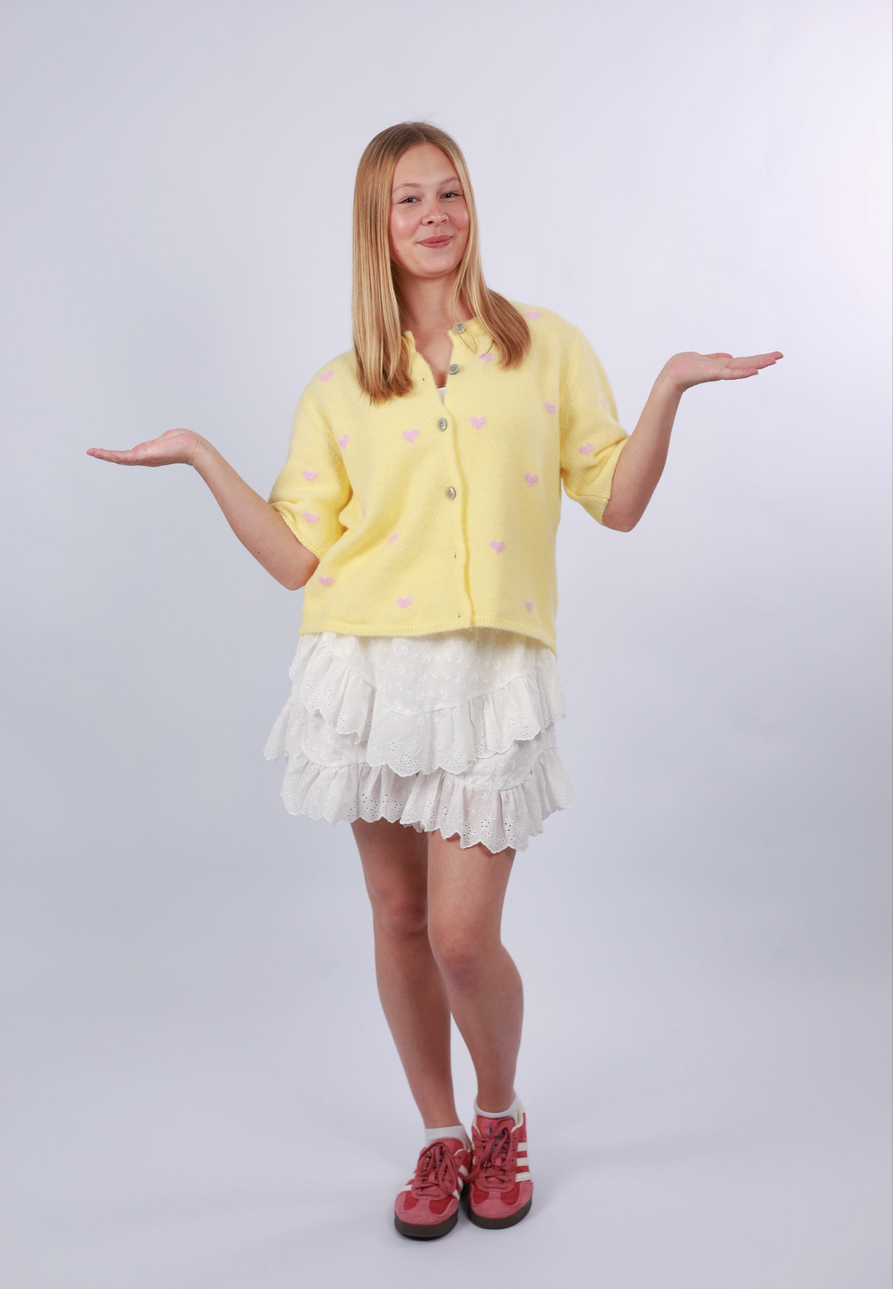 - Cordelia ist 1,67m groß und trägt den Cardigan