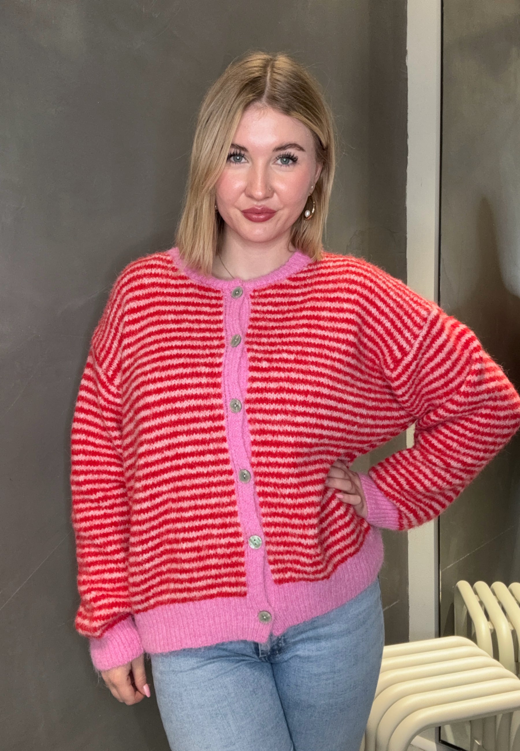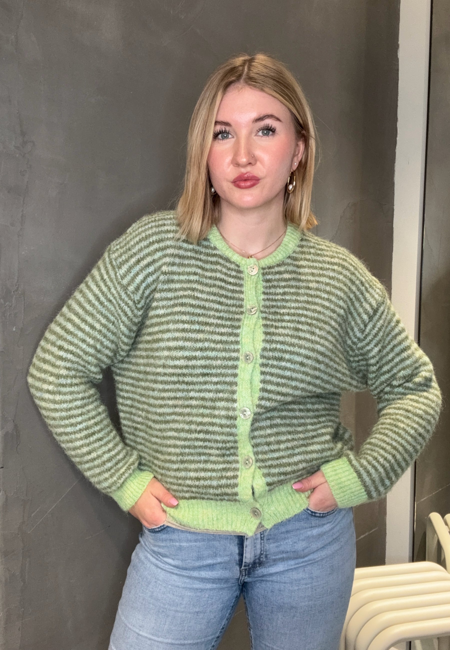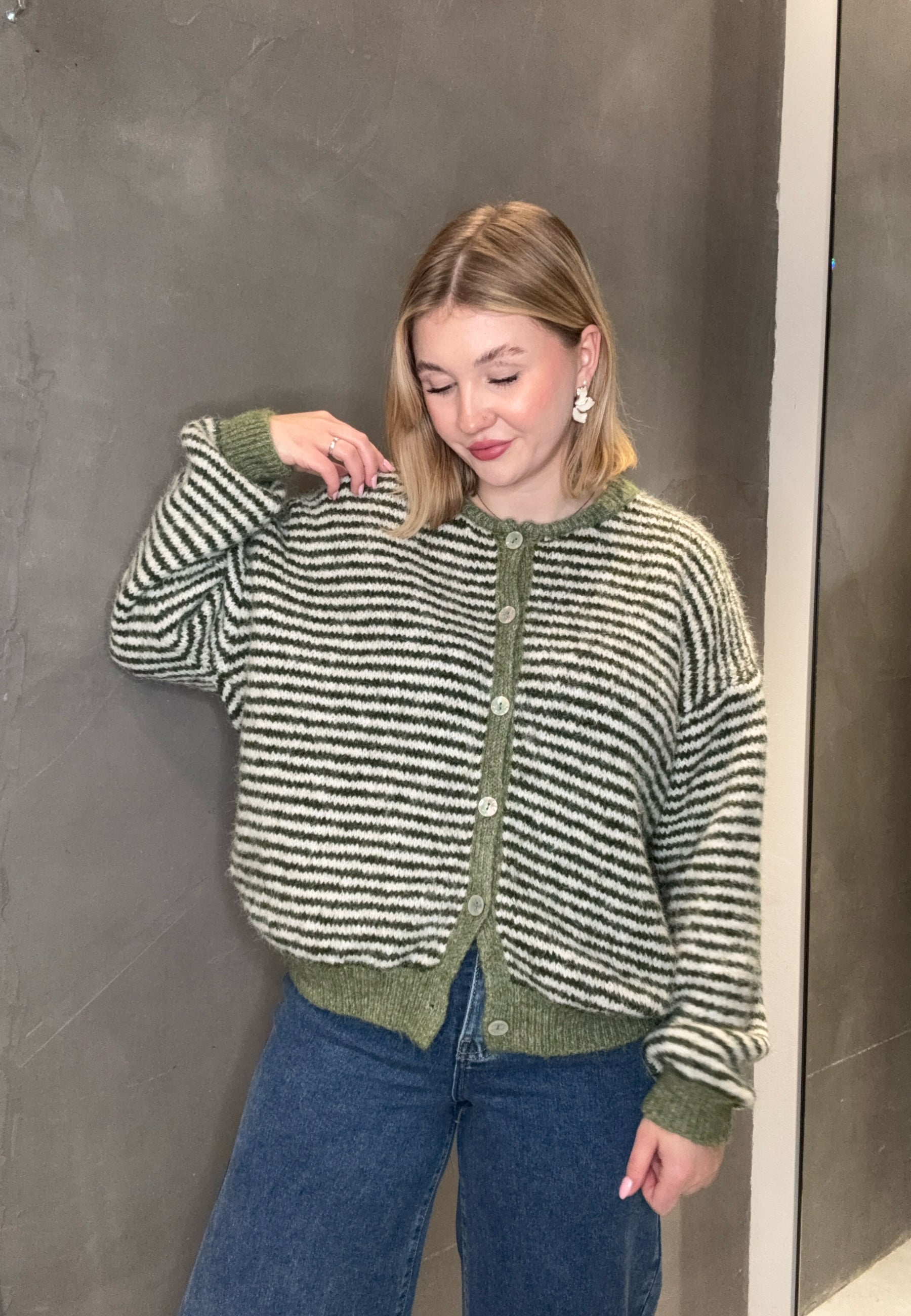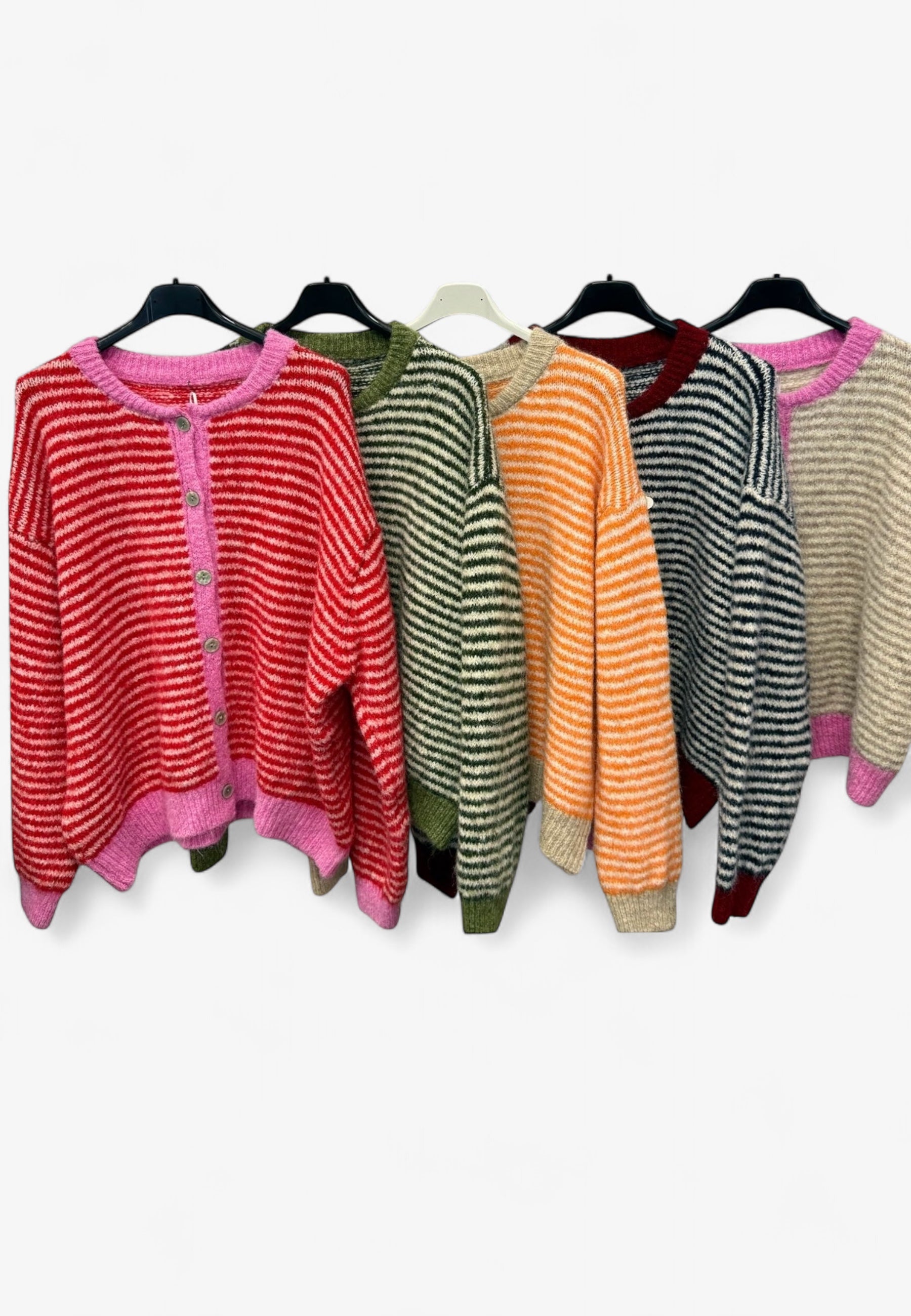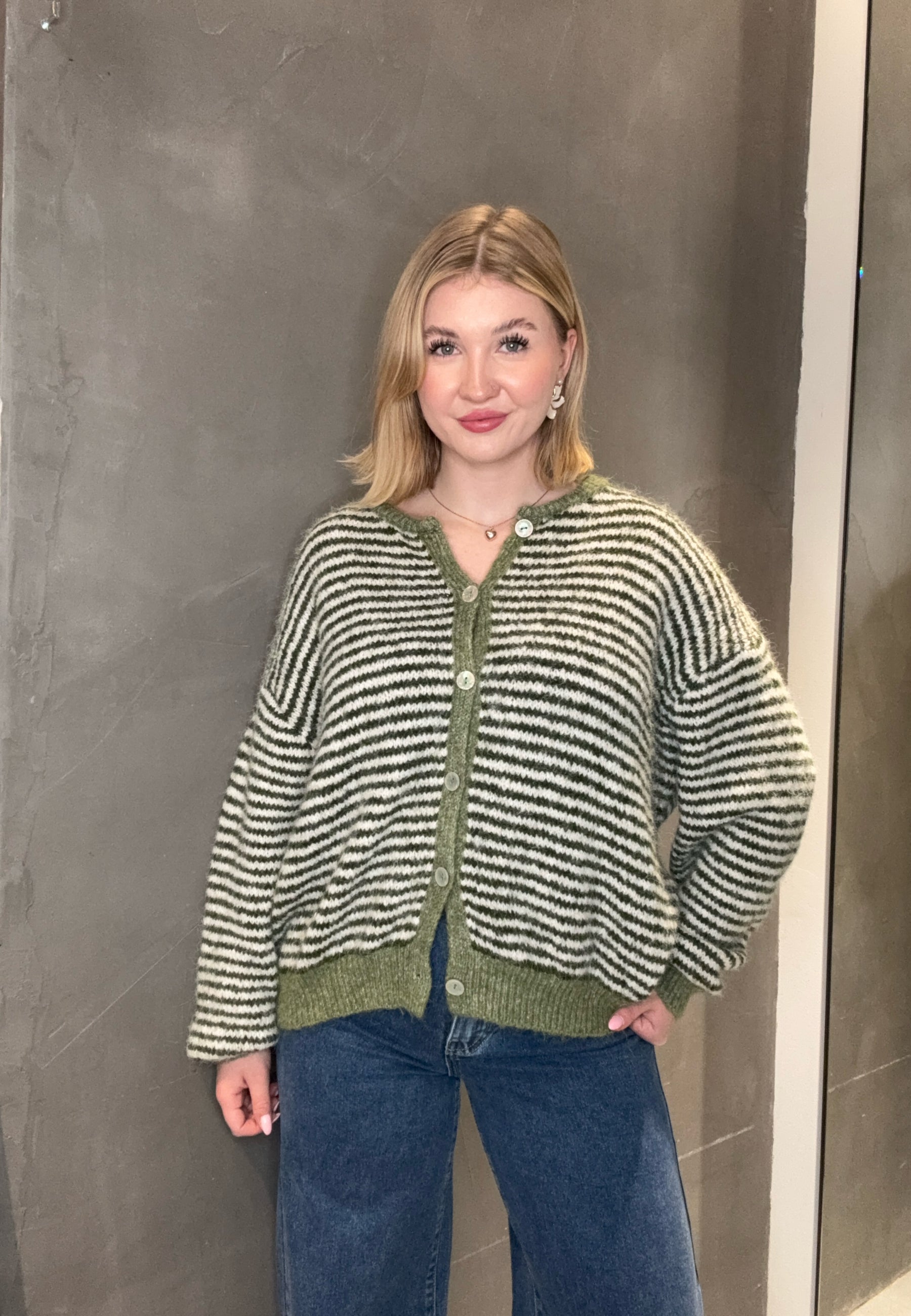 - Cordelia ist 1,67m groß und trägt die Strickjacke.