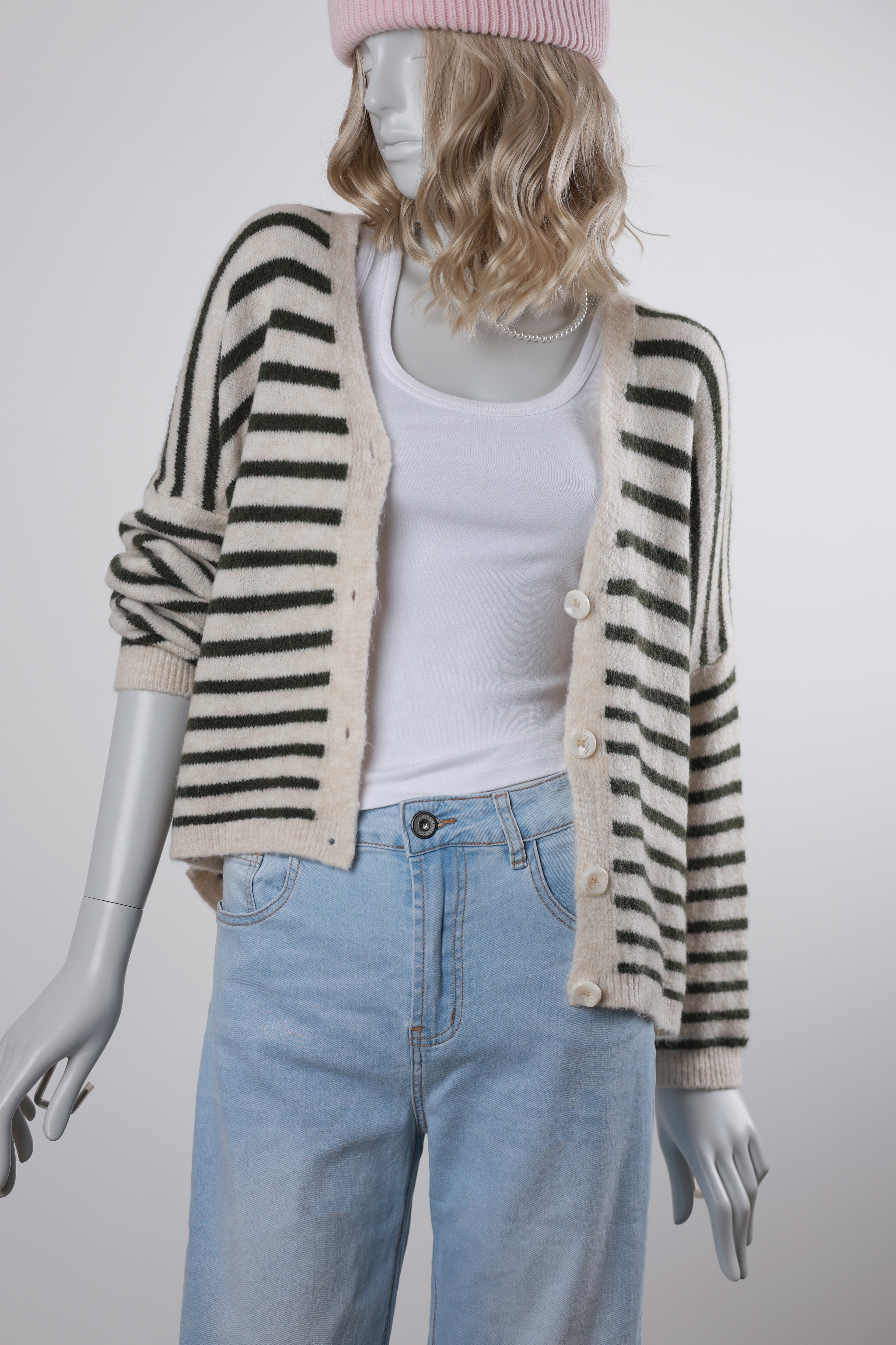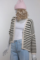 Strick Cardigan - Cream mit Olive gestreift