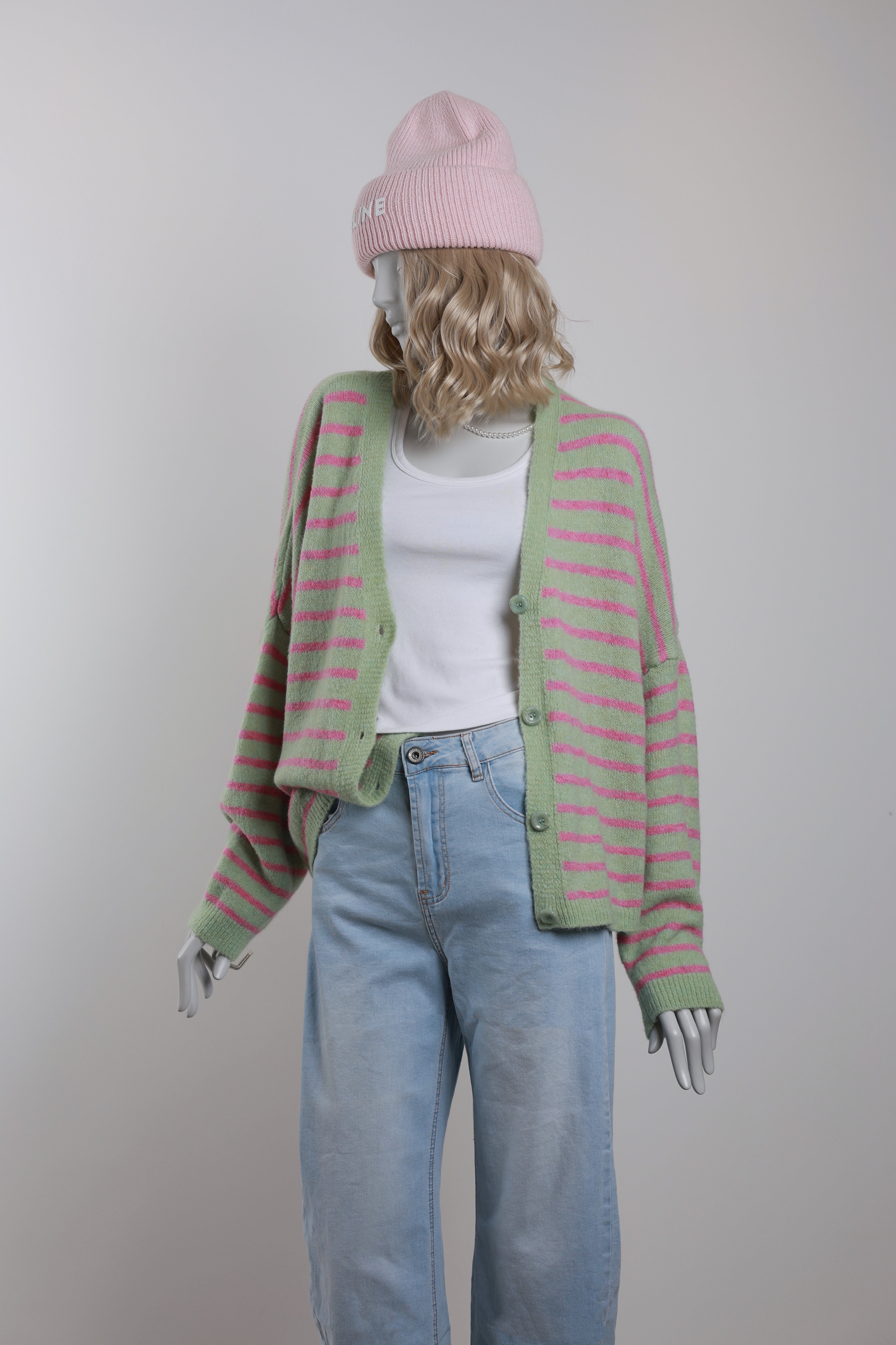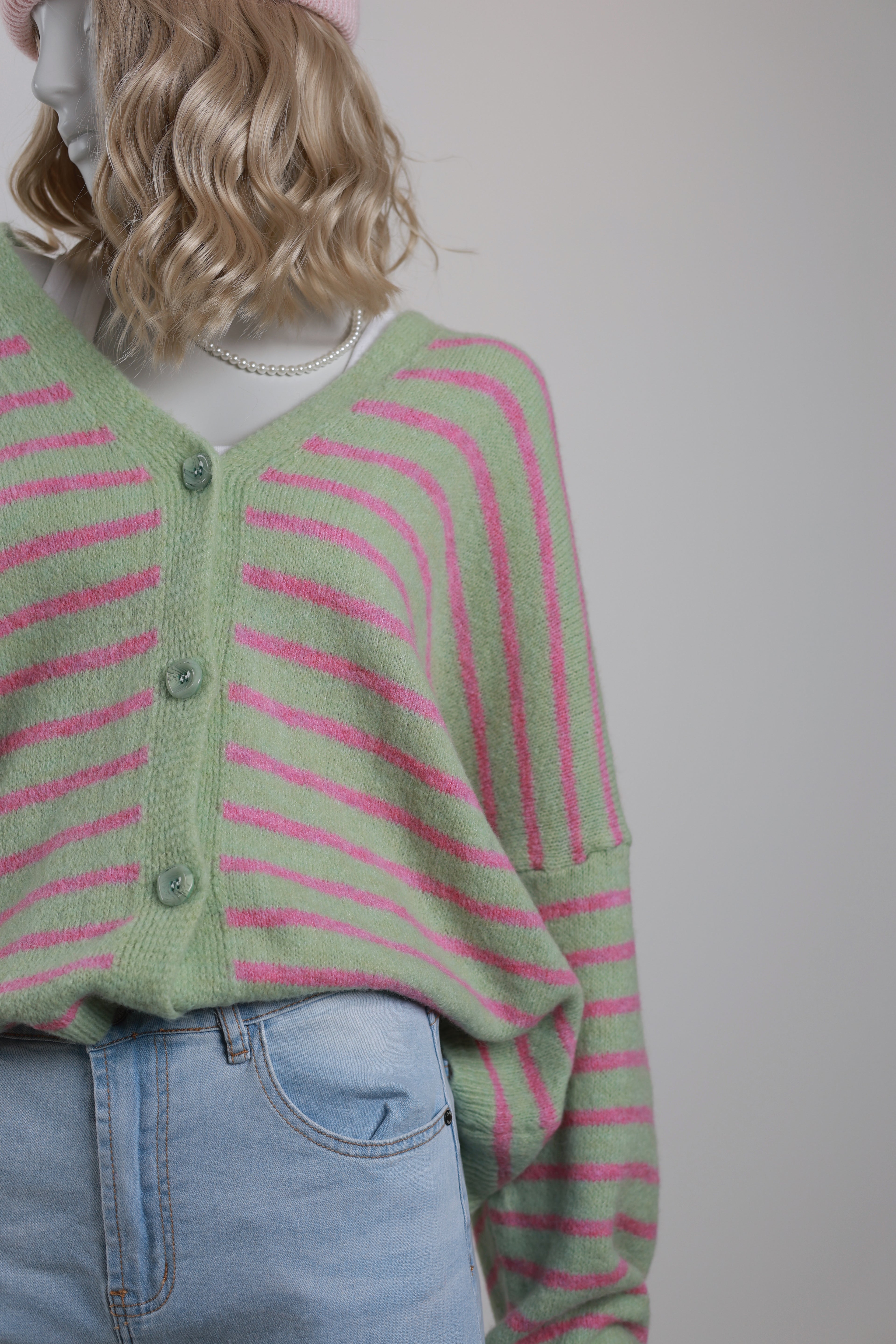 Strick Cardigan - Pink mit Mint gestreift