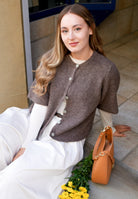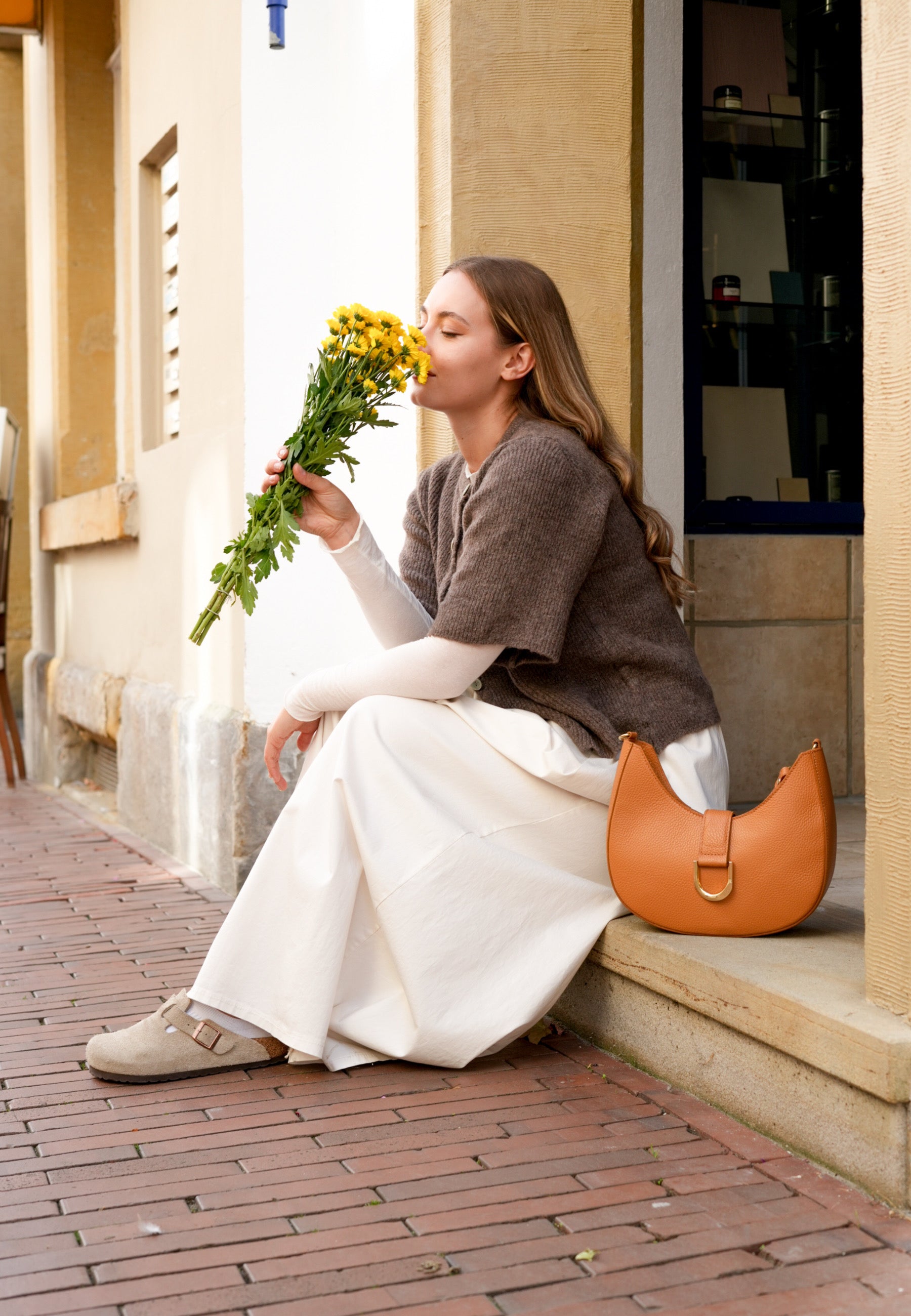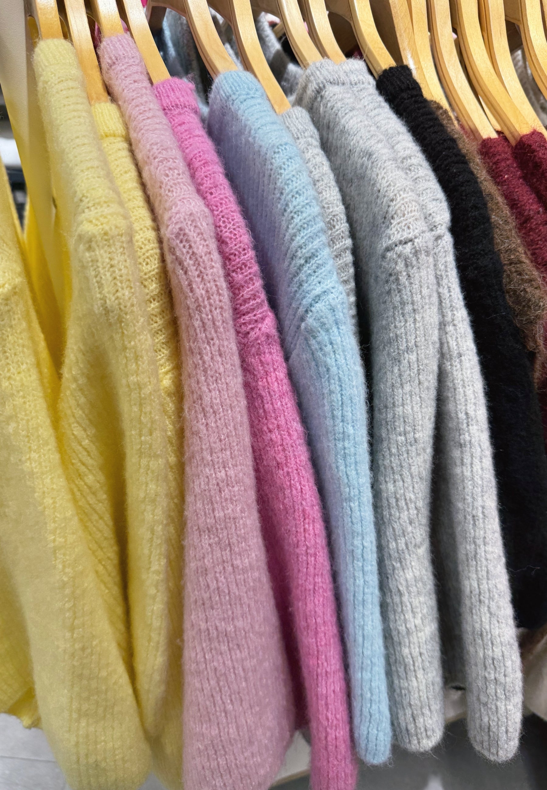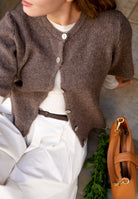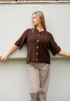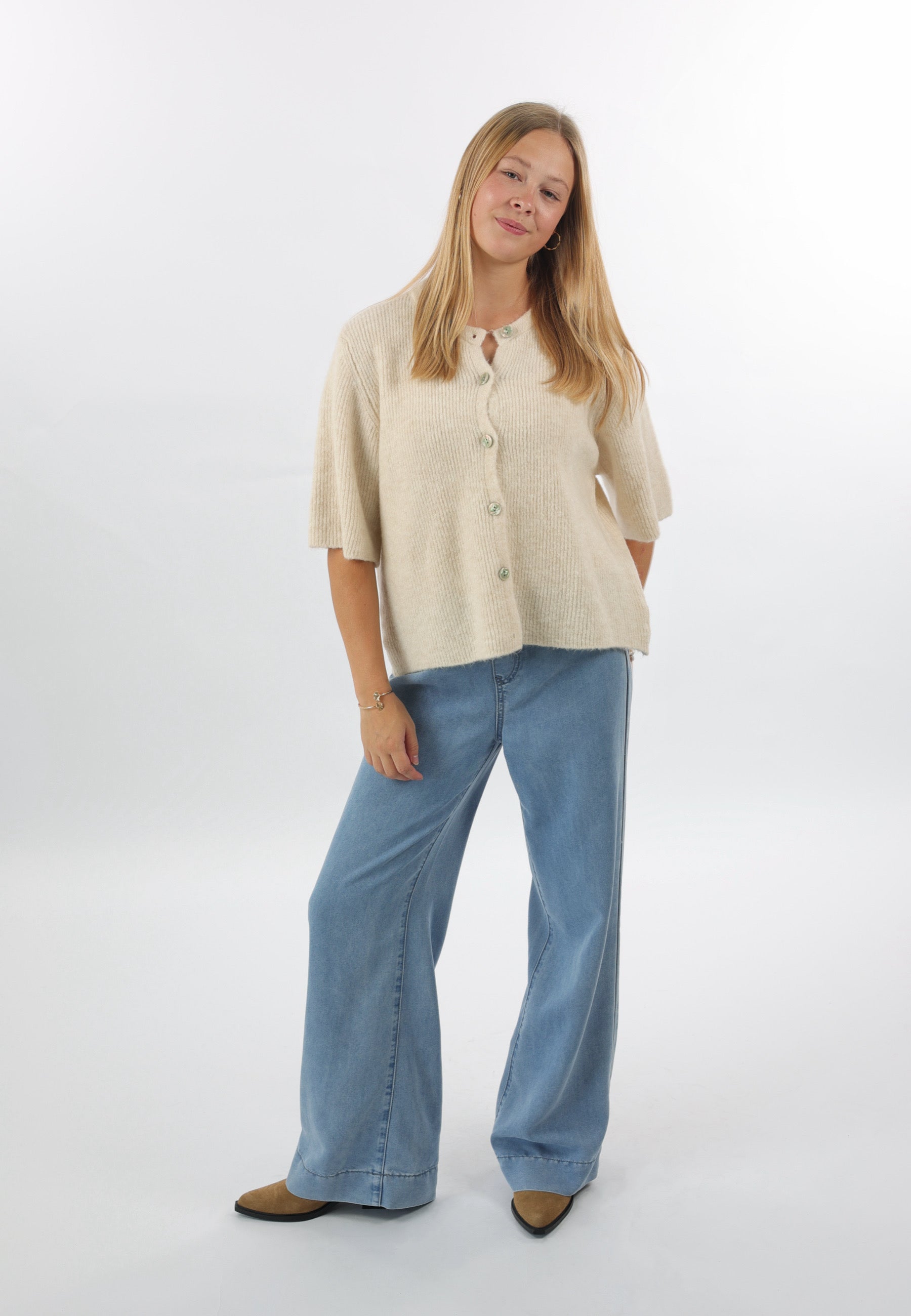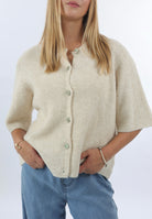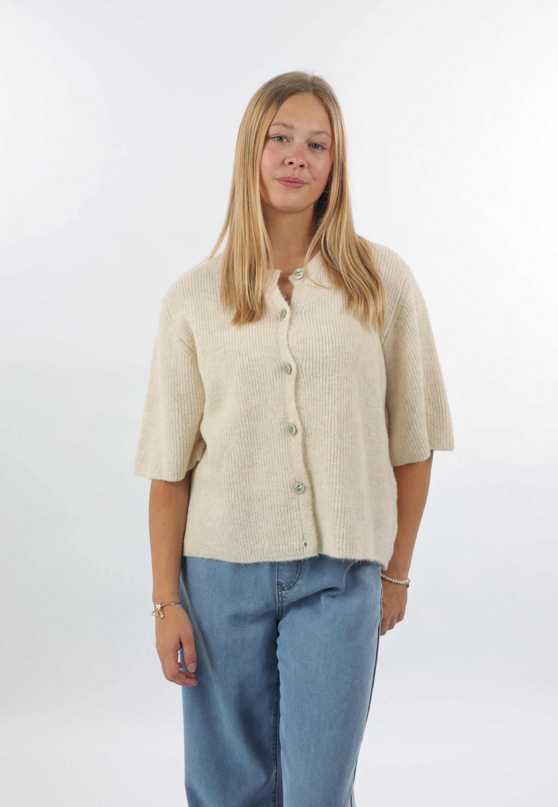 - Cordelia ist 1,67m groß und trägt die Strickjacke.