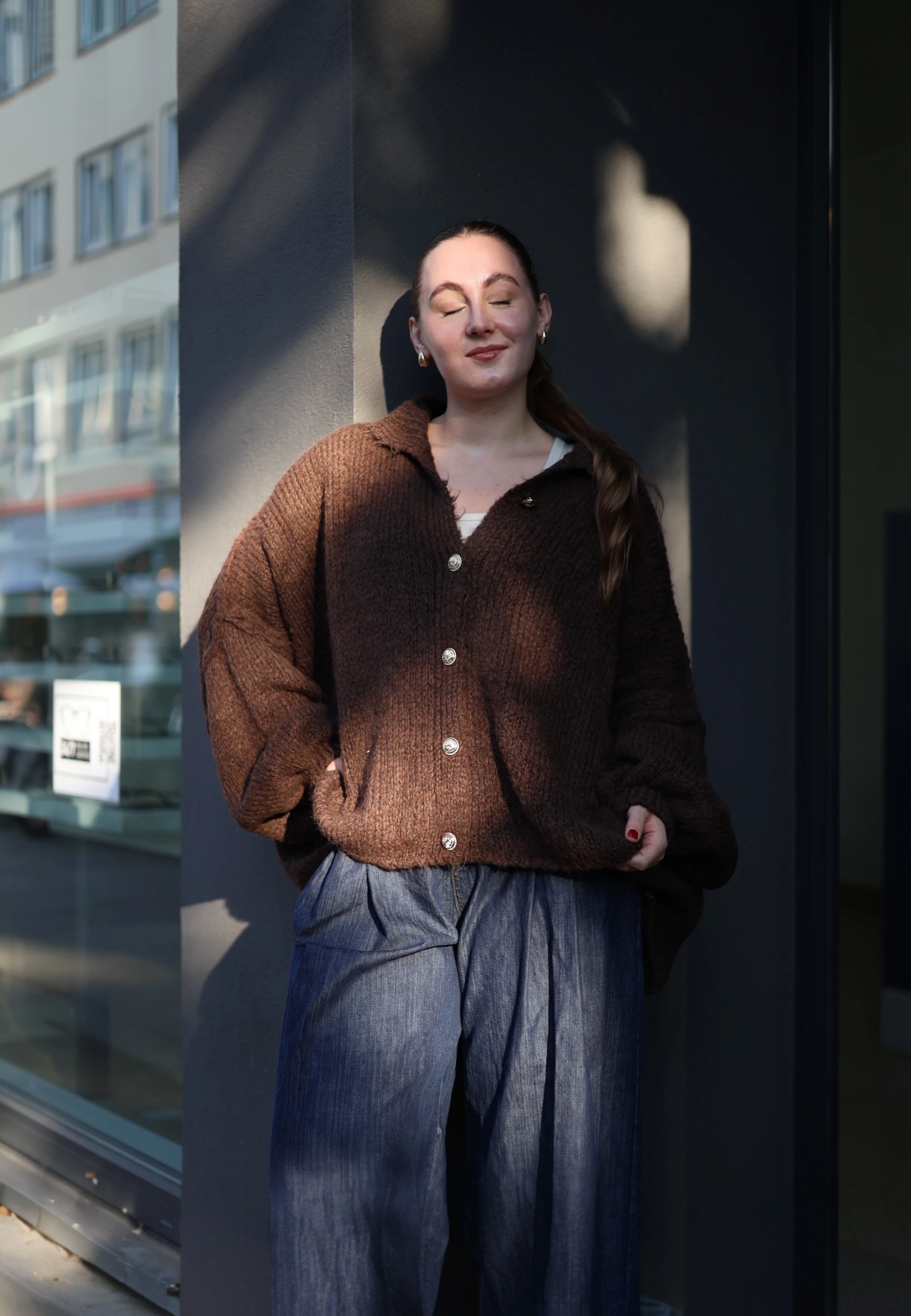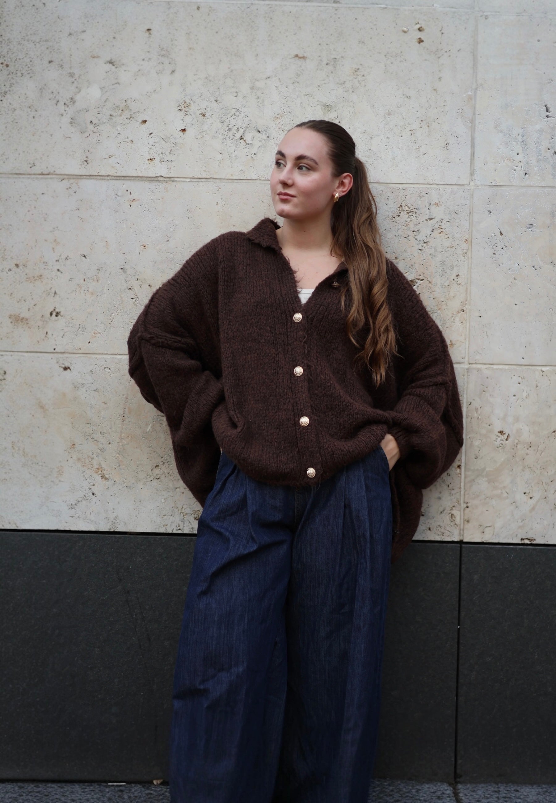 Strickjacke mit goldenen Knöpfen Ella - Schoko