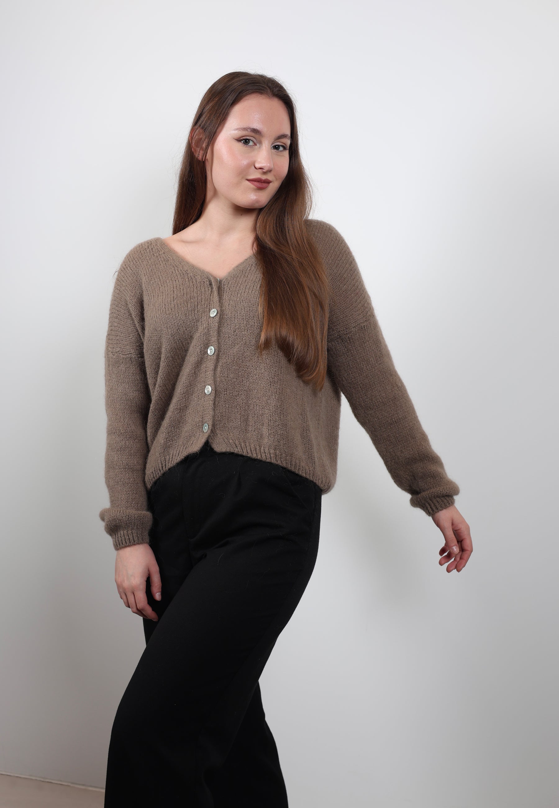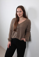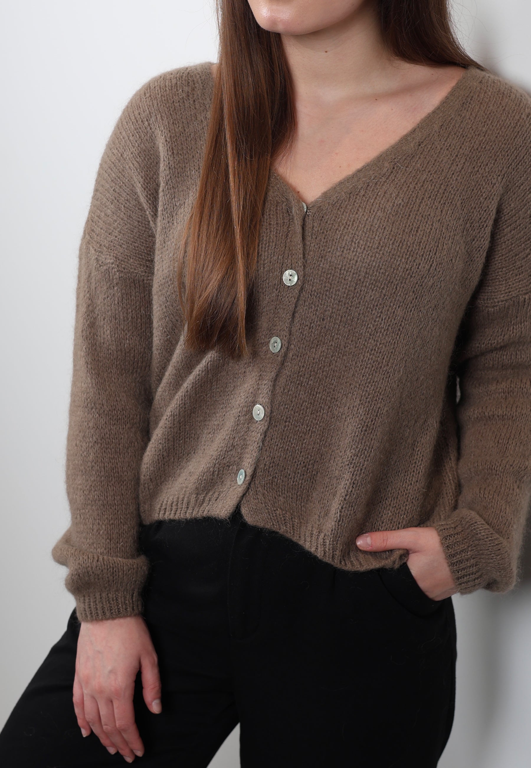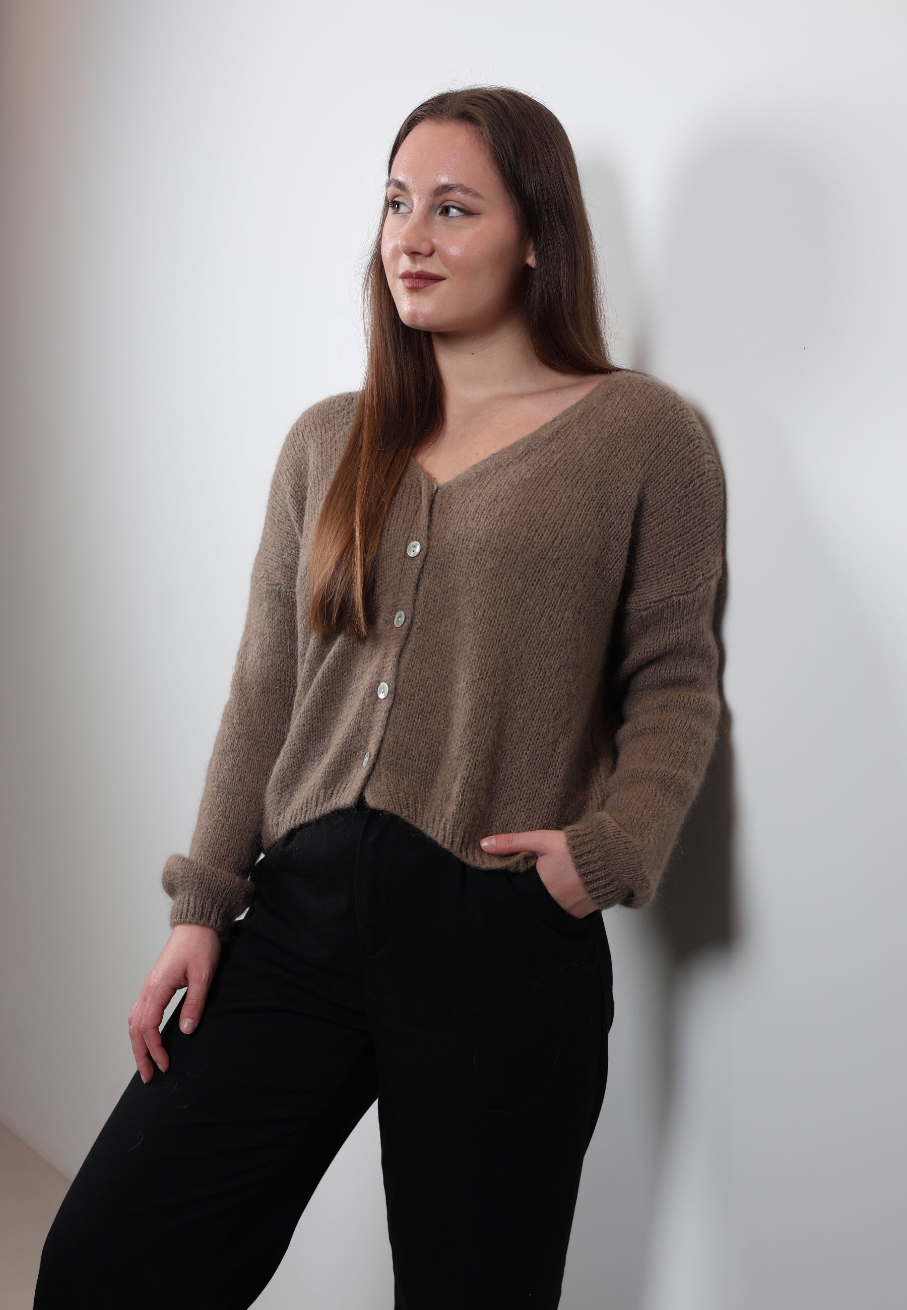 - Anastacia ist 1,70m groß und trägt die Strickjacke.