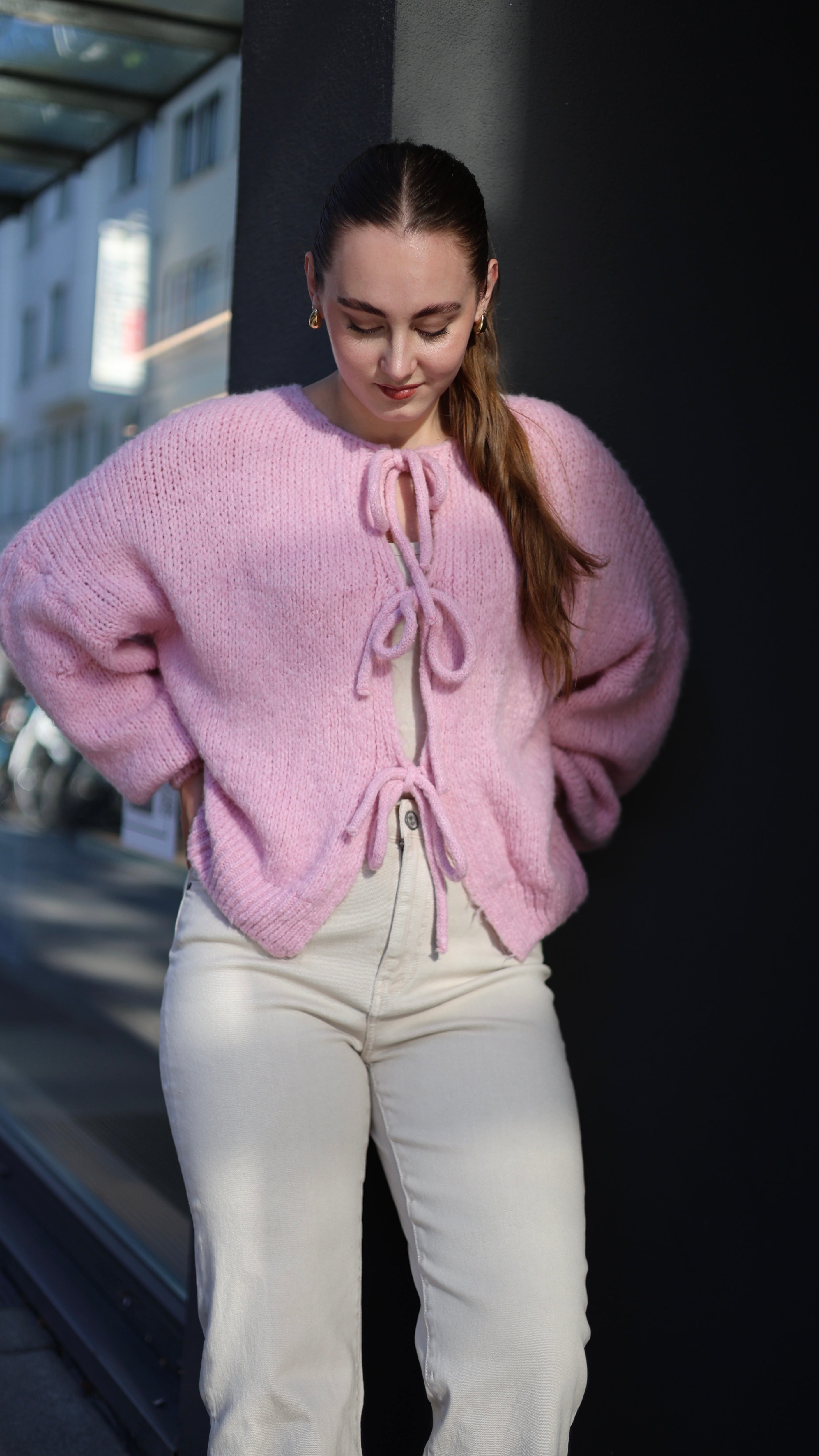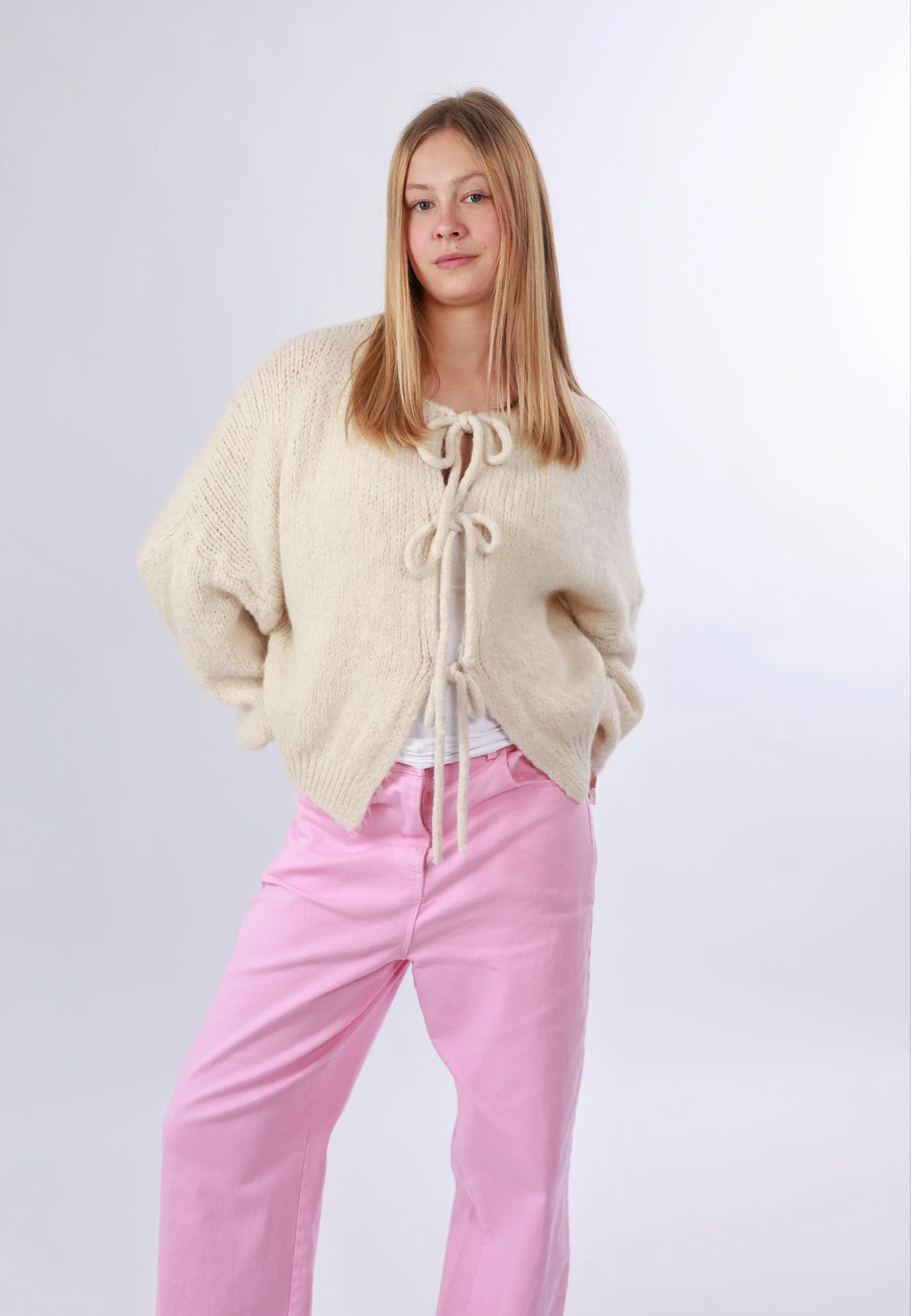 Knit Cardigan Leo Triple Bow - Pink Orange