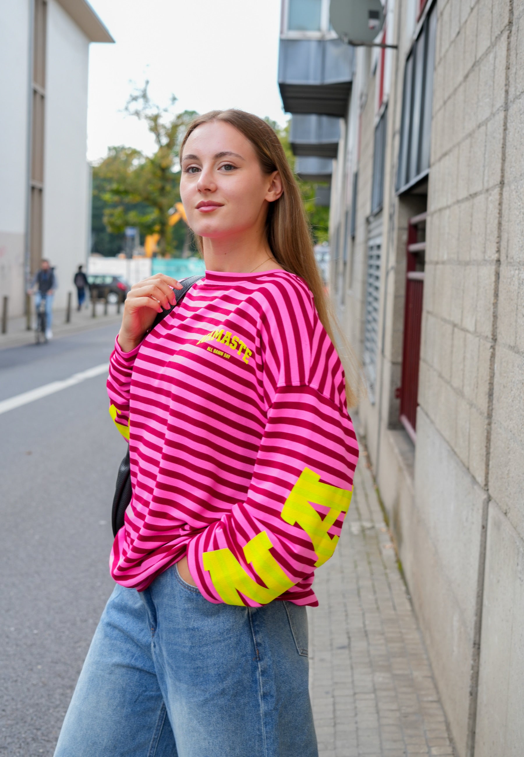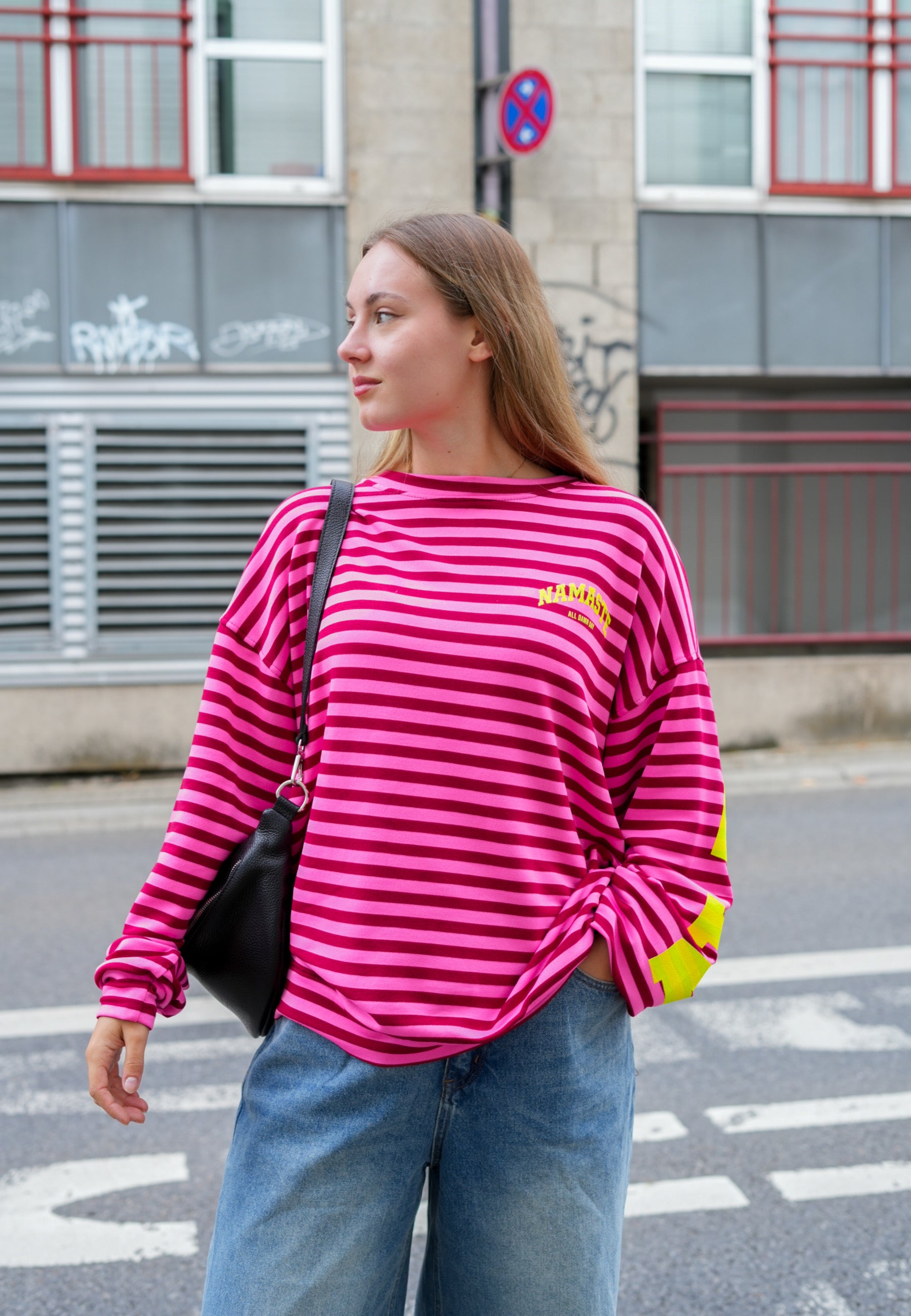 Classic Striped Oversize T-Shirt - Rosa mit Rot