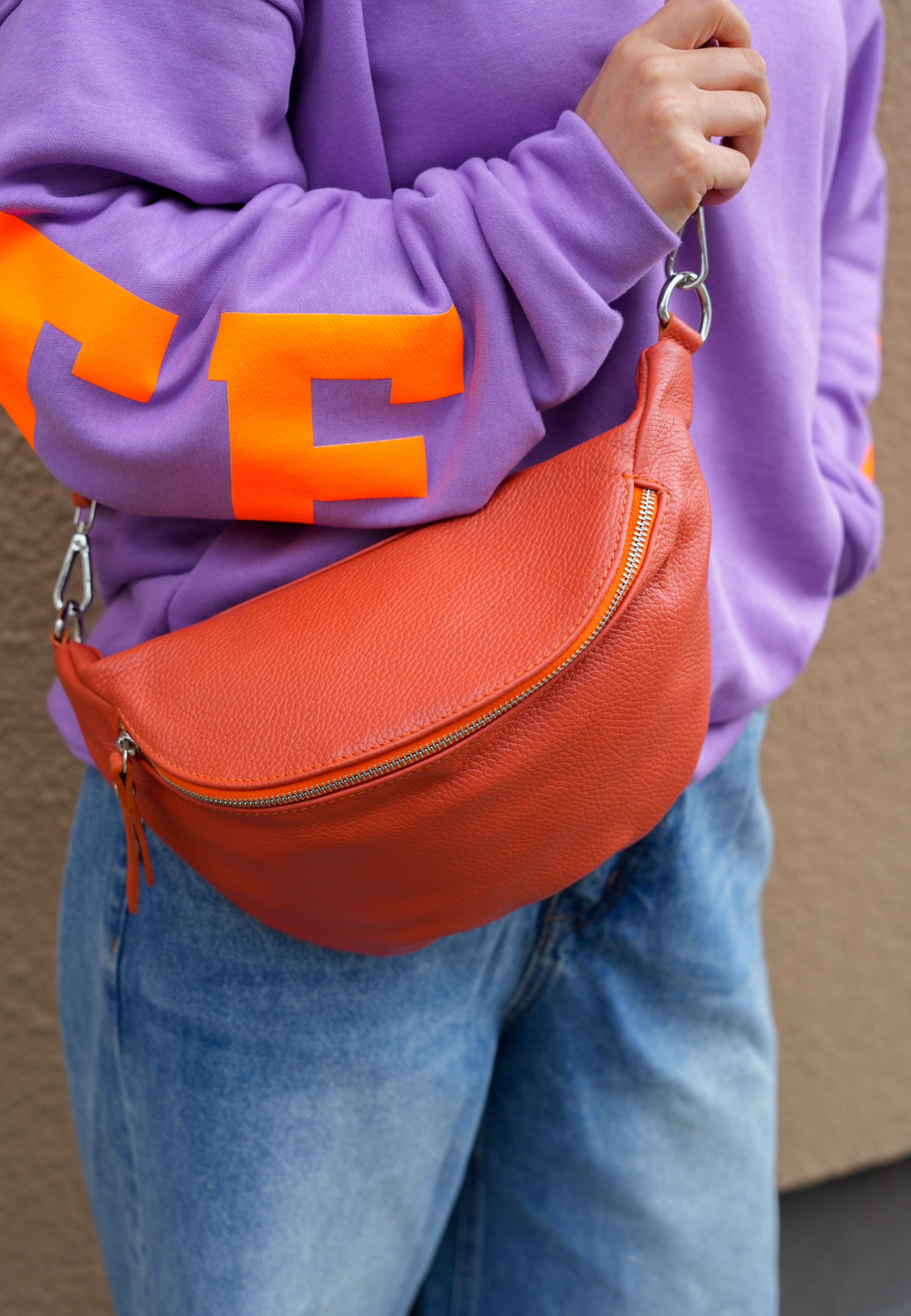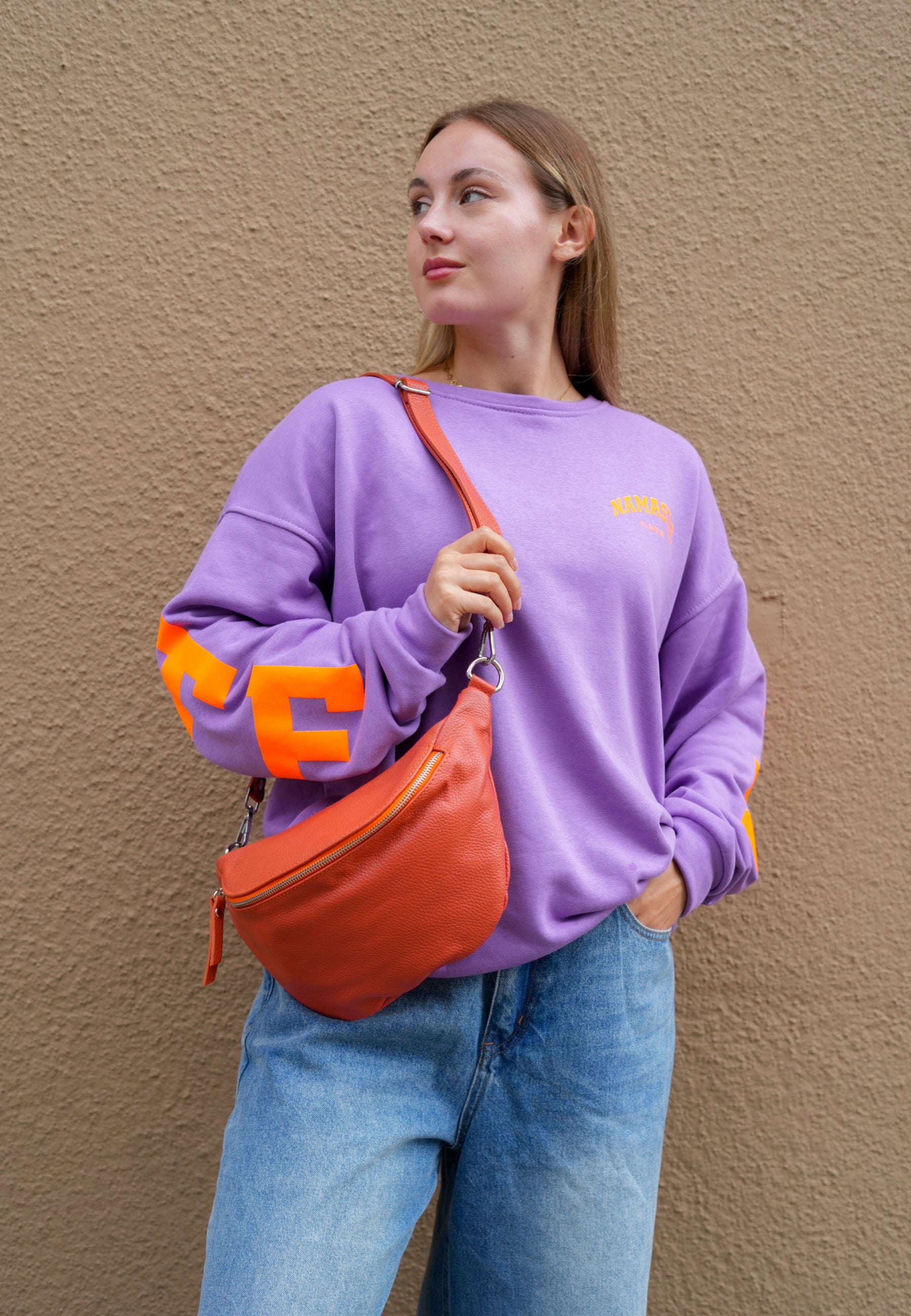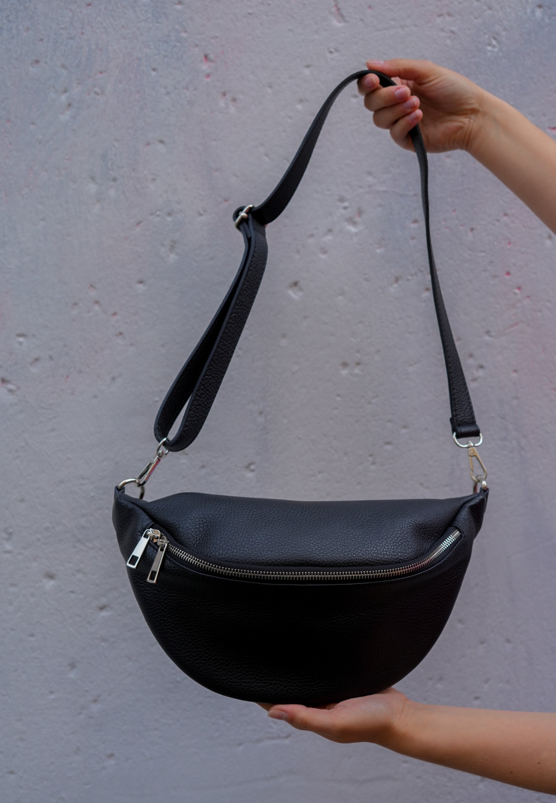 - Mit dieser Tasche aus echtem Leder bist Du für alle Anlässe ausgerüstet. Sie schmiegt sich schön an Deinen Körper an und es passt ordentlich was rein. Die Tasche wird mit einem Reißverschluss geschlossen.
