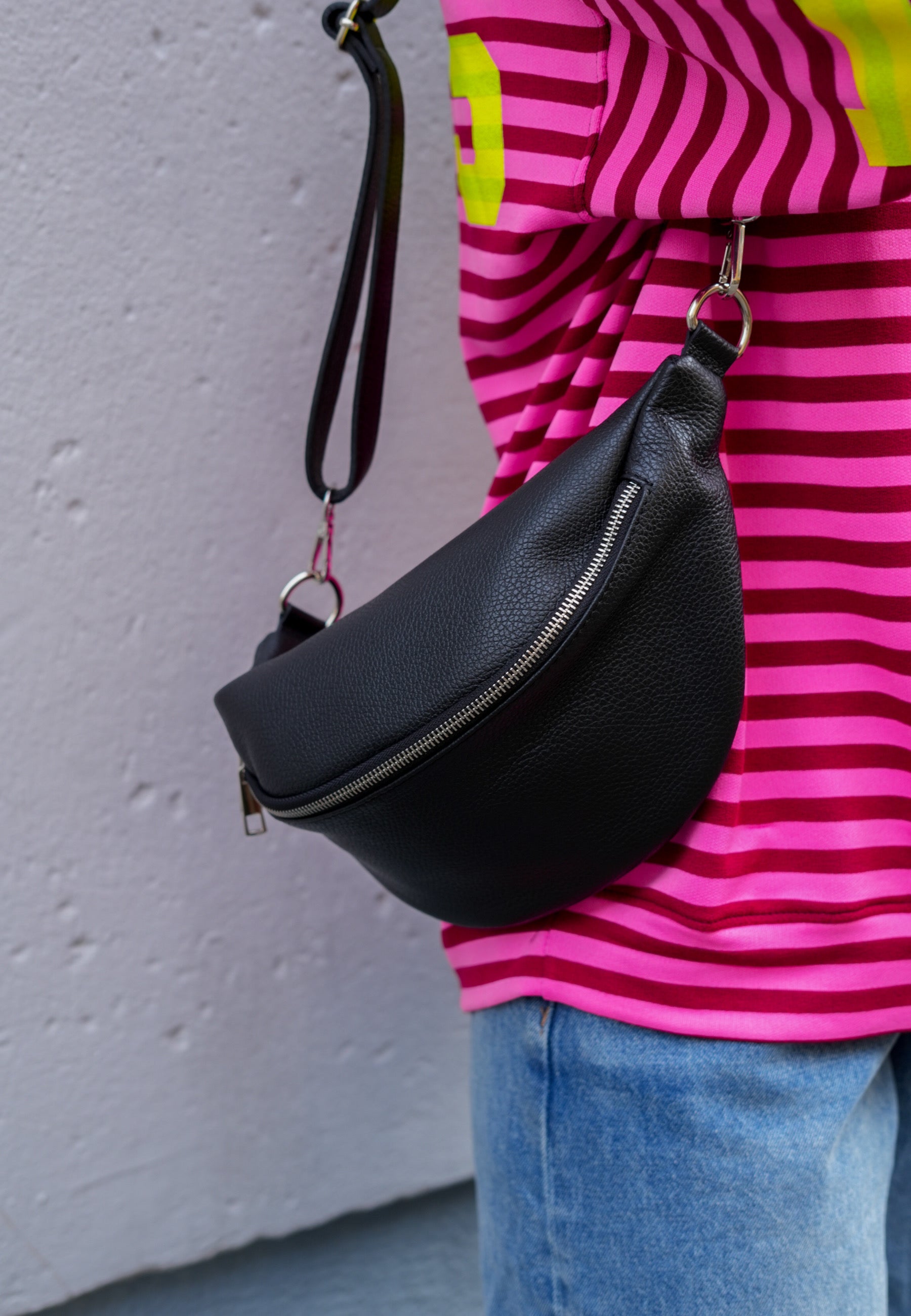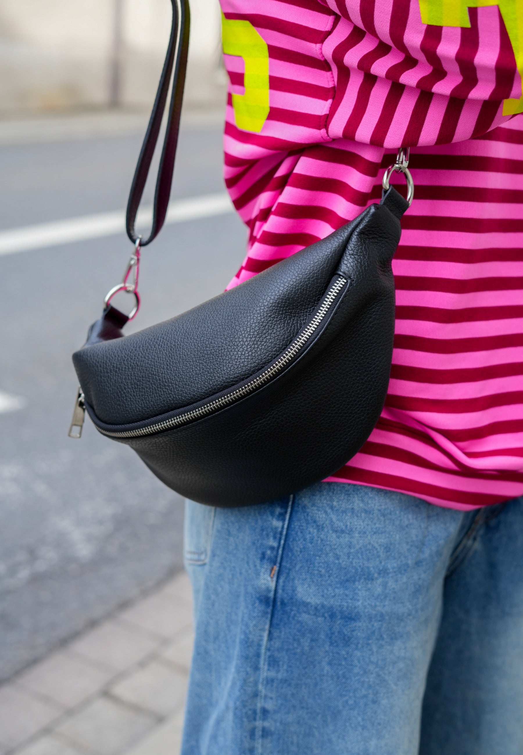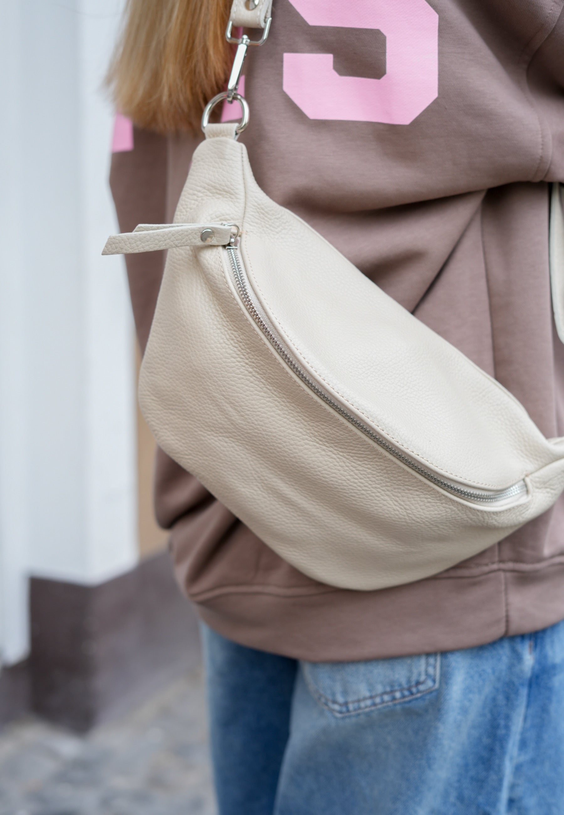 - Mit dieser Tasche aus echtem Leder bist Du für alle Anlässe ausgerüstet. Sie schmiegt sich schön an Deinen Körper an und es passt ordentlich was rein. Die Tasche wird mit einem Reißverschluss geschlossen.