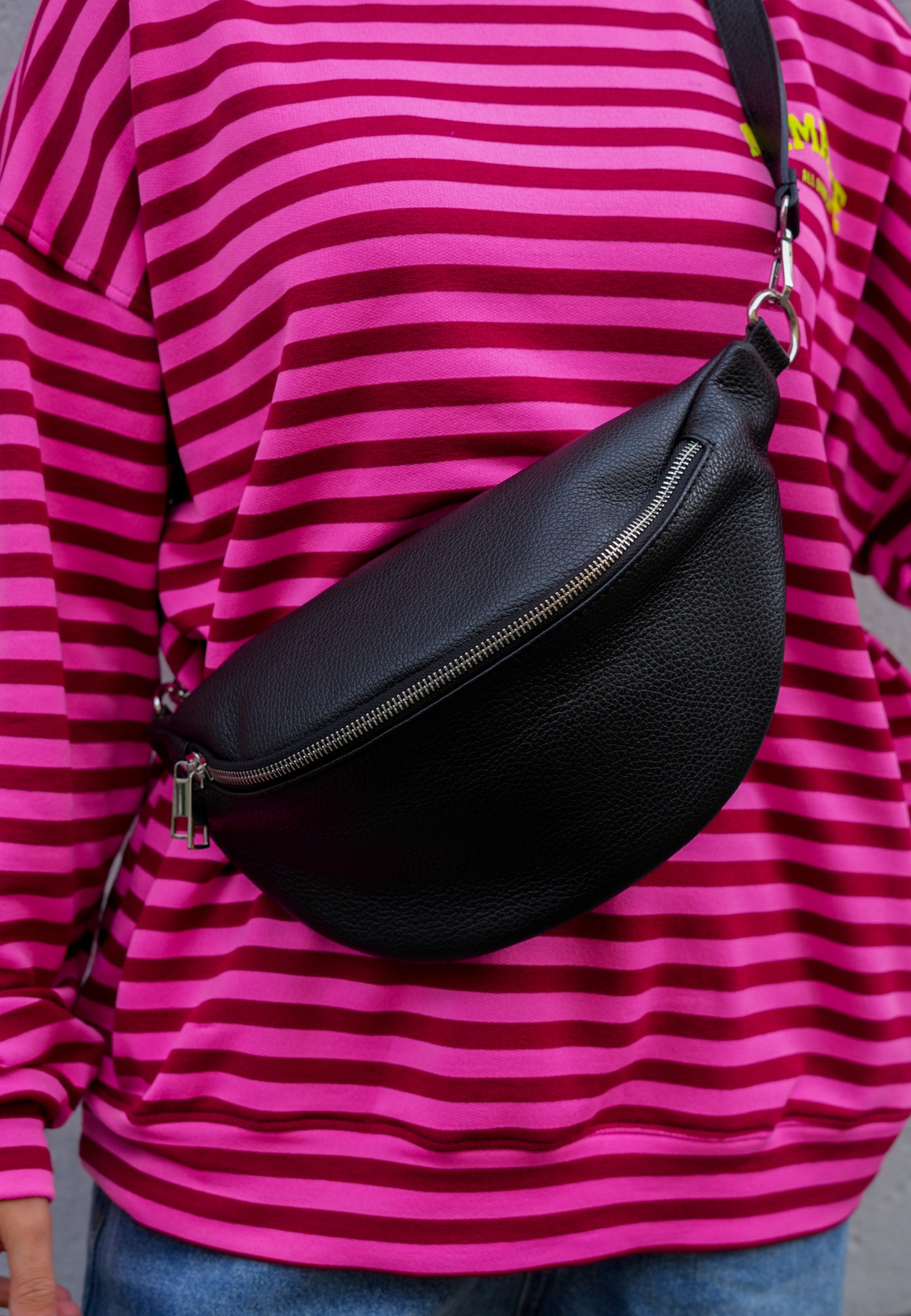 - Innen und auf der Rückseite befindet sich jeweils noch ein ein Reißverschlussfach. Der Gurt ist längenverstellbar und abnehmbar.