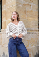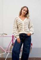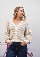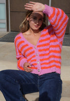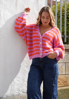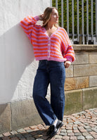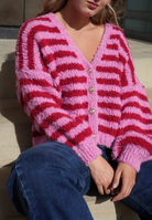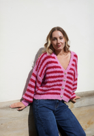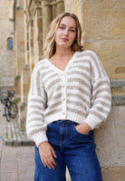 - Die Models sind 1,70m groß und tragen die Strickjacke.