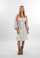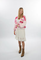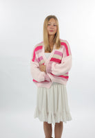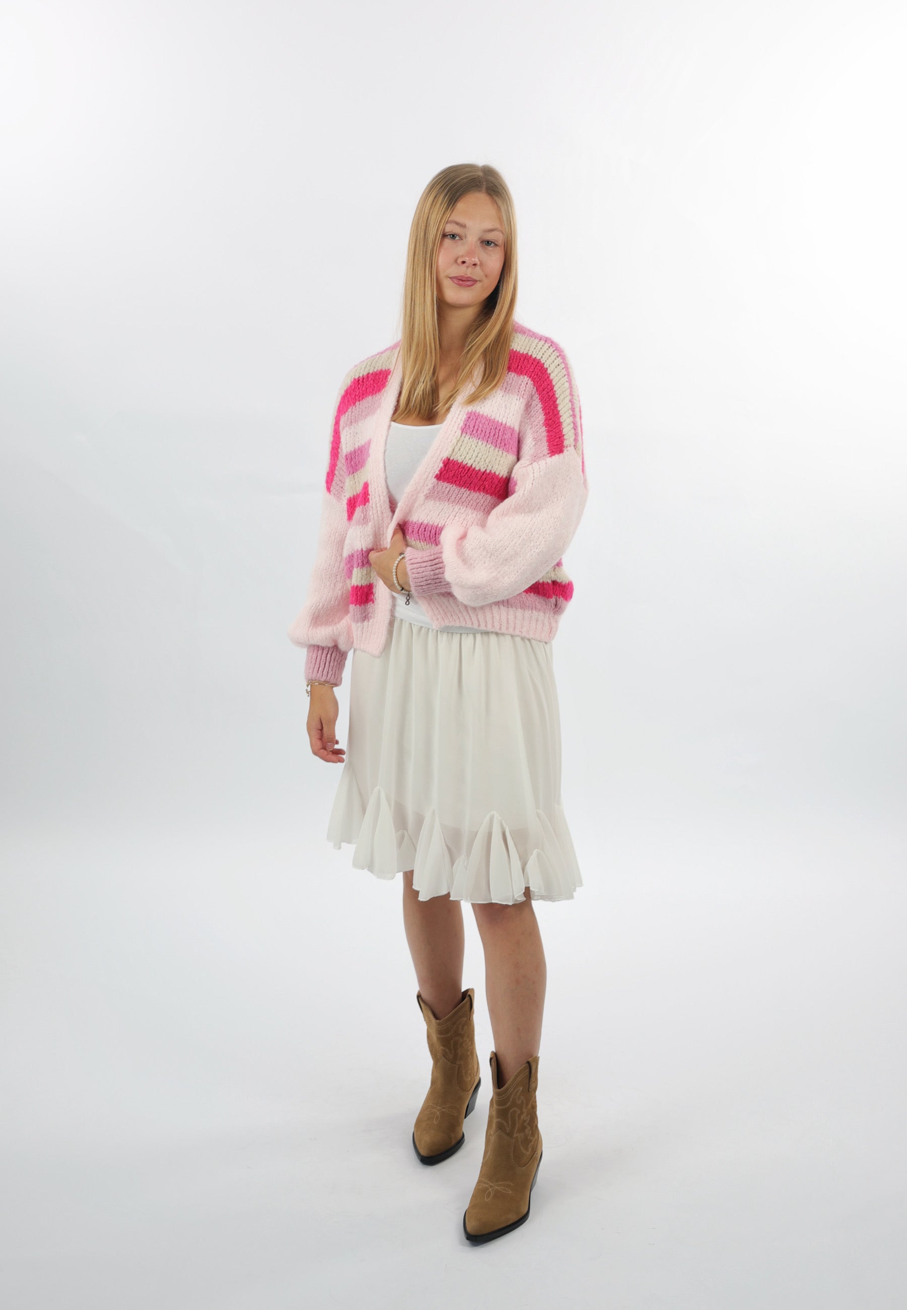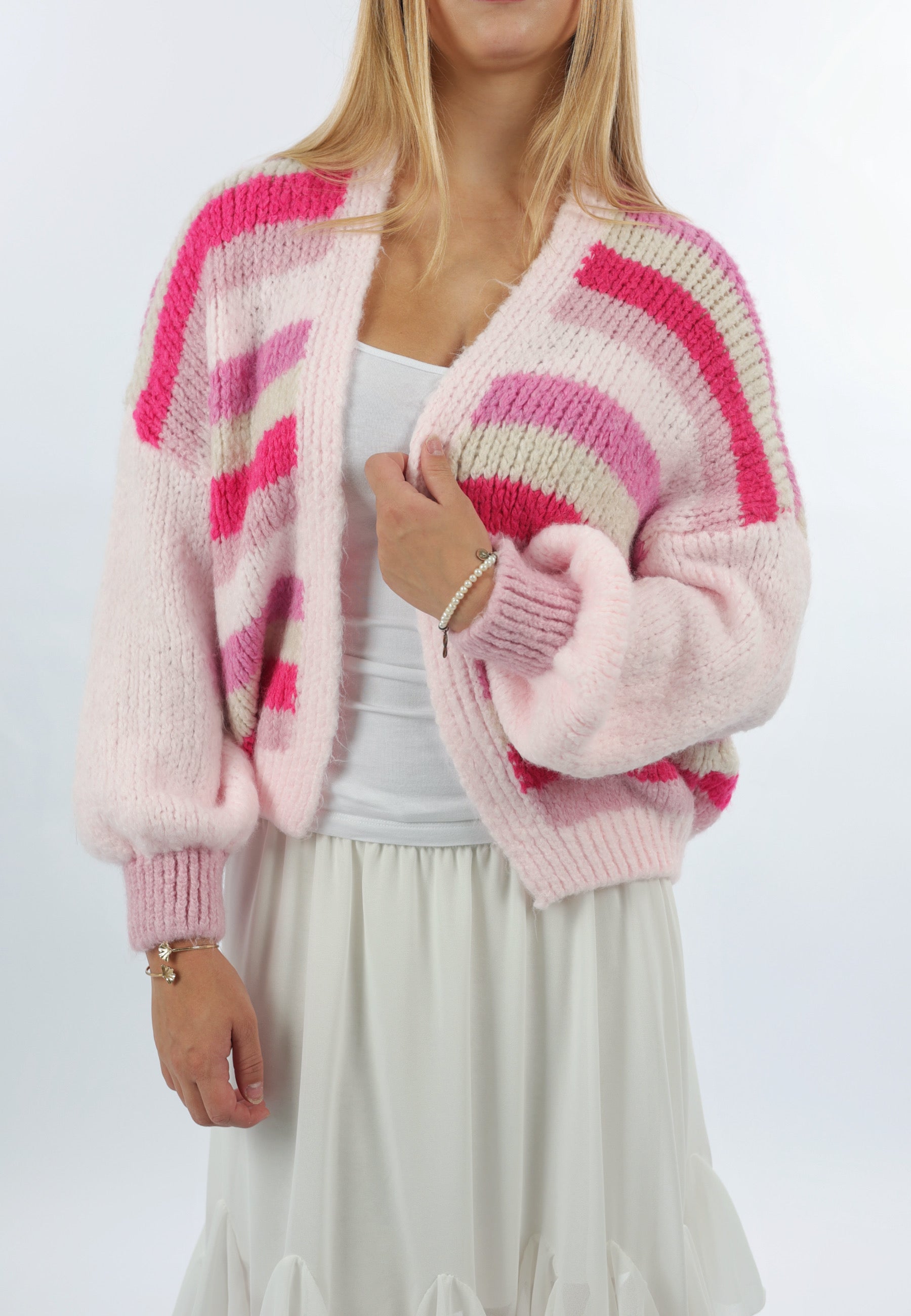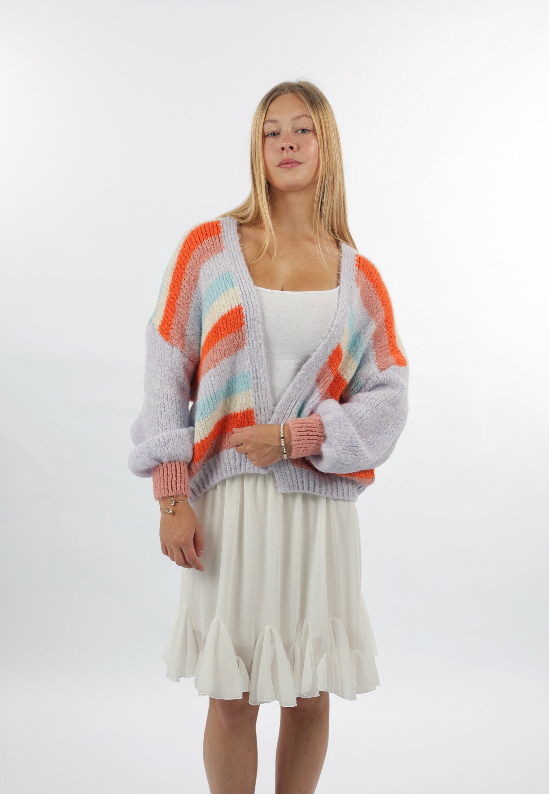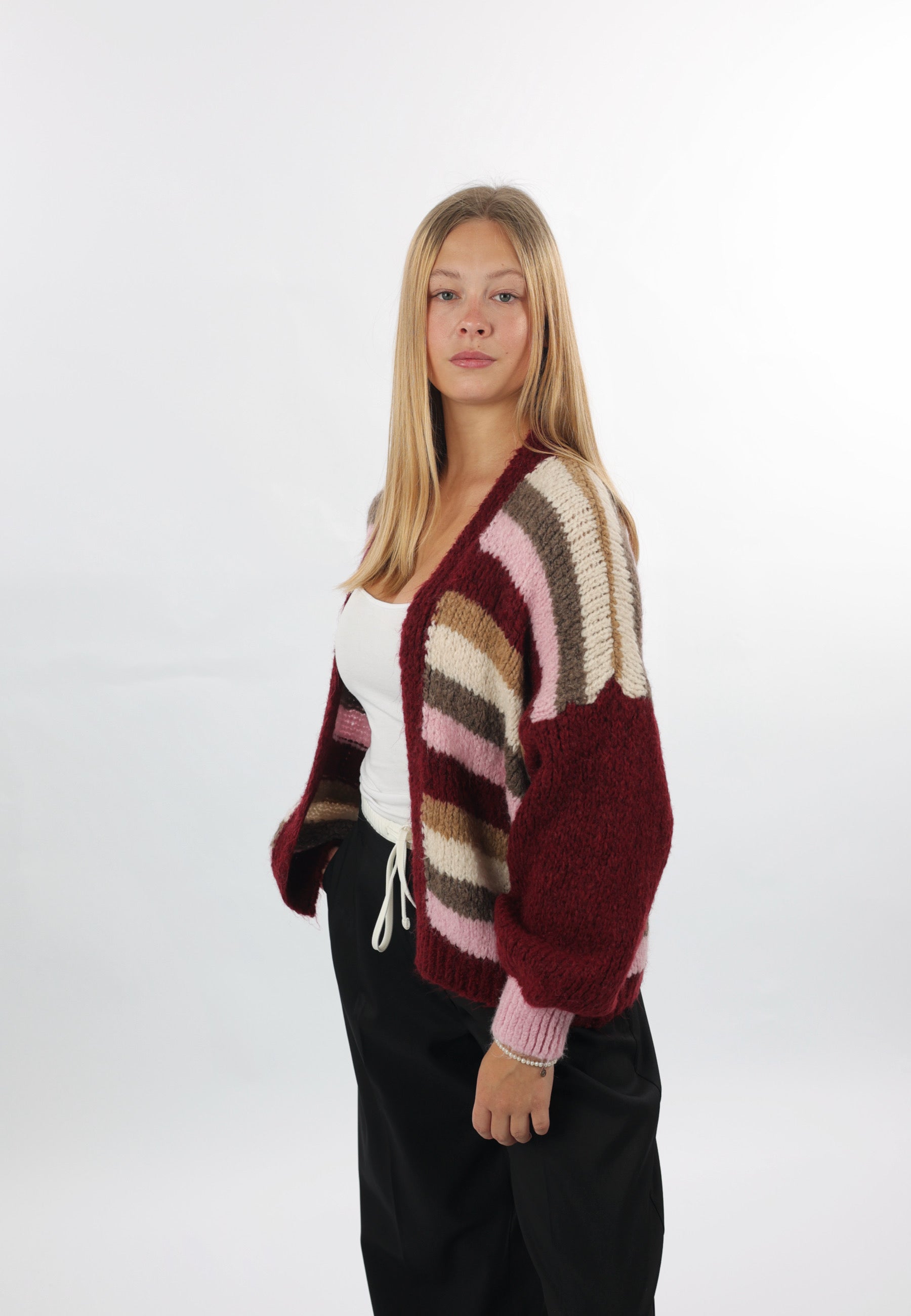 - Cordelia ist 1,67m groß und trägt den Cardigan.