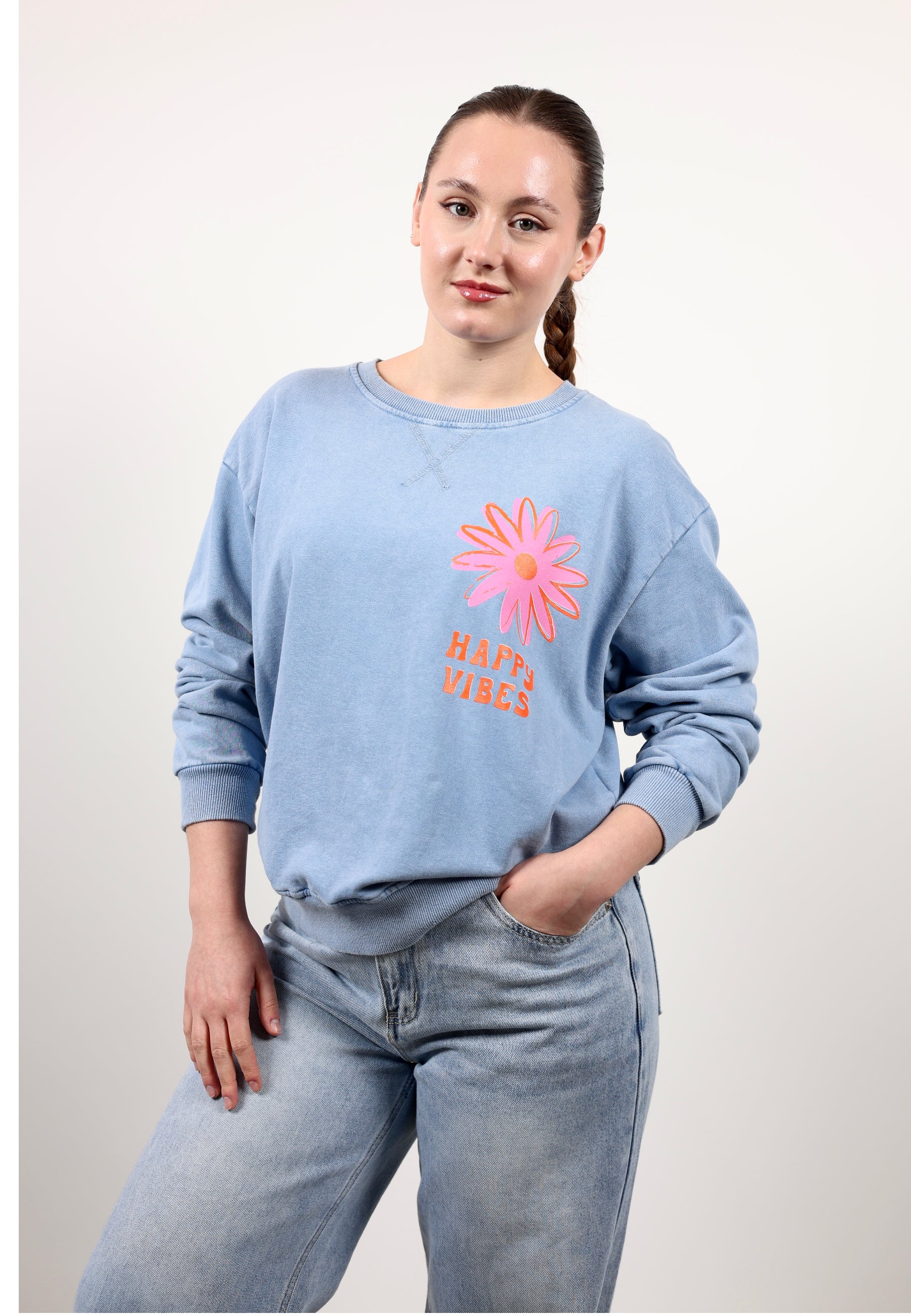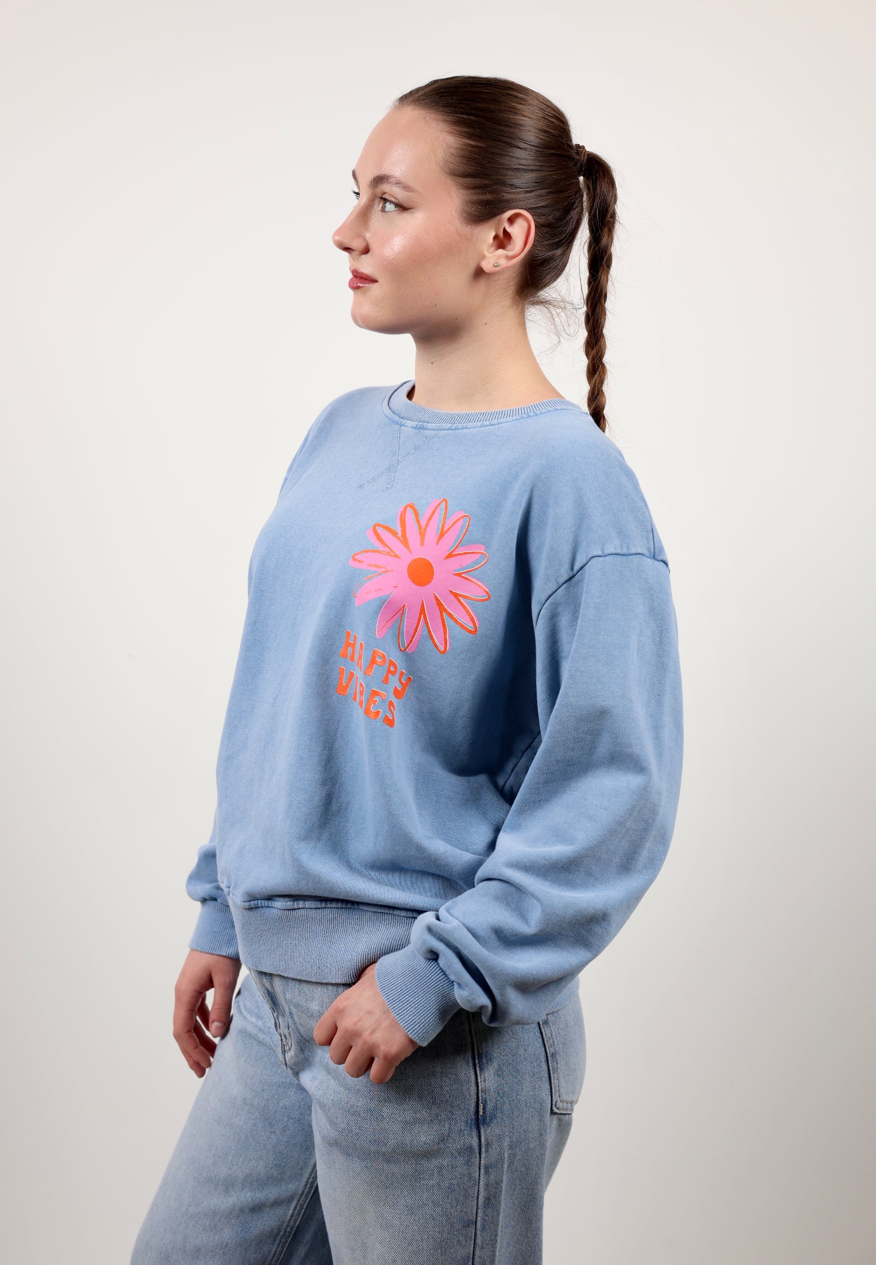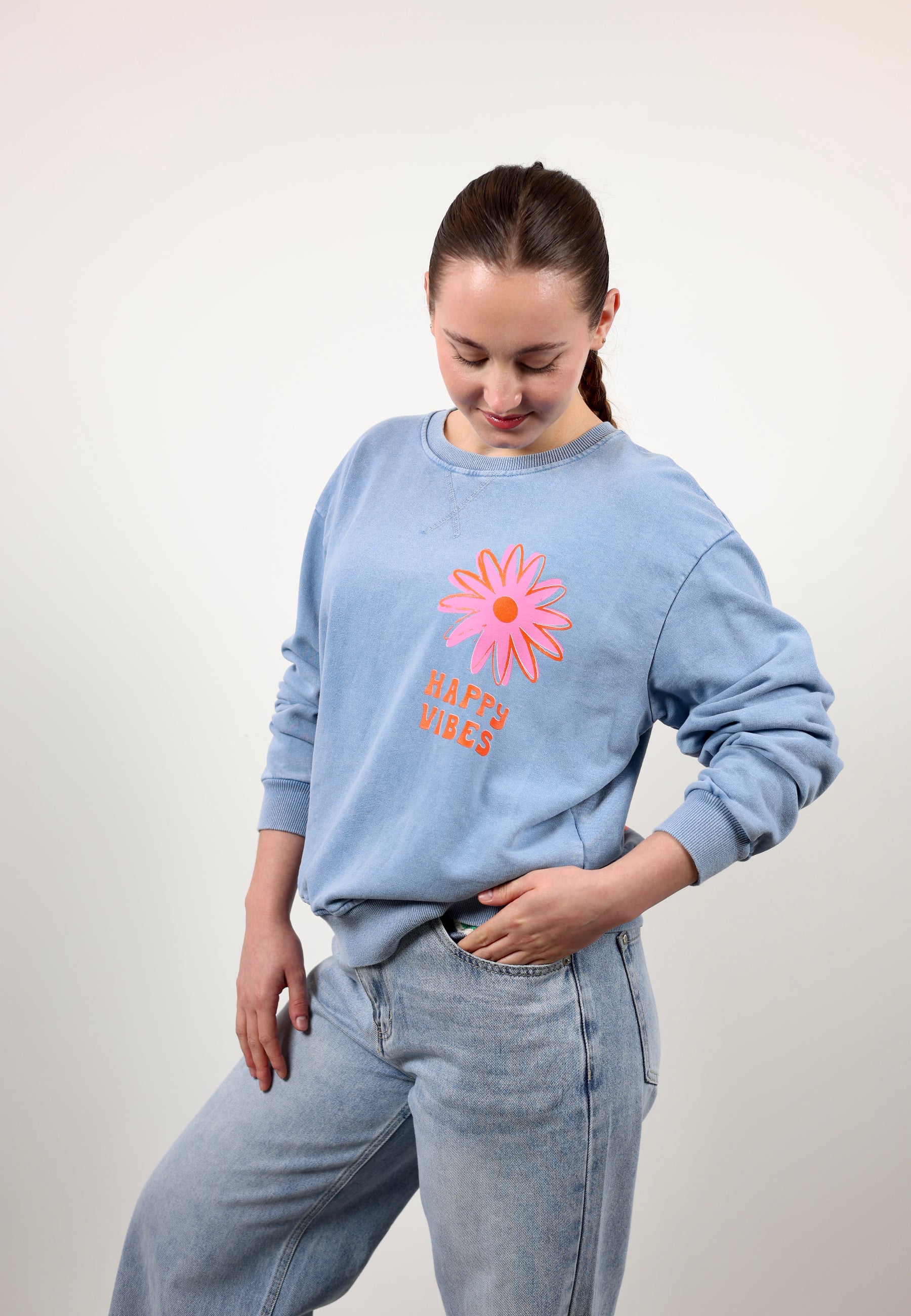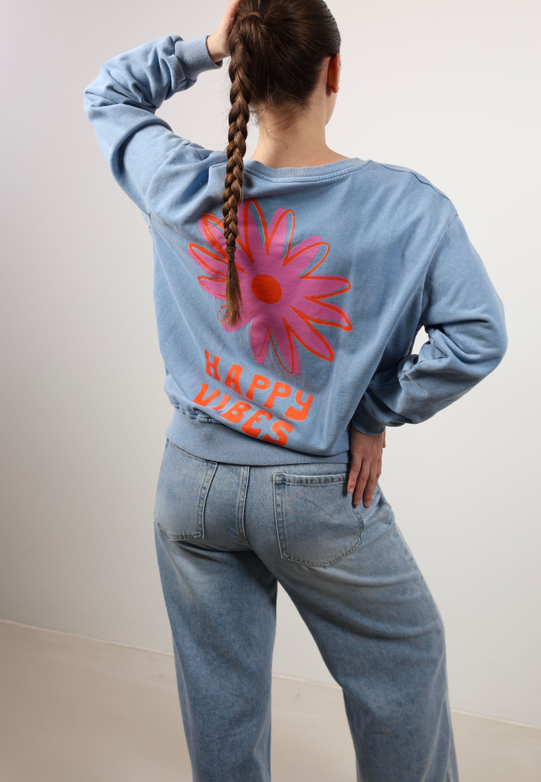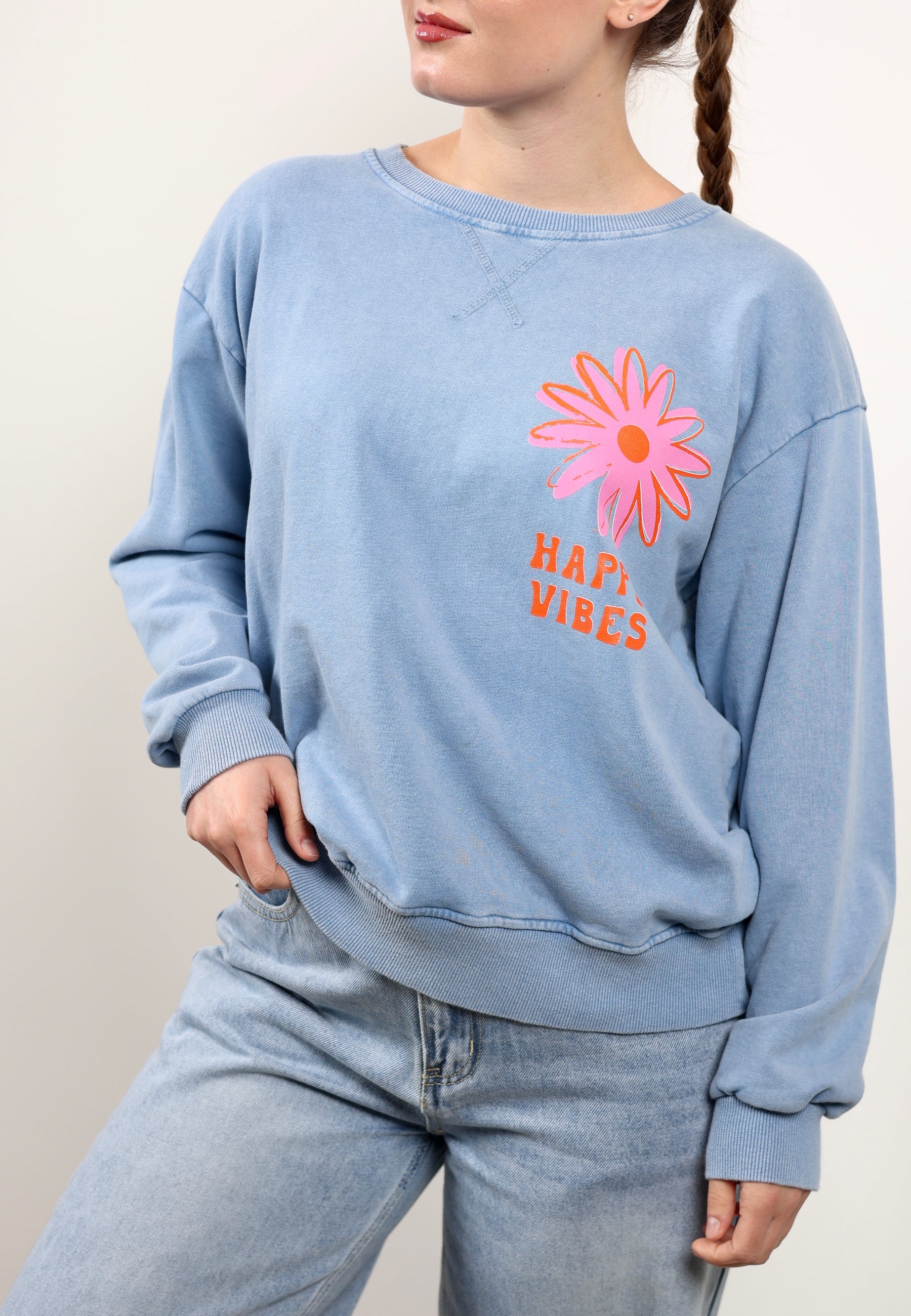 Happy Vibes Summer Sweatshirt - Acidwash Blau