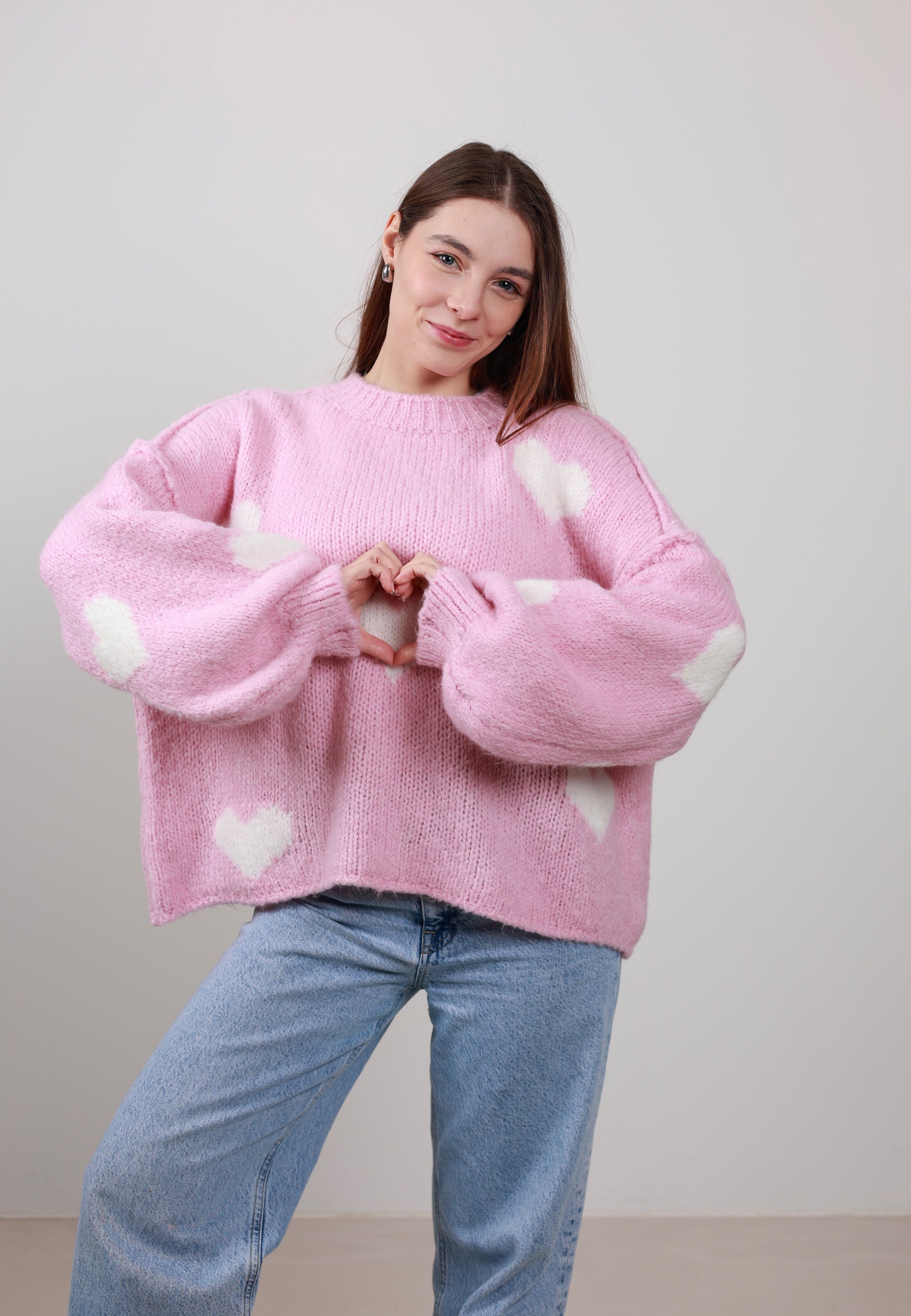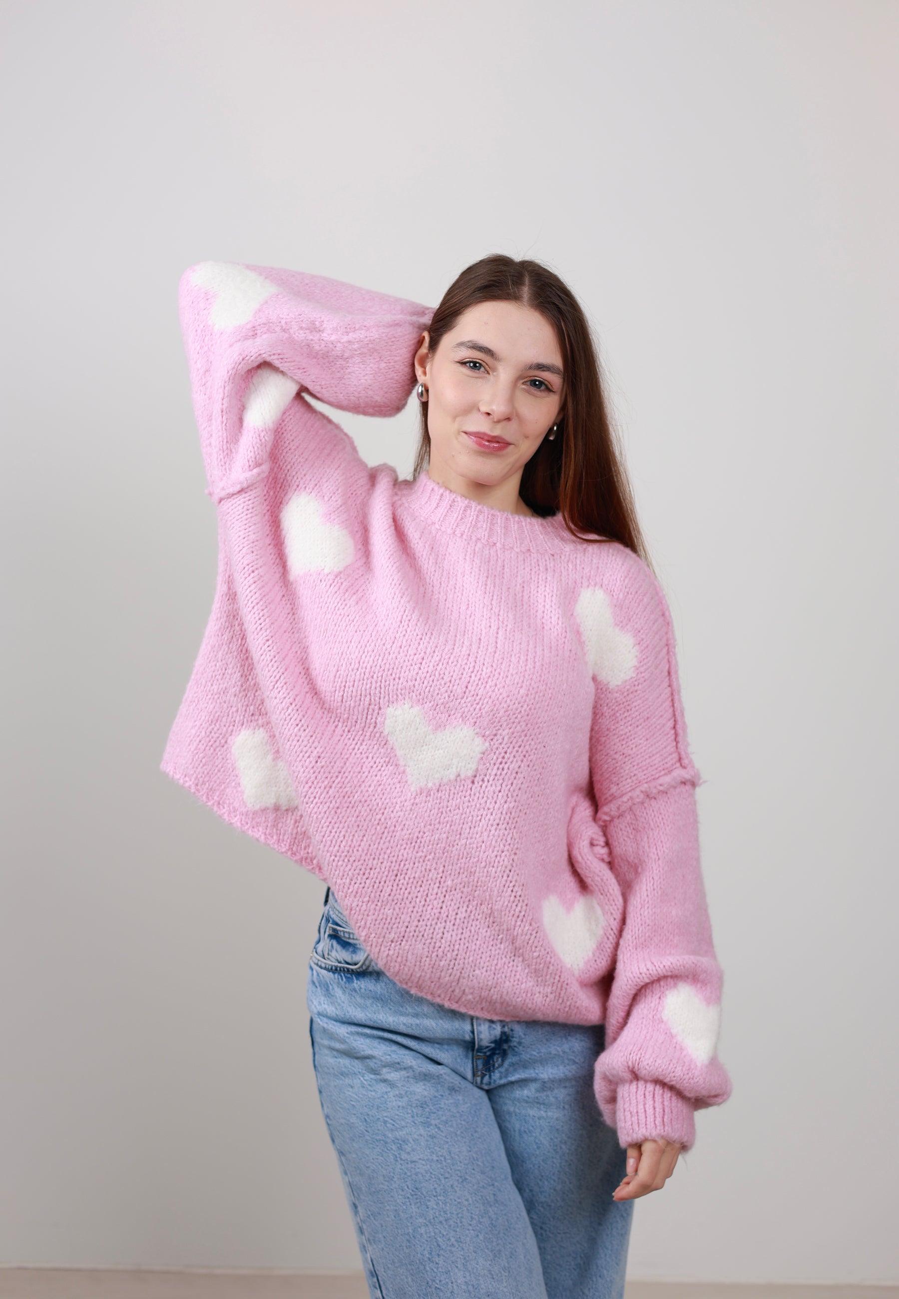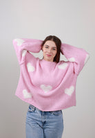 Kuschelweicher Pullover rosa mit Weiss Herzen-Umtausch nicht möglich❗️