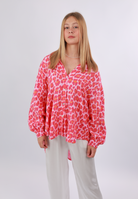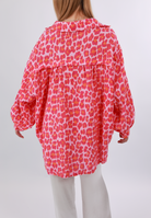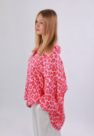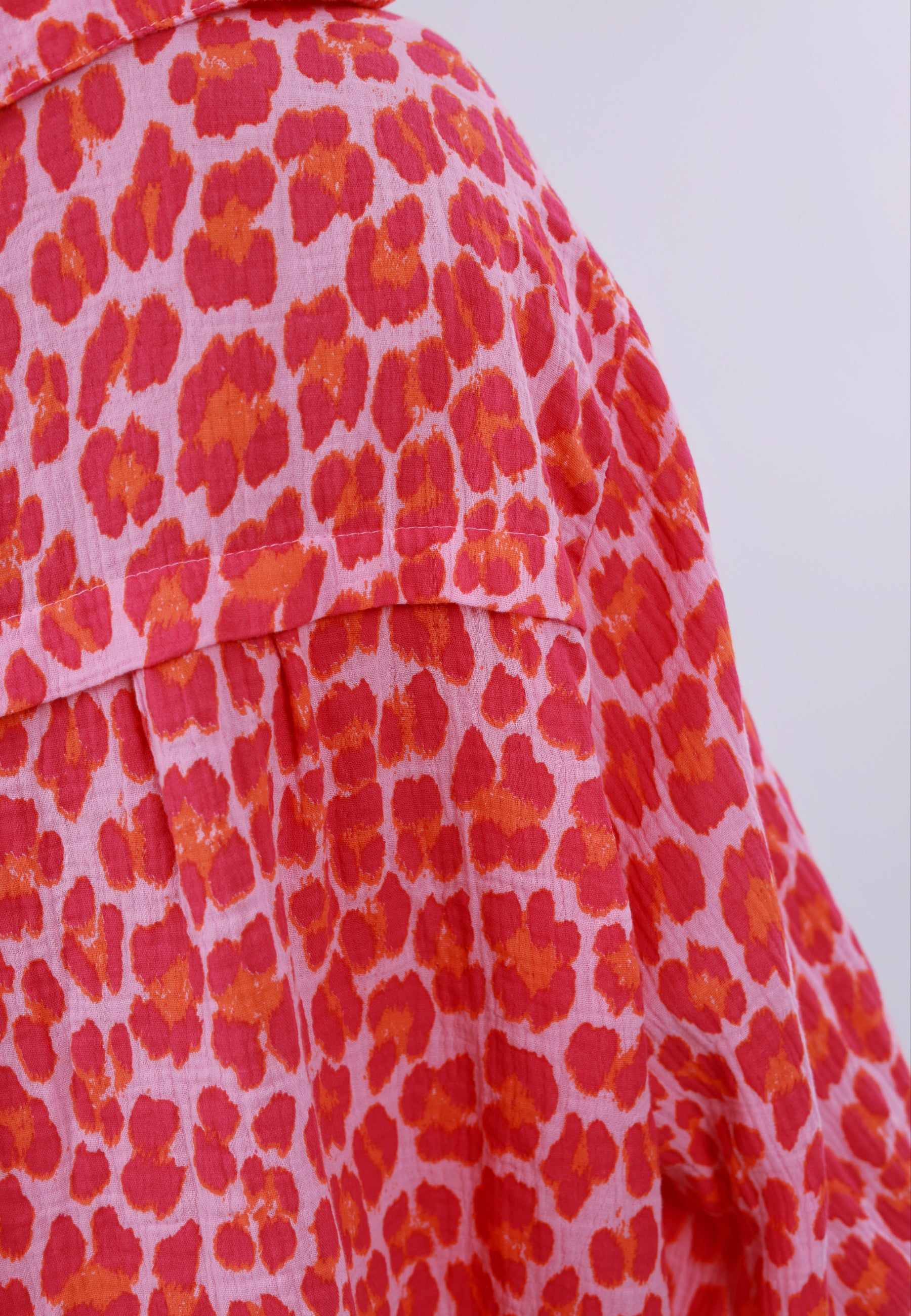 Musselin Midi Oversize Bluse - Leo Orange mit Pink